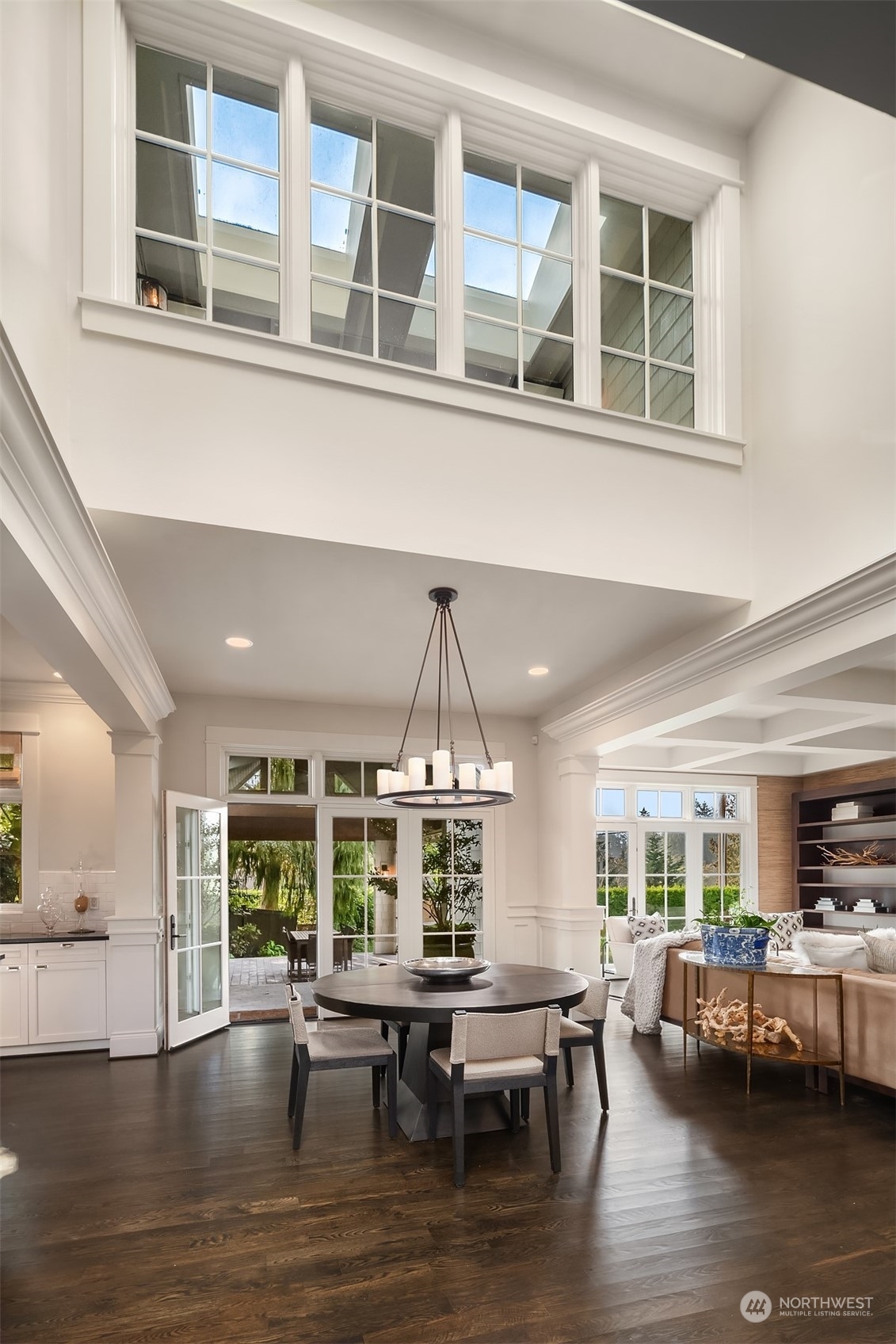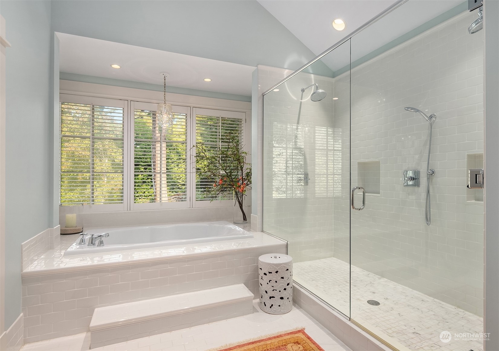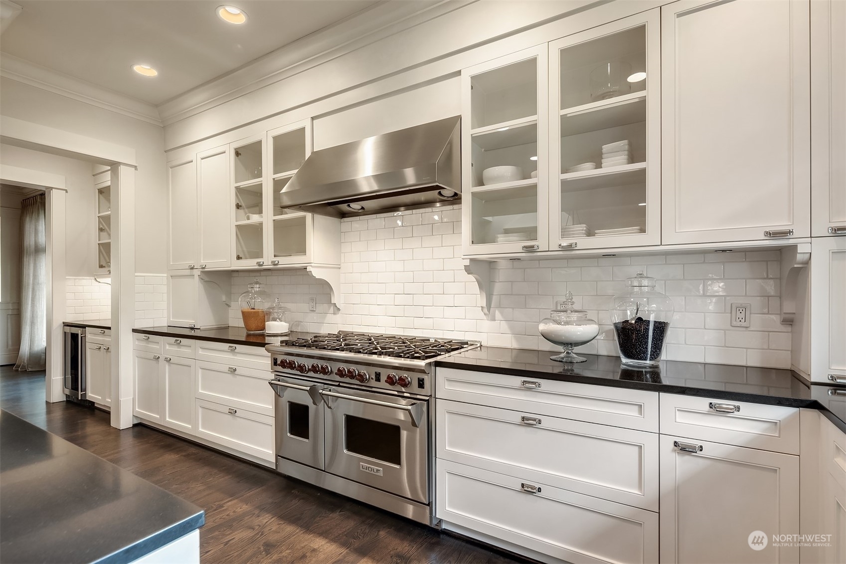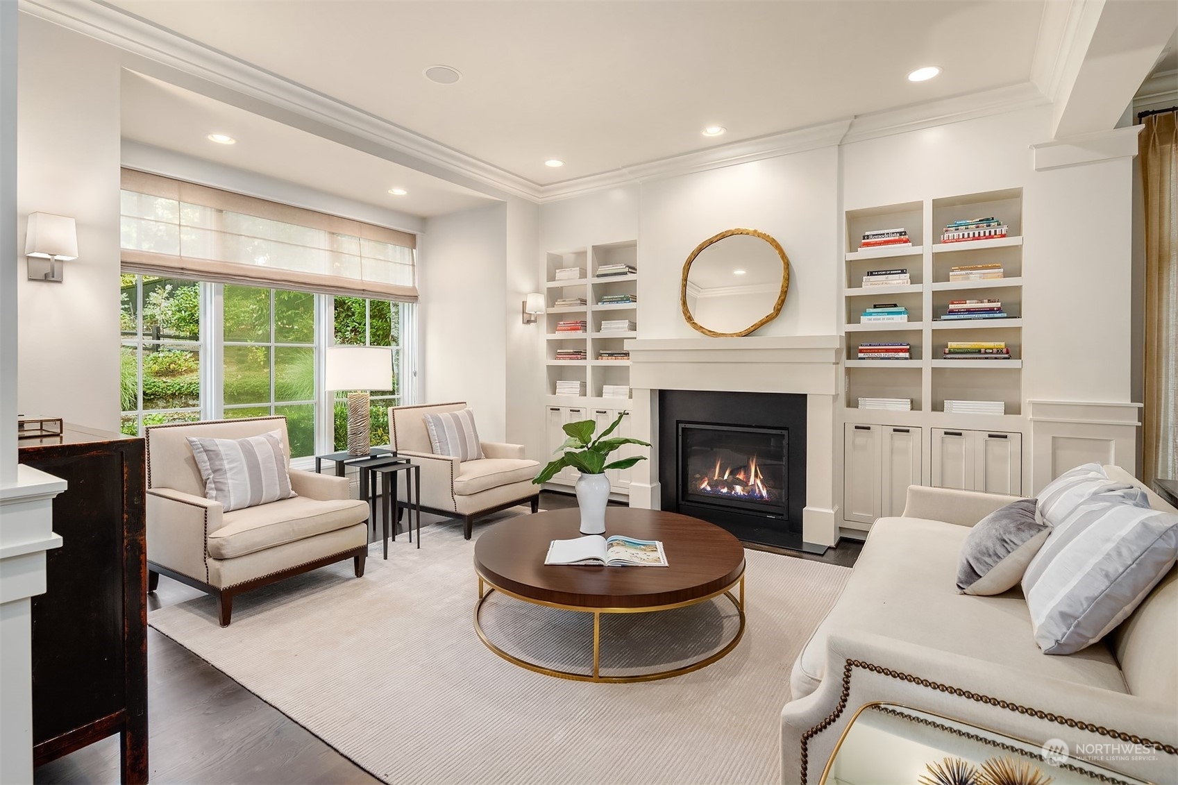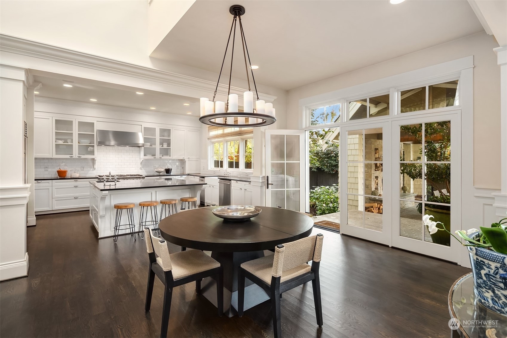 In the heart of West Bellevue, this 2006 custom-built blends NW architecture w/ clean lines, light-filled rooms & attention to detail. Highlighted by 5” white oak floors & 10’ to 20' ceilings, the design is timeless. Main floor features an open living/dining room, home office, chefs kitchen w/ black granite island & family room w/ built-in bookshelves. Private primary suite w/ 2 walk-in closets, spa bath w/ white carrrera slab & deck. Another en suite bdrm, jack-&-jill w/ full bath & upstairs rec room. Mature landscaping creates a private & estate-like feel w/ 373 sqft covered gazebo. Wine cellar, workout room, ample storage & sports room w/ direct access from garage. Walk to local beach parks, Bellevue Collection & Old Bellevue!
