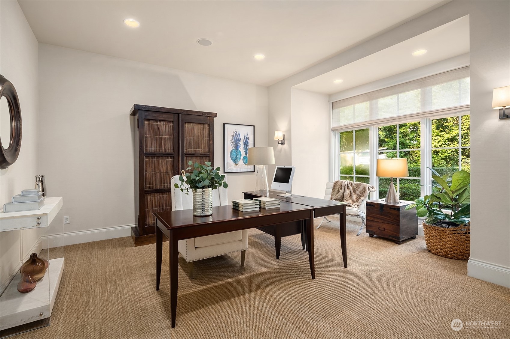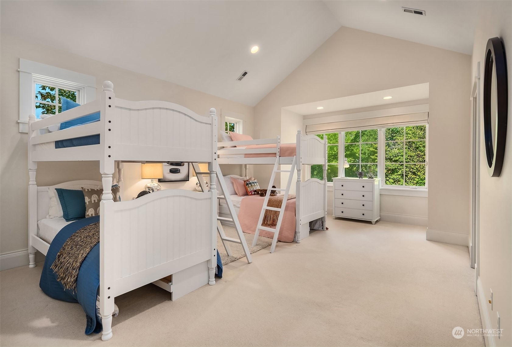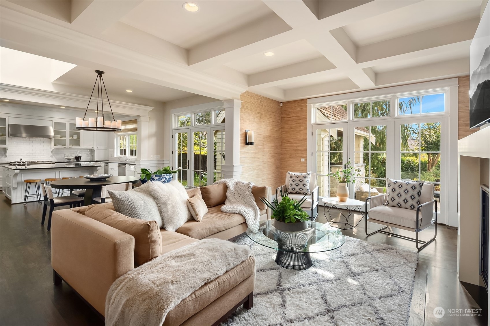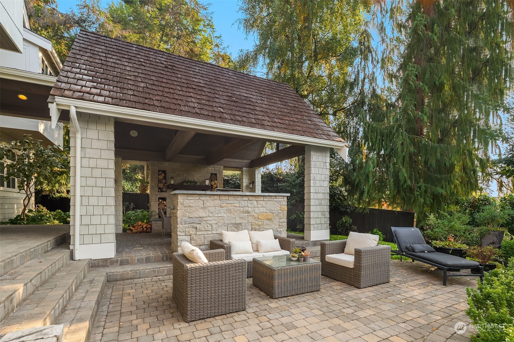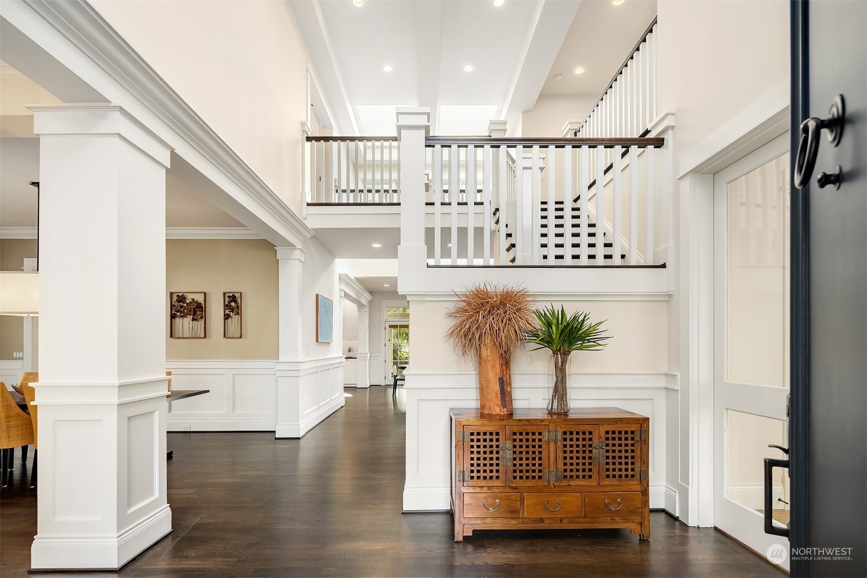 In the heart of West Bellevue, this 2006 custom-built blends NW architecture w/ clean lines, light-filled rooms & attention to detail. Highlighted by 5” white oak floors & 10’ to 20' ceilings, the design is timeless. Main floor features an open living/dining room, home office, chefs kitchen w/ black granite island & family room w/ built-in bookshelves. Private primary suite w/ 2 walk-in closets, spa bath w/ white carrrera slab & deck. Another en suite bdrm, jack-&-jill w/ full bath & upstairs rec room. Mature landscaping creates a private & estate-like feel w/ 373 sqft covered gazebo. Wine cellar, workout room, ample storage & sports room w/ direct access from garage. Walk to local beach parks, Bellevue Collection & Old Bellevue!
