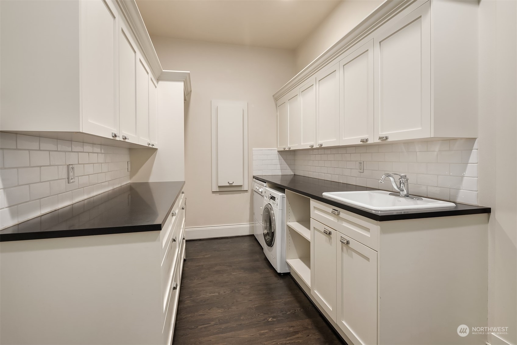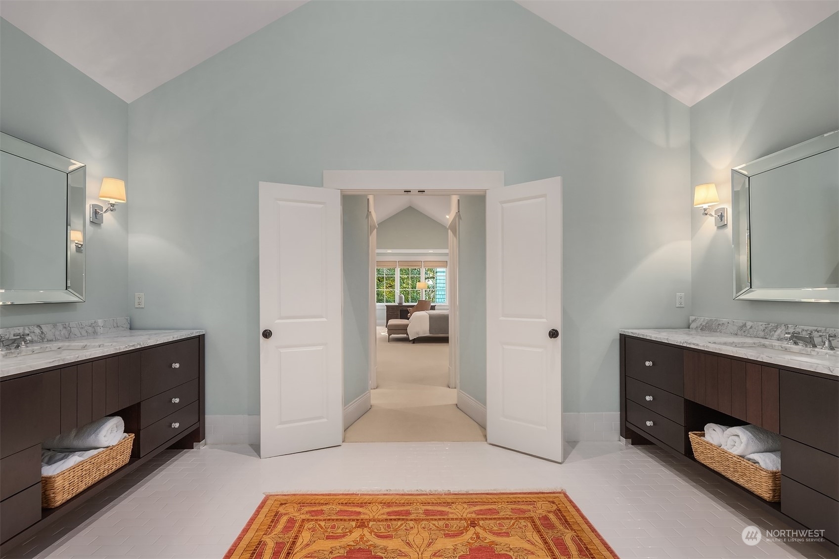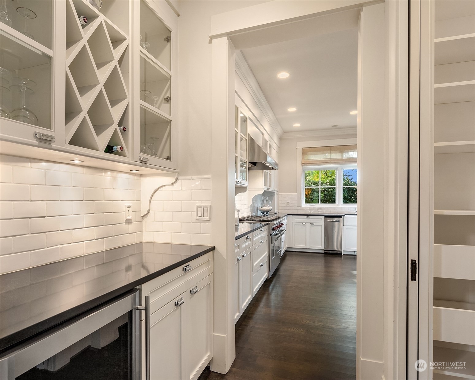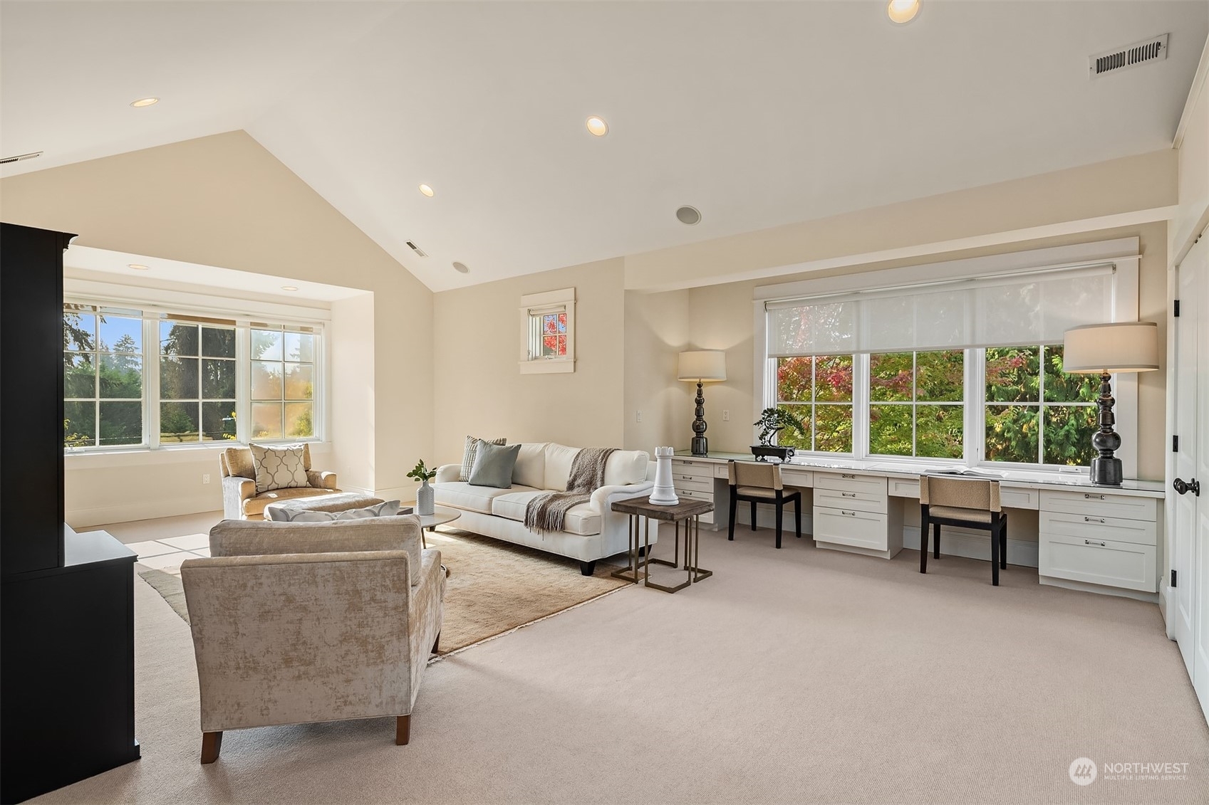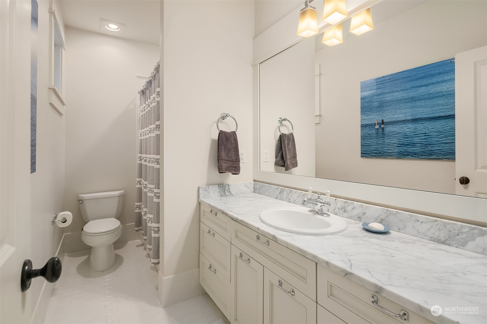 In the heart of West Bellevue, this 2006 custom-built blends NW architecture w/ clean lines, light-filled rooms & attention to detail. Highlighted by 5” white oak floors & 10’ to 20' ceilings, the design is timeless. Main floor features an open living/dining room, home office, chefs kitchen w/ black granite island & family room w/ built-in bookshelves. Private primary suite w/ 2 walk-in closets, spa bath w/ white carrrera slab & deck. Another en suite bdrm, jack-&-jill w/ full bath & upstairs rec room. Mature landscaping creates a private & estate-like feel w/ 373 sqft covered gazebo. Wine cellar, workout room, ample storage & sports room w/ direct access from garage. Walk to local beach parks, Bellevue Collection & Old Bellevue!