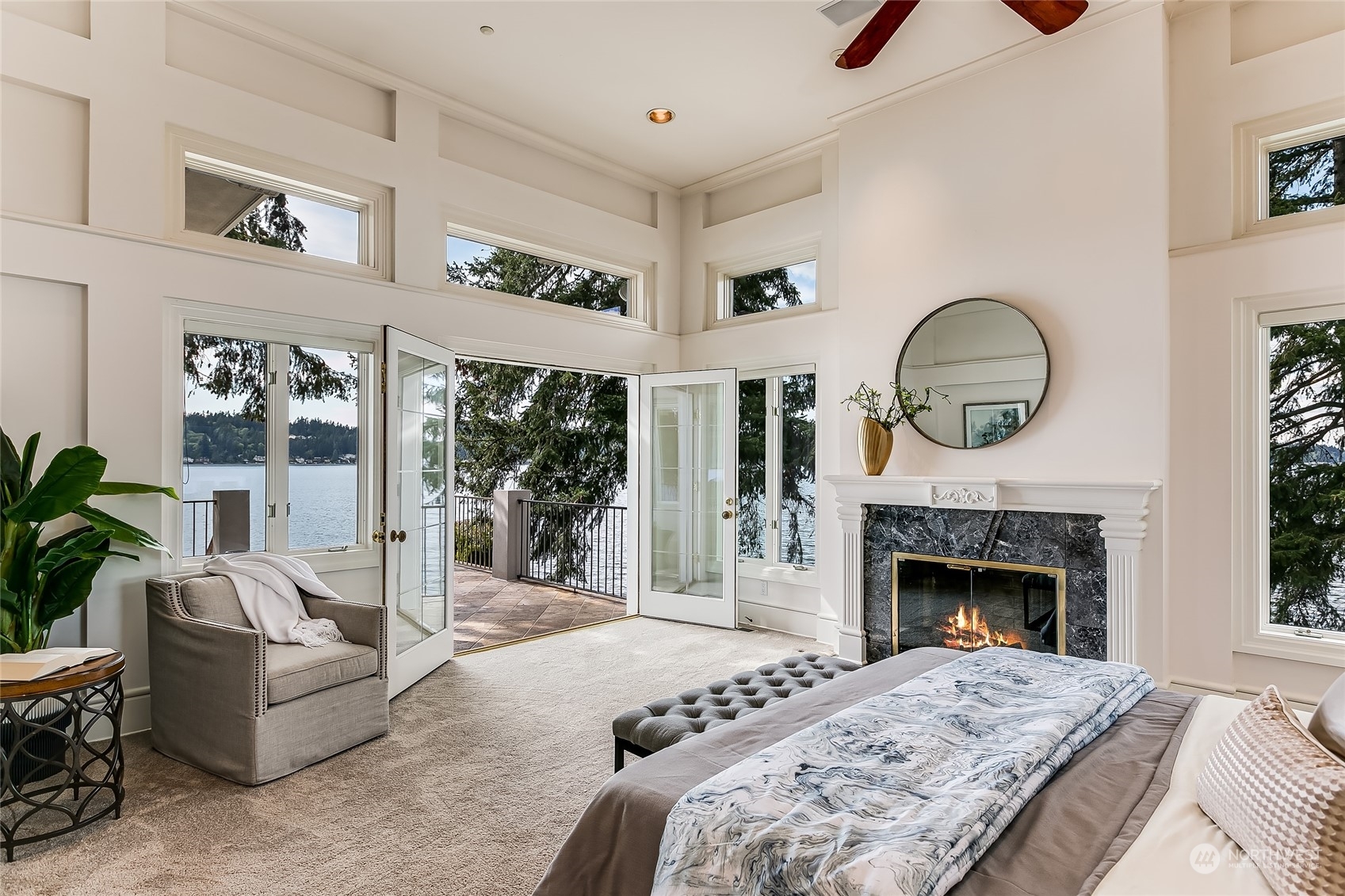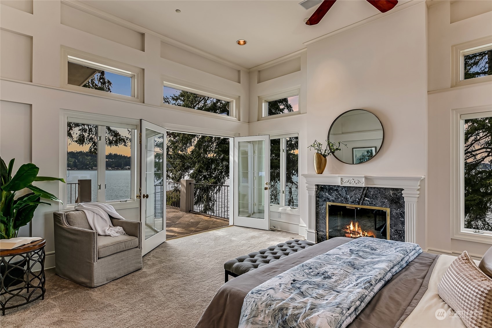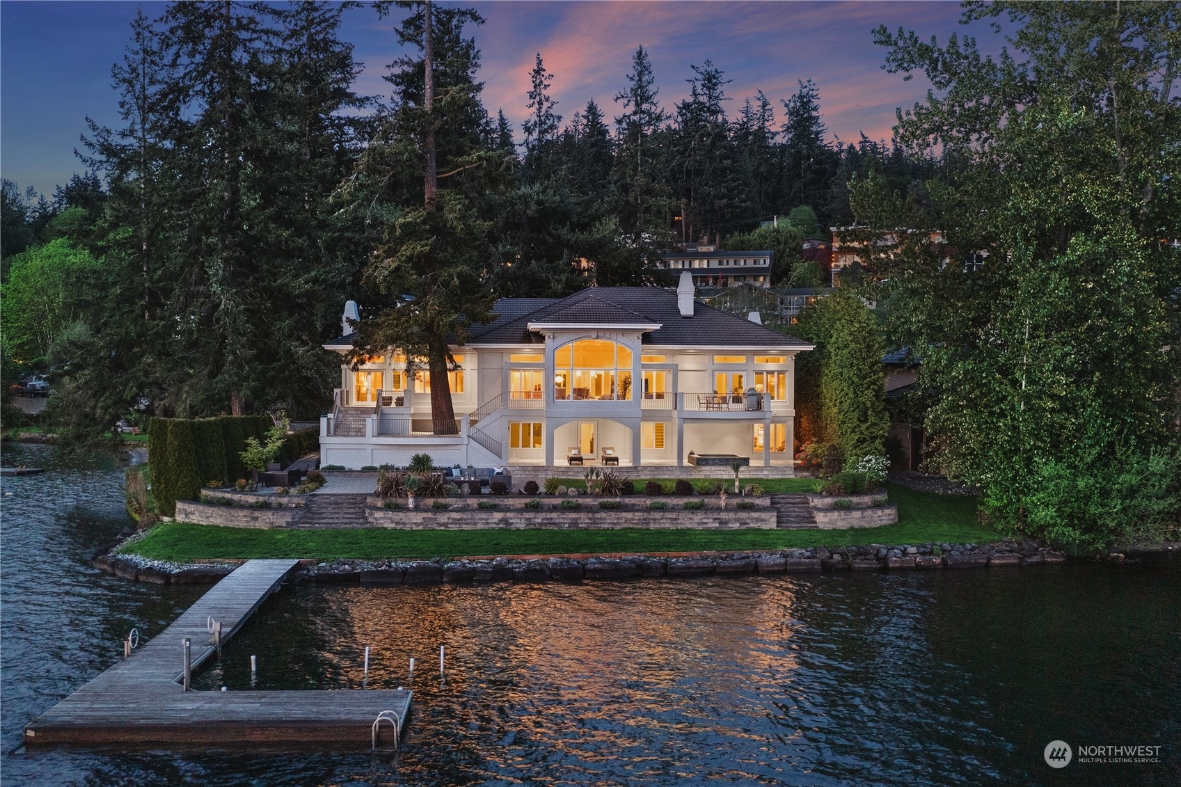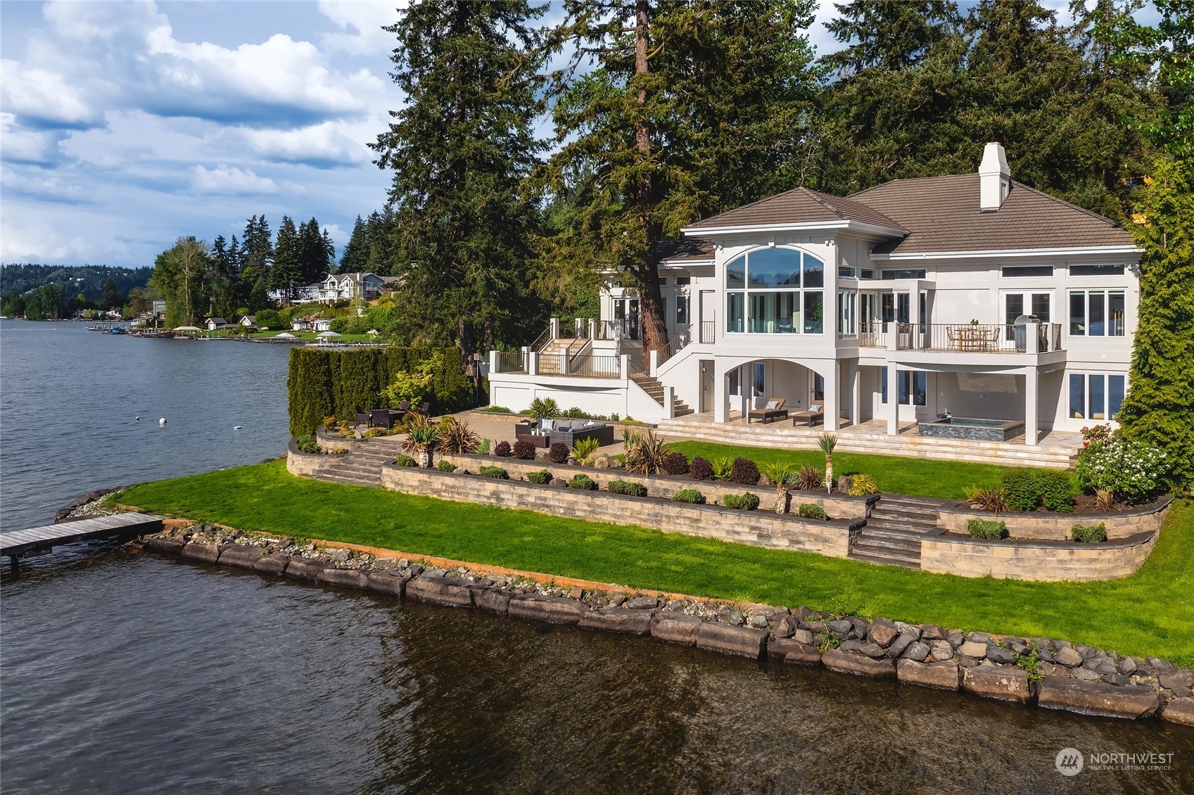 A contemporary icon on the shores of East Lake Sammamish, situated prominently on a point surrounded by 104’ of picturesque waterfront. Nestled amidst nature’s embrace, this ultra-private estate offers a gated entry and breathtaking SW-exposure for stunning nightly sunsets. Inside, a masterful interplay of space and geometry converges to celebrate light and sweeping lake views. Bold architectural lines anchor volumes of space, inviting you to explore further. Embark on leisurely boating adventures from your dock and bask in the sun’s warm embrace from the lakeside terrace. Each day begins with a sense of serenity and wonder from the main floor primary suite. Complete with lower-level wine cellar, spa bath and lakeside jacuzzi. A sanctuary.