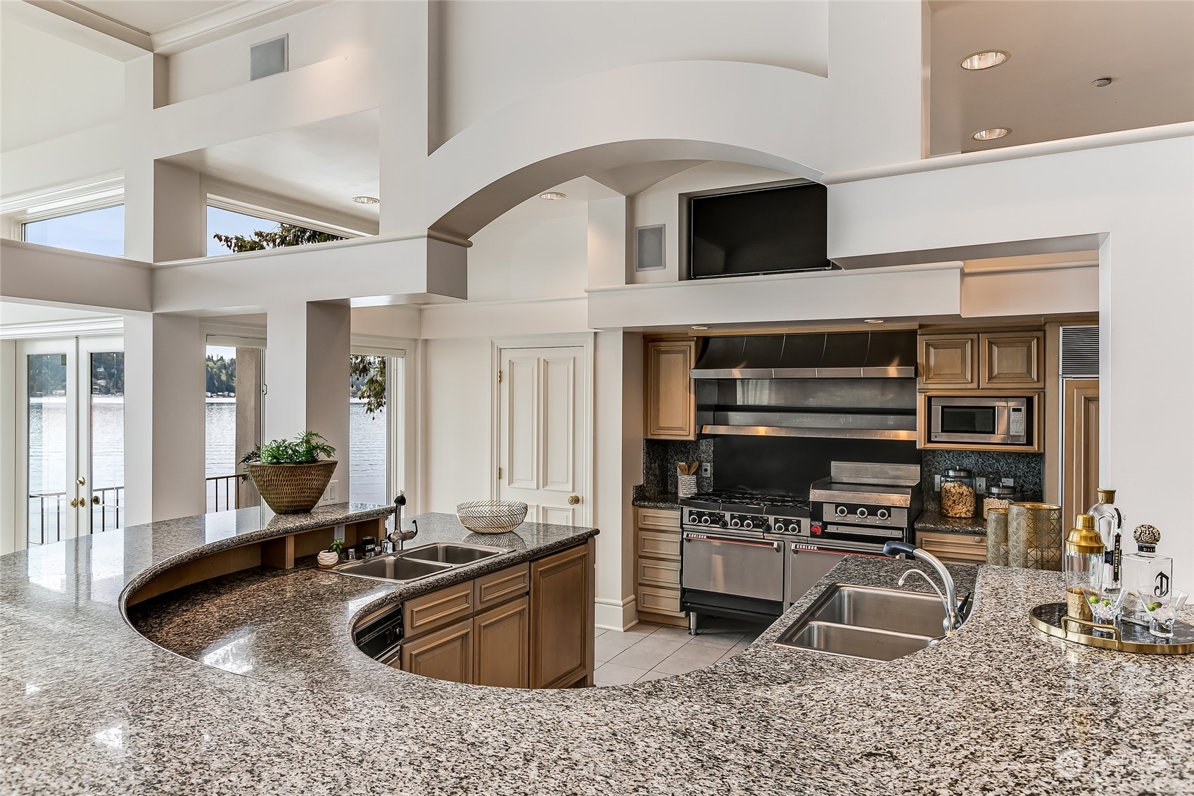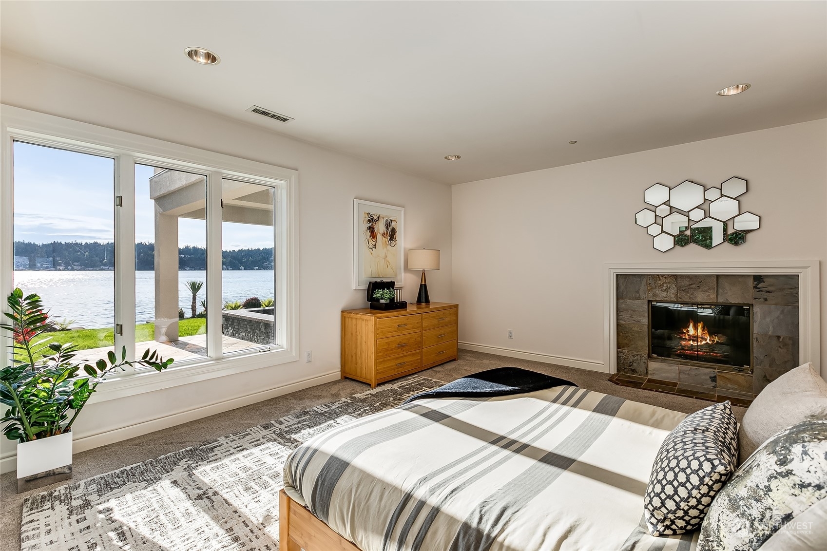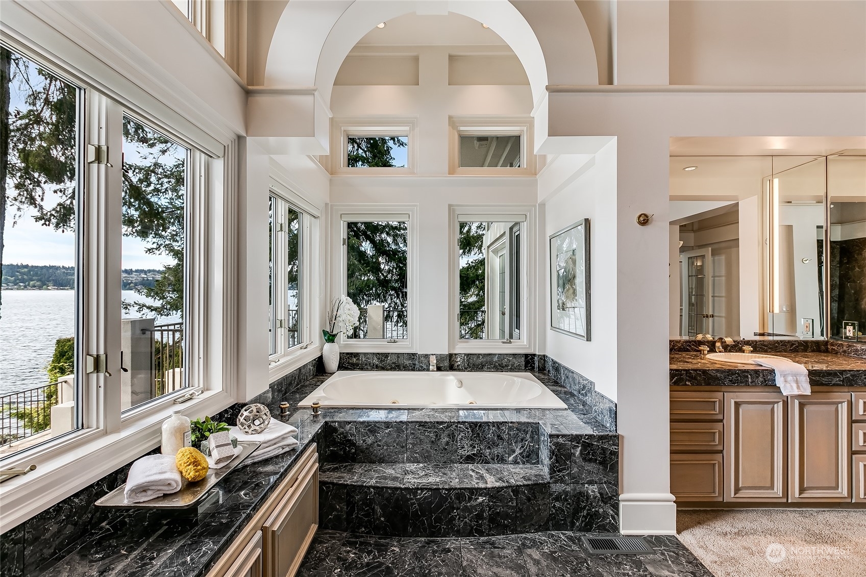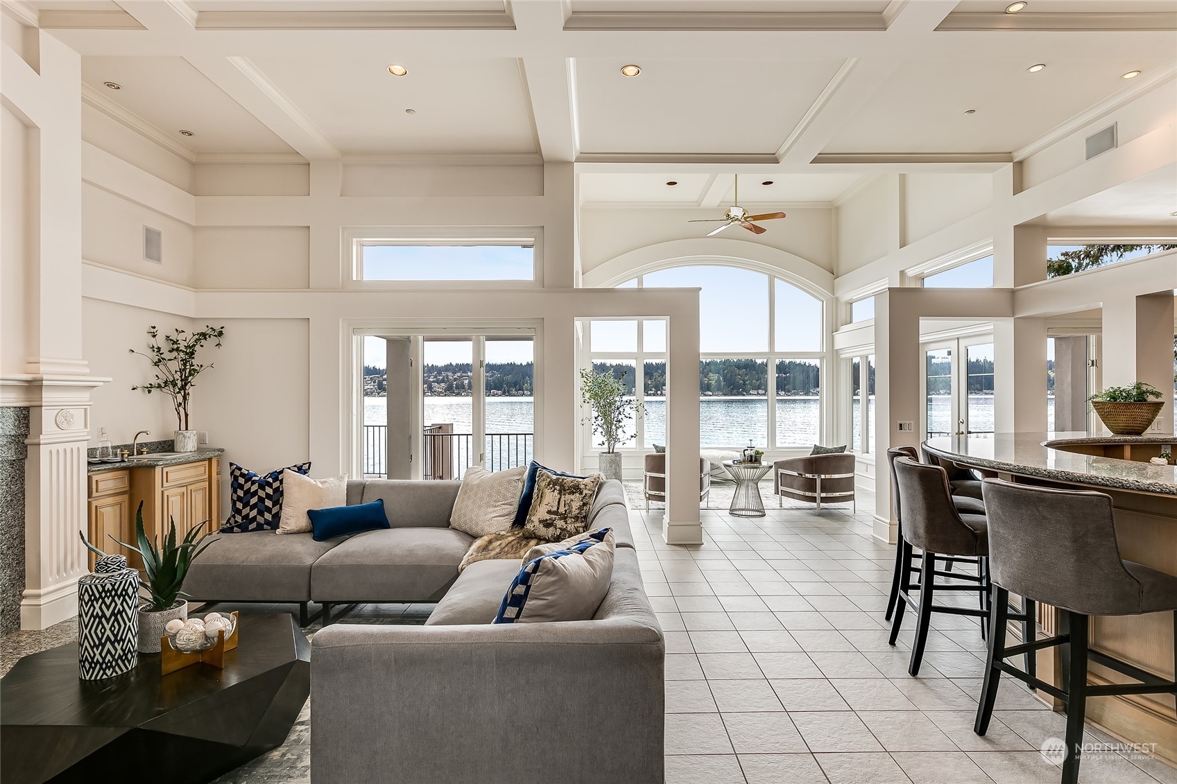 A contemporary icon on the shores of East Lake Sammamish, situated prominently on a point surrounded by 104’ of picturesque waterfront. Nestled amidst nature’s embrace, this ultra-private estate offers a gated entry and breathtaking SW-exposure for stunning nightly sunsets. Inside, a masterful interplay of space and geometry converges to celebrate light and sweeping lake views. Bold architectural lines anchor volumes of space, inviting you to explore further. Embark on leisurely boating adventures from your dock and bask in the sun’s warm embrace from the lakeside terrace. Each day begins with a sense of serenity and wonder from the main floor primary suite. Complete with lower-level wine cellar, spa bath and lakeside jacuzzi. A sanctuary.