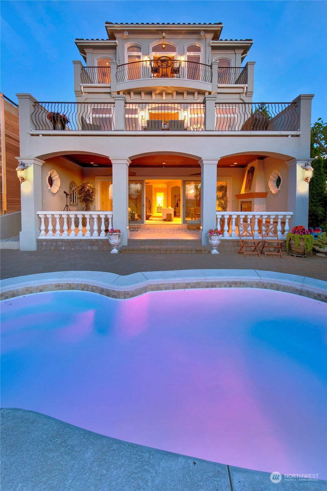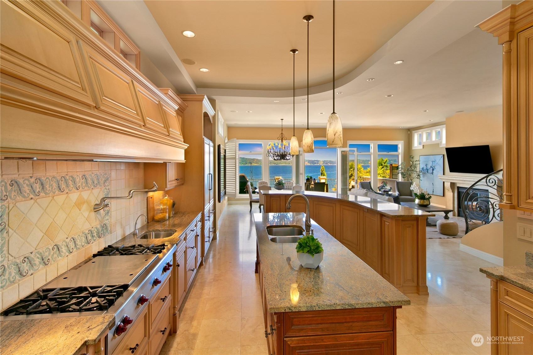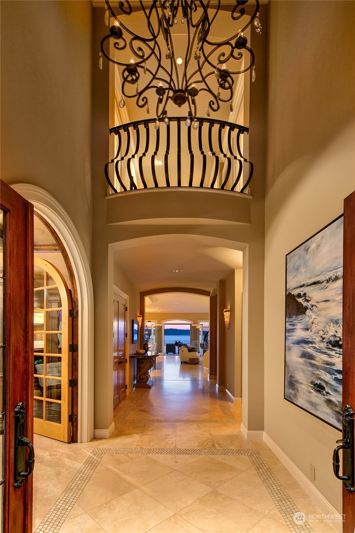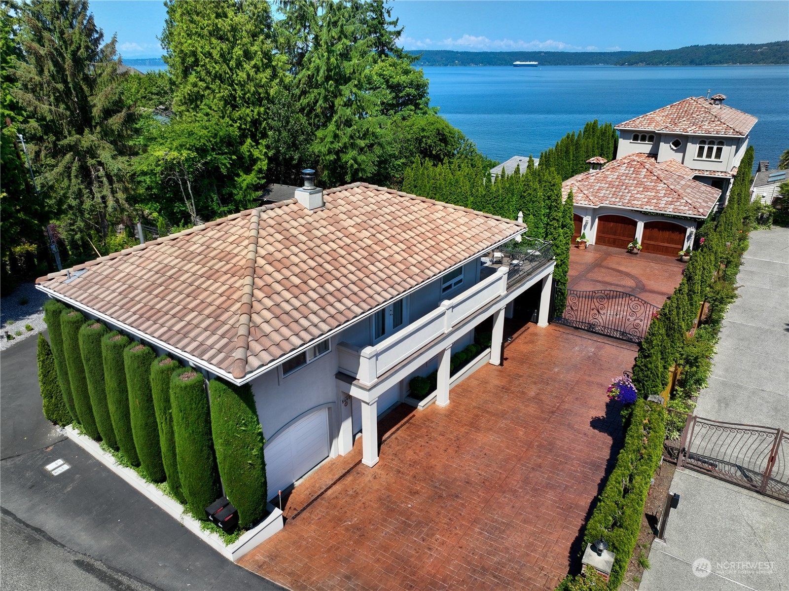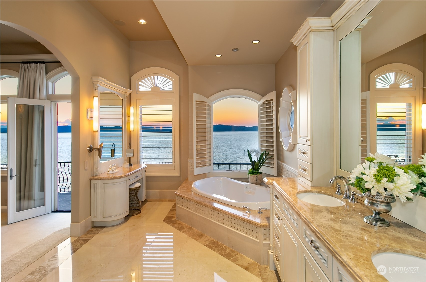 Il Palazzo Incantato/The Enchanted Palace. Worthy of Lake Como or the Italian Riviera, this lavish Caledonia Cove compound has it all. Rarely available low-bank waterfront with private beach and envy-inducing westerly vistas. Terraced formal gardens studded with cypresses, palms, and fragrant roses. A boathouse to stash your supersonic Belassi jet skis. A spacious guest lodge for fortunate long-term visitors. A statement automobile lodge fit to house your Berlinetta Lusso. An entertainment loggia with inground pool. A dazzling, monumentally proportioned palazzo oozing movie-set glamour, rich with exotic stone, replete with no-expense-spared comforts, including a residential elevator. Old World grandeur meets effortless West Coast elegance.