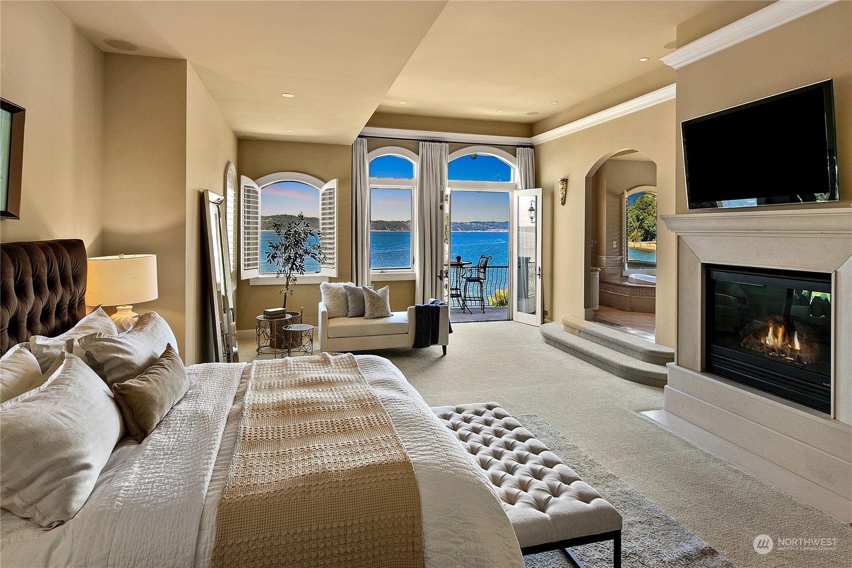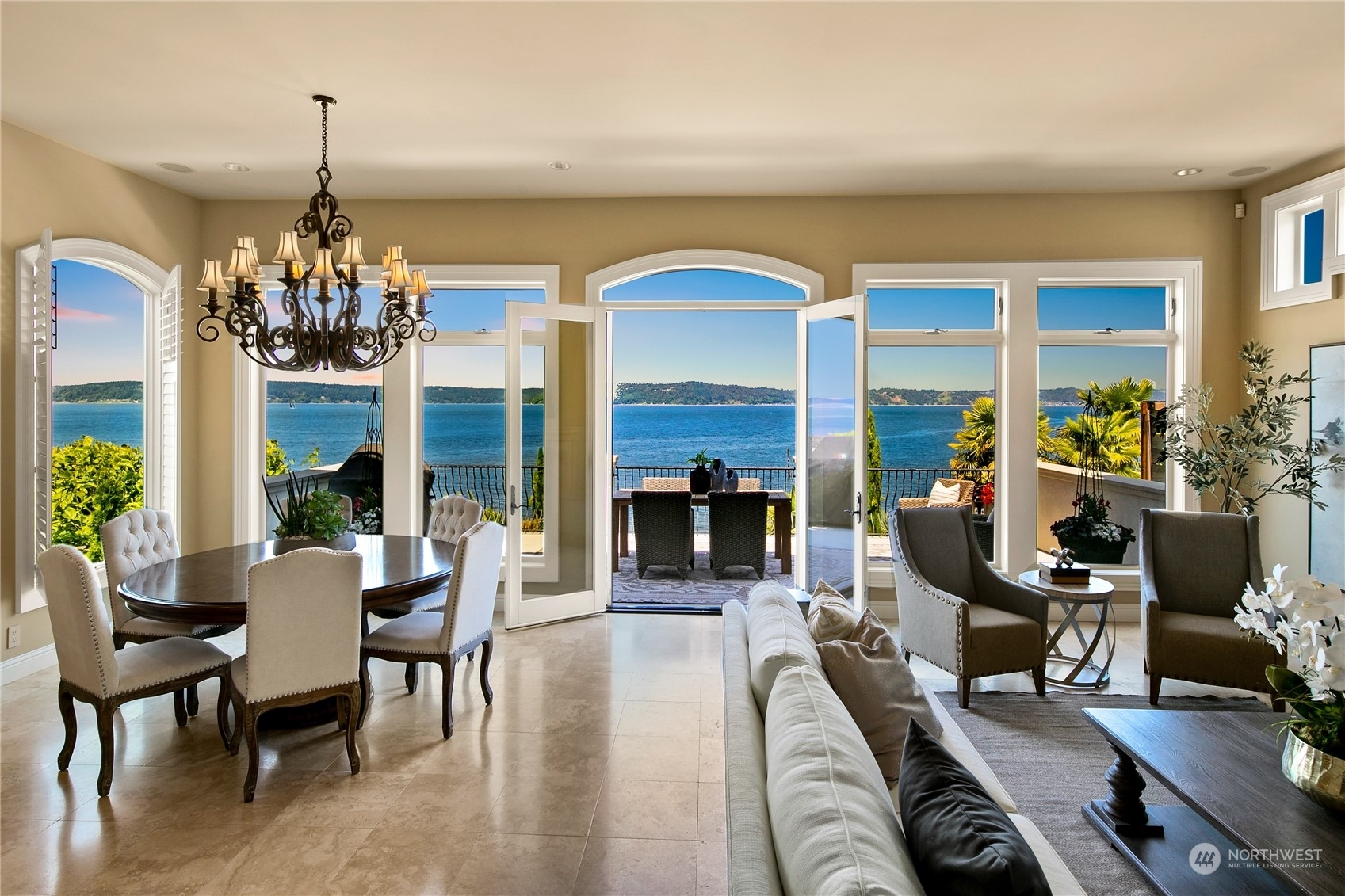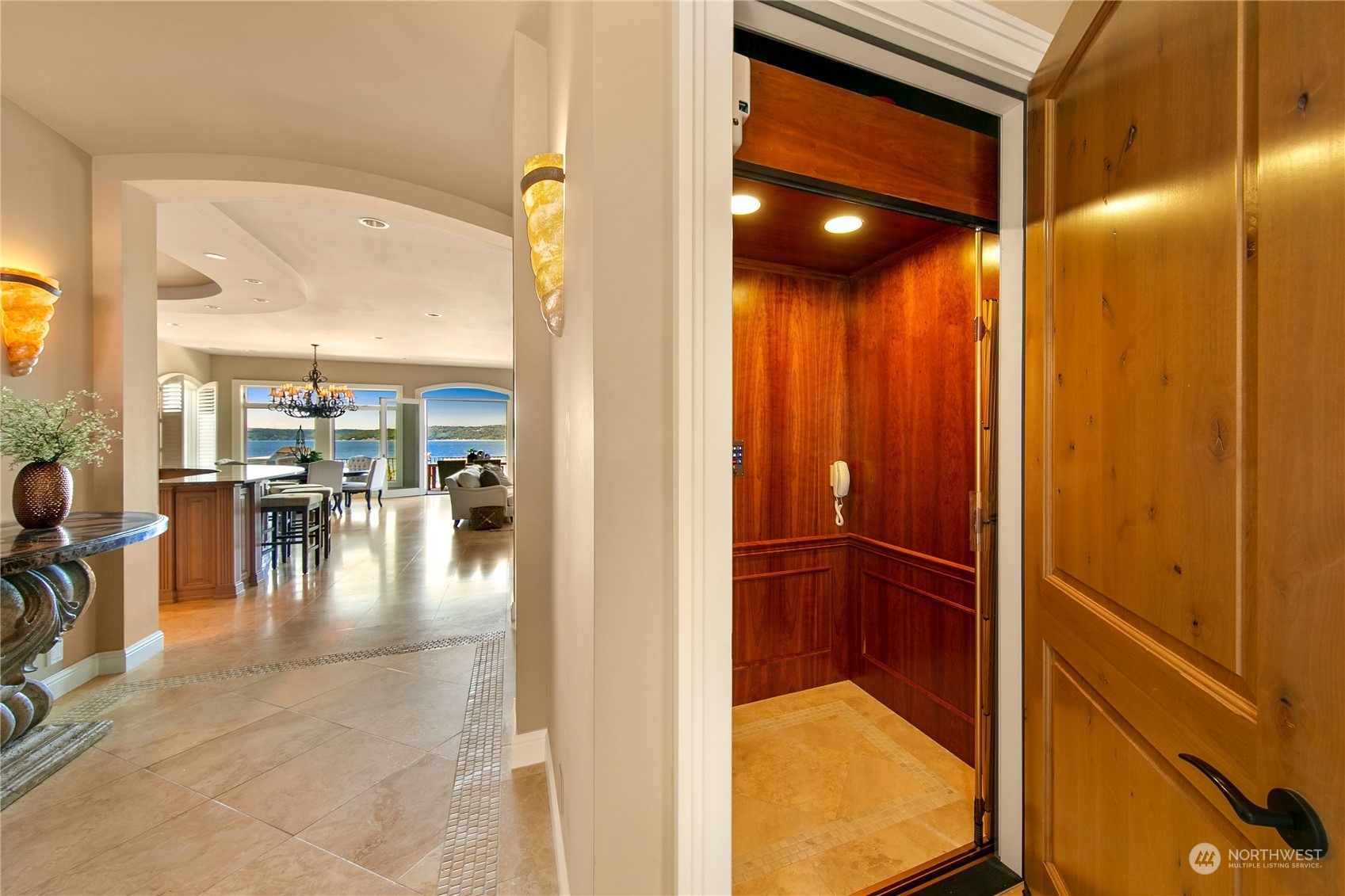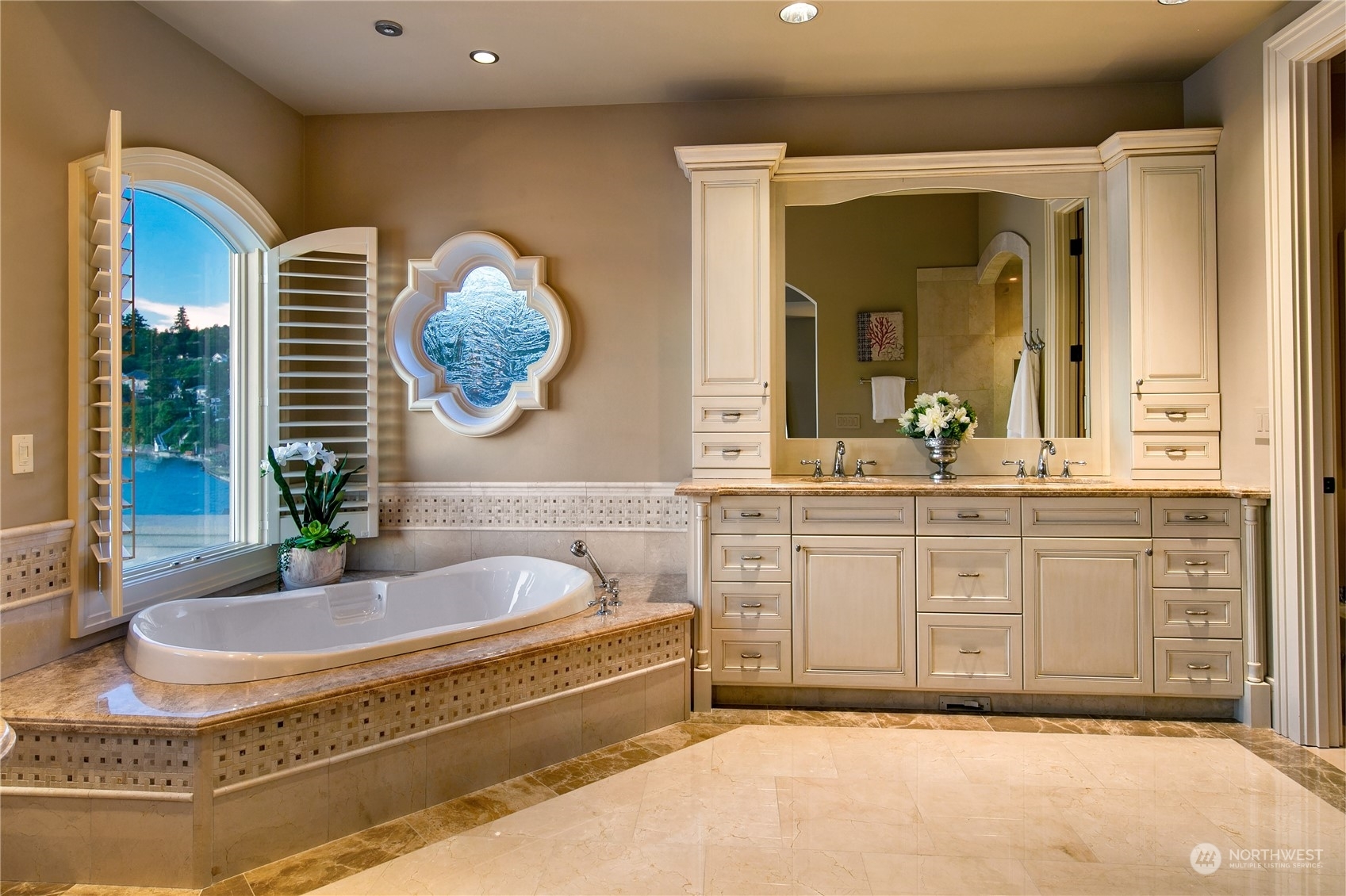 Il Palazzo Incantato/The Enchanted Palace. Worthy of Lake Como or the Italian Riviera, this lavish Caledonia Cove compound has it all. Rarely available low-bank waterfront with private beach and envy-inducing westerly vistas. Terraced formal gardens studded with cypresses, palms, and fragrant roses. A boathouse to stash your supersonic Belassi jet skis. A spacious guest lodge for fortunate long-term visitors. A statement automobile lodge fit to house your Berlinetta Lusso. An entertainment loggia with inground pool. A dazzling, monumentally proportioned palazzo oozing movie-set glamour, rich with exotic stone, replete with no-expense-spared comforts, including a residential elevator. Old World grandeur meets effortless West Coast elegance.