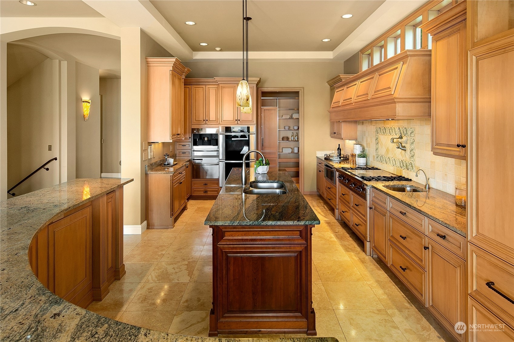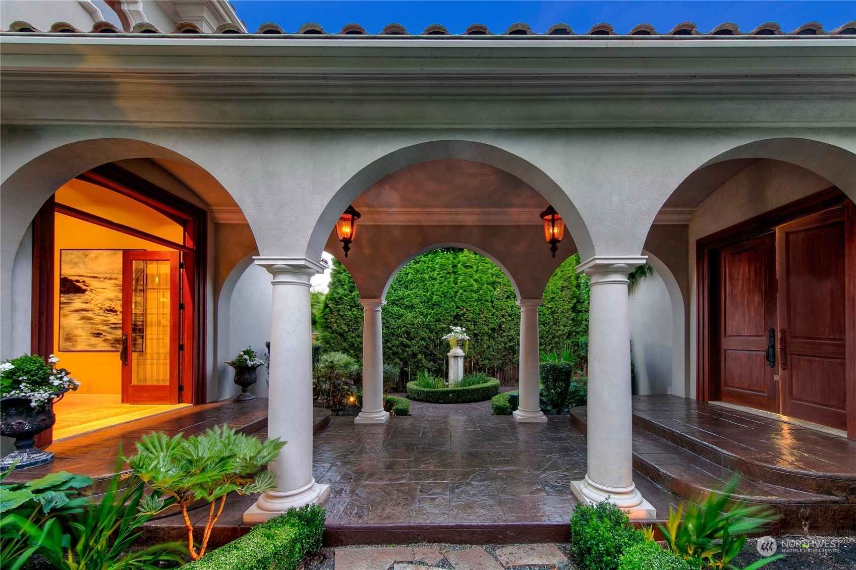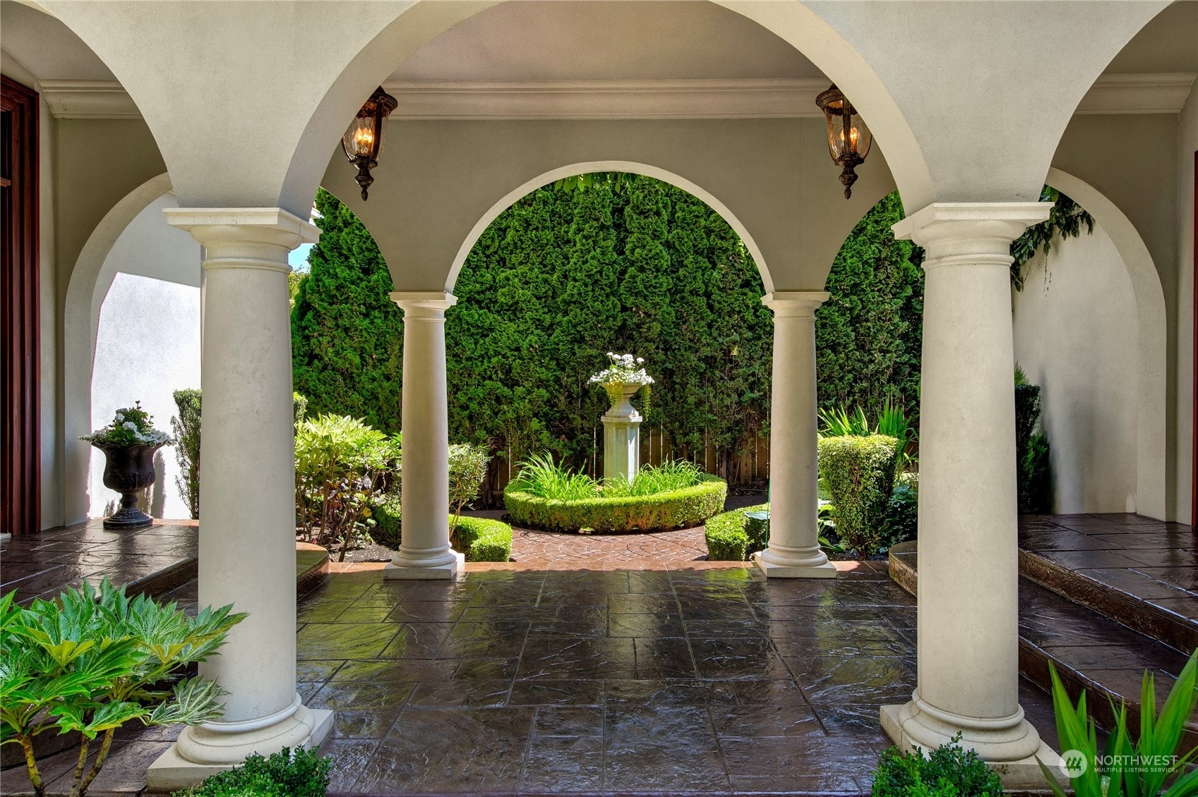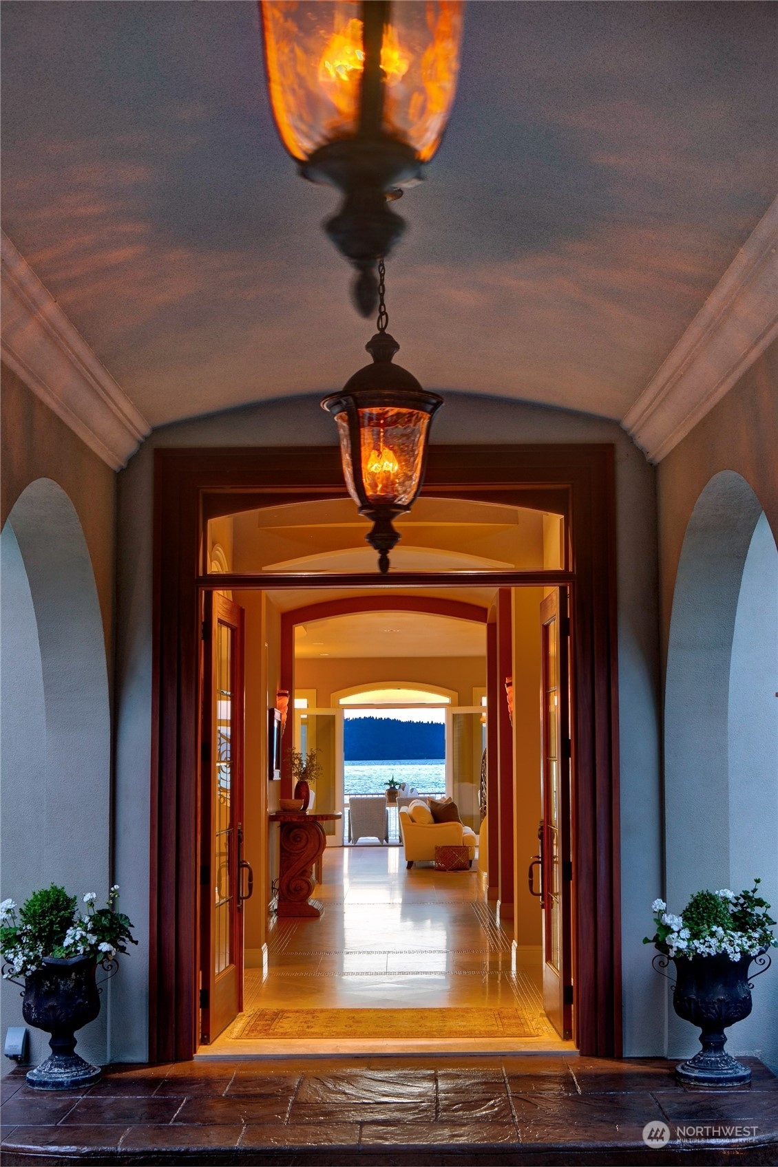 Il Palazzo Incantato/The Enchanted Palace. Worthy of Lake Como or the Italian Riviera, this lavish Caledonia Cove compound has it all. Rarely available low-bank waterfront with private beach and envy-inducing westerly vistas. Terraced formal gardens studded with cypresses, palms, and fragrant roses. A boathouse to stash your supersonic Belassi jet skis. A spacious guest lodge for fortunate long-term visitors. A statement automobile lodge fit to house your Berlinetta Lusso. An entertainment loggia with inground pool. A dazzling, monumentally proportioned palazzo oozing movie-set glamour, rich with exotic stone, replete with no-expense-spared comforts, including a residential elevator. Old World grandeur meets effortless West Coast elegance.