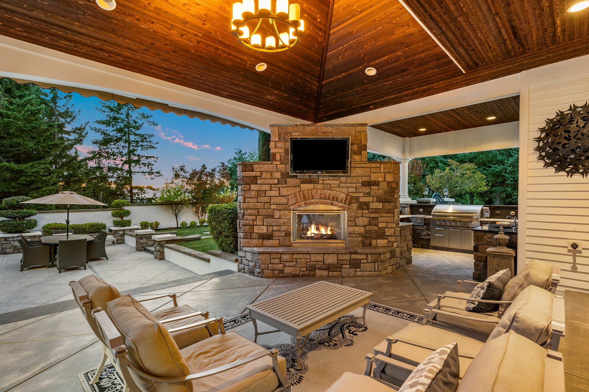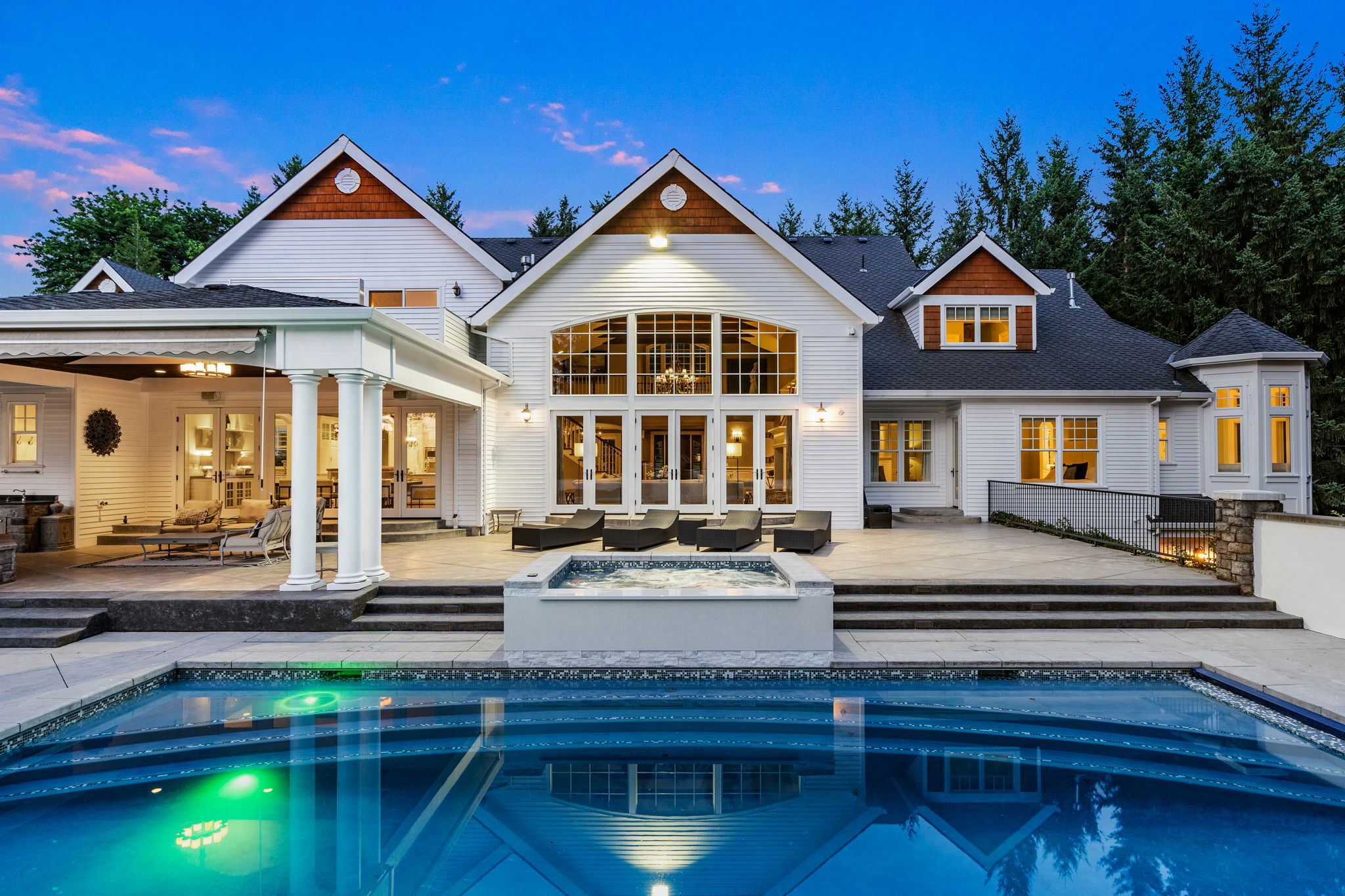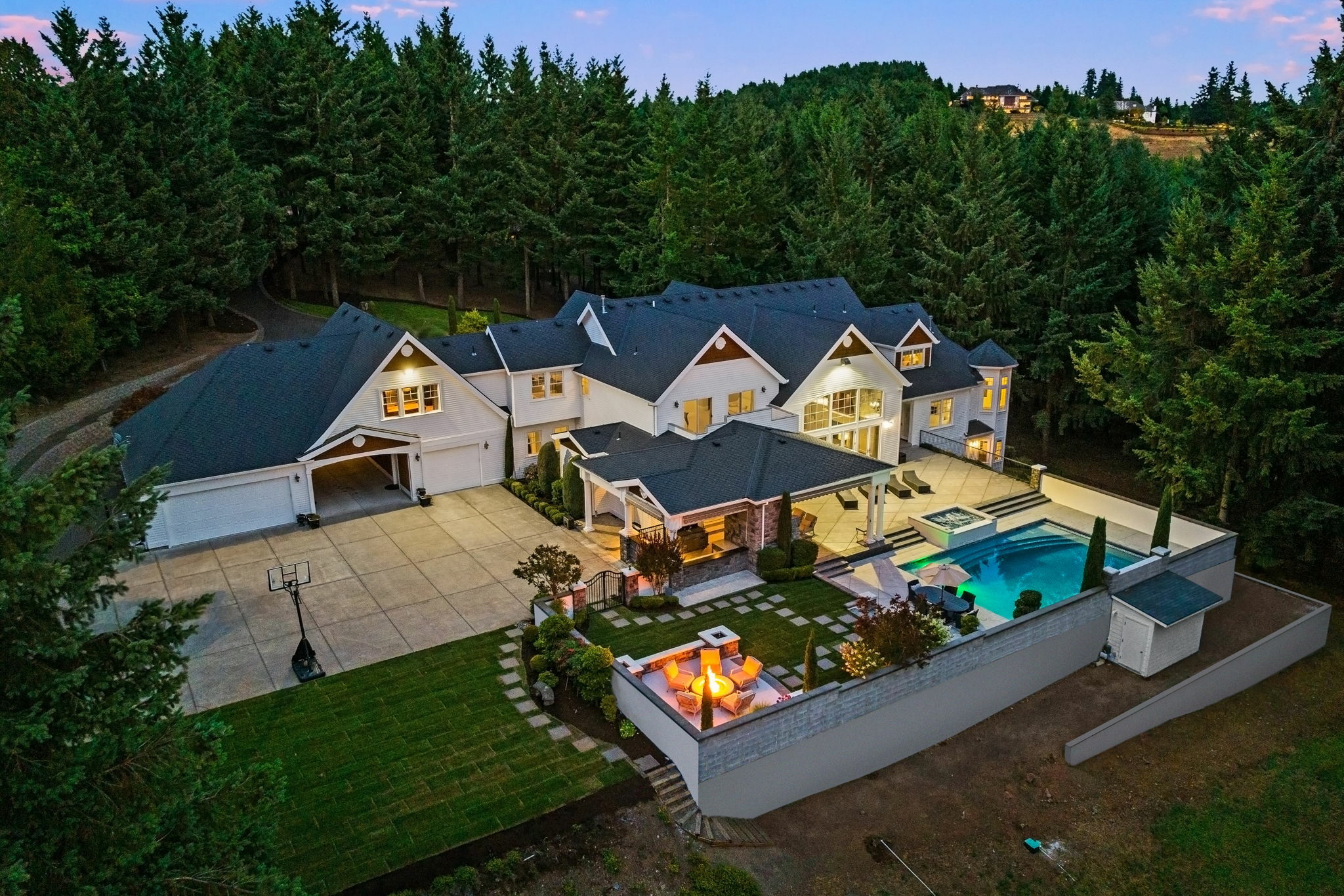 Welcome to your private sanctuary! Pass through the gate at the entrance of the property, and down the tree lined drive. You will be captivated by the striking grandeur of the Custom Hampton's Style Home that is the centerpiece of this 2-acre estate. The residence exudes timeless elegance, boasting a large primary suite on the main, in addition to 4 en-suite bedrooms, the residence offers en total 6 full baths, and 3 powder rooms. Originally designed adhering to Feng Shui principles by reputed Interior Designer Di Barker as her family's own personal residence, the home radiates positive energy. Every detail has been carefully crafted to create an inviting and comfortable living space. The gourmet kitchen is a chef's delight, equipped with top-of-the-line appliances, ample storage, and a spacious island perfect for entertaining guests. Step outside to resort like amenities within the expansive outdoor living area, featuring pool, spa, covered outdoor kitchen, fireplace, and fire pit. The perfect setting to host unforgettable gatherings with family and friends. Whether it's a summer barbecue by the pool or a cozy evening around the fire pit, this estate provides the ultimate setting for making cherished memories. The lower health & wellness level is accessed via a secret staircase hidden behind a bookshelf, and offers a gym, and adjacent full bath equipped with a steam shower. In addition to independent 1bed/1bath guest quarters with a full kitchen & with both interior and exterior points of entry. Located in the highly sought-after West Linn community, you'll enjoy easy access to top-rated schools, shopping, dining, and outdoor activities. Experience the best of both worlds secluded privacy and urban convenience.