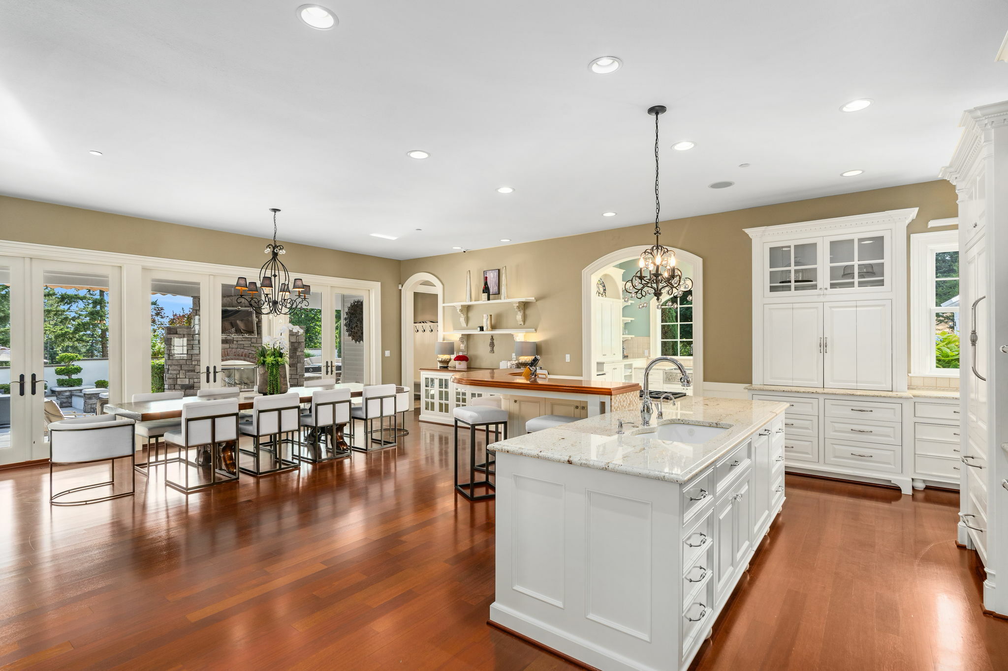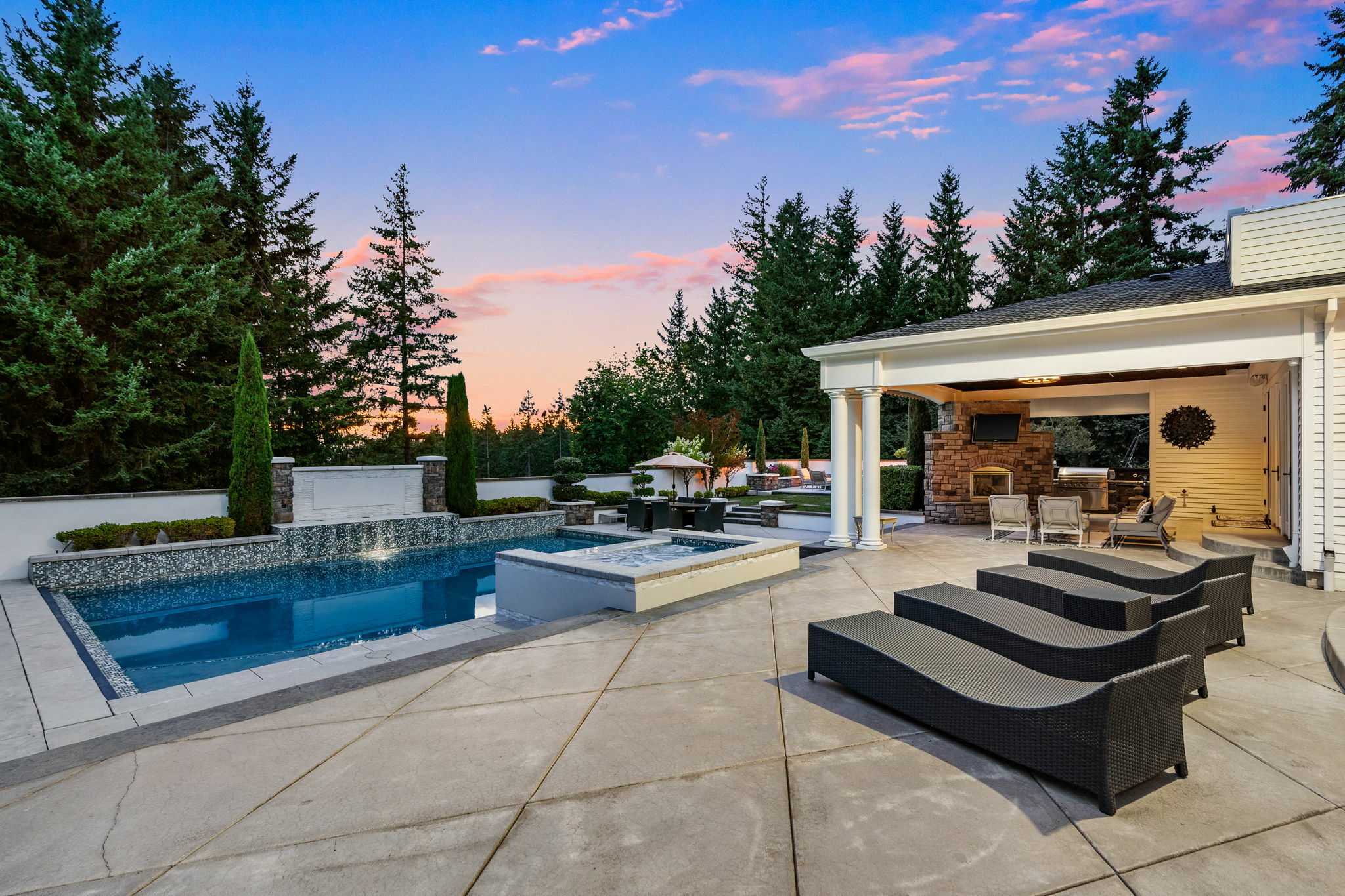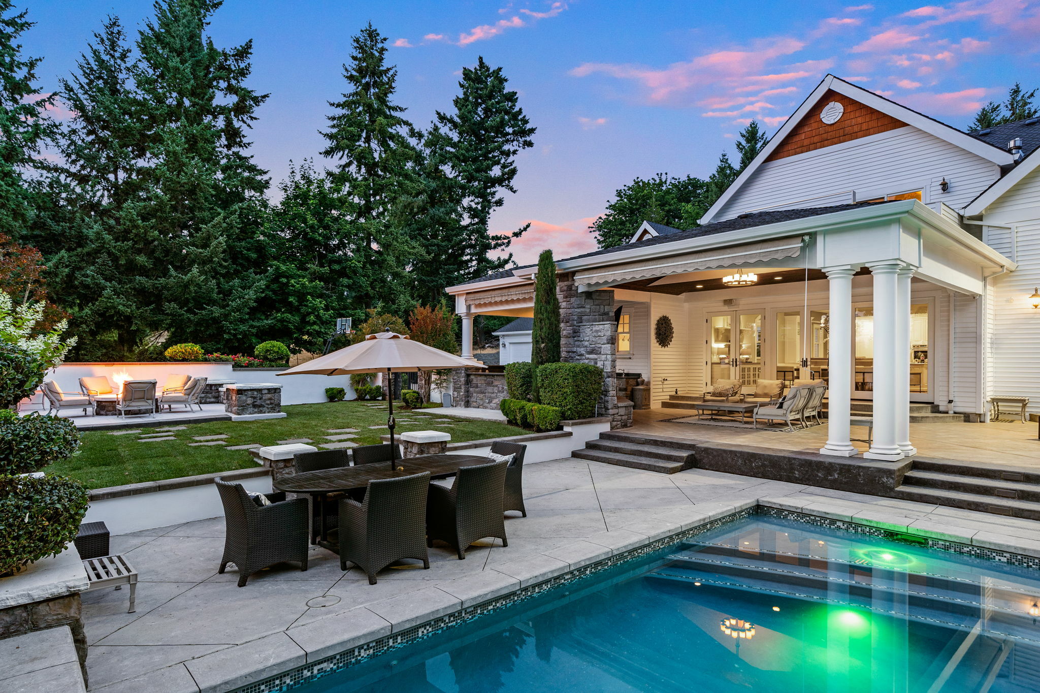 Welcome to your private sanctuary! Pass through the gate at the entrance of the property, and down the tree lined drive. You will be captivated by the striking grandeur of the Custom Hampton's Style Home that is the centerpiece of this 2-acre estate. The residence exudes timeless elegance, boasting a large primary suite on the main, in addition to 4 en-suite bedrooms, the residence offers en total 6 full baths, and 3 powder rooms. Originally designed adhering to Feng Shui principles by reputed Interior Designer Di Barker as her family's own personal residence, the home radiates positive energy. Every detail has been carefully crafted to create an inviting and comfortable living space. The gourmet kitchen is a chef's delight, equipped with top-of-the-line appliances, ample storage, and a spacious island perfect for entertaining guests. Step outside to resort like amenities within the expansive outdoor living area, featuring pool, spa, covered outdoor kitchen, fireplace, and fire pit. The perfect setting to host unforgettable gatherings with family and friends. Whether it's a summer barbecue by the pool or a cozy evening around the fire pit, this estate provides the ultimate setting for making cherished memories. The lower health & wellness level is accessed via a secret staircase hidden behind a bookshelf, and offers a gym, and adjacent full bath equipped with a steam shower. In addition to independent 1bed/1bath guest quarters with a full kitchen & with both interior and exterior points of entry. Located in the highly sought-after West Linn community, you'll enjoy easy access to top-rated schools, shopping, dining, and outdoor activities. Experience the best of both worlds secluded privacy and urban convenience.