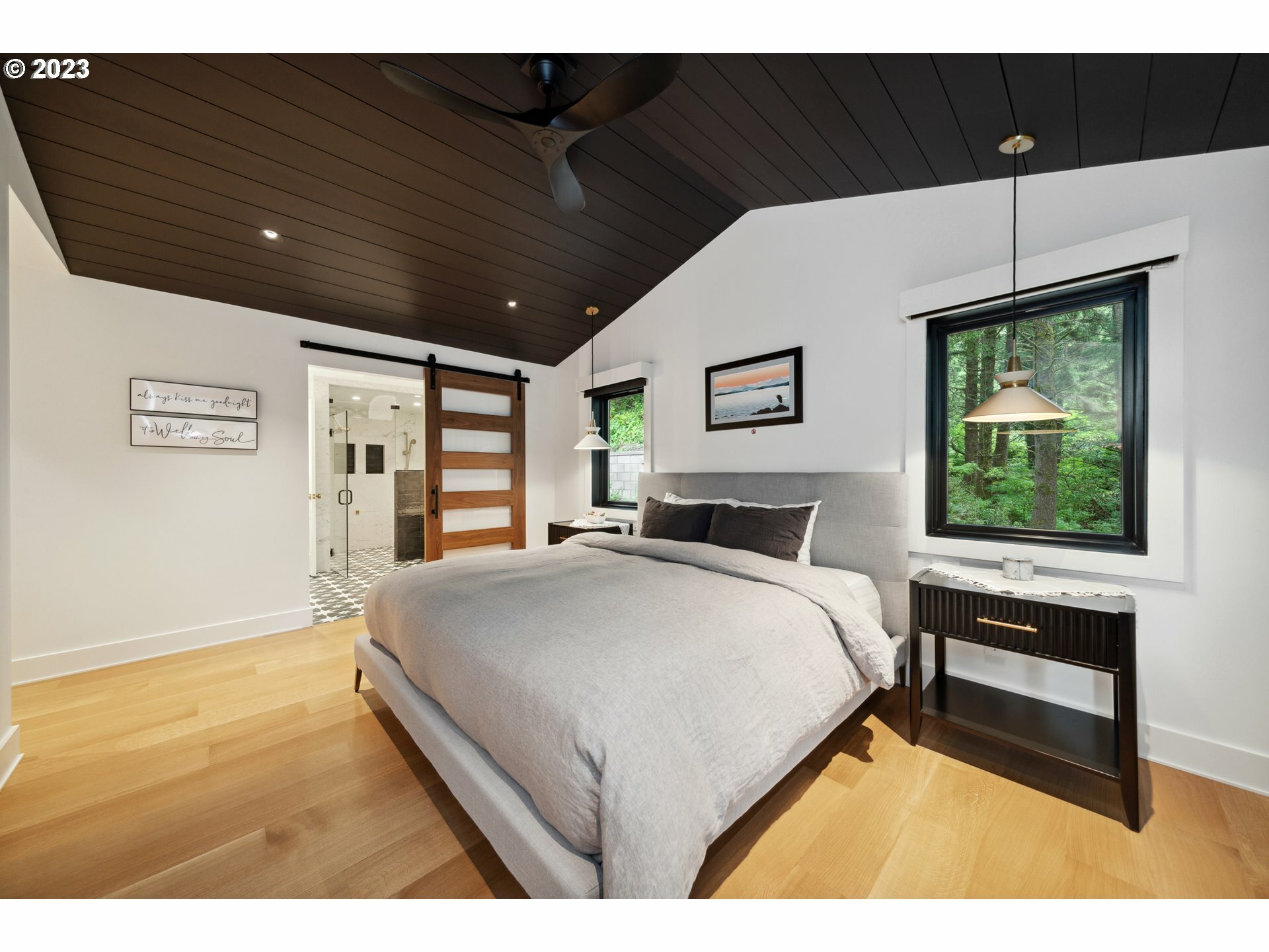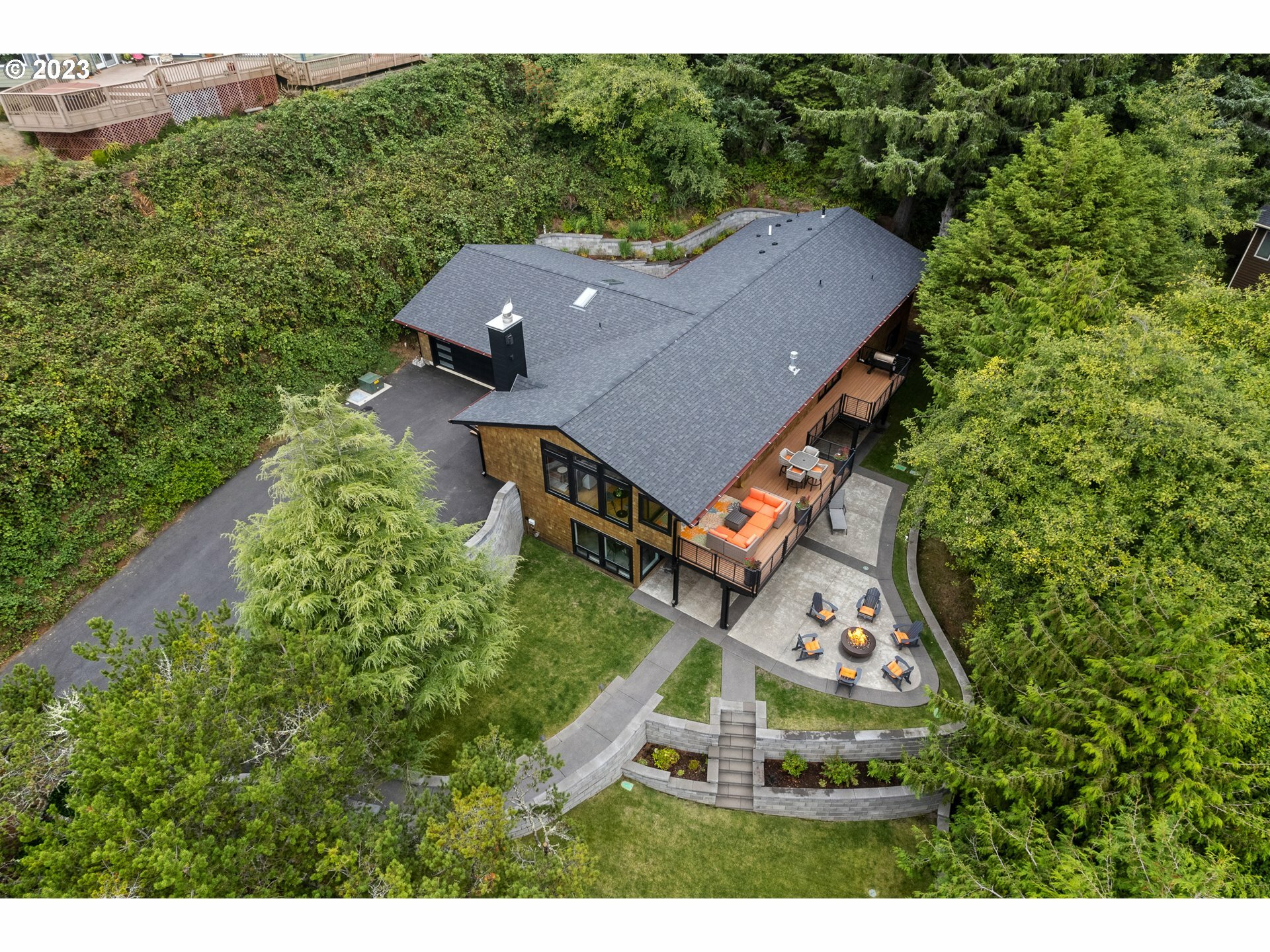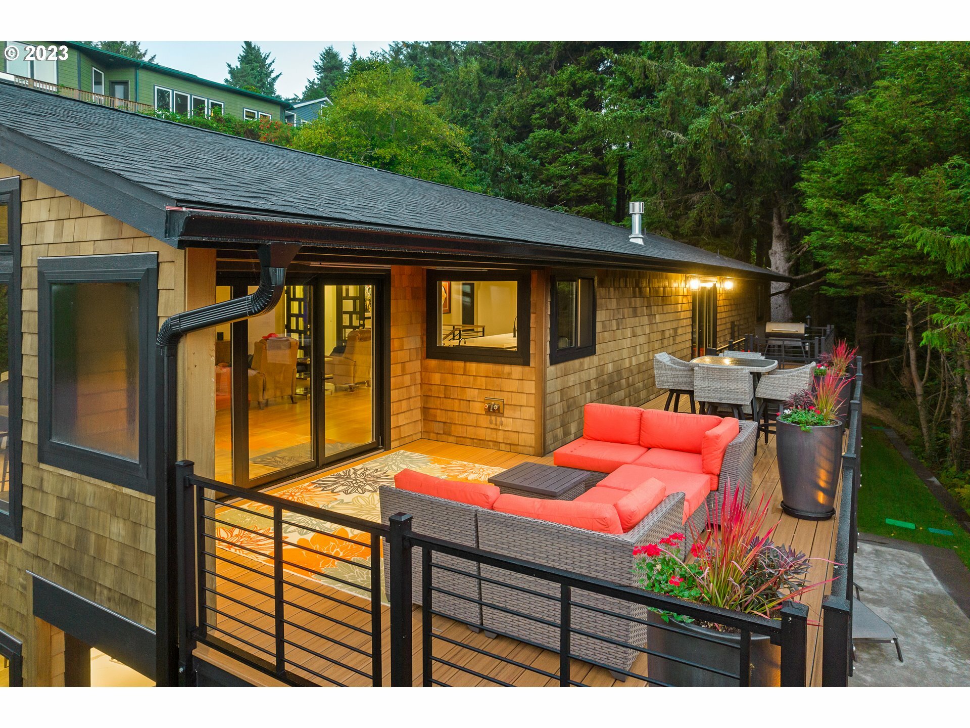 Perhaps the most exquisite home in all of Cannon Beach...A 'must' see to believe! Tucked high upon a unique ocean view perch, enter your coastal oasis thru enclosed breezeway w/double doors leading into a vaulted beamed ceiling Greatroom w/expansive wall of windows to take in a private wooded bliss; open your NanaWall to bring the outdoor living in or relax undercover w/infrared ceiling heaters on Trex deck spanning the entire length of this spectacular home. Primary main level ensuite w/Movie Star Like Walk-in Closet, Roll-in Steam Shower & Soaking Tub; lower level Familyroom w/kitchenette that spills out on to aggregate concrete patio w/Natural Gas Firepit & pathways surrounding the entire house w/terraced sprinklered landscaping; Features to numerous to count...Work-out room w/Sauna, Smart Home Technology throughout, Whole House Generator, Zonal Electric Blinds, Dedicated Mechanics Room, Radiant Heated Floors Upper & Lower Levels, 2 Laundry Rooms and striking Ocean views and so much more!