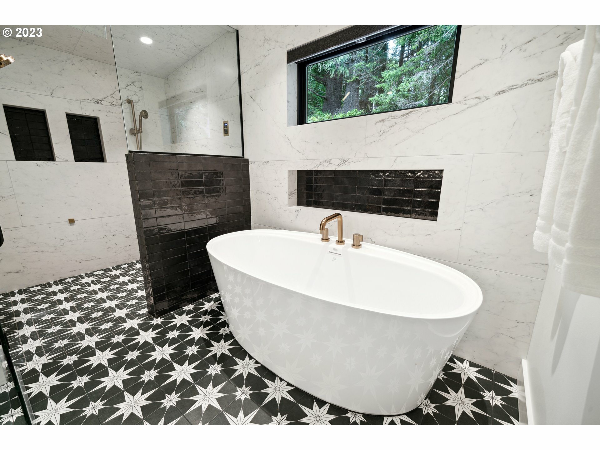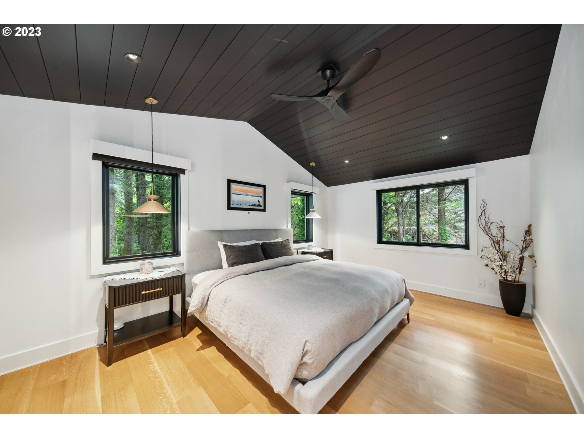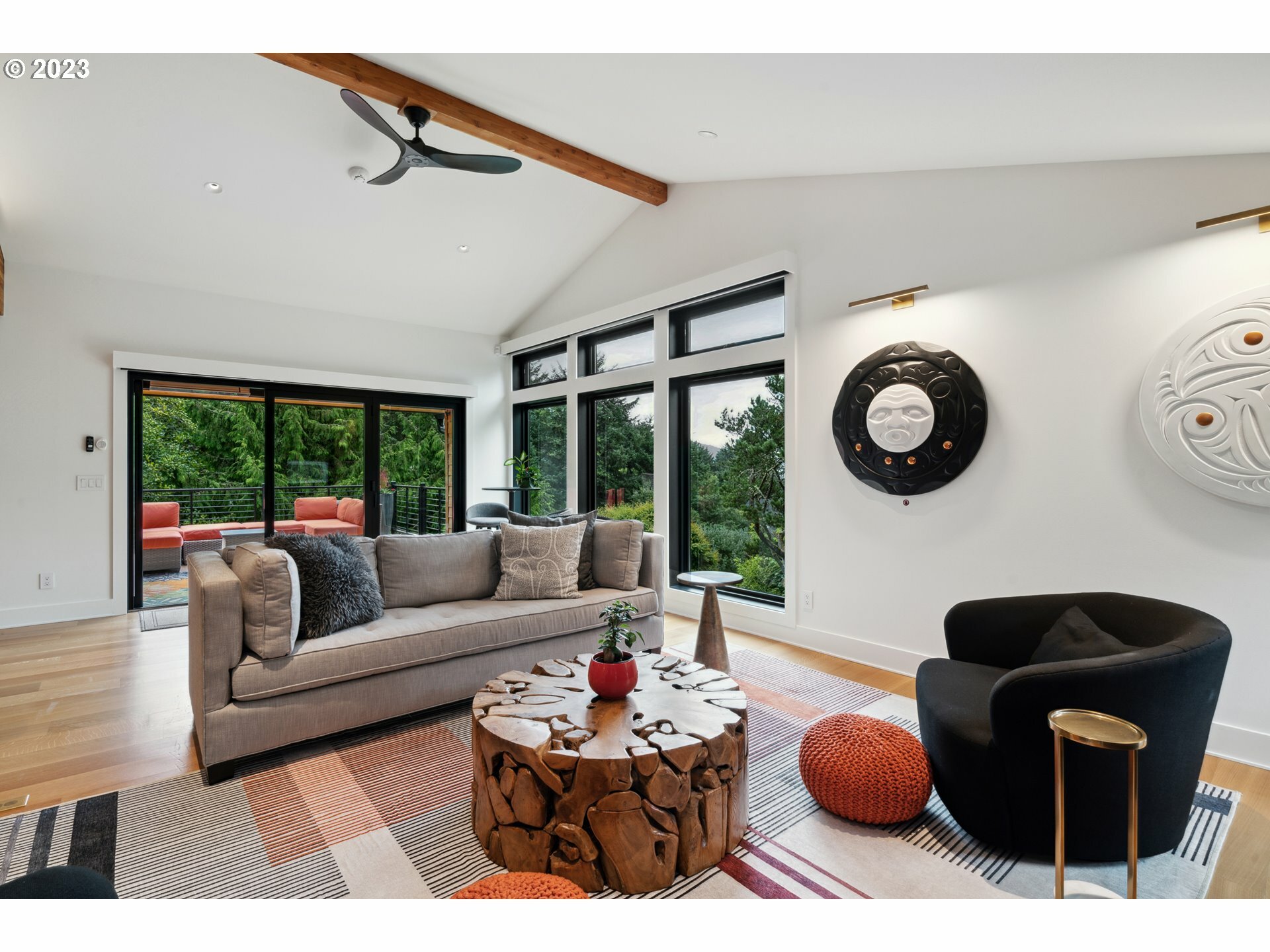 Perhaps the most exquisite home in all of Cannon Beach...A 'must' see to believe! Tucked high upon a unique ocean view perch, enter your coastal oasis thru enclosed breezeway w/double doors leading into a vaulted beamed ceiling Greatroom w/expansive wall of windows to take in a private wooded bliss; open your NanaWall to bring the outdoor living in or relax undercover w/infrared ceiling heaters on Trex deck spanning the entire length of this spectacular home. Primary main level ensuite w/Movie Star Like Walk-in Closet, Roll-in Steam Shower & Soaking Tub; lower level Familyroom w/kitchenette that spills out on to aggregate concrete patio w/Natural Gas Firepit & pathways surrounding the entire house w/terraced sprinklered landscaping; Features to numerous to count...Work-out room w/Sauna, Smart Home Technology throughout, Whole House Generator, Zonal Electric Blinds, Dedicated Mechanics Room, Radiant Heated Floors Upper & Lower Levels, 2 Laundry Rooms and striking Ocean views and so much more!