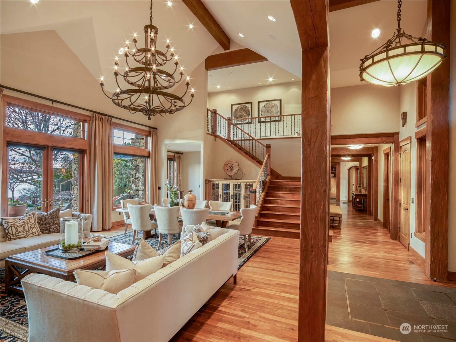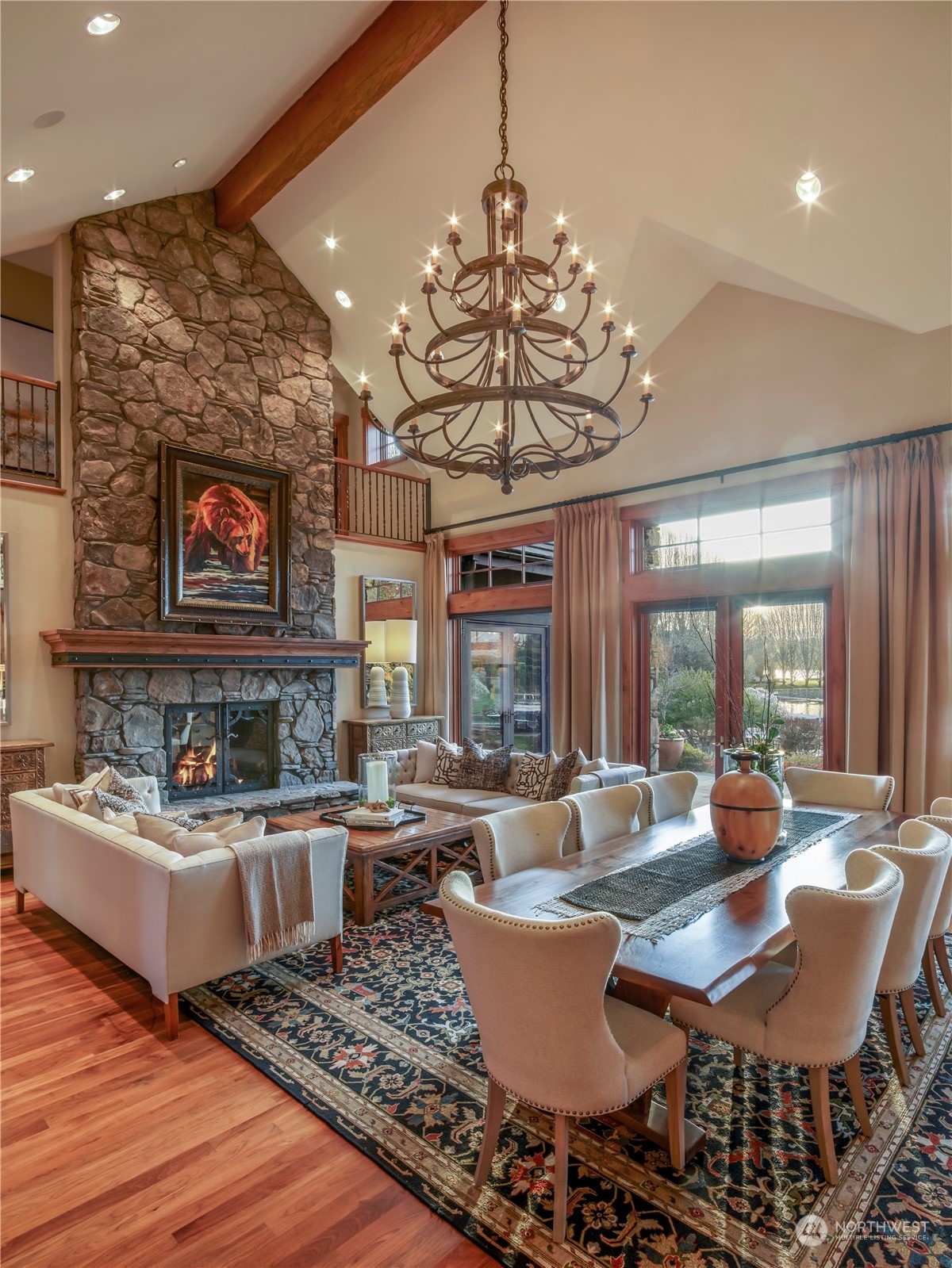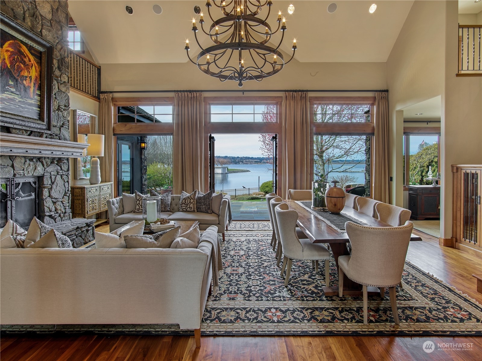 *Seller Financing Opportunity* - Unparalleled luxury lodge on 75’ of waterfront in prestigious Weber Point. This custom-built MacPherson home was designed to evoke the rugged sophistication of a mountain refuge with a relaxed lakefront disposition. A stunning composition of stone, wood and glass oriented to capture breathtaking lake views. Entertain effortlessly with grand 2-story great room flanked by 2 distinctive wings dedicated to recreation and rejuvenation, including a 2nd full kitchen and guest quarters on the main level. The ultimate waterfront experience with expansive bluestone patio, covered BBQ kitchen and large U-shaped dock with boat/jet ski lifts. Luxurious amenities including a sport court, wine cellar and 4-car garage.