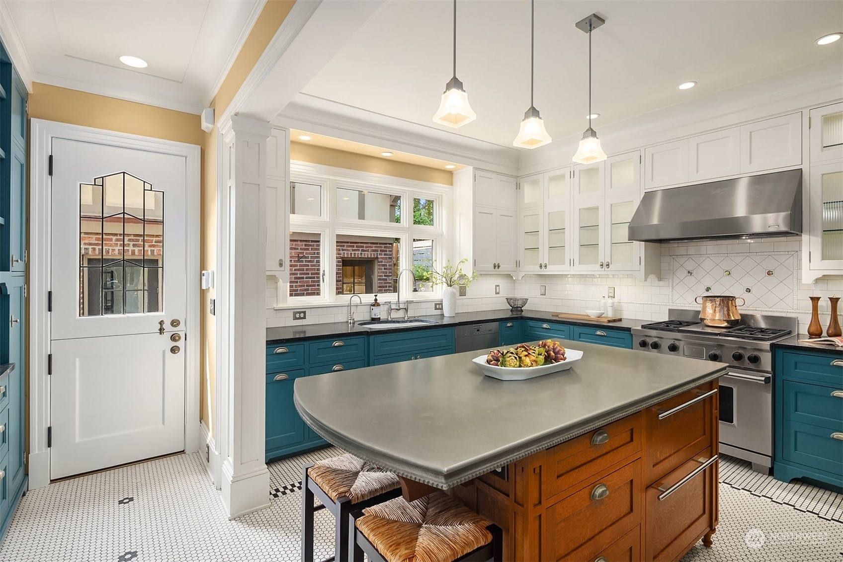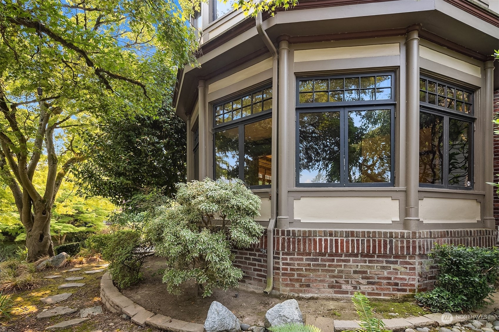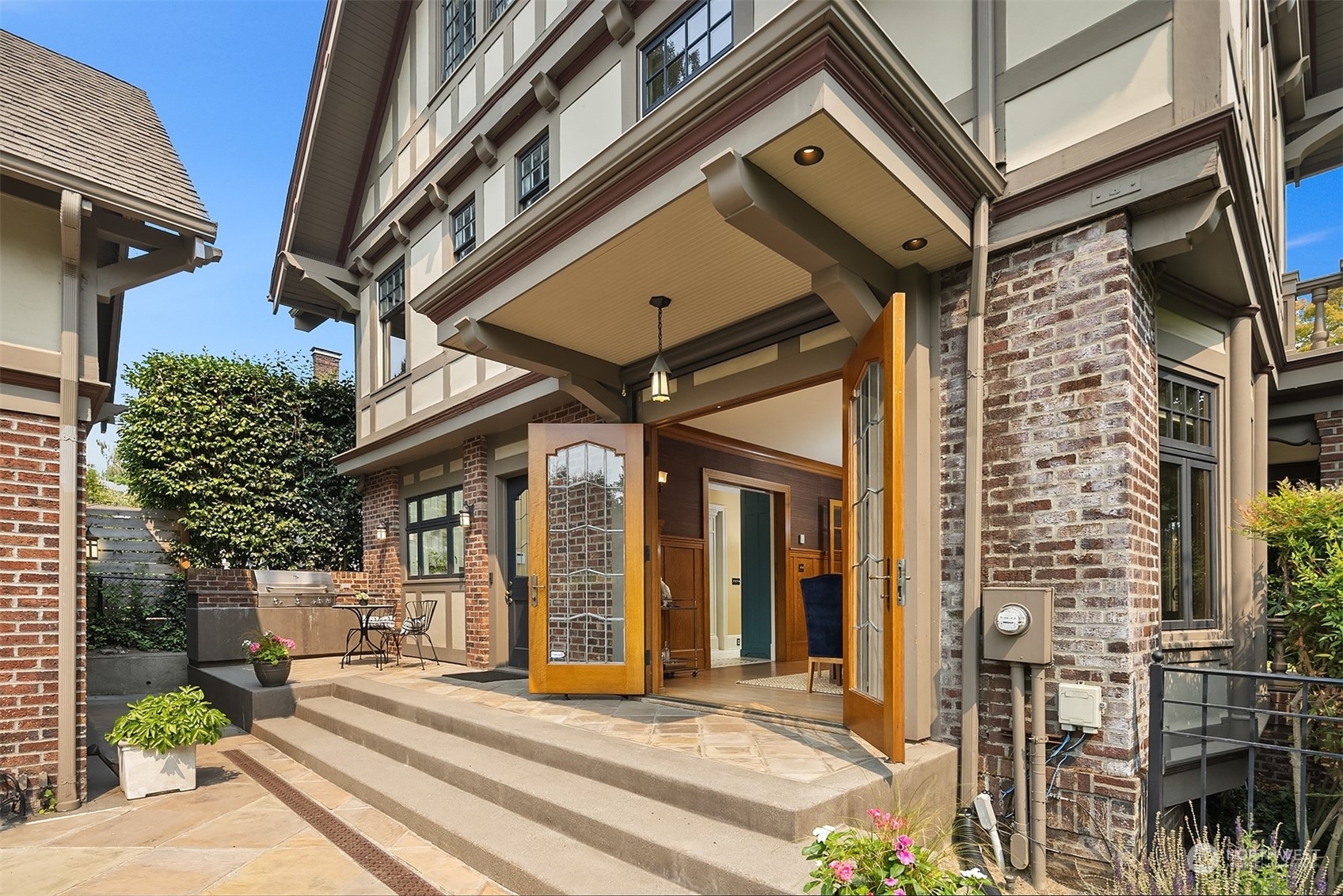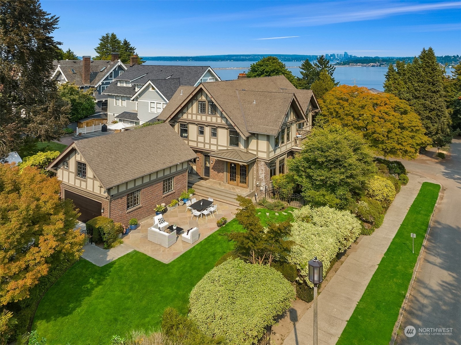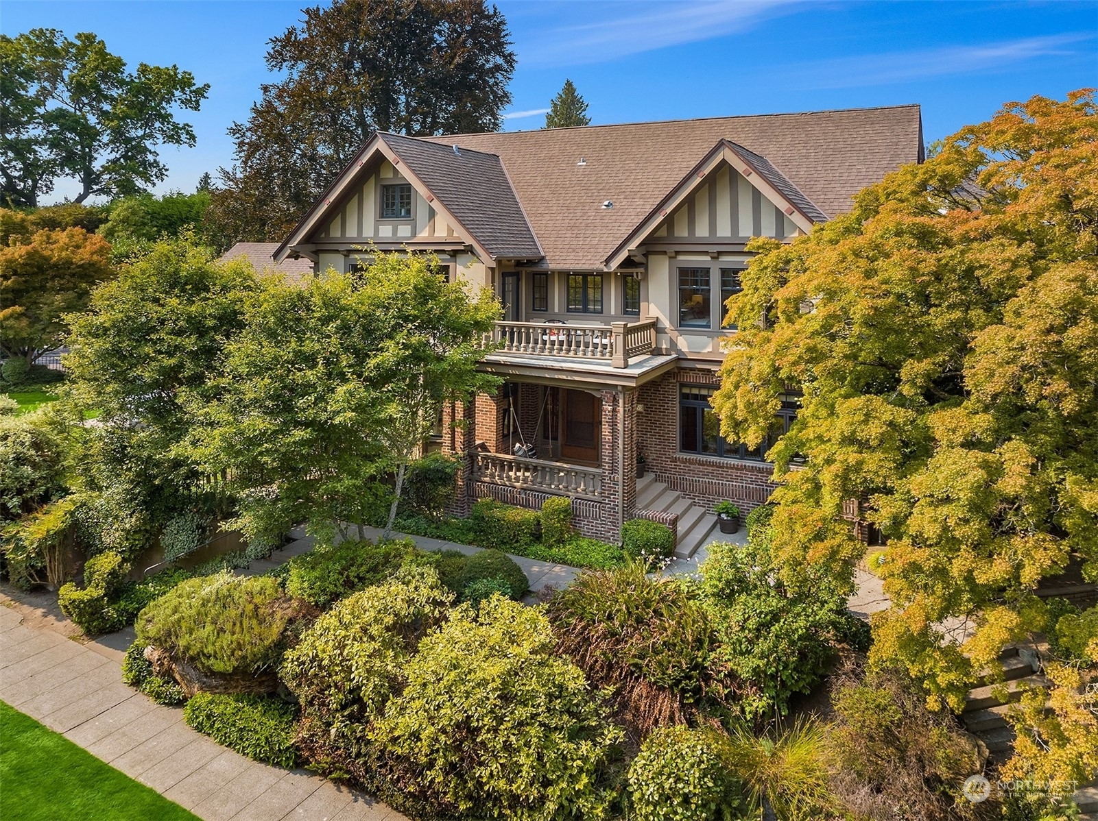 Stately 1916 brick & half timber Tudor designed by Charles Haynes prominently sited on prime lush corner with lake & mountain views and just featured on the 2022 Mount Baker Home Tour. Privacy and filled with natural light, the home has been extensively updated while preserving the classical architectural details- grand flowing rooms, open staircase, leaded & stained glass windows and French doors. Open kitchen w/heated tile floors, pewter island and dining room provide easy access to sunny SW facing level backyard for everyday living & entertaining. Remodeled primary suite w/AC + room for all on upper two levels. Carriage house has 2 car garage (EV chg), living space, ¾ bath, AC. Live the lakeside lifestyle!