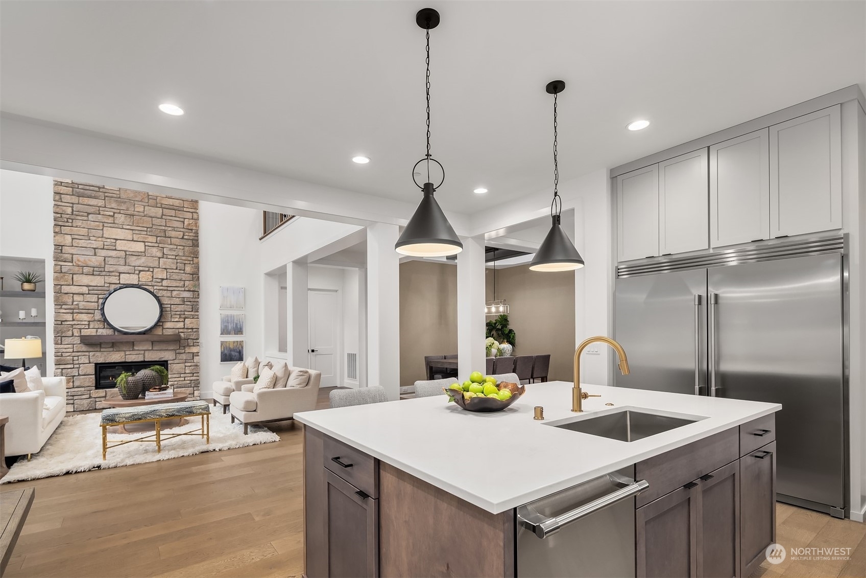 Stunning new construction by local renowned builder Murray Franklyn! Spacious home featuring family room w/soaring ceilings & abundant windows for natural light. Boasting 5 BD & 4.5 BA, including main level Den & Guest Suite w/an attached ensuite & covered porch. Exquisite kitchen equipped w/SS appliances, large island, mini fridge, & working pantry w/additional sink. Dining area w/beams & open-to-above ceiling. Hardwood flooring & plush carpet run throughout. Covered patio w/fireplace is perfect for entertaining. The second level includes a stunning Primary Bedroom w/5-piece ensuite & spacious walk-in closet. Three additional bedrooms; two w/jack & jill bathroom & one with its own ensuite. Large Rec Room, study area, & laundry facilities.