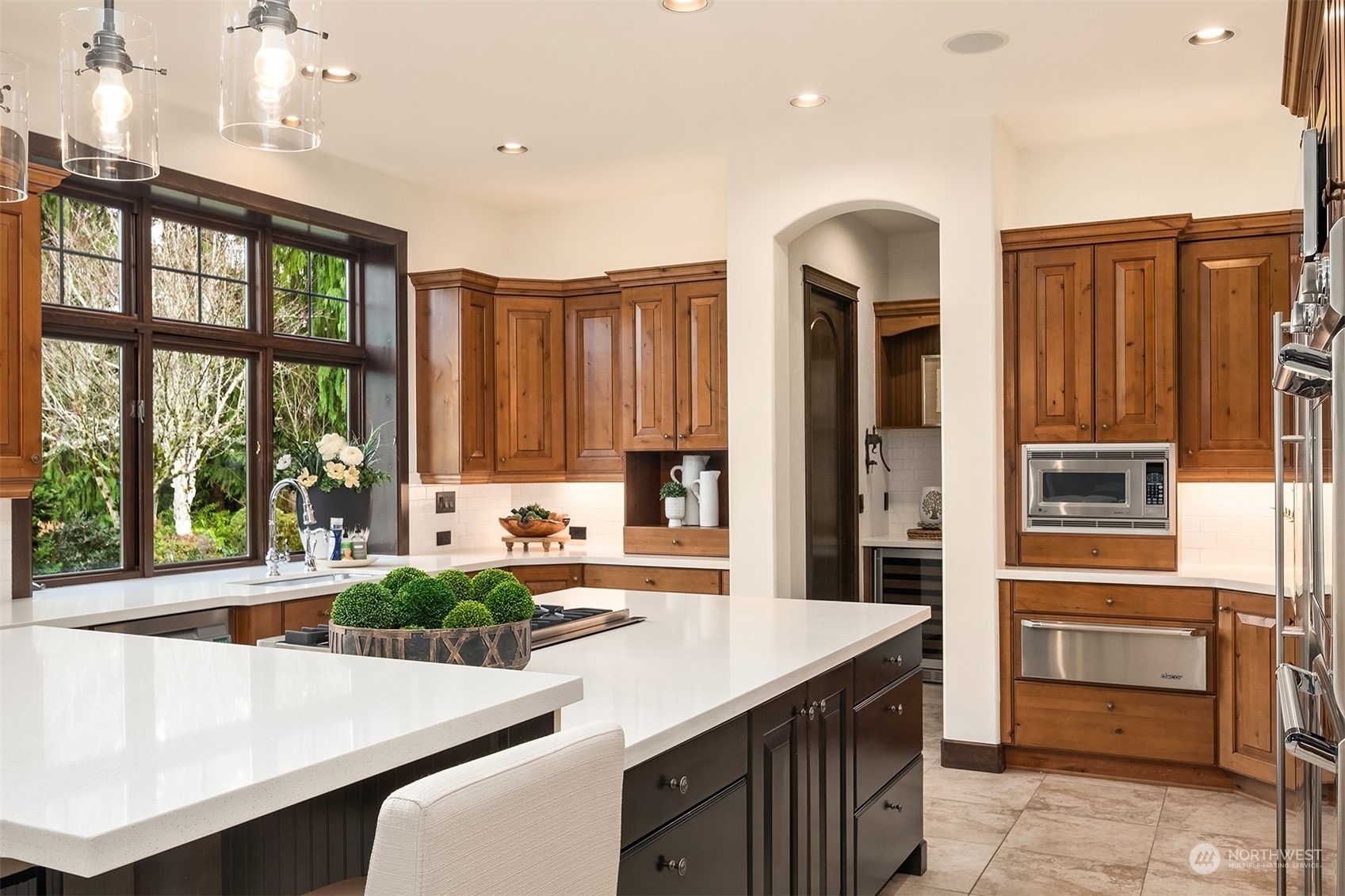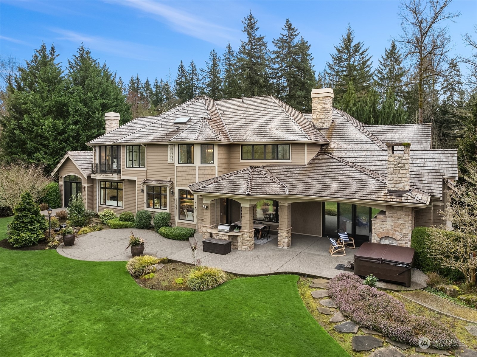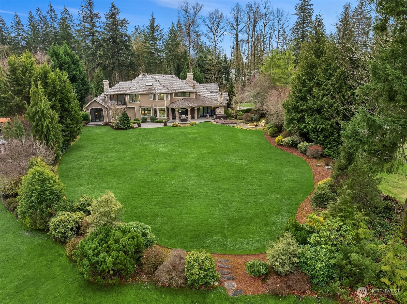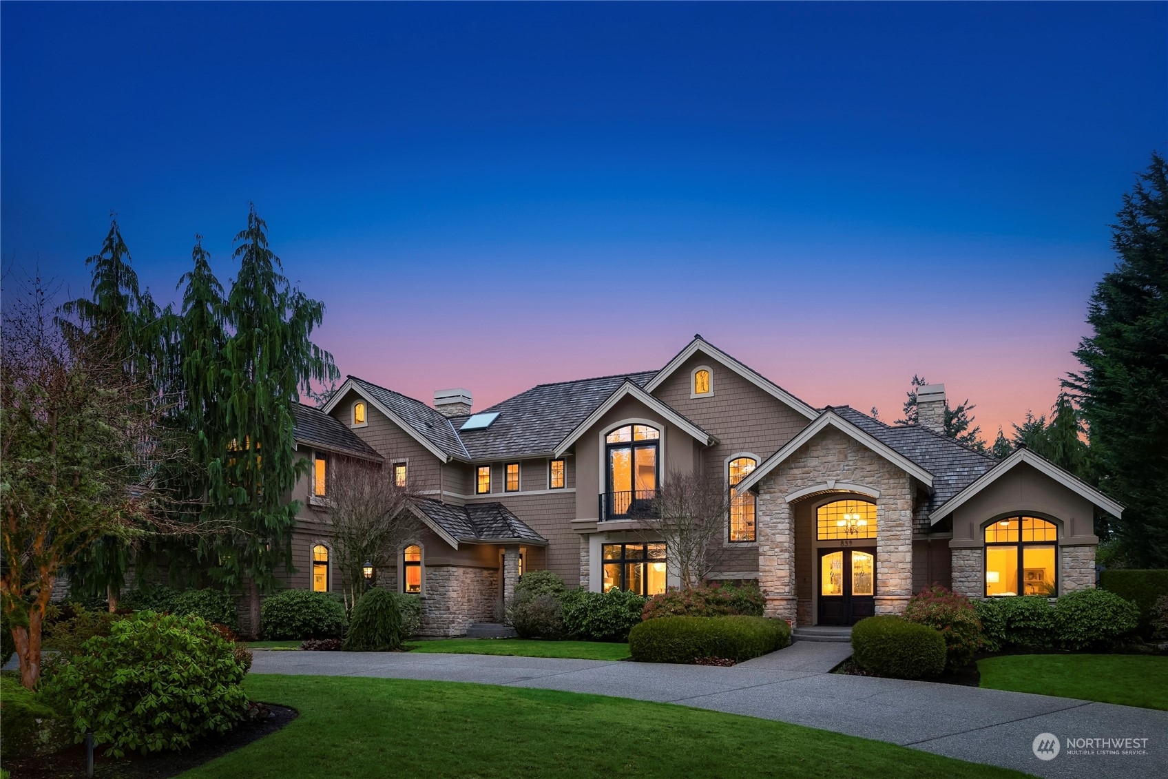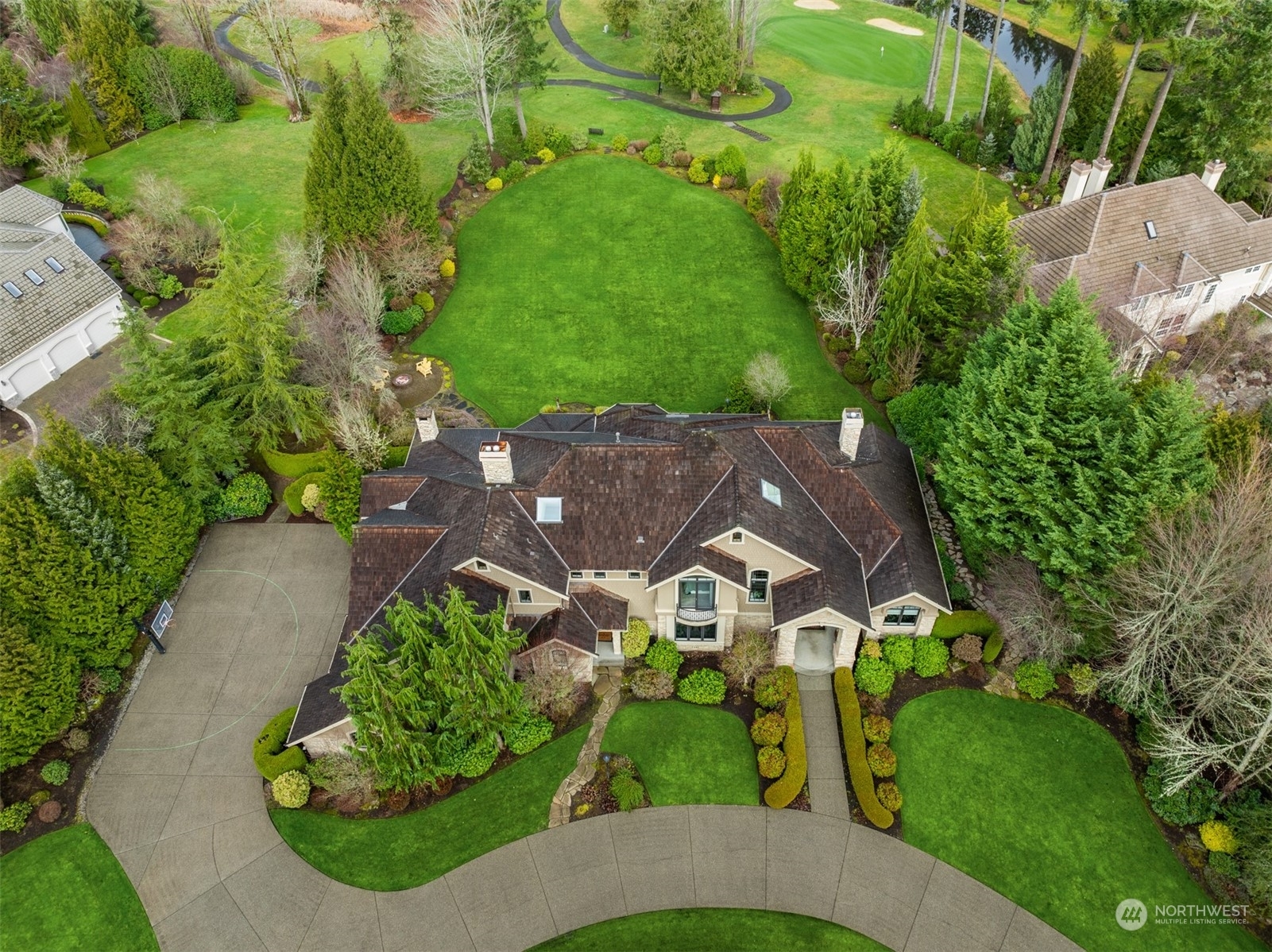 Stunning Windsor Green home on a level acre right on the golf course. The home features a circular drive and a beautiful setting. Wonderful open floor plan made for entertaining with a gourmet kitchen made for a chef and large gatherings. Dining room is ideal for every holiday. The incredible kitchen and great room open to the patio, grill and expansive private yard. Enjoy beautiful views of the golf course where you can see the 12th and 13th fairways and walk onto the 13th tee box. Primary suite and spa bath are serene with views from every window. Bonus/media, 2 offices, spacious en-suite bedrooms. Updated, spotless and sun filled. Great neighborhood and schools. Minutes to Met Market, Swedish, I-90, 520, Bellevue, Redmond, Seattle