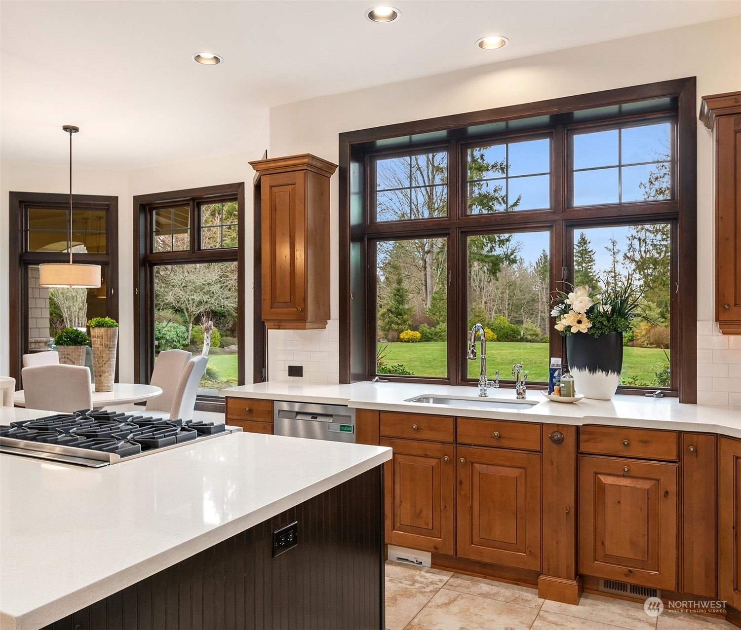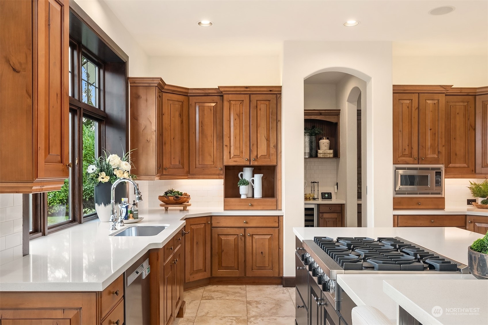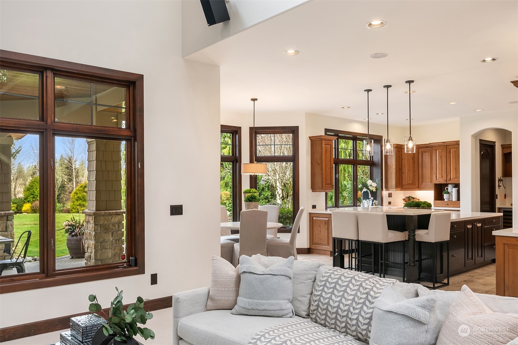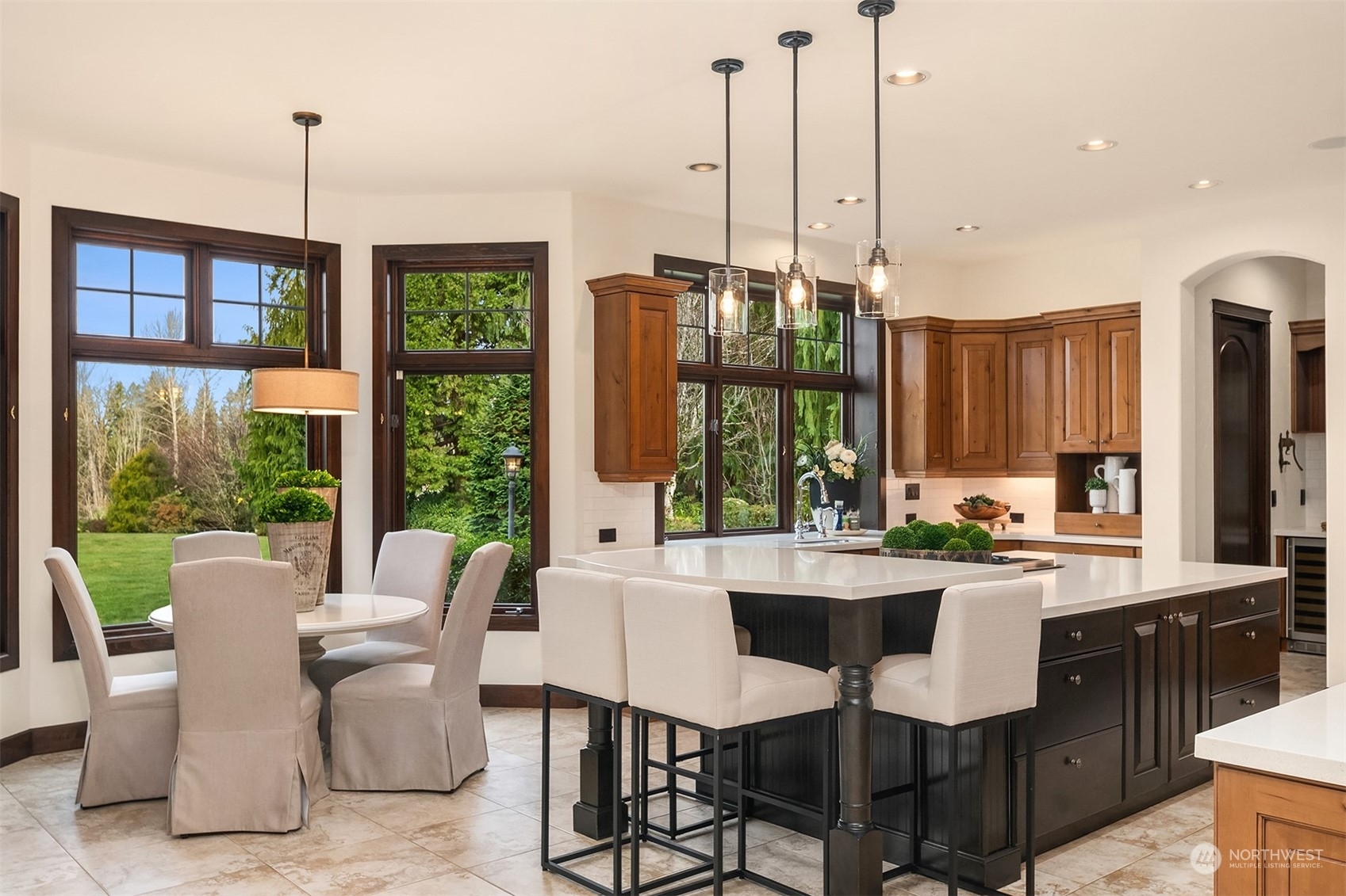 Stunning Windsor Green home on a level acre right on the golf course. The home features a circular drive and a beautiful setting. Wonderful open floor plan made for entertaining with a gourmet kitchen made for a chef and large gatherings. Dining room is ideal for every holiday. The incredible kitchen and great room open to the patio, grill and expansive private yard. Enjoy beautiful views of the golf course where you can see the 12th and 13th fairways and walk onto the 13th tee box. Primary suite and spa bath are serene with views from every window. Bonus/media, 2 offices, spacious en-suite bedrooms. Updated, spotless and sun filled. Great neighborhood and schools. Minutes to Met Market, Swedish, I-90, 520, Bellevue, Redmond, Seattle