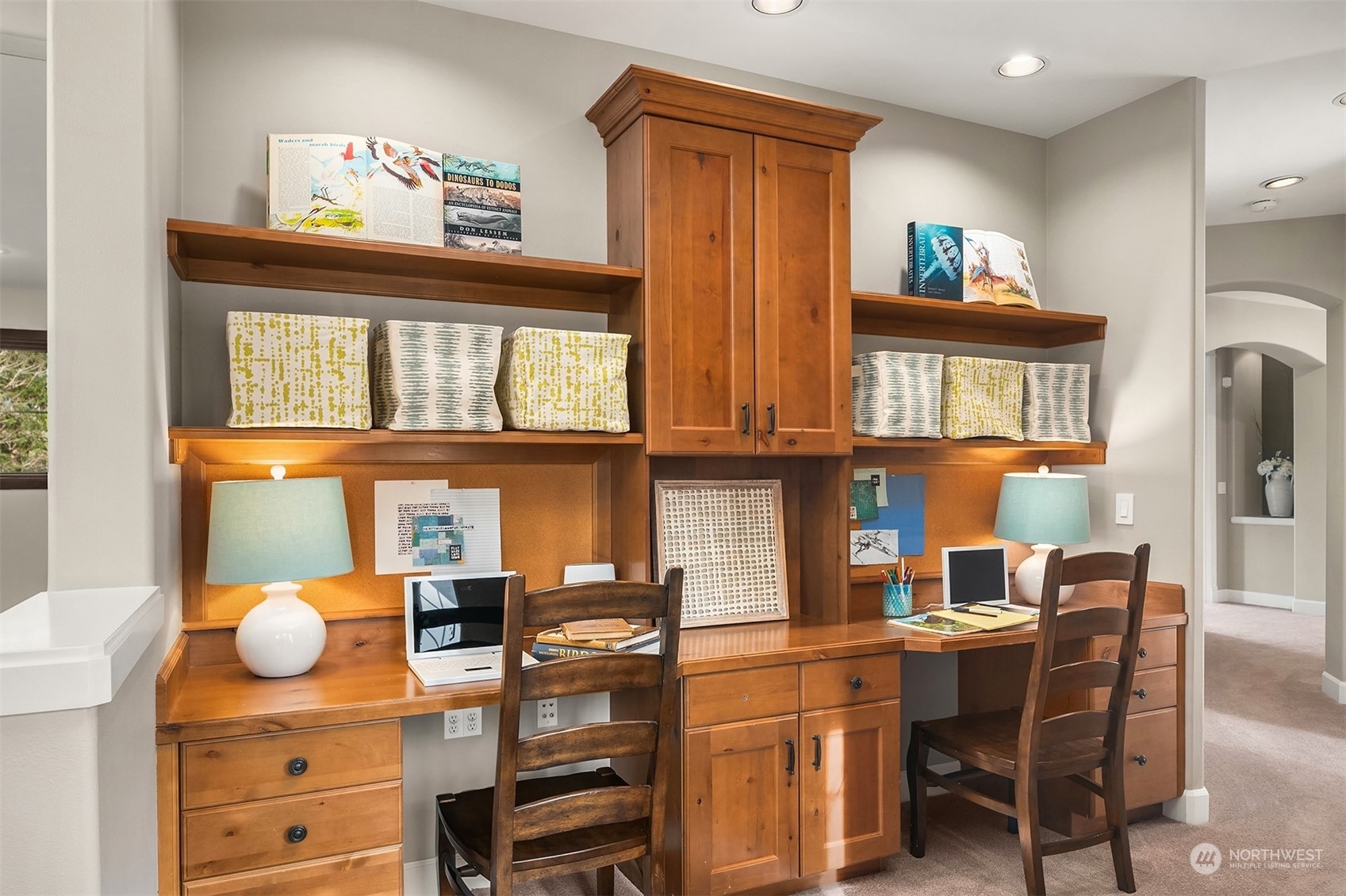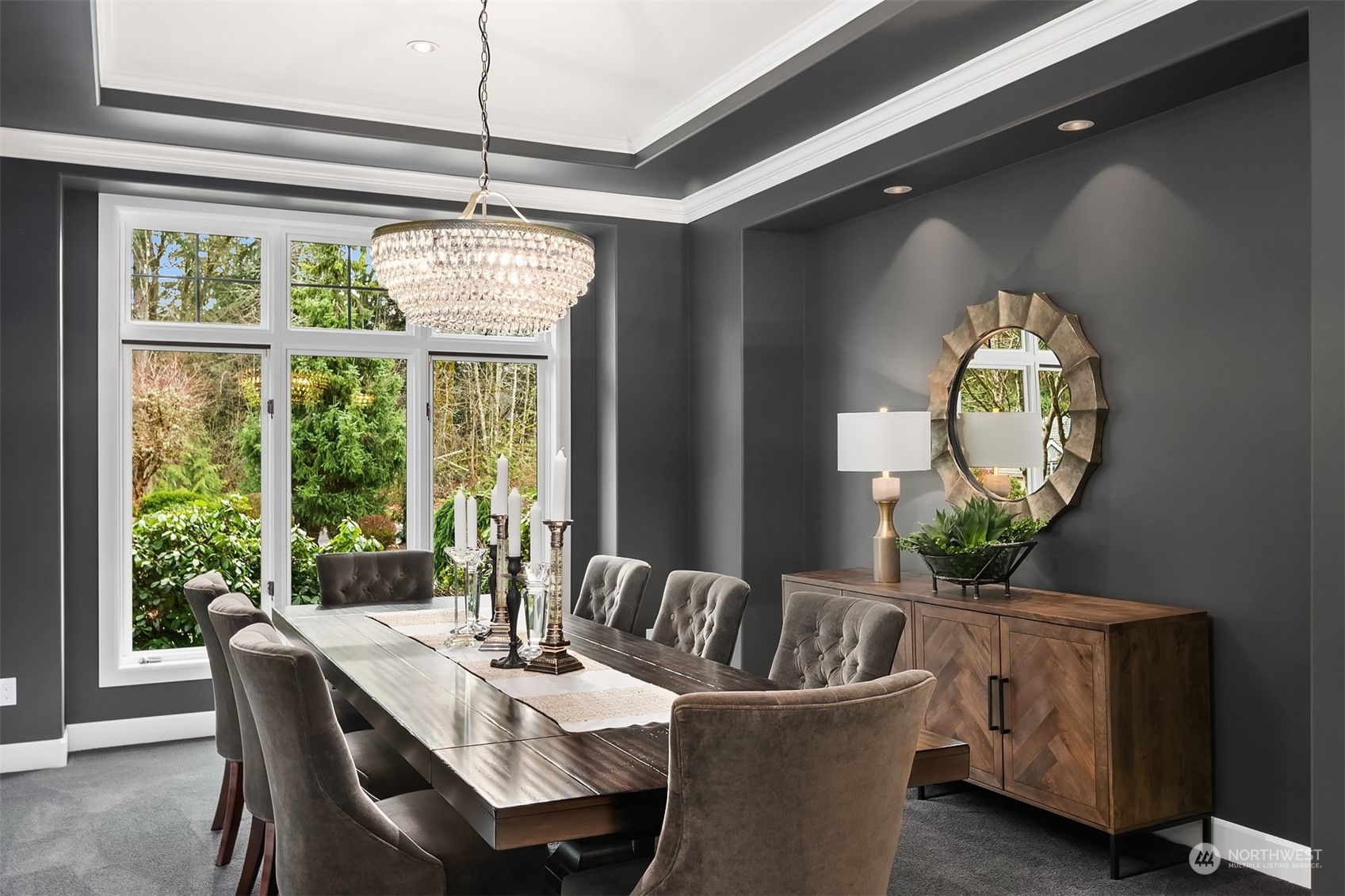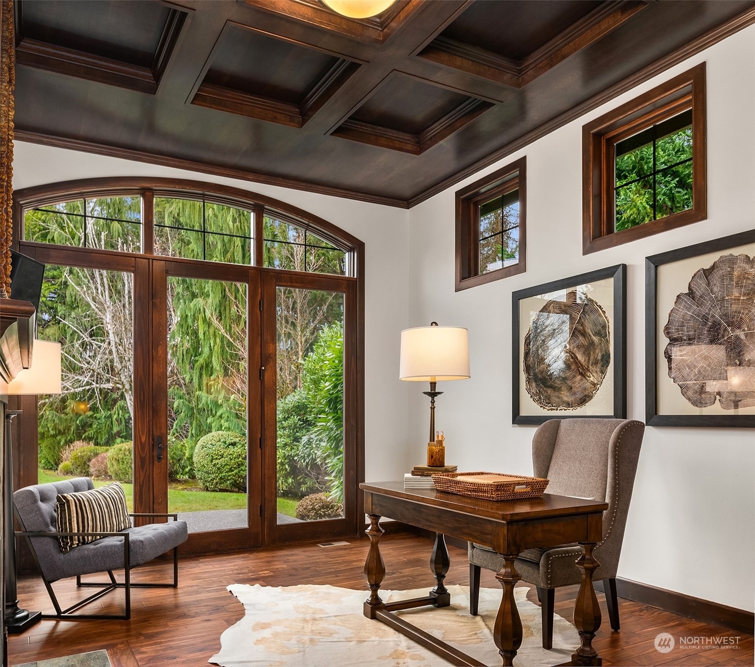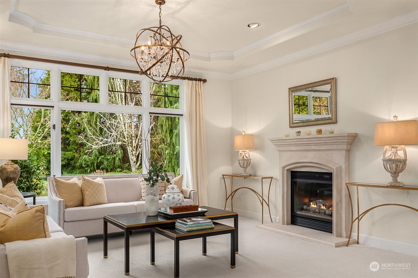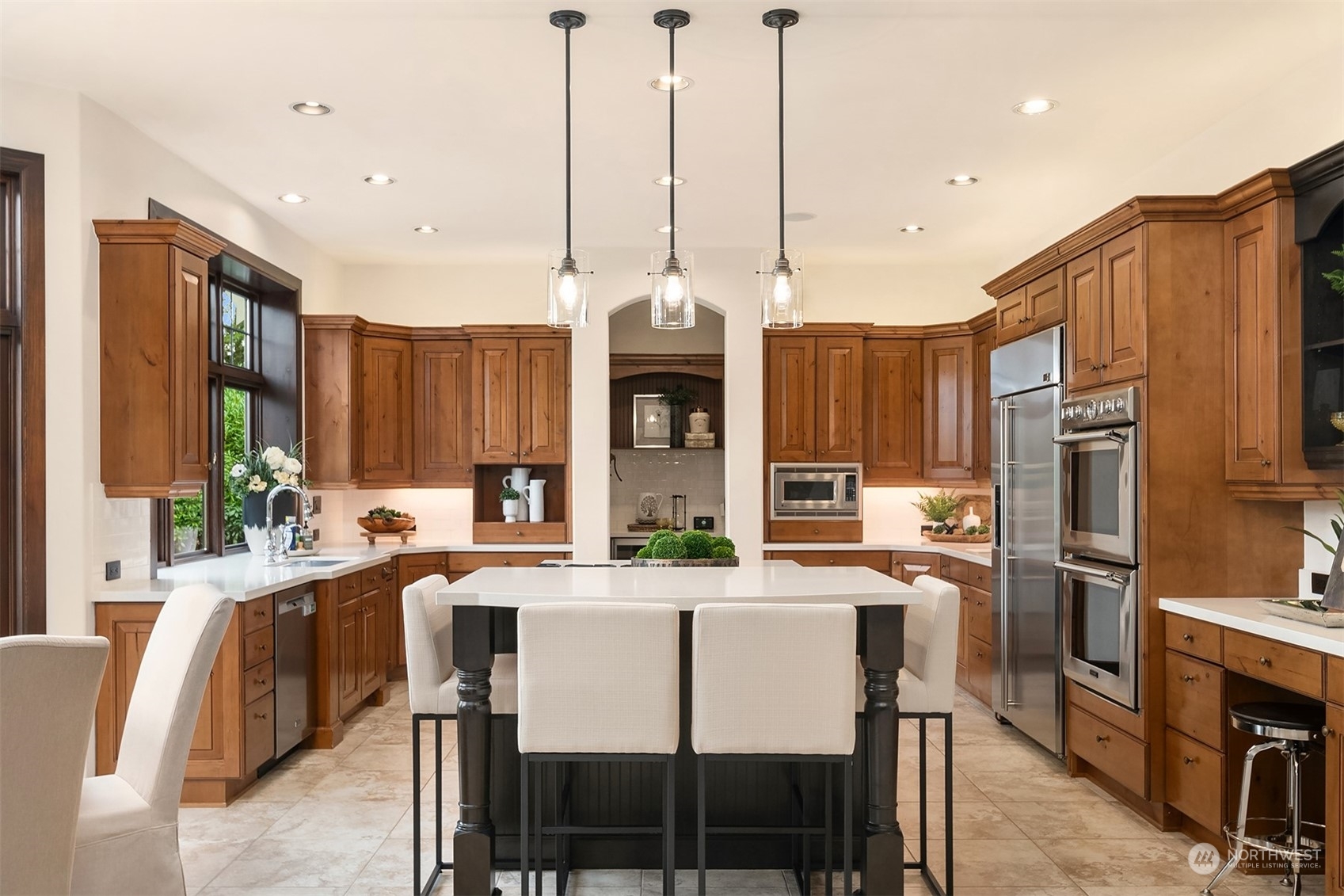 Stunning Windsor Green home on a level acre right on the golf course. The home features a circular drive and a beautiful setting. Wonderful open floor plan made for entertaining with a gourmet kitchen made for a chef and large gatherings. Dining room is ideal for every holiday. The incredible kitchen and great room open to the patio, grill and expansive private yard. Enjoy beautiful views of the golf course where you can see the 12th and 13th fairways and walk onto the 13th tee box. Primary suite and spa bath are serene with views from every window. Bonus/media, 2 offices, spacious en-suite bedrooms. Updated, spotless and sun filled. Great neighborhood and schools. Minutes to Met Market, Swedish, I-90, 520, Bellevue, Redmond, Seattle