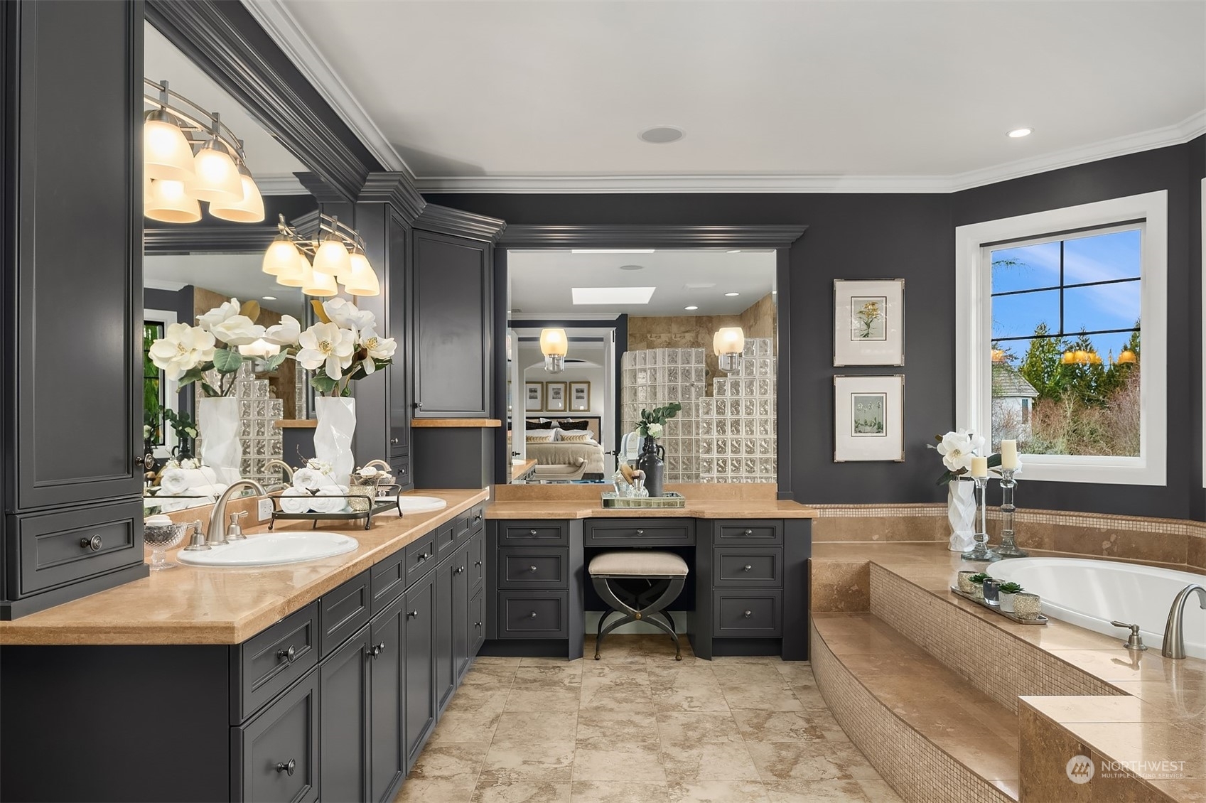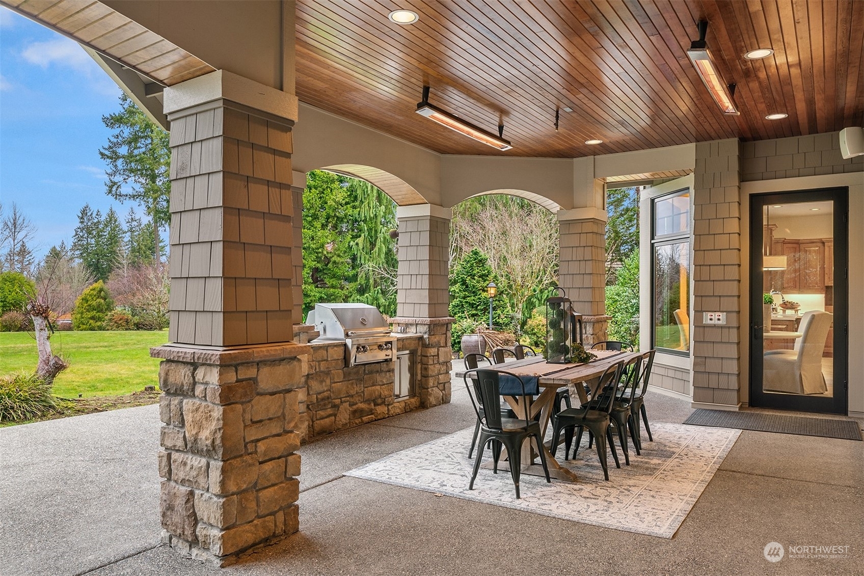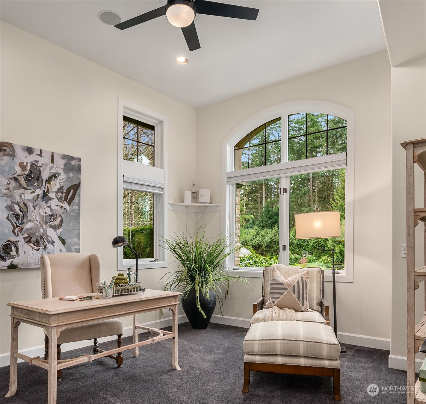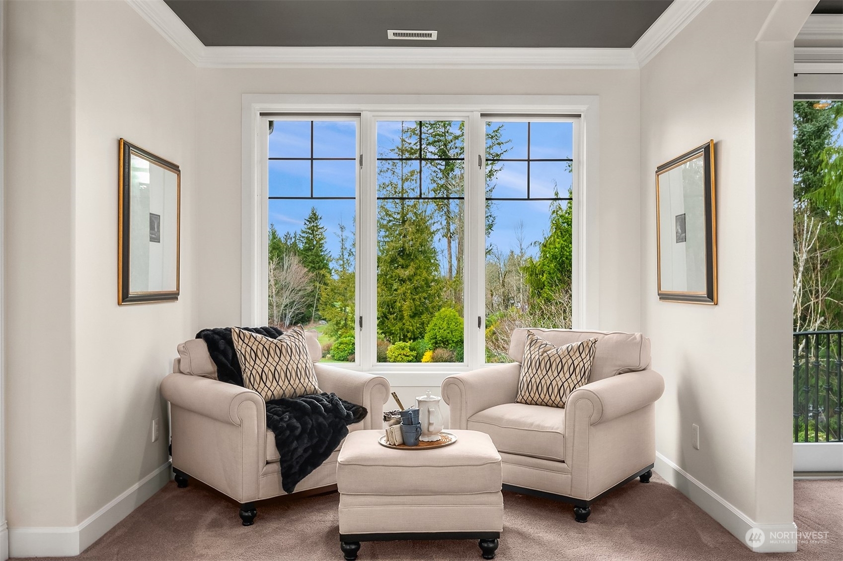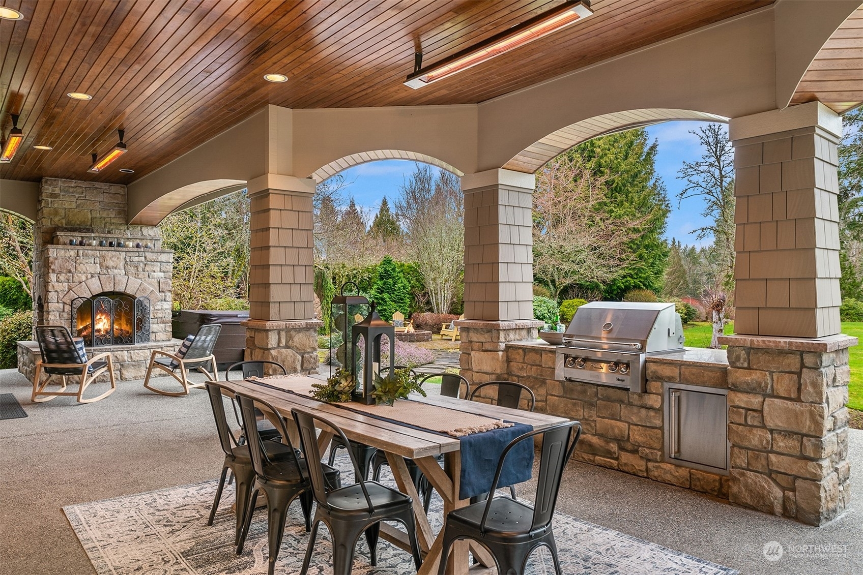 Stunning Windsor Green home on a level acre right on the golf course. The home features a circular drive and a beautiful setting. Wonderful open floor plan made for entertaining with a gourmet kitchen made for a chef and large gatherings. Dining room is ideal for every holiday. The incredible kitchen and great room open to the patio, grill and expansive private yard. Enjoy beautiful views of the golf course where you can see the 12th and 13th fairways and walk onto the 13th tee box. Primary suite and spa bath are serene with views from every window. Bonus/media, 2 offices, spacious en-suite bedrooms. Updated, spotless and sun filled. Great neighborhood and schools. Minutes to Met Market, Swedish, I-90, 520, Bellevue, Redmond, Seattle