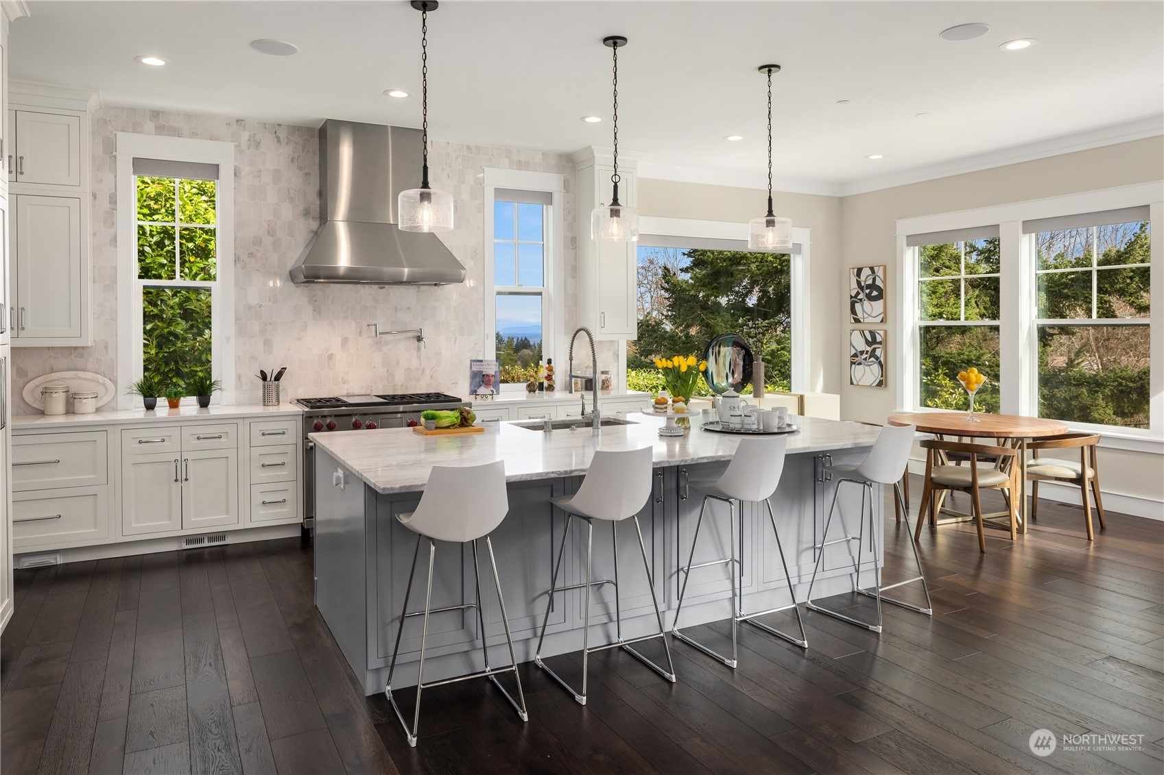 Welcome to this exquisite modern luxury home with awe-inspiring Cascades views. Step into an enchanting open layout adorned with the finest amenities, where every detail elevates your living experience. Indulge in opulent features from the dedicated home office, gym to the irresistible home theater; each space blends functionality & sophistication. Immerse yourself in luxury with high ceilings, intricate millwork & spacious primary bedroom. Entertain effortlessly with whole-house speakers, 3-car garage, covered patio, deck, A/C & the convenience of central vacuum & backup generator for stormy days. Neutral yet captivating materials envelop you in a warm, inviting ambiance, prompting unforgettable memories. Award-winning Bellevue schools.