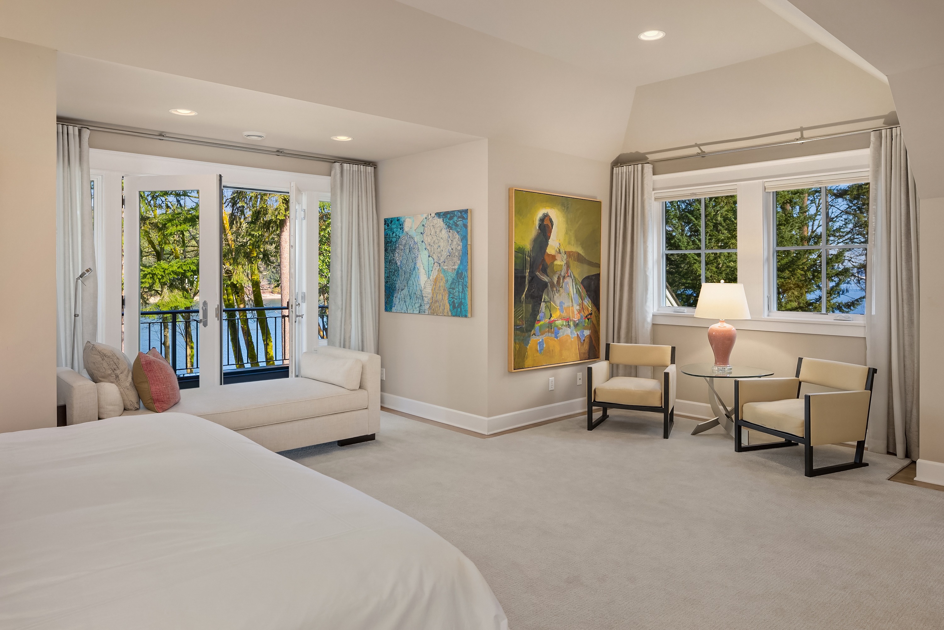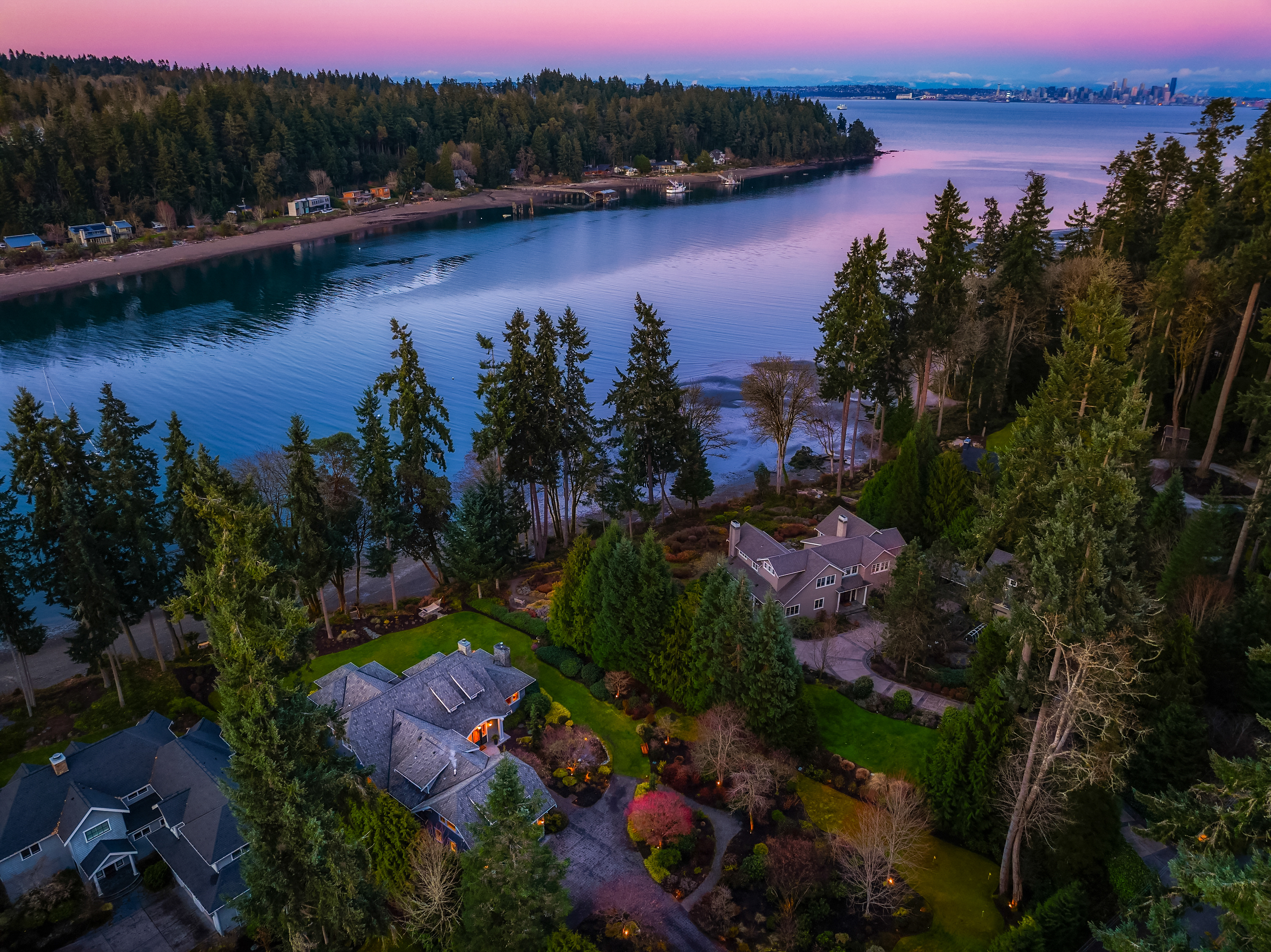 Magnificent custom home with traditional design on the shores of coveted Port Blakely Harbor. Perfectly placed to capture views of the Seattle skyline, the Cascade Mountains & shimmering Puget Sound. The boating lifestyle awaits with a private, registered, deep-water buoy. The home was architecturally designed with a grand, graceful aesthetic including crown molding, beautiful hardwoods, stately fireplace and spacious epicurean kitchen with French doors leading to the terrace. The primary suite offers a Juliet balcony and lovely views. 2 bedrooms up plus private office and guest suite on the main level. Mature private gardens surround the property & showcase multiple outdoor living areas for entertaining and enjoying the Island lifestyle.