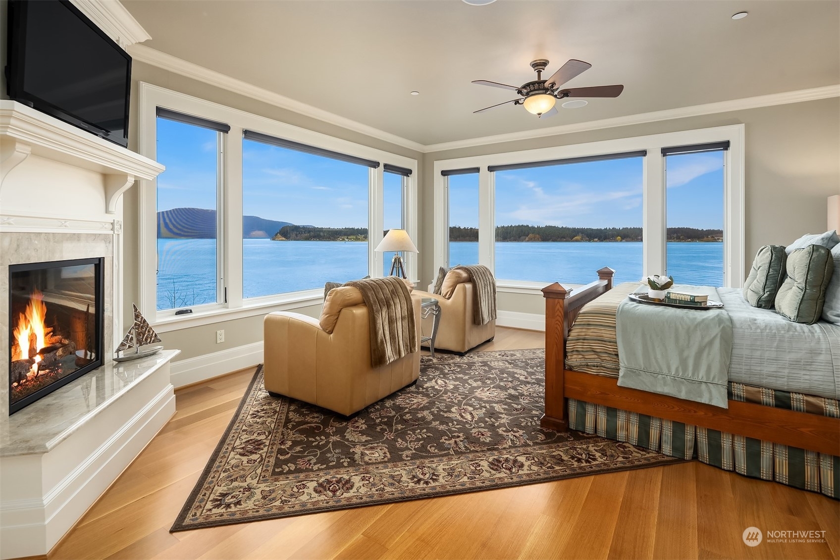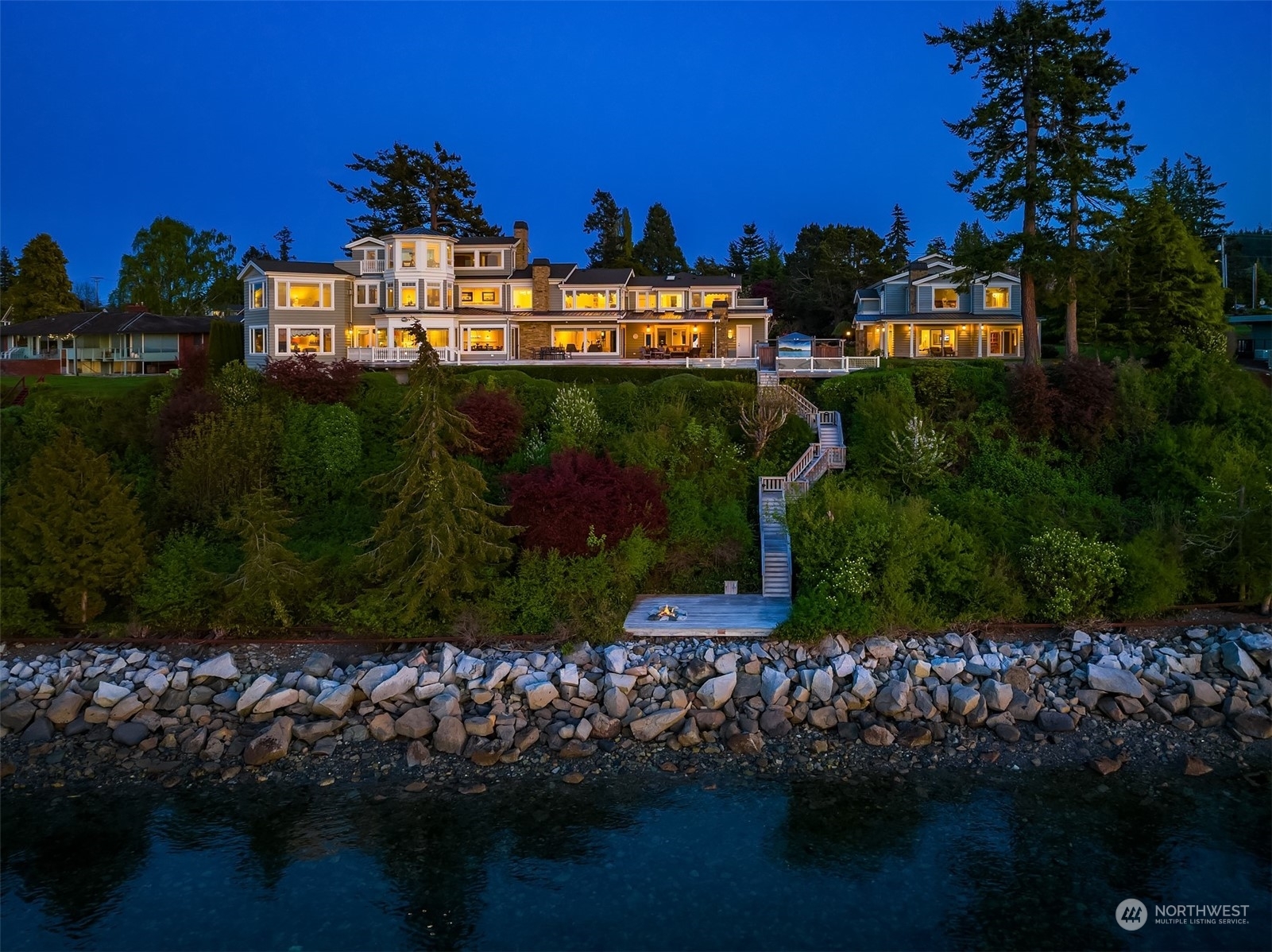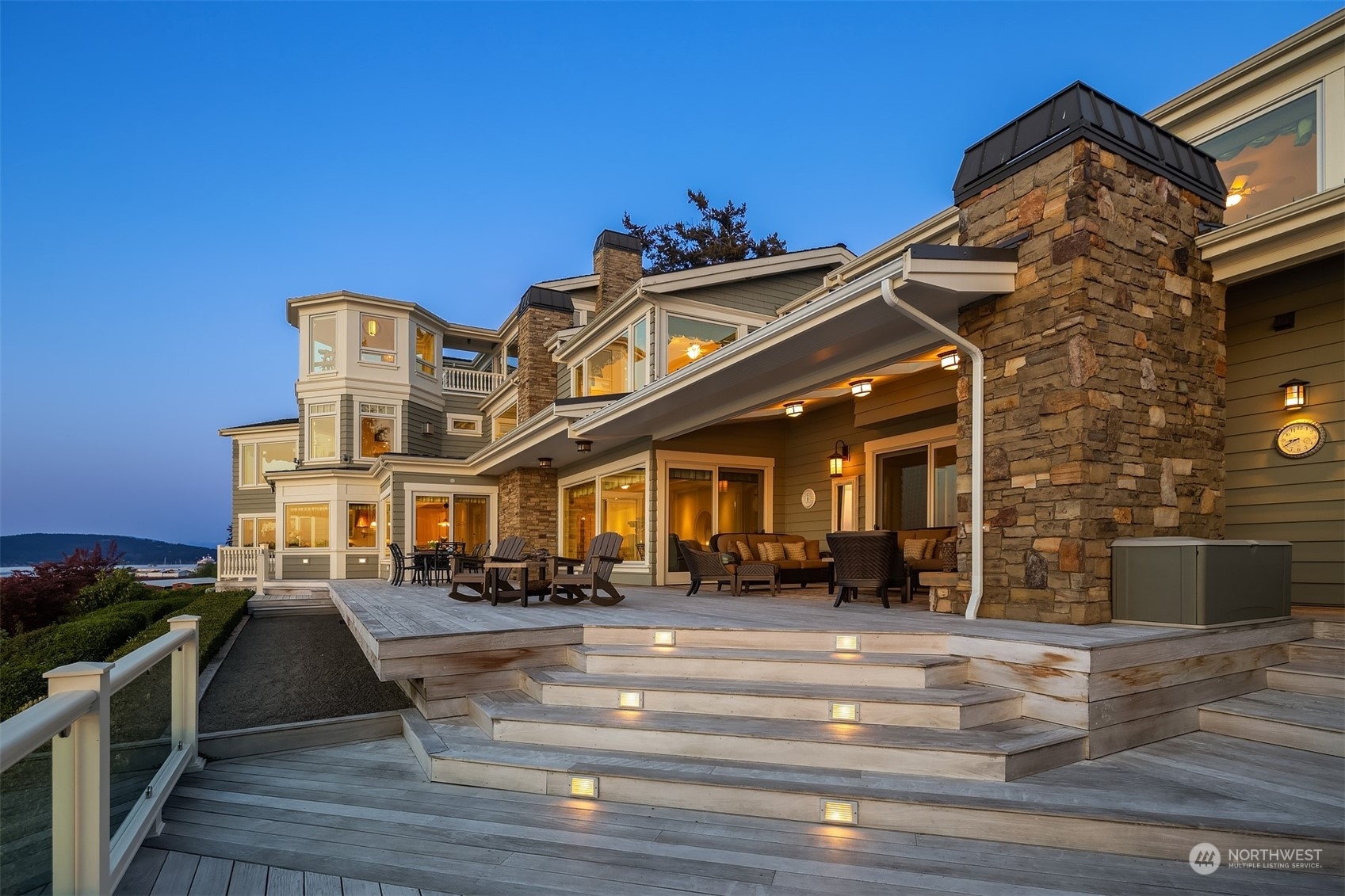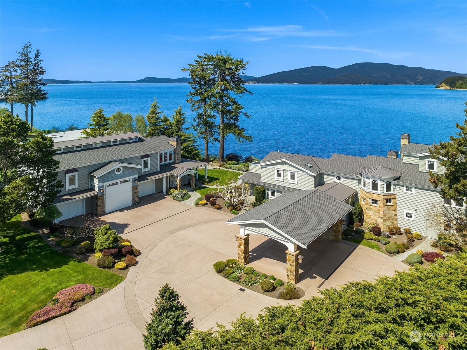 An absolute legacy property perched on the Anacortes coastline & overlooking the Guemes Channel & San Juans. Breathtaking Northwest & sunset views. 8,712 SF Main Residence features 5 BR's, each w/an ensuite bathroom. Chef’s kitchen for the absolute finest culinary experience. Private theater, game room, elevator, 3rd floor rec room + a 180 degree lookout tower. The estate includes a luxurious guest house (1300+ /sf), enormous 4-car garage, + separate 1064 SF Manager's house. NO expense spared. ALL impeccable & shows as if brand new. 2+ AC of arboretum-like grounds. 230' of deeded tidelands. Board your private yacht or the Anacortes ferry....marinas/terminal are minutes away. Truly one of the most iconic waterfront estates in the PNW.