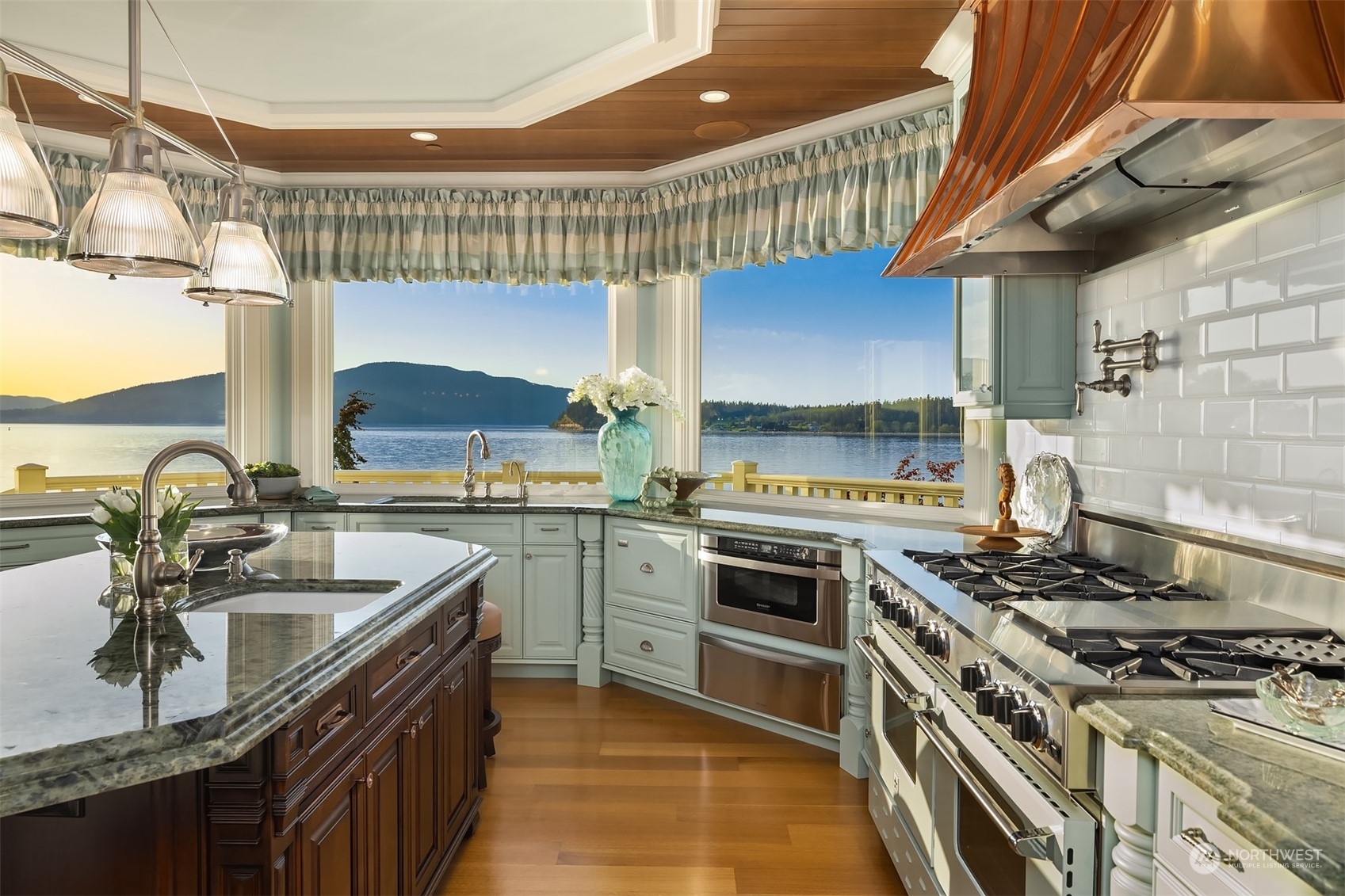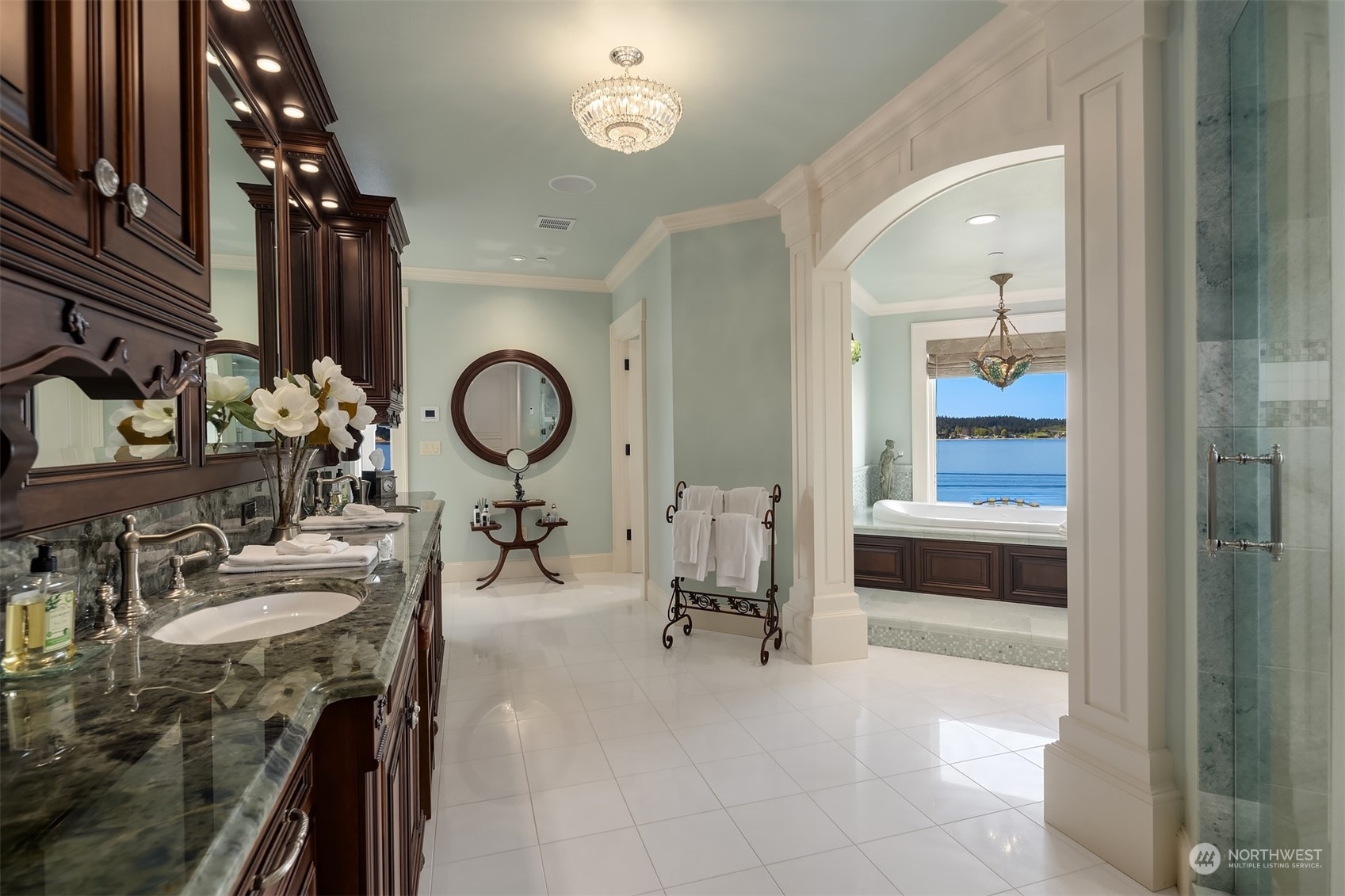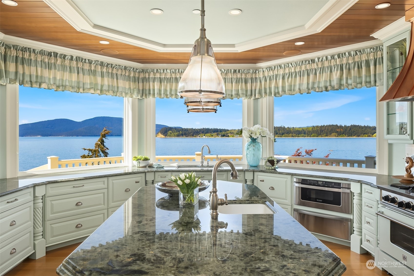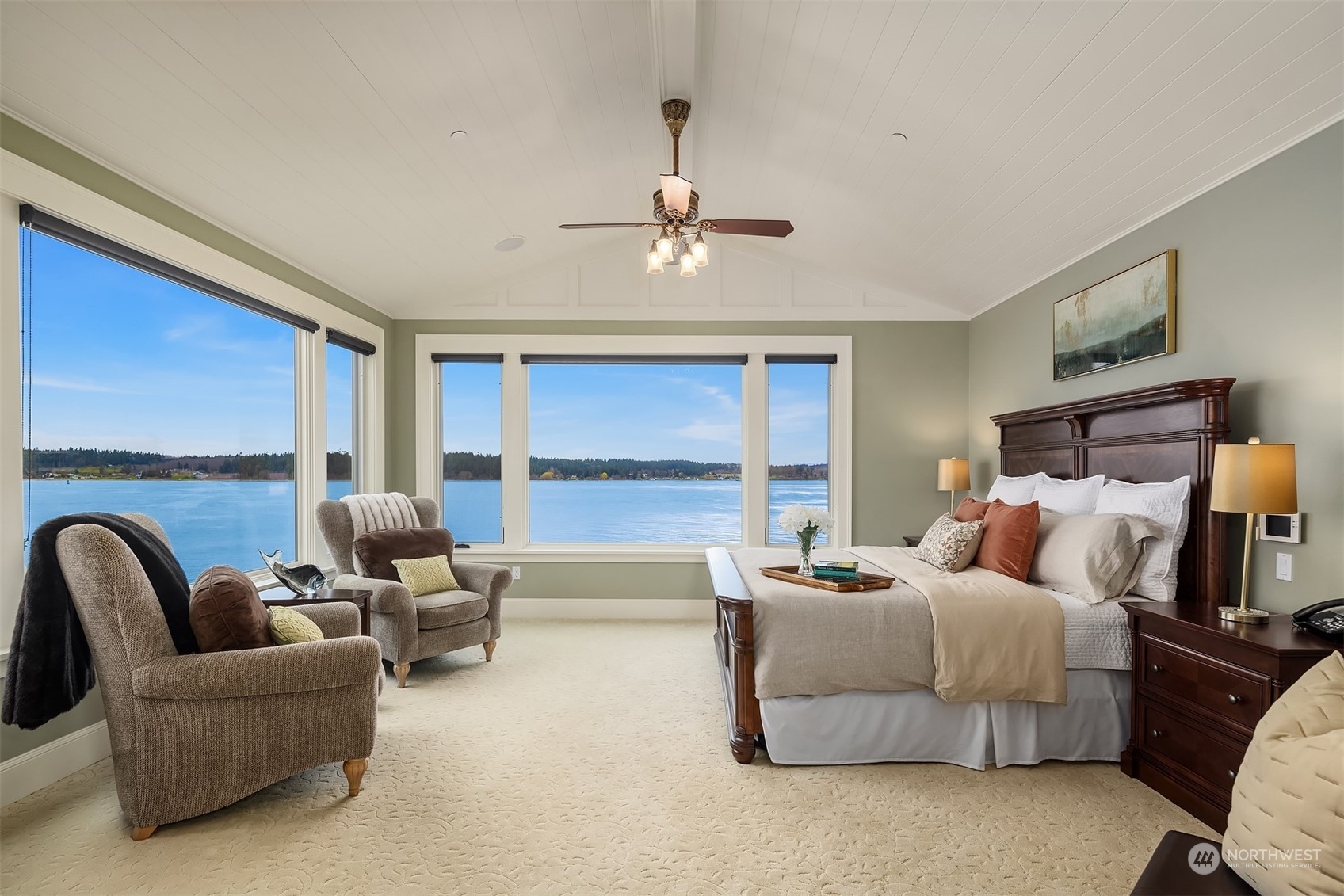 An absolute legacy property perched on the Anacortes coastline & overlooking the Guemes Channel & San Juans. Breathtaking Northwest & sunset views. 8,712 SF Main Residence features 5 BR's, each w/an ensuite bathroom. Chef’s kitchen for the absolute finest culinary experience. Private theater, game room, elevator, 3rd floor rec room + a 180 degree lookout tower. The estate includes a luxurious guest house (1300+ /sf), enormous 4-car garage, + separate 1064 SF Manager's house. NO expense spared. ALL impeccable & shows as if brand new. 2+ AC of arboretum-like grounds. 230' of deeded tidelands. Board your private yacht or the Anacortes ferry....marinas/terminal are minutes away. Truly one of the most iconic waterfront estates in the PNW.