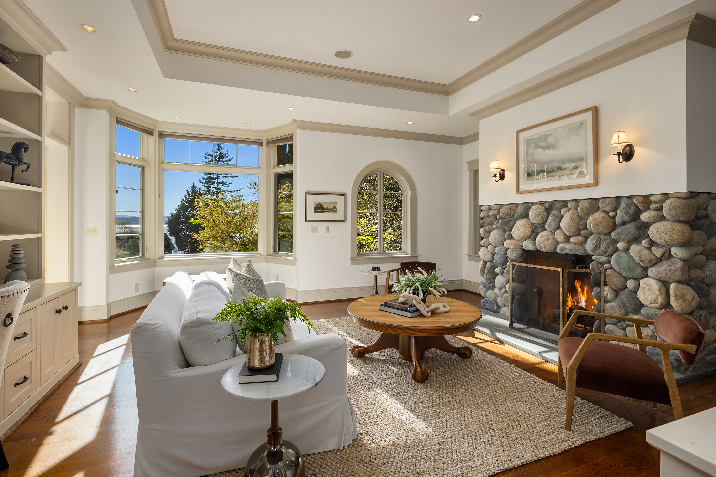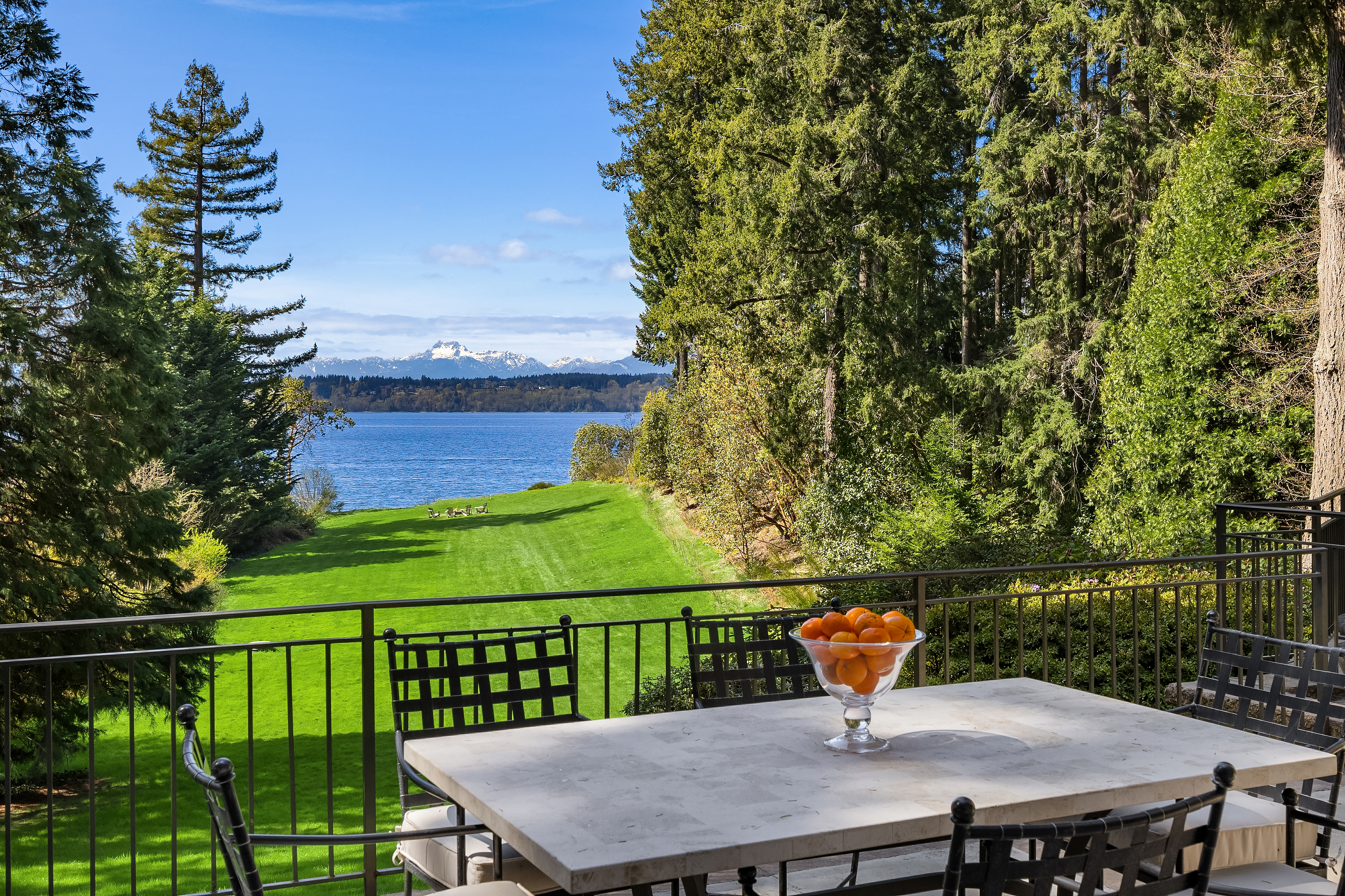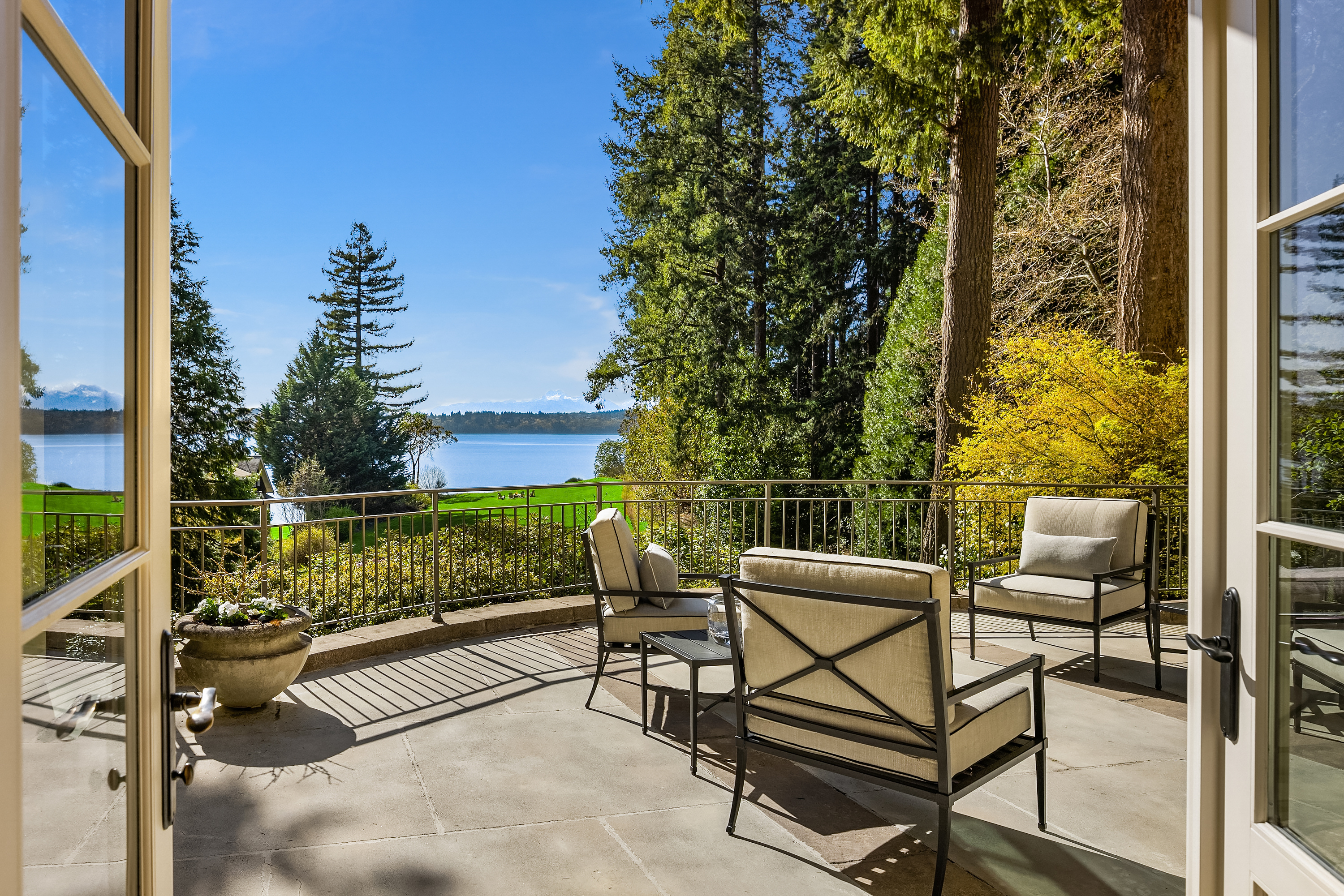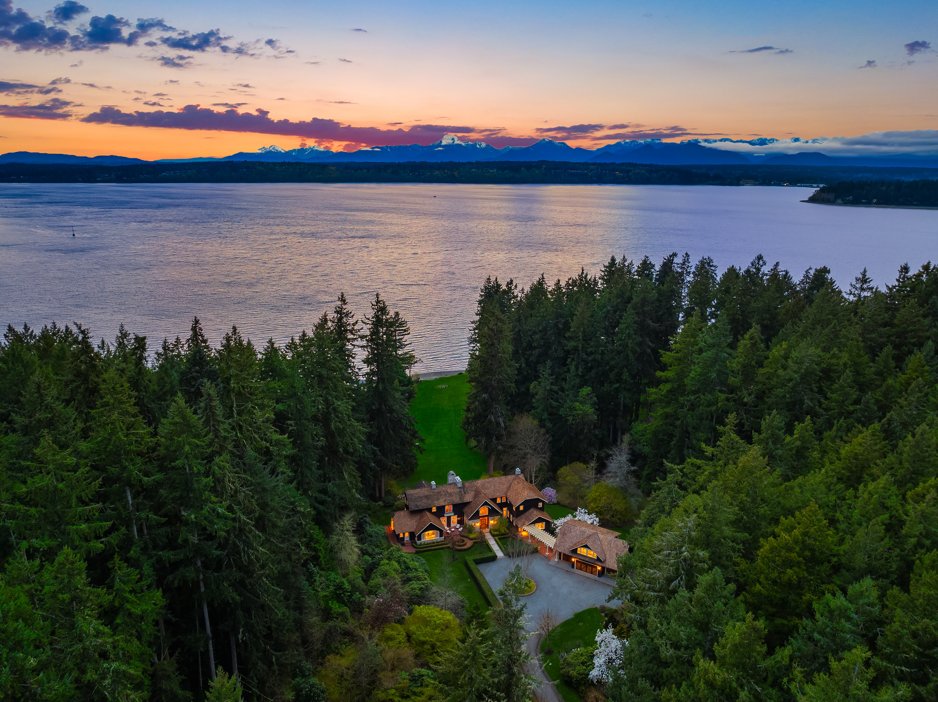 Meander down this private drive lined with stunning maple trees to an extraordinary French Country estate designed by Robert Maloney, Architect. The home is perfectly sited on 3.86 acres with beautiful west-facing views of Puget Sound and the Olympic Mountains. Natural light and the feel of a gracious East Coast coastal estate. French doors open to multiple entertaining patios to enjoy the indoor/outdoor lifestyle we love. Epicurean eat-in kitchen w/marble counters and a Lacanche 72-inch range. Wide-planked hardwoods, wrought-iron chandeliers and 6 fireplaces throughout. The magnificent primary suite w/fabulous views, private office and spa like bath. A 4-car garage and 2-bedroom guest house w/full bath. A perfect Island waterfront retreat!