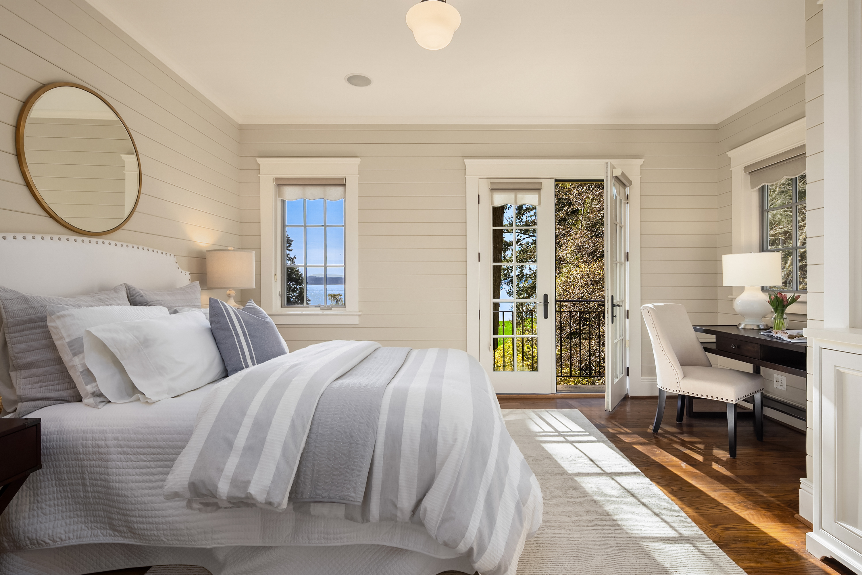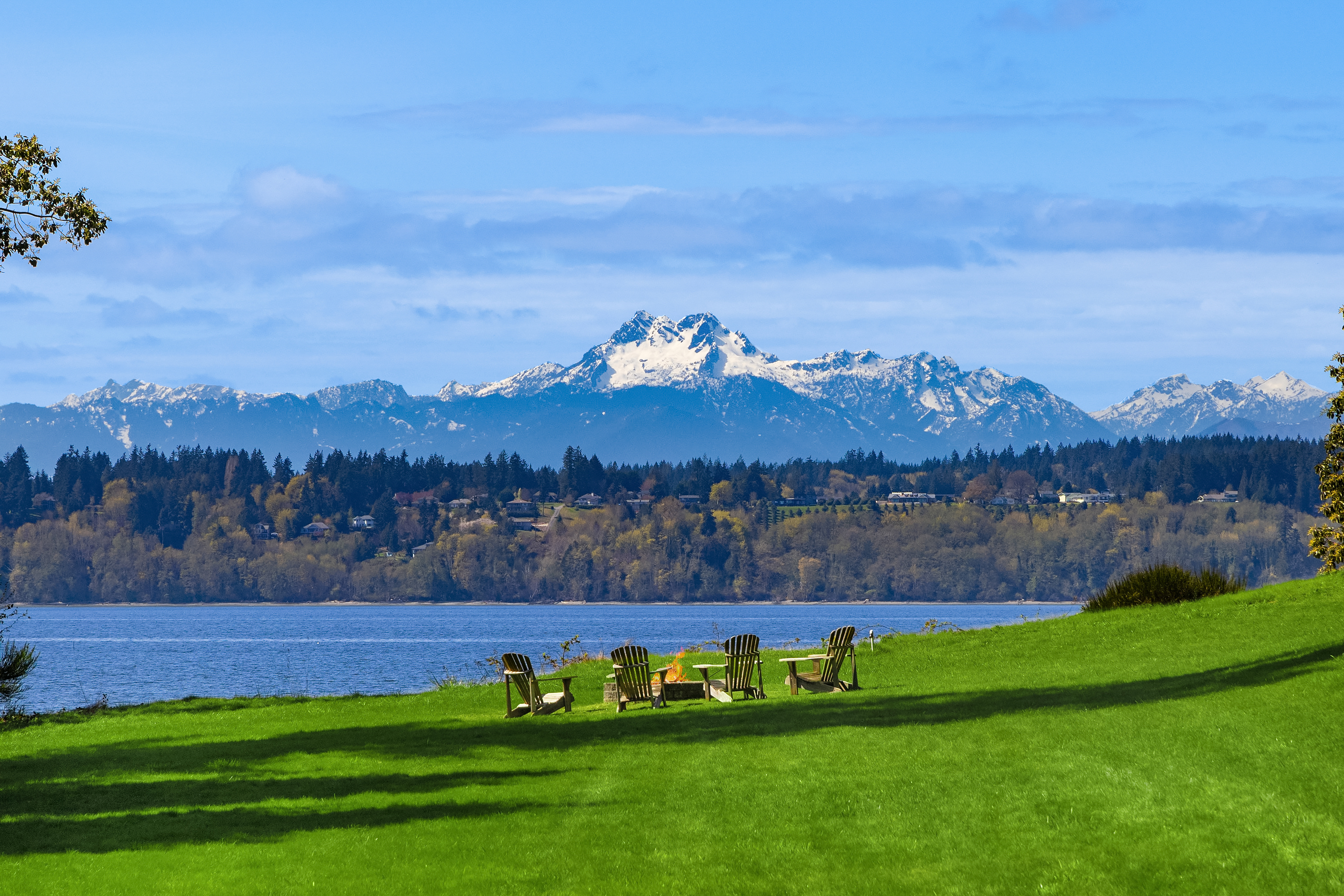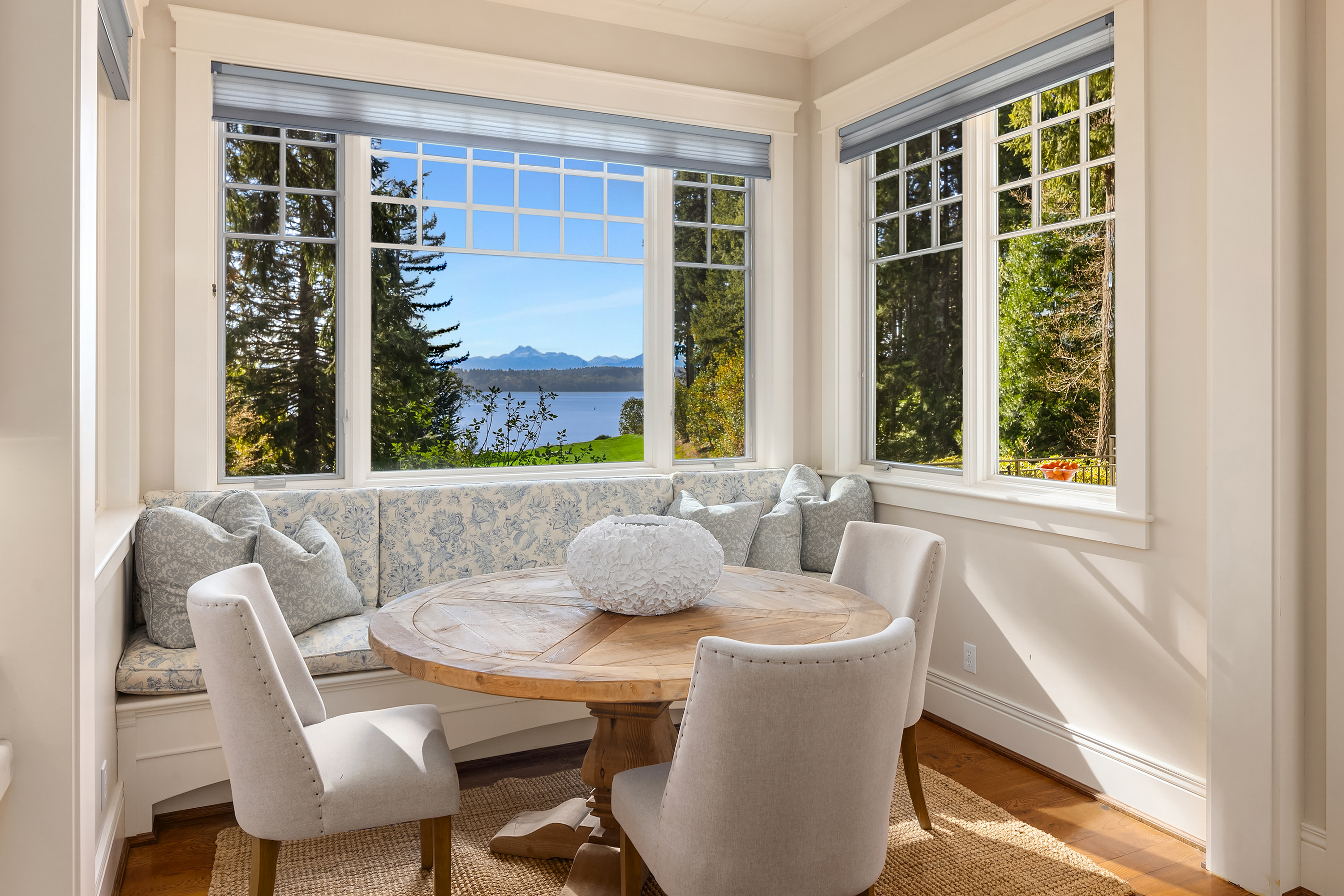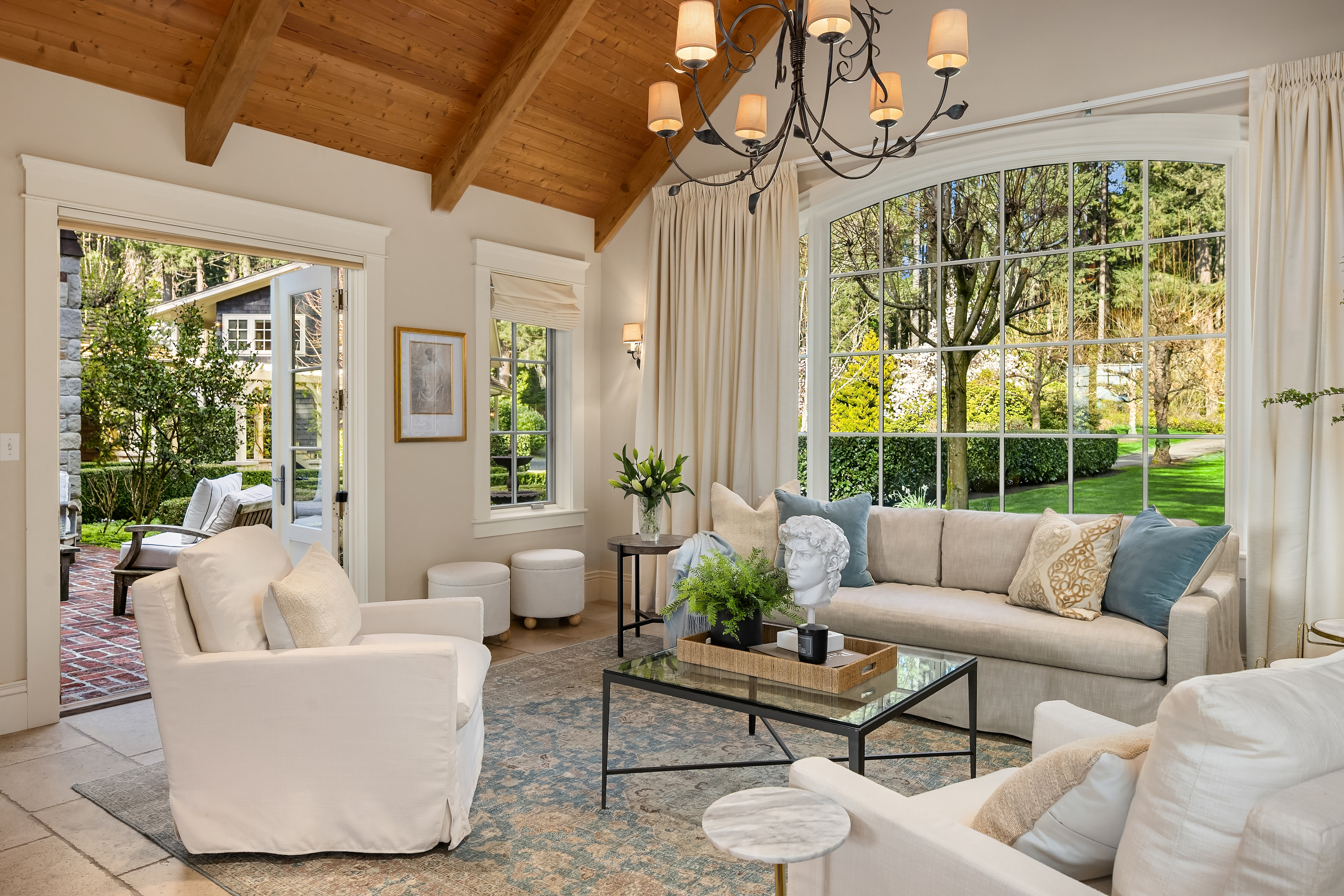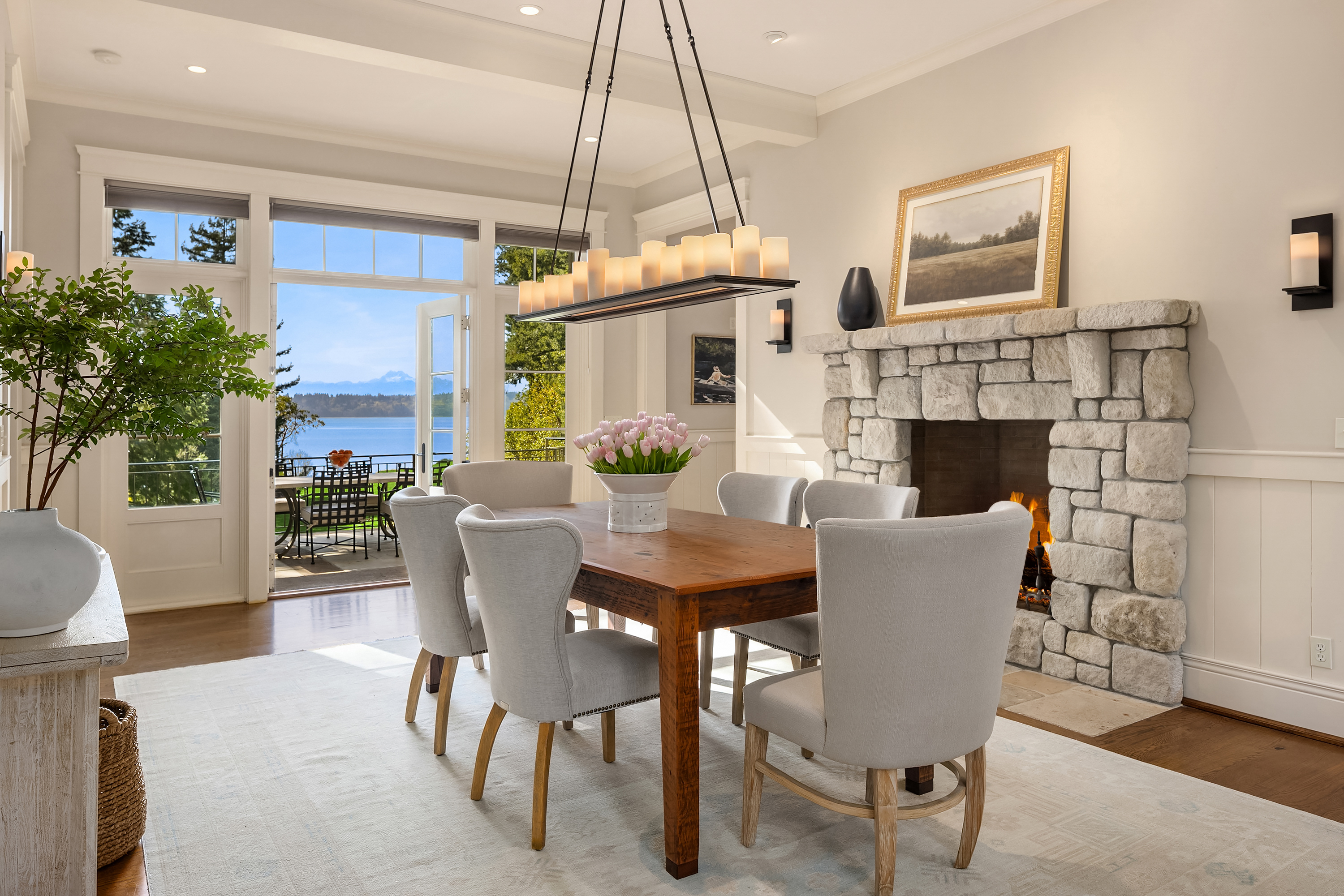 Meander down this private drive lined with stunning maple trees to an extraordinary French Country estate designed by Robert Maloney, Architect. The home is perfectly sited on 3.86 acres with beautiful west-facing views of Puget Sound and the Olympic Mountains. Natural light and the feel of a gracious East Coast coastal estate. French doors open to multiple entertaining patios to enjoy the indoor/outdoor lifestyle we love. Epicurean eat-in kitchen w/marble counters and a Lacanche 72-inch range. Wide-planked hardwoods, wrought-iron chandeliers and 6 fireplaces throughout. The magnificent primary suite w/fabulous views, private office and spa like bath. A 4-car garage and 2-bedroom guest house w/full bath. A perfect Island waterfront retreat!
