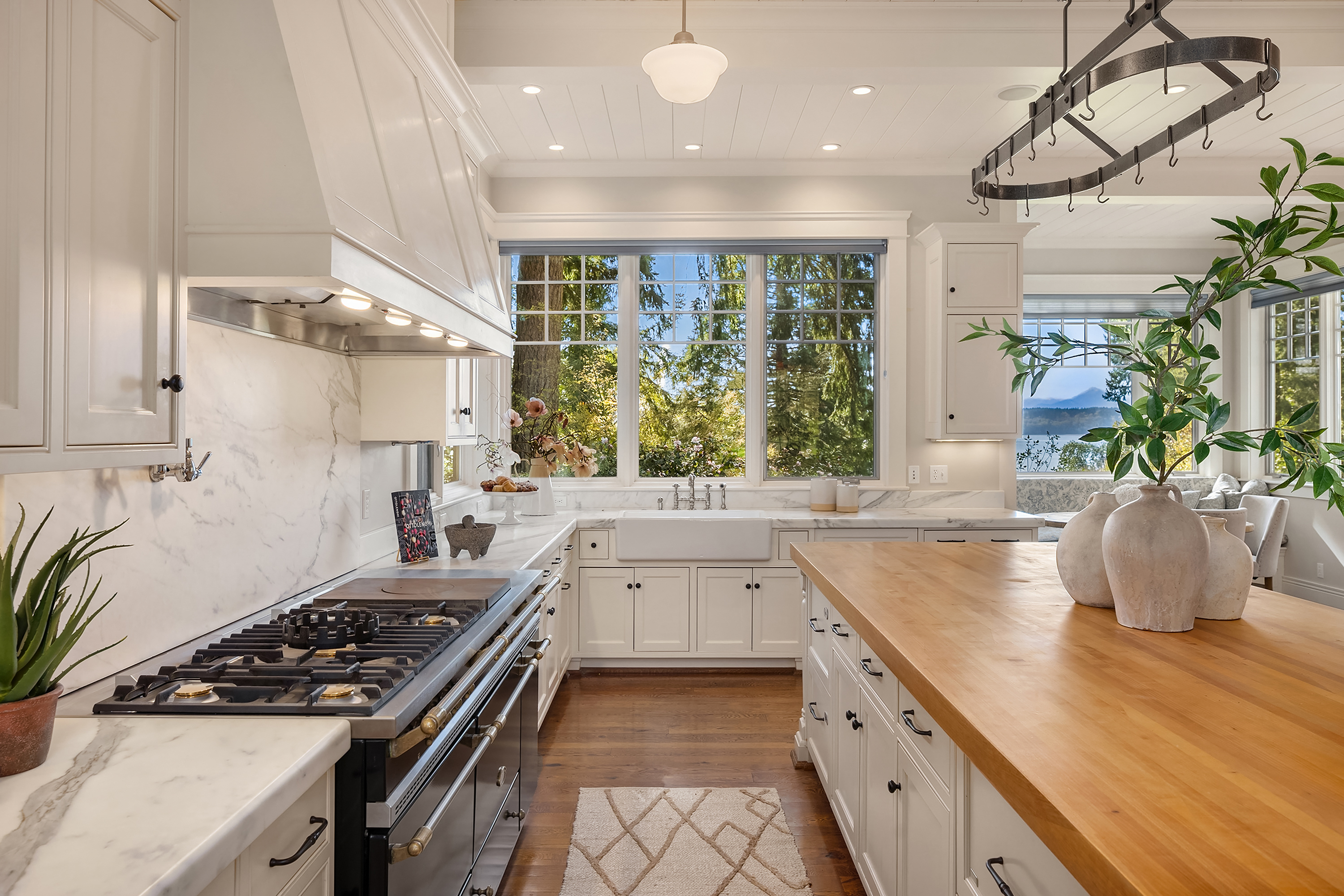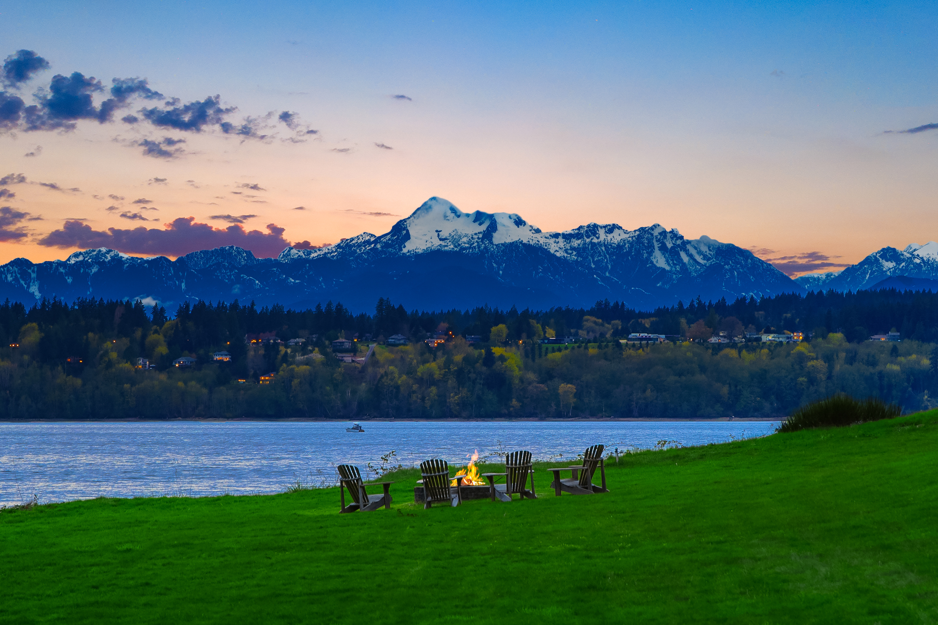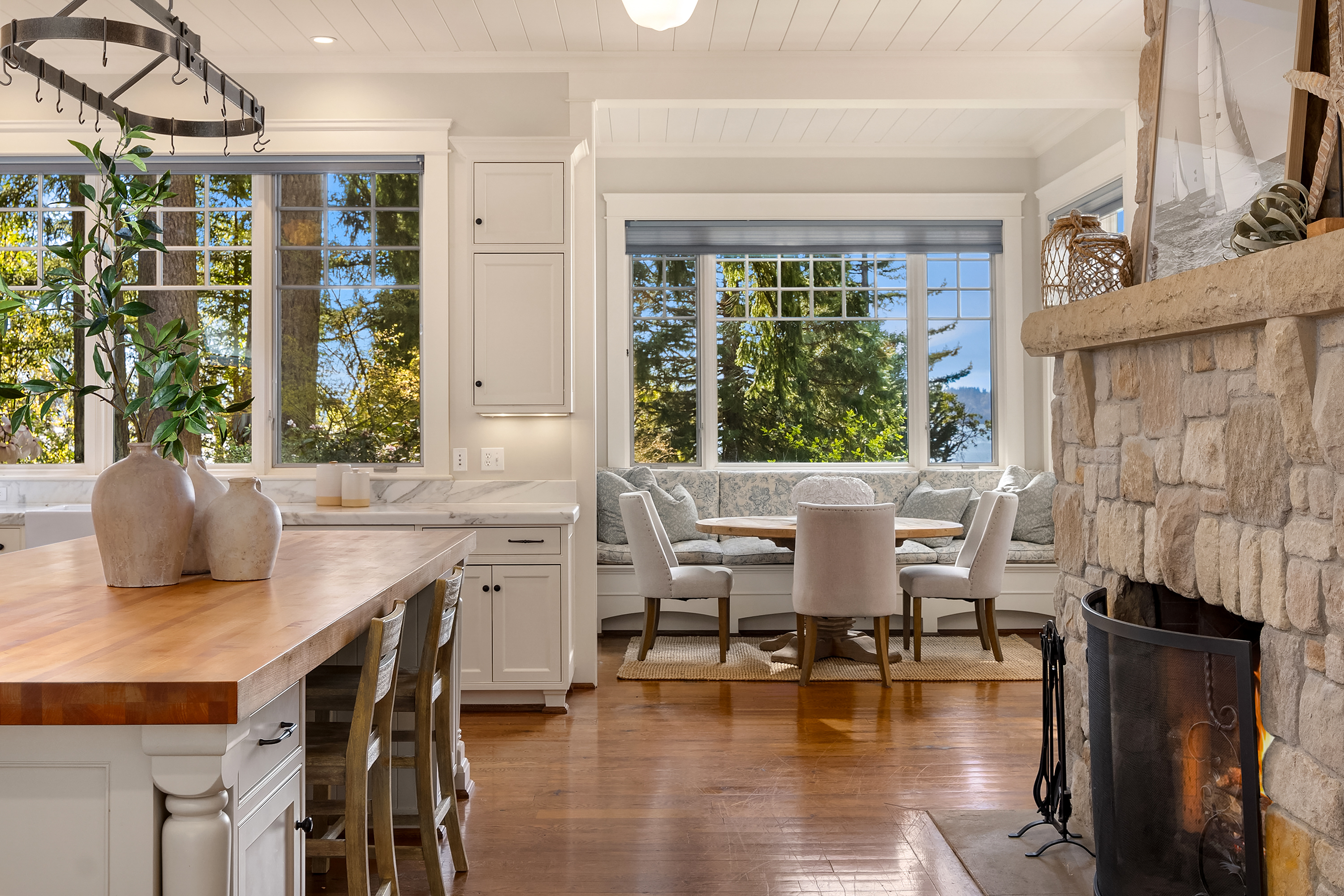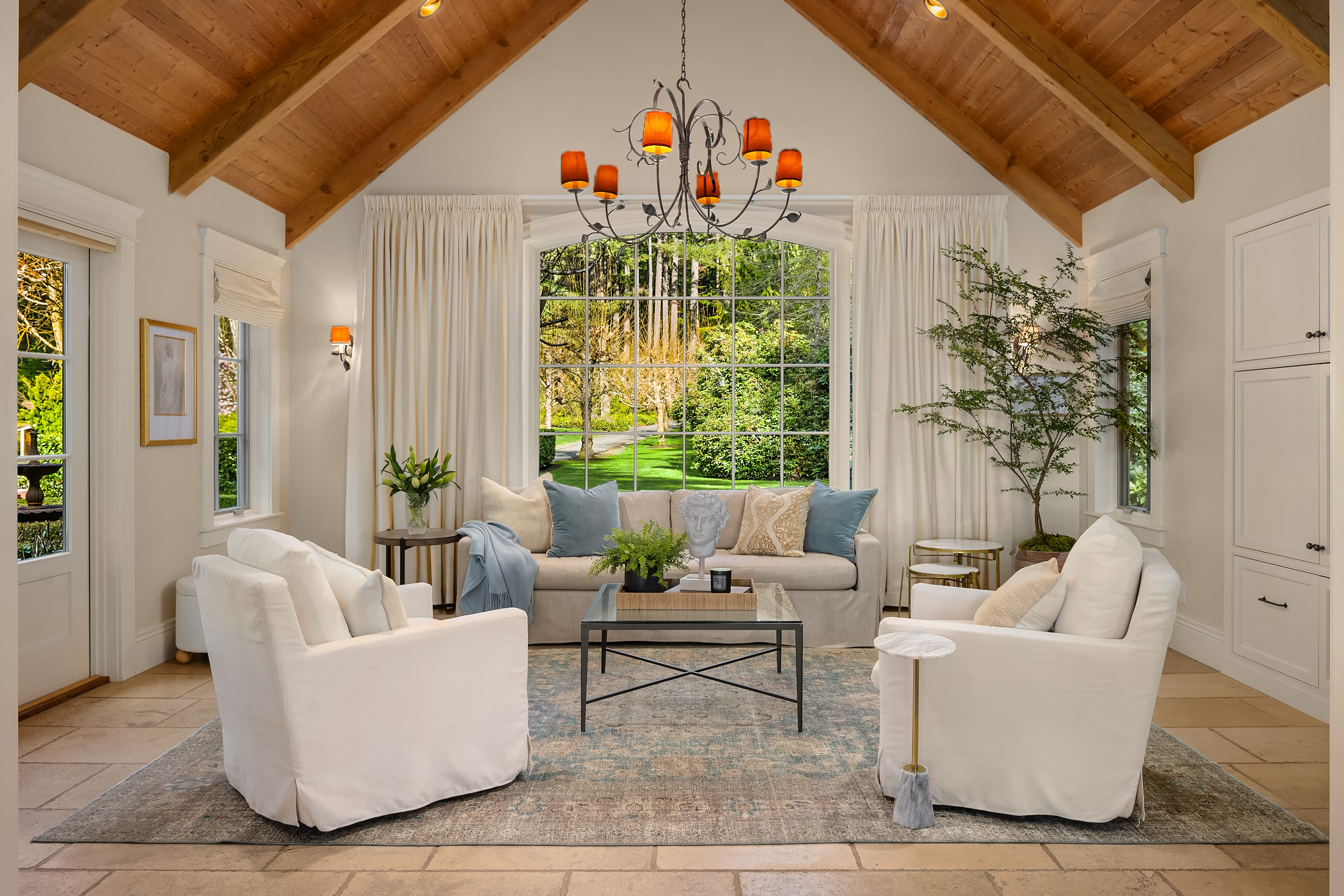 Meander down this private drive lined with stunning maple trees to an extraordinary French Country estate designed by Robert Maloney, Architect. The home is perfectly sited on 3.86 acres with beautiful west-facing views of Puget Sound and the Olympic Mountains. Natural light and the feel of a gracious East Coast coastal estate. French doors open to multiple entertaining patios to enjoy the indoor/outdoor lifestyle we love. Epicurean eat-in kitchen w/marble counters and a Lacanche 72-inch range. Wide-planked hardwoods, wrought-iron chandeliers and 6 fireplaces throughout. The magnificent primary suite w/fabulous views, private office and spa like bath. A 4-car garage and 2-bedroom guest house w/full bath. A perfect Island waterfront retreat!