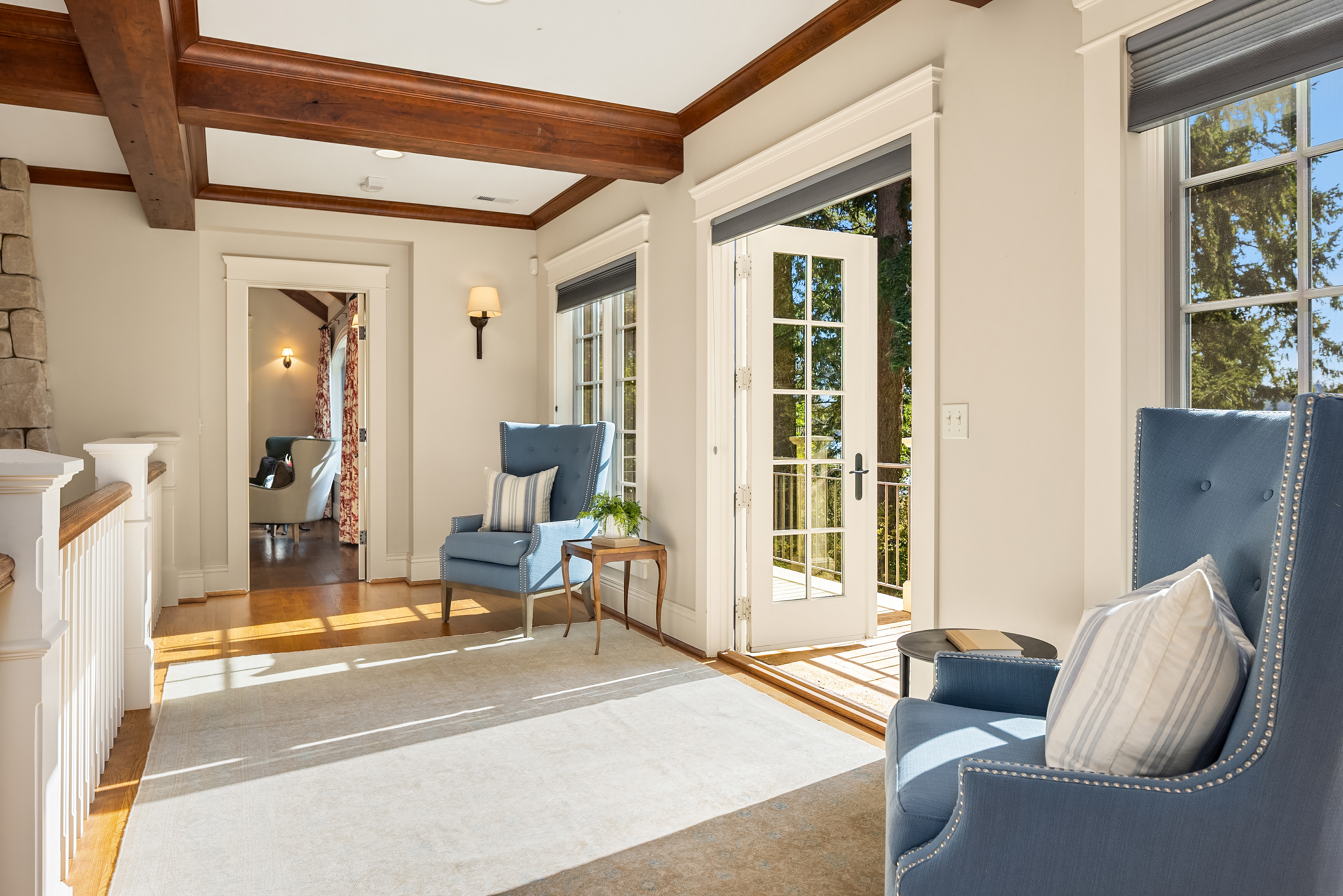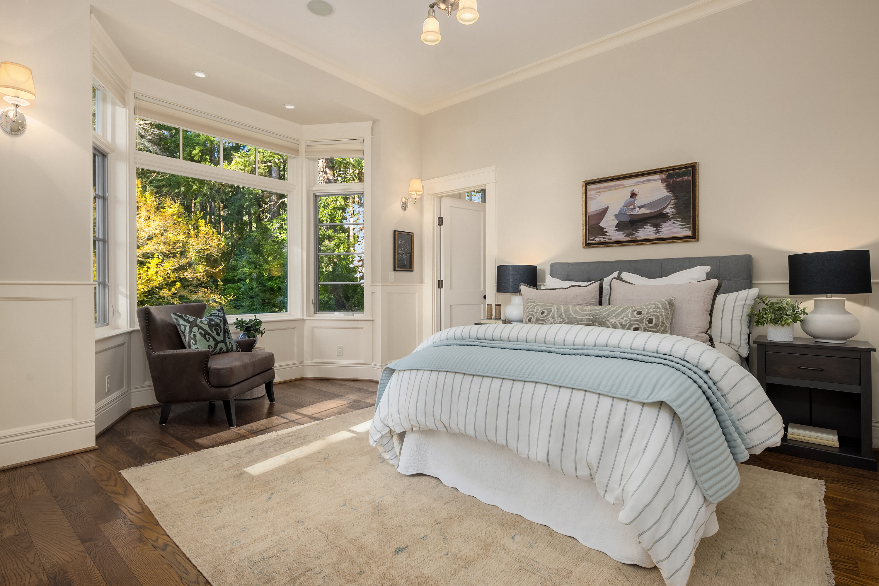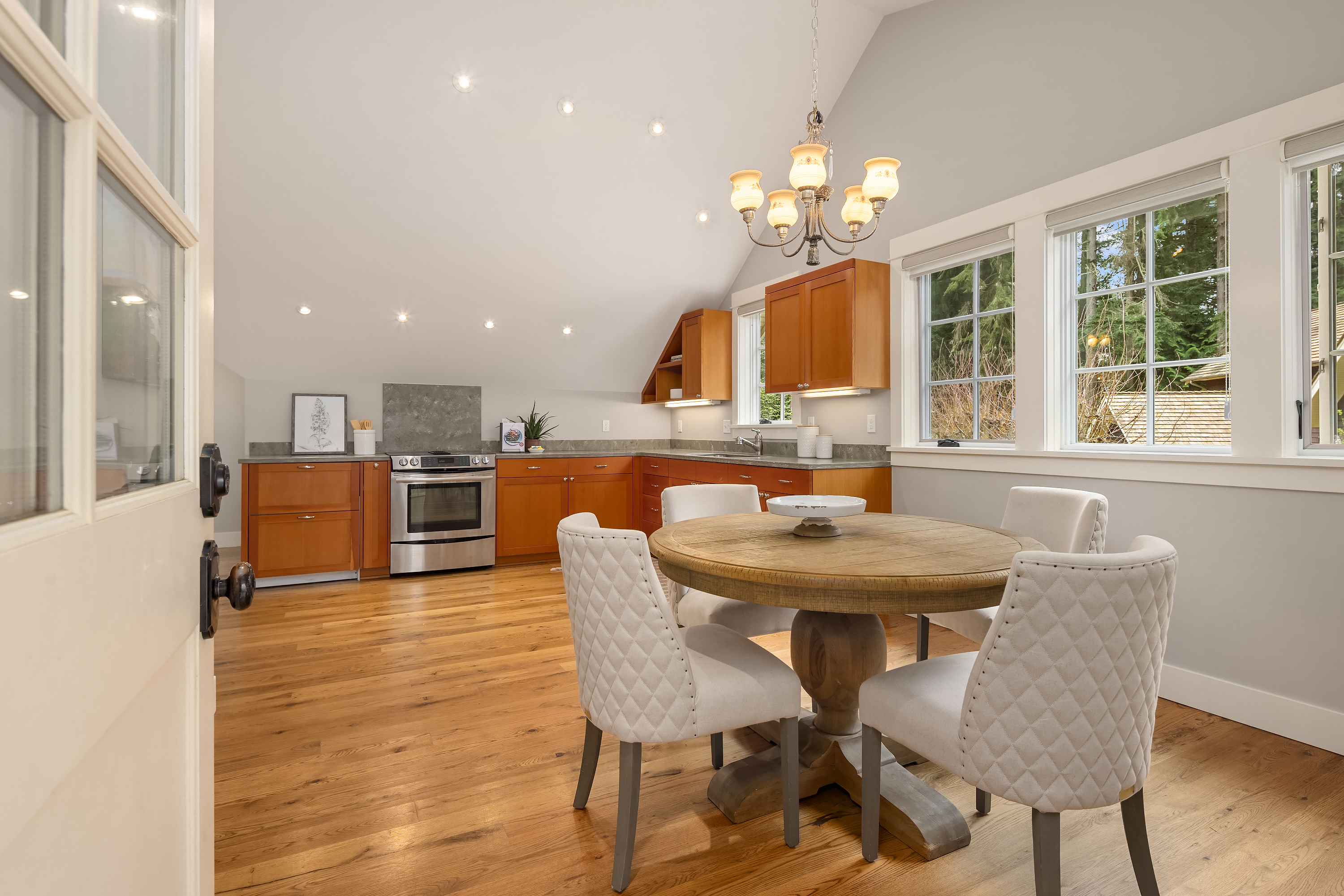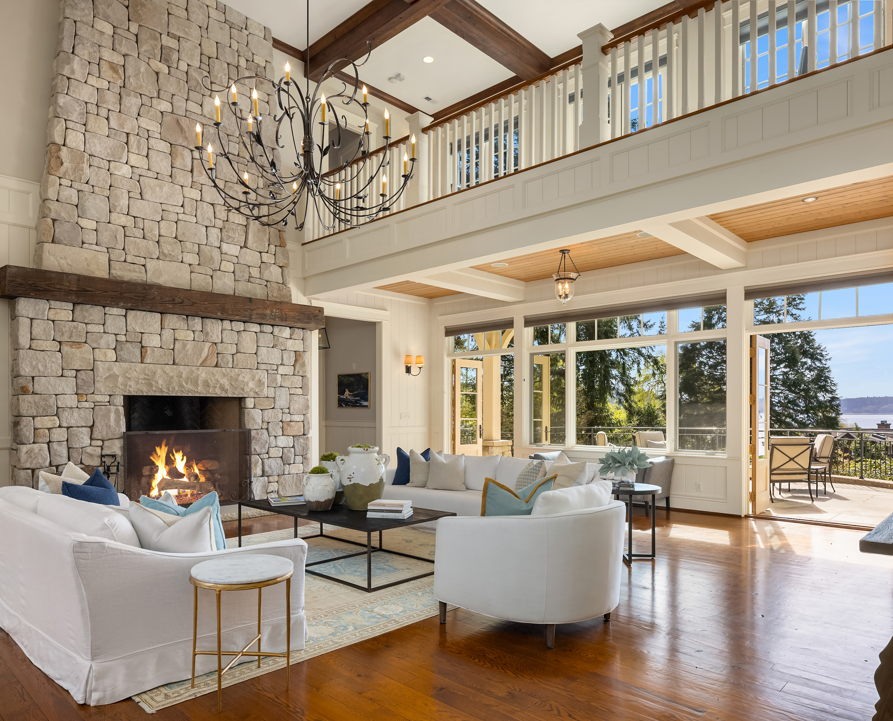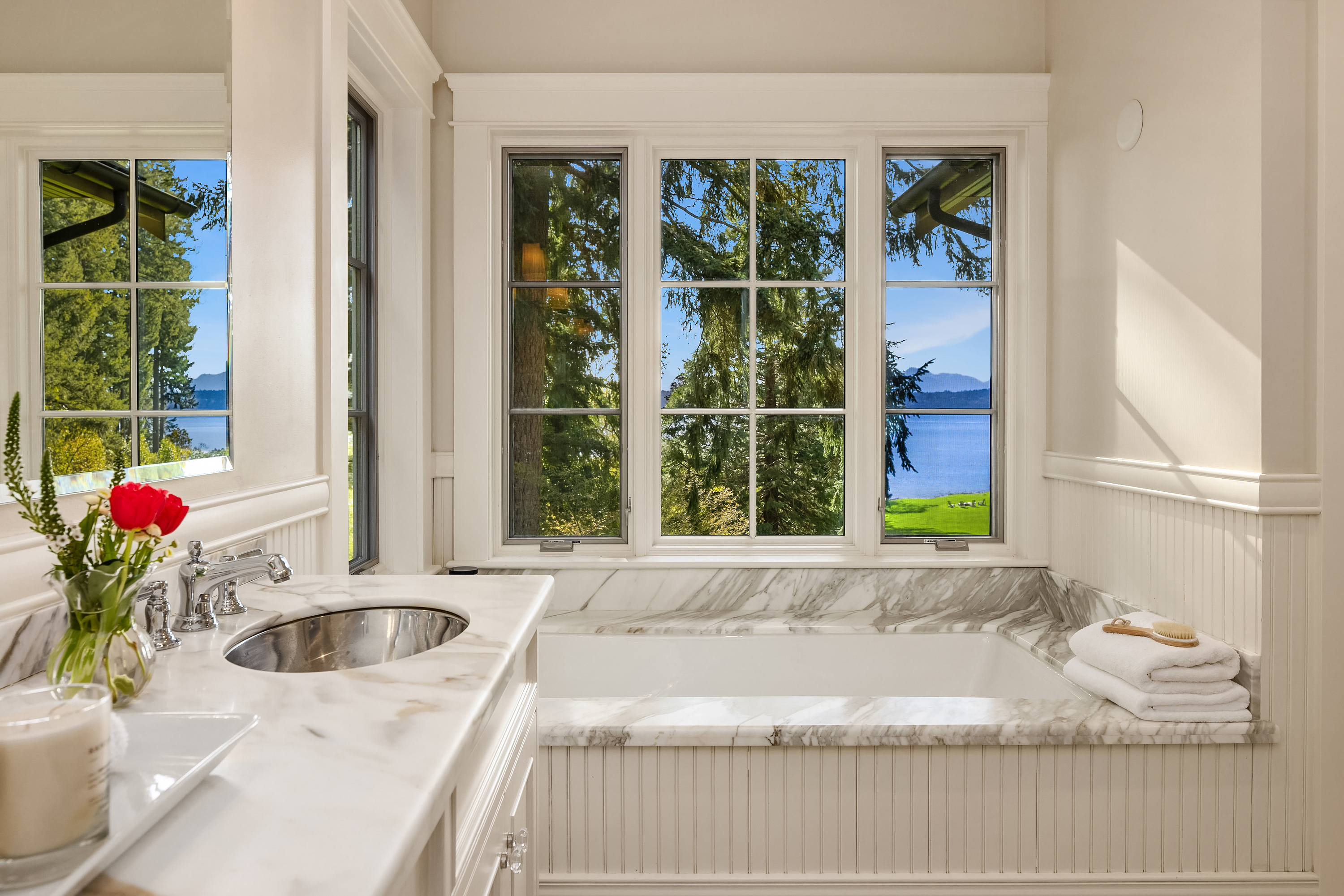 Meander down this private drive lined with stunning maple trees to an extraordinary French Country estate designed by Robert Maloney, Architect. The home is perfectly sited on 3.86 acres with beautiful west-facing views of Puget Sound and the Olympic Mountains. Natural light and the feel of a gracious East Coast coastal estate. French doors open to multiple entertaining patios to enjoy the indoor/outdoor lifestyle we love. Epicurean eat-in kitchen w/marble counters and a Lacanche 72-inch range. Wide-planked hardwoods, wrought-iron chandeliers and 6 fireplaces throughout. The magnificent primary suite w/fabulous views, private office and spa like bath. A 4-car garage and 2-bedroom guest house w/full bath. A perfect Island waterfront retreat!