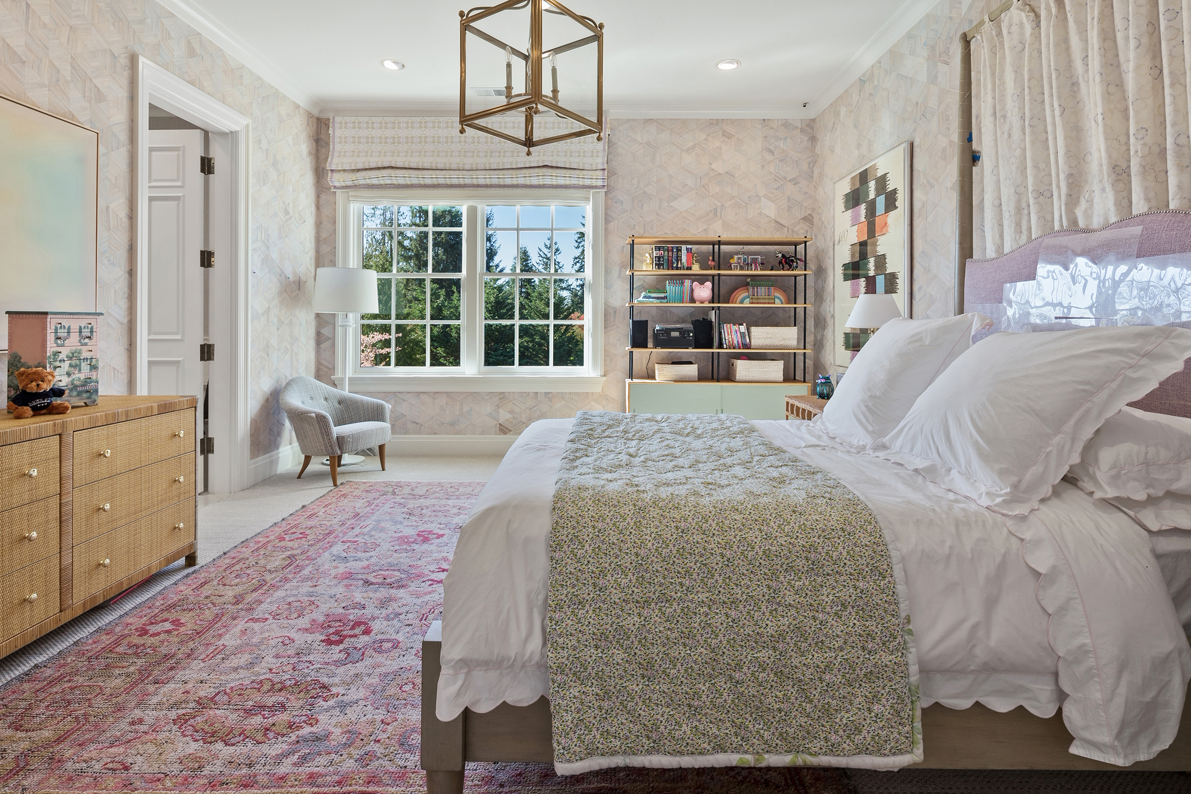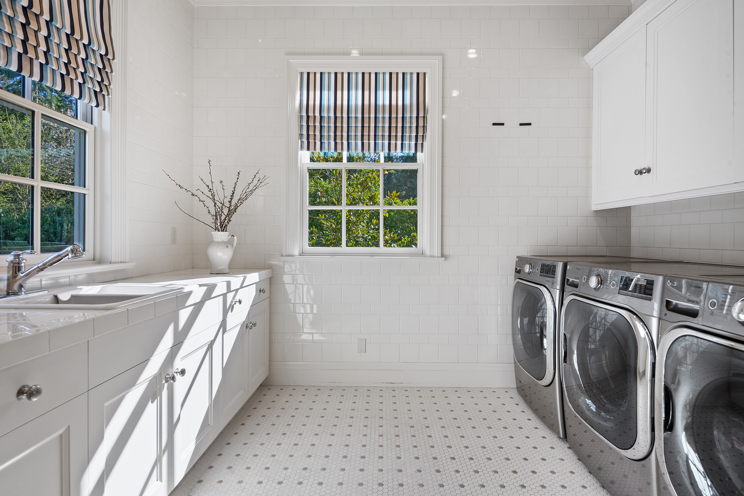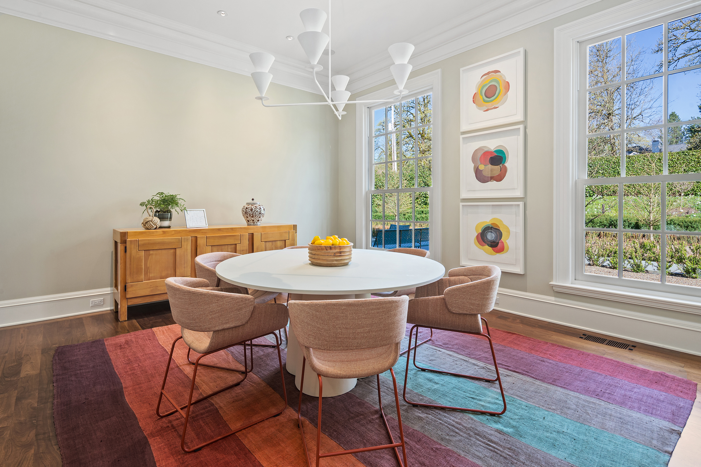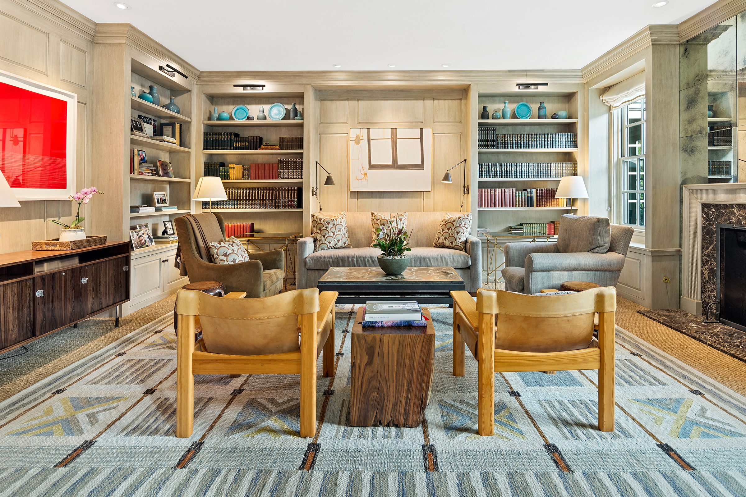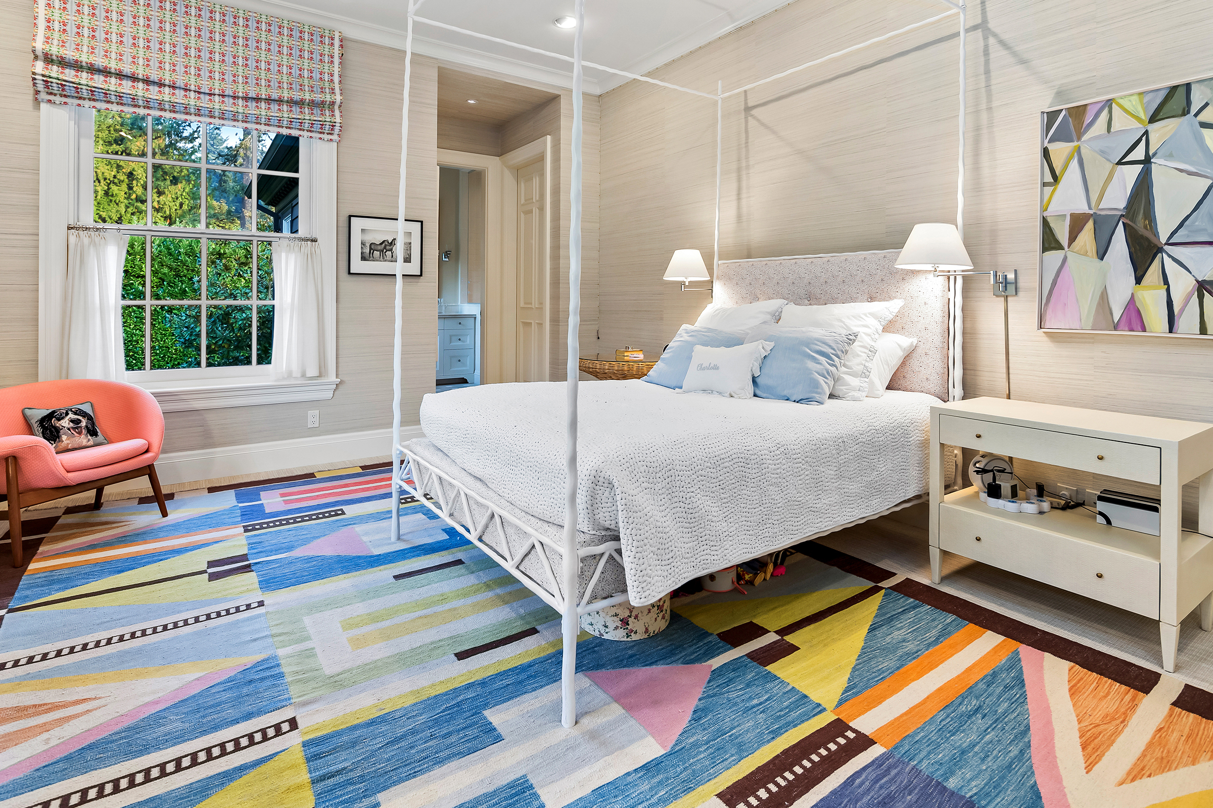 This stunning and luxurious Dunthorpe estate is an architectural and design work of art that exudes elegance, grace, and sophistication in every detail. Step through the front door and into the grand foyer, and you are greeted by soaring ceilings, a breathtaking view of the grand swimming pool, and meticulously landscaped gardens of the private 1.1-acre lot. Beverly Hills designer Stephan Jones oversaw the home's extensive renovation. Every room showcases a collection of custom draperies and wallpapers, stunning designer light fixtures, and expertly curated colors and design materials that give this retreat a sense of cohesive serenity. The main floor features a grand living room, gas fireplace, and French doors opening to the patio overlooking the manicured grounds. Enjoy a quiet moment by the fireplace in the library or settle in for work in the spacious office with built-ins galore. Down the hall, the chef's kitchen with gourmet appliances and a new Sub-Zero refrigerator/freezer opens to the great room, perfect for family lounging, and a breakfast nook with French doors exiting to the backyard. The formal dining room offers abundant room to entertain. Head upstairs to the five spacious ensuite bedrooms and additional guest quarters. The primary suite is a haven of relaxation with breathtaking property views, a cozy fireplace, and custom wallpaper and draperies. Primary bathroom highlights include the soaking tub, heated floors, and extensive walk-in closet with private laundry/valet. Down the hall are four additional ensuite bedrooms, an oversized family laundry room, a large playroom, plus a guest/nanny suite with sleeping quarters and kitchenette, ensuring comfort and privacy. The home's lowest level is equally impressive, with a workout space, temperature-controlled wine room, multiple storage rooms, and fully updated top-of-the-line HVAC systems. Outdoor features include an expansive turf lawn, raised beds, a chicken coop, a dog run, and more.