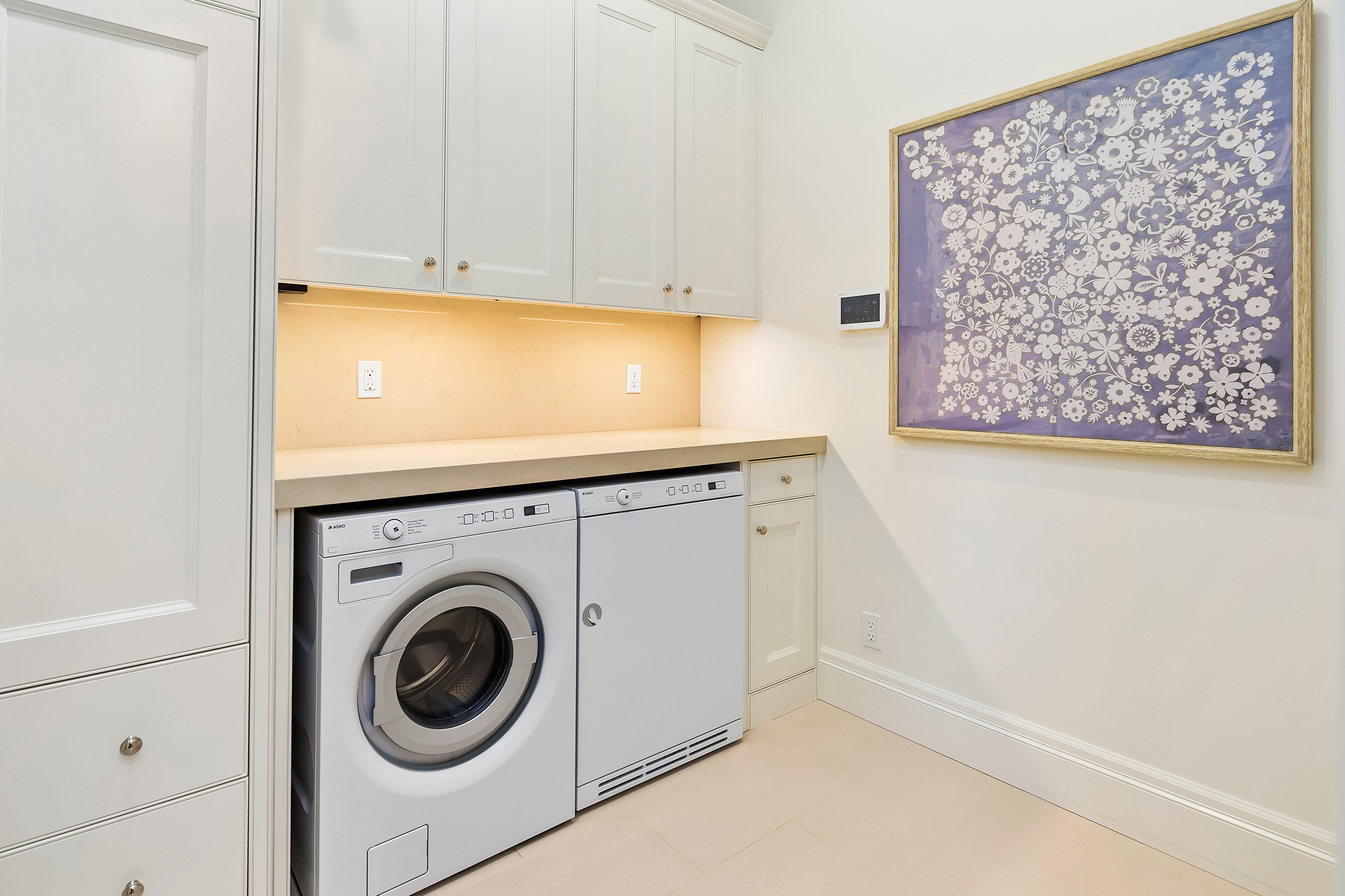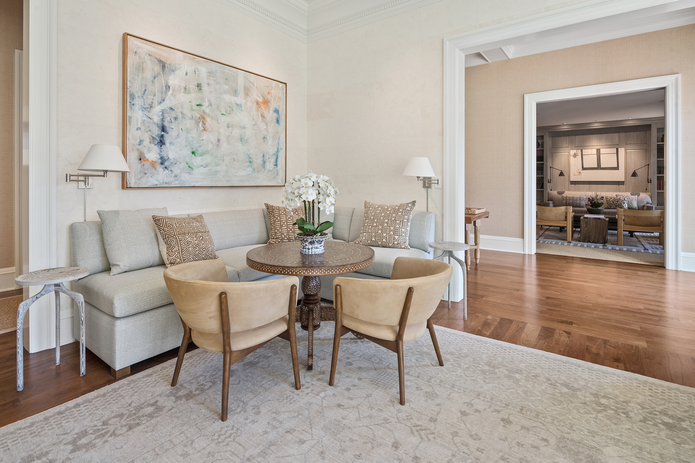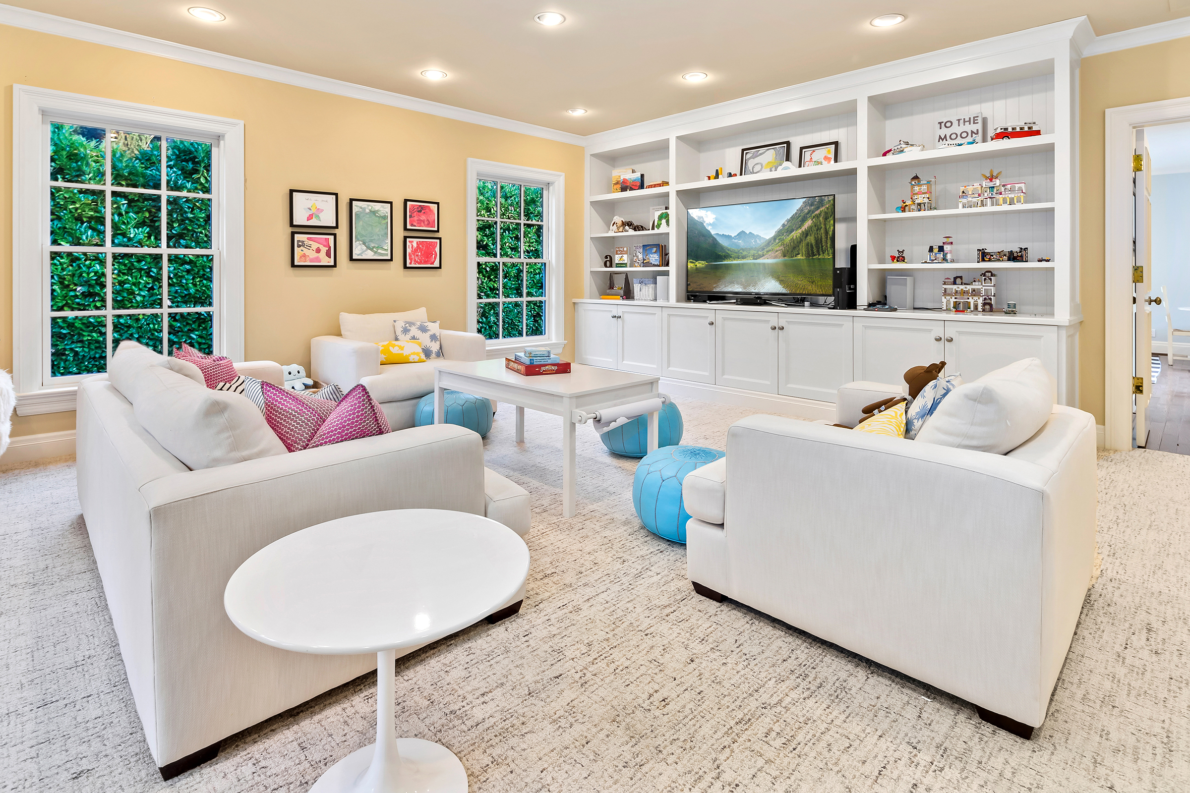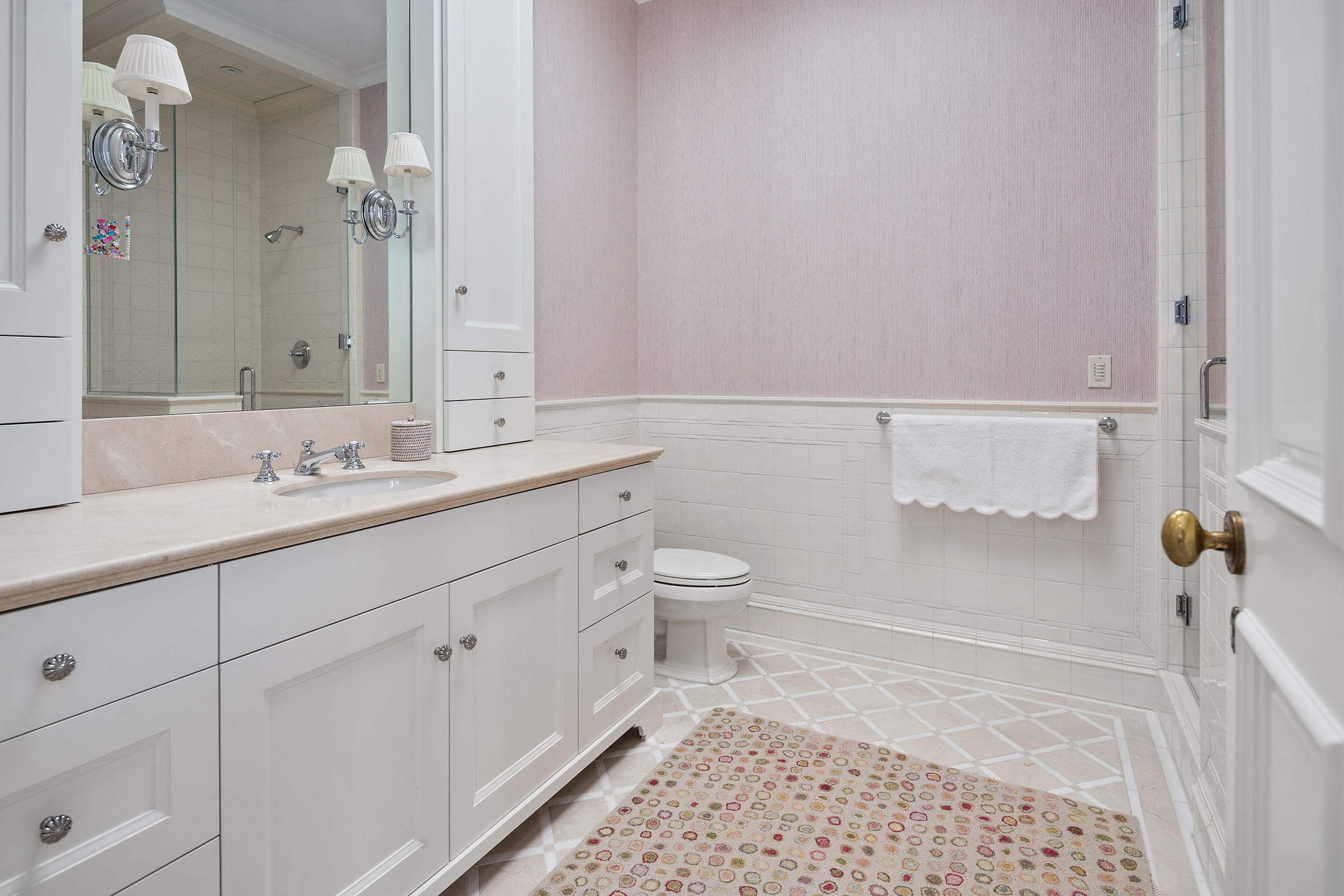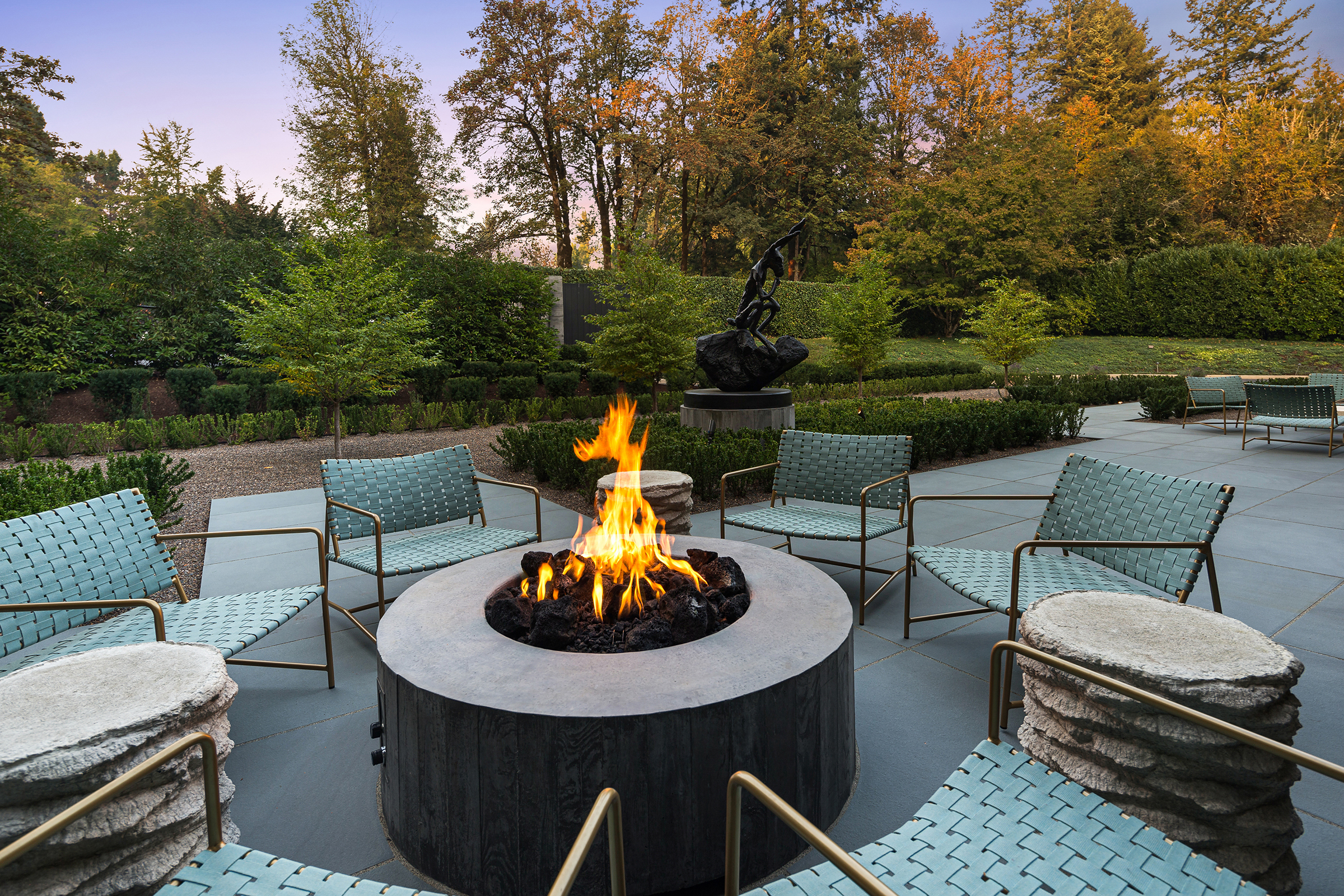 This stunning and luxurious Dunthorpe estate is an architectural and design work of art that exudes elegance, grace, and sophistication in every detail. Step through the front door and into the grand foyer, and you are greeted by soaring ceilings, a breathtaking view of the grand swimming pool, and meticulously landscaped gardens of the private 1.1-acre lot. Beverly Hills designer Stephan Jones oversaw the home's extensive renovation. Every room showcases a collection of custom draperies and wallpapers, stunning designer light fixtures, and expertly curated colors and design materials that give this retreat a sense of cohesive serenity. The main floor features a grand living room, gas fireplace, and French doors opening to the patio overlooking the manicured grounds. Enjoy a quiet moment by the fireplace in the library or settle in for work in the spacious office with built-ins galore. Down the hall, the chef's kitchen with gourmet appliances and a new Sub-Zero refrigerator/freezer opens to the great room, perfect for family lounging, and a breakfast nook with French doors exiting to the backyard. The formal dining room offers abundant room to entertain. Head upstairs to the five spacious ensuite bedrooms and additional guest quarters. The primary suite is a haven of relaxation with breathtaking property views, a cozy fireplace, and custom wallpaper and draperies. Primary bathroom highlights include the soaking tub, heated floors, and extensive walk-in closet with private laundry/valet. Down the hall are four additional ensuite bedrooms, an oversized family laundry room, a large playroom, plus a guest/nanny suite with sleeping quarters and kitchenette, ensuring comfort and privacy. The home's lowest level is equally impressive, with a workout space, temperature-controlled wine room, multiple storage rooms, and fully updated top-of-the-line HVAC systems. Outdoor features include an expansive turf lawn, raised beds, a chicken coop, a dog run, and more.