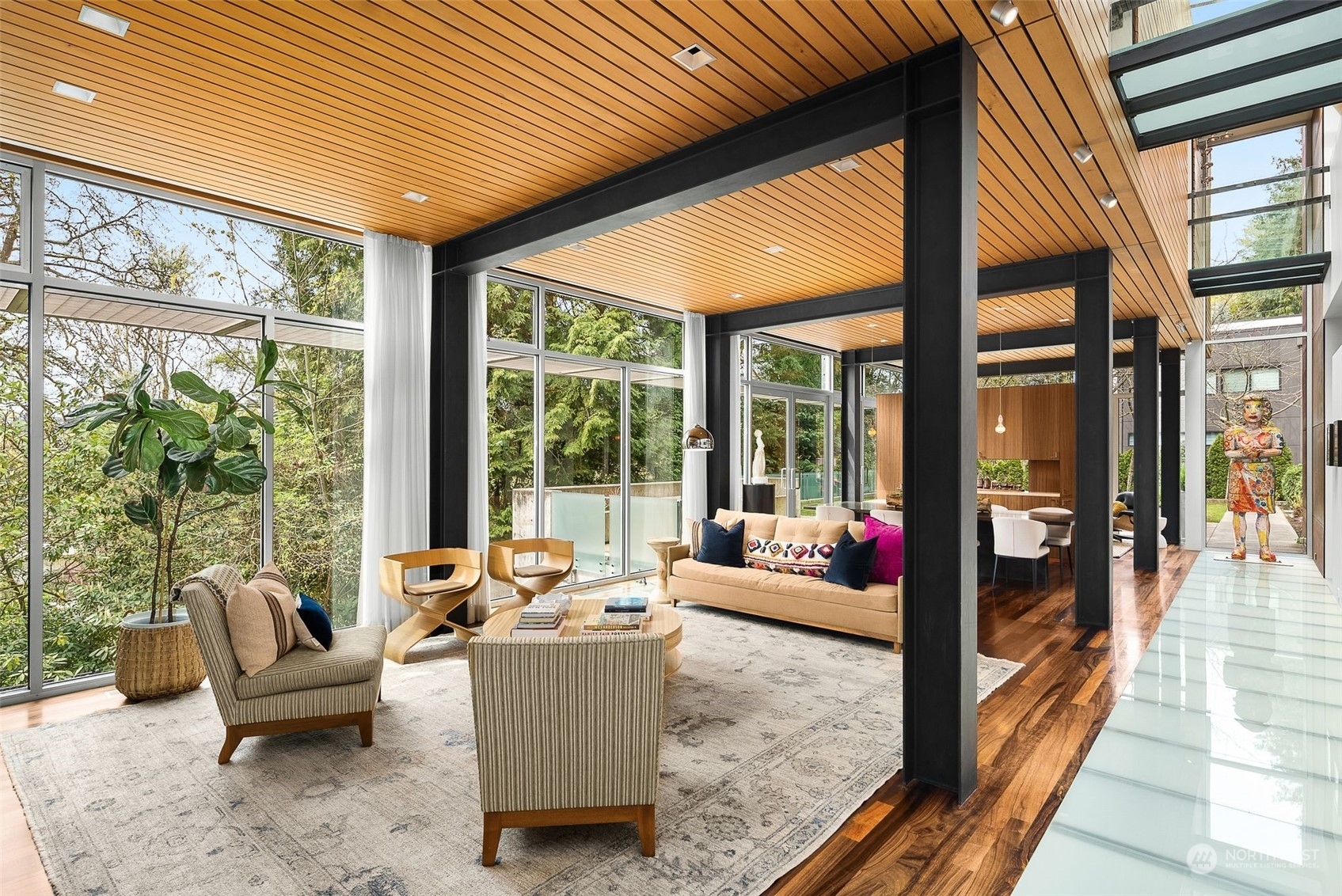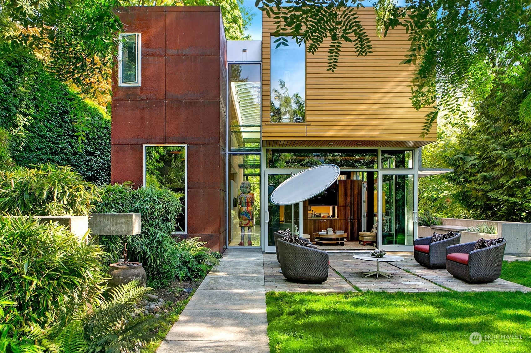 Elegantly designed architectural masterpiece unfolds on a surprising in-city oasis. Nestled within a lush tapestry of mature trees and verdant foliage; a private haven bathed in natural light. Sleek, daring lines meet cozy comfort, offering a luxurious, versatile living experience. A bold playful twist on classic Northwest Contemporary style. Revel in your own urban sanctuary—perfect for entertaining, unwinding, or a lively game of hide-and-seek. Steel & concrete construction, boasting dual two-car garages, radiant heat, A/C, and enduring quality. Just a hop, skip or jump away from parks, shops, and transit in one of Seattle’s most sought-after neighborhoods. Indulge in unrivaled craftsmanship - inside and out.