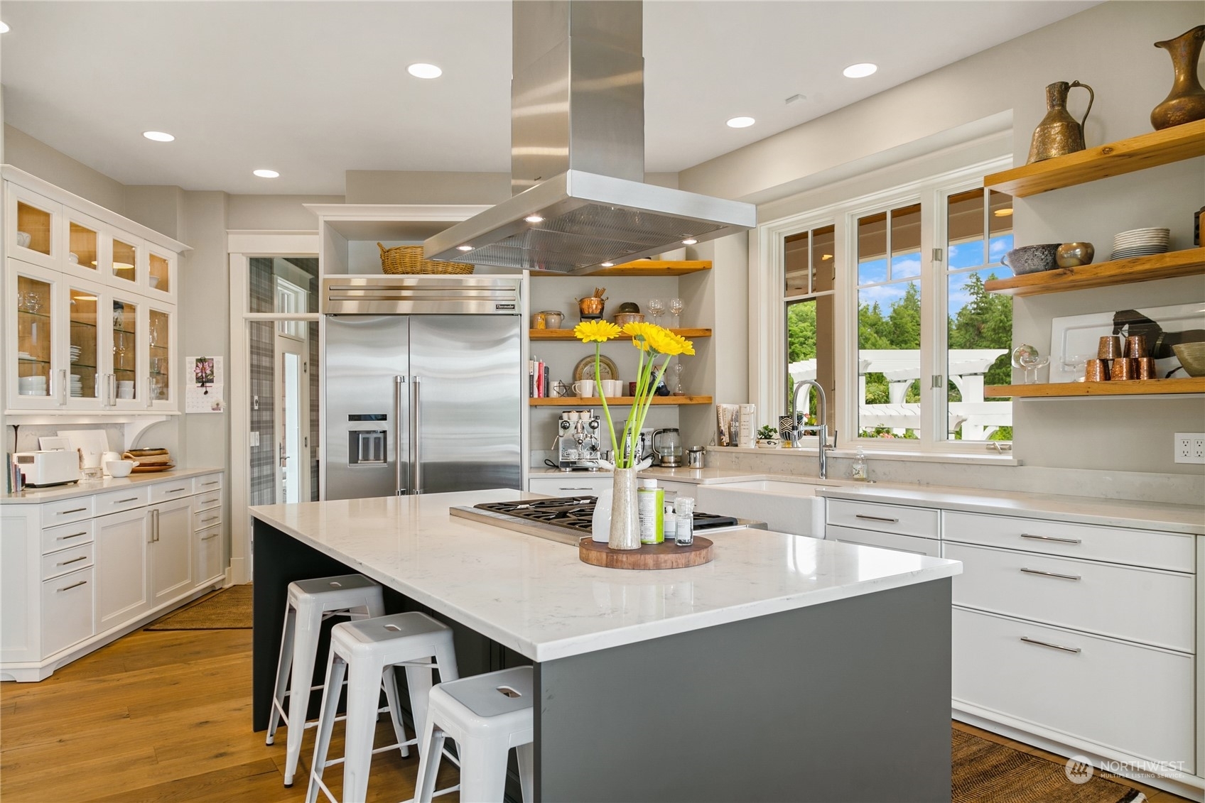 Saratoga Stables–a magnificent gated 17+ acre equestrian estate w/panoramic SW views of Saratoga Passage. Exceptional 5,400+ SF Hamptons-inspired home w/tasteful, high-end restoration including a true chef’s kitchen w/SieMatic cabinets & Thermador Professional appliances. 5BR 6BA designer fixtures, zinc & wine barrel wood bar, in-floor radiant heat, wide-planked oak floors, 600 bottle custom wine cellar. Indoor 100’ X 200’ dressage riding arena & 9 stall barn, 2 grooming stalls, tack room & bath. 6 total tax lots incl fenced pastures & undeveloped 8 acres. Huge garage w/custom cabinets, commercial generator & fully irrigated grounds. Meticulously maintained & spectacularly appointed w/breathtaking views-this is the rarest of opportunities!