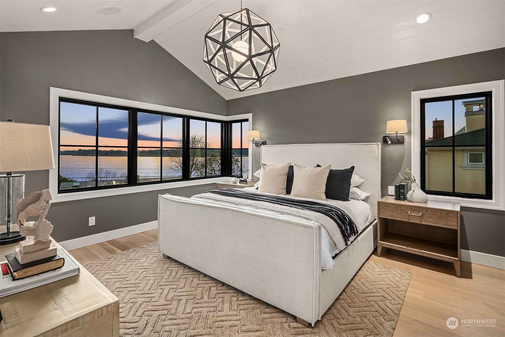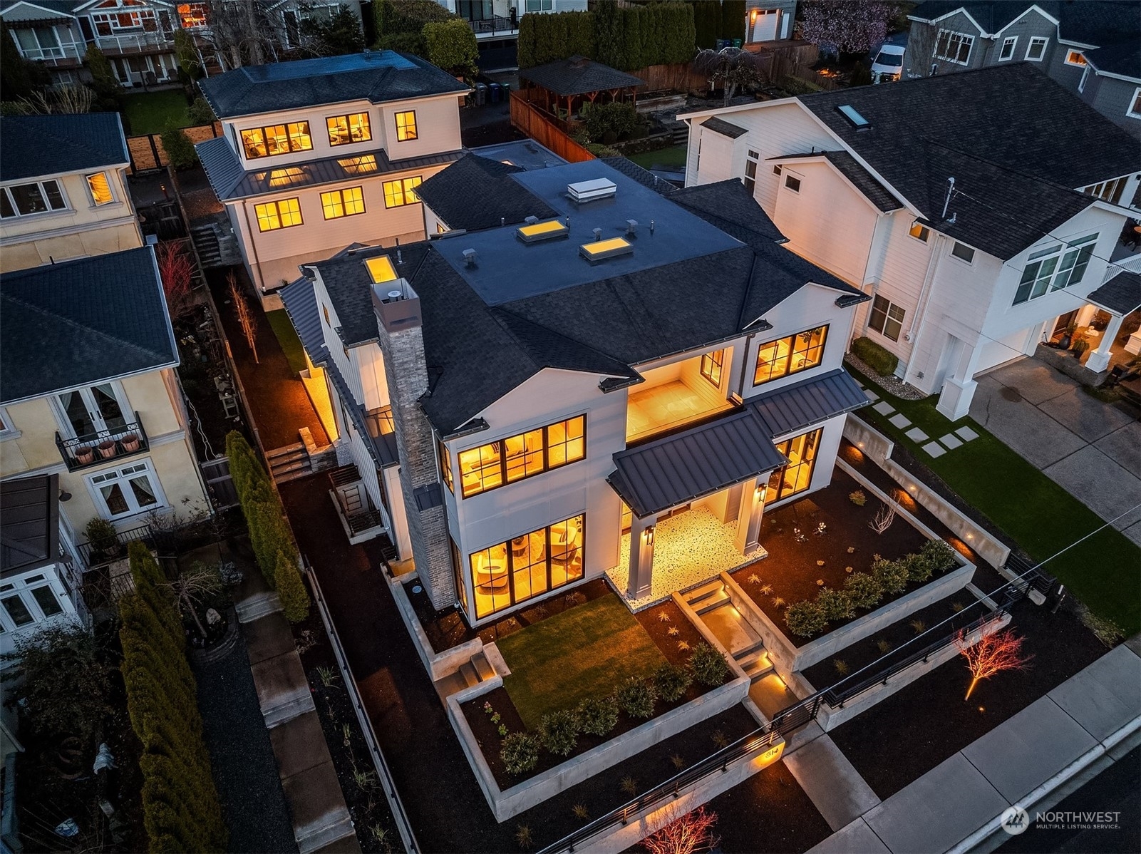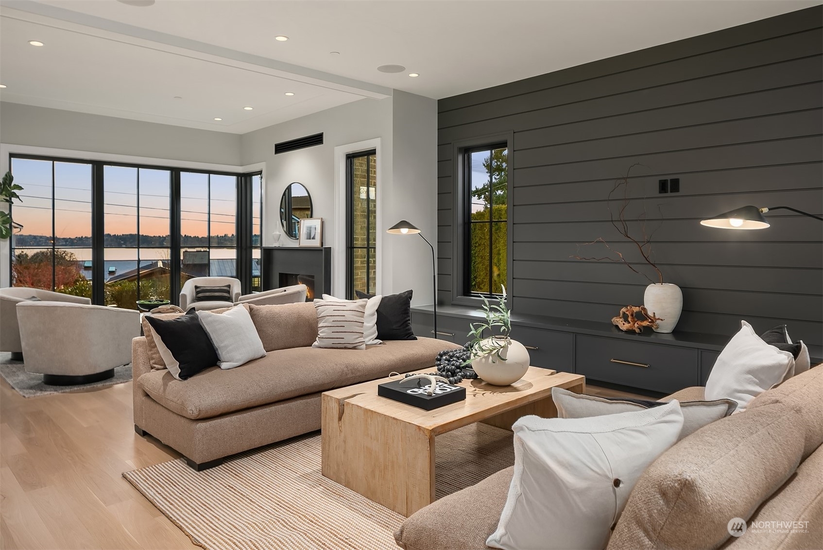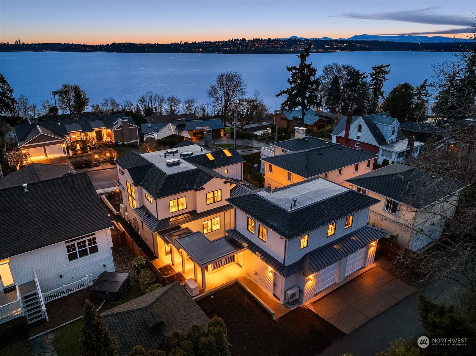 Experience the epitome of bespoke West of Market living. This custom designed and newly completed west-facing view home is beyond compare with no expense spared in design + finish; outfitted with designer lighting + plumbing fixtures, the latest home tech, extensive built-ins + closet systems, and so much more. Take in lake, mountain, and Seattle Skyline views from the elevator-ready, 5 bed + rec + office main home, as well as the ADU (equipped w a kitchenette + 3/4 bath) located above the two-car garage. Luxuriate in the sumptuous primary suite: 180-degree views, vaulted ceilings, covered view deck, and dreamy spa-inspired bath with Hansgrohe Rainfinity shower. Remarkable proximity to lively dt Kirkland amenities and Waverly Beach Park.