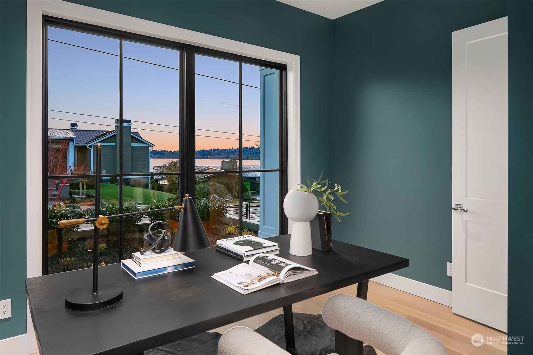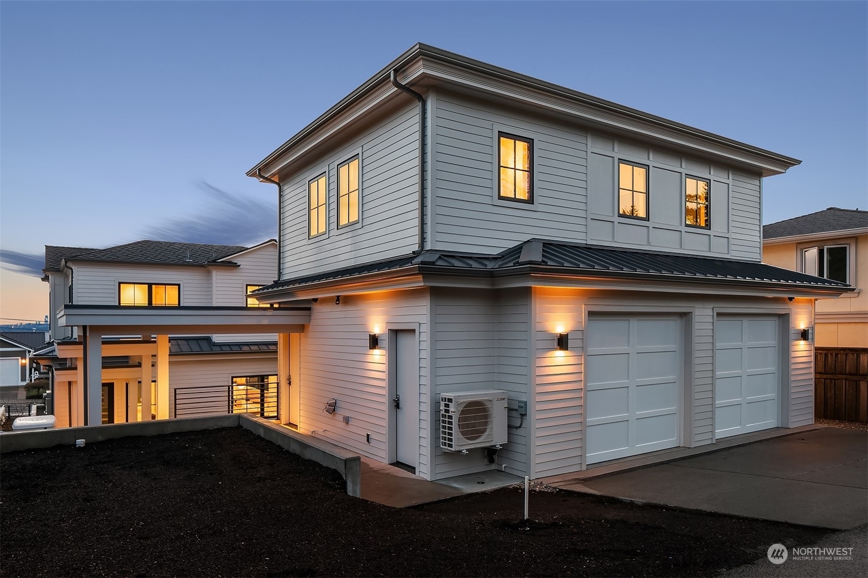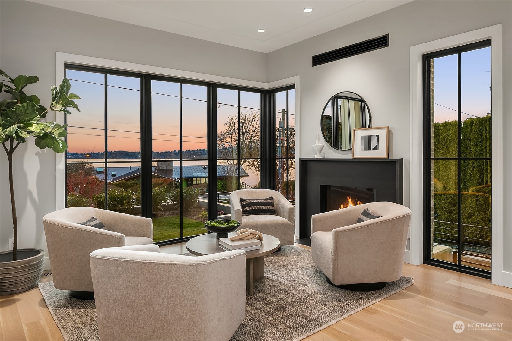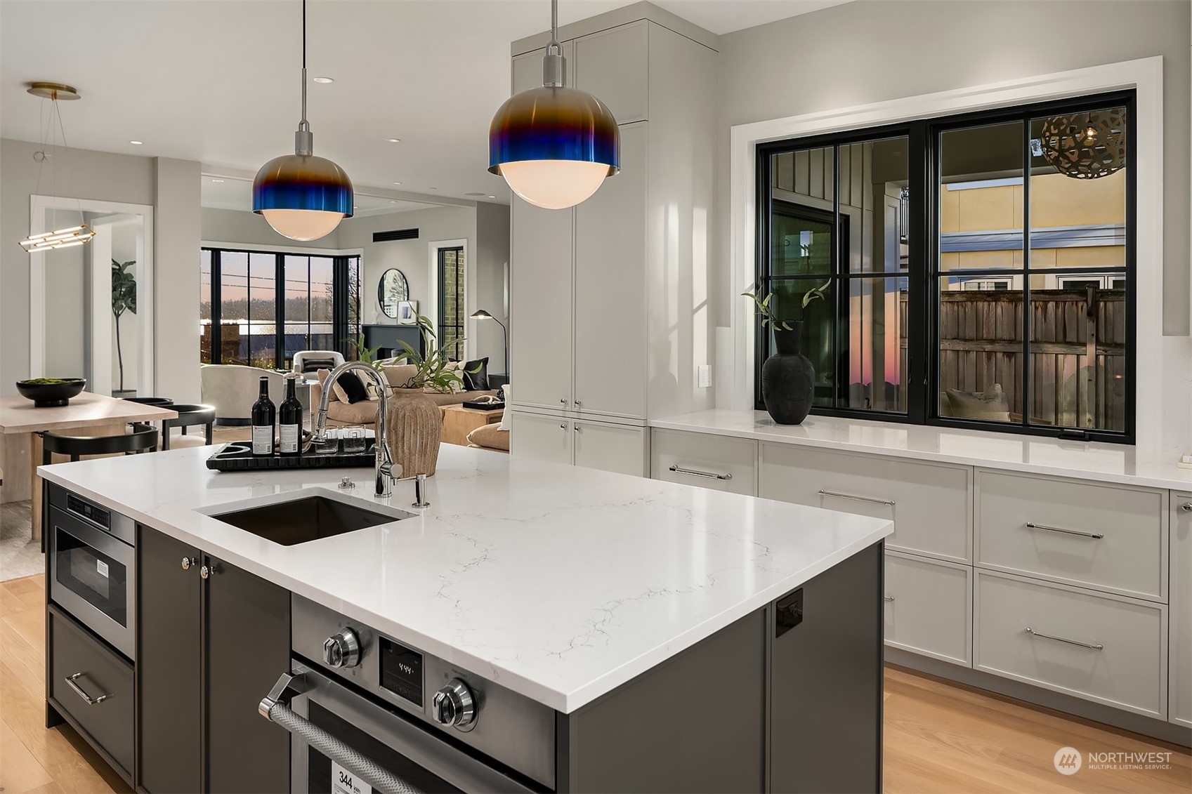 Experience the epitome of bespoke West of Market living. This custom designed and newly completed west-facing view home is beyond compare with no expense spared in design + finish; outfitted with designer lighting + plumbing fixtures, the latest home tech, extensive built-ins + closet systems, and so much more. Take in lake, mountain, and Seattle Skyline views from the elevator-ready, 5 bed + rec + office main home, as well as the ADU (equipped w a kitchenette + 3/4 bath) located above the two-car garage. Luxuriate in the sumptuous primary suite: 180-degree views, vaulted ceilings, covered view deck, and dreamy spa-inspired bath with Hansgrohe Rainfinity shower. Remarkable proximity to lively dt Kirkland amenities and Waverly Beach Park.