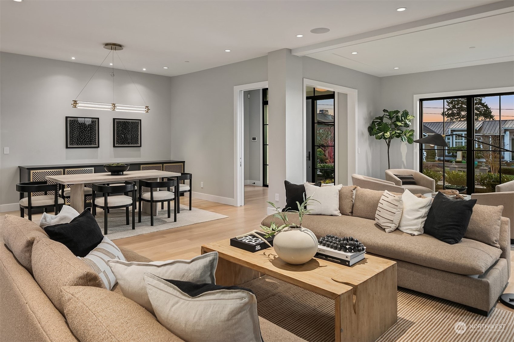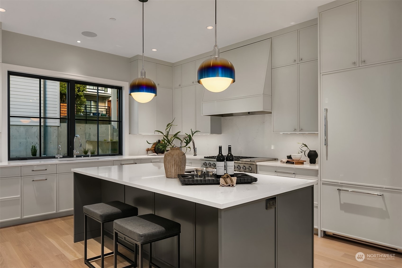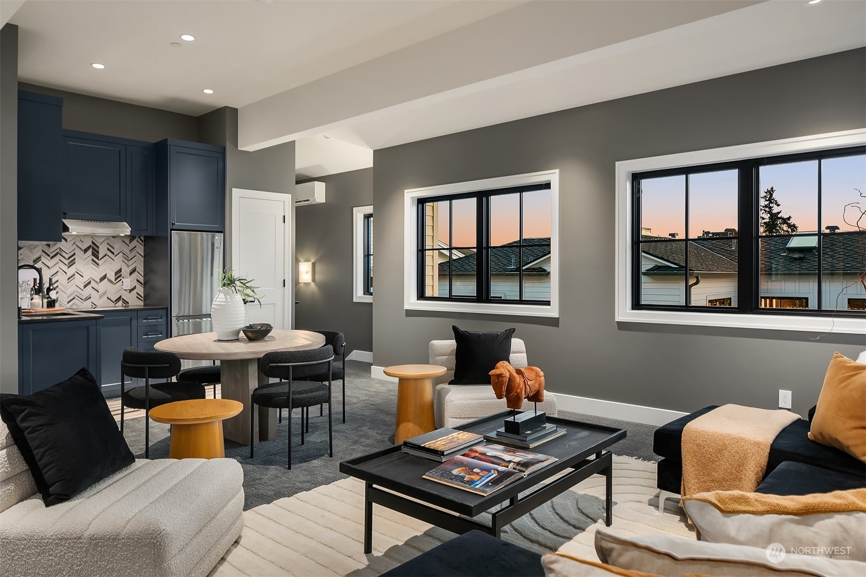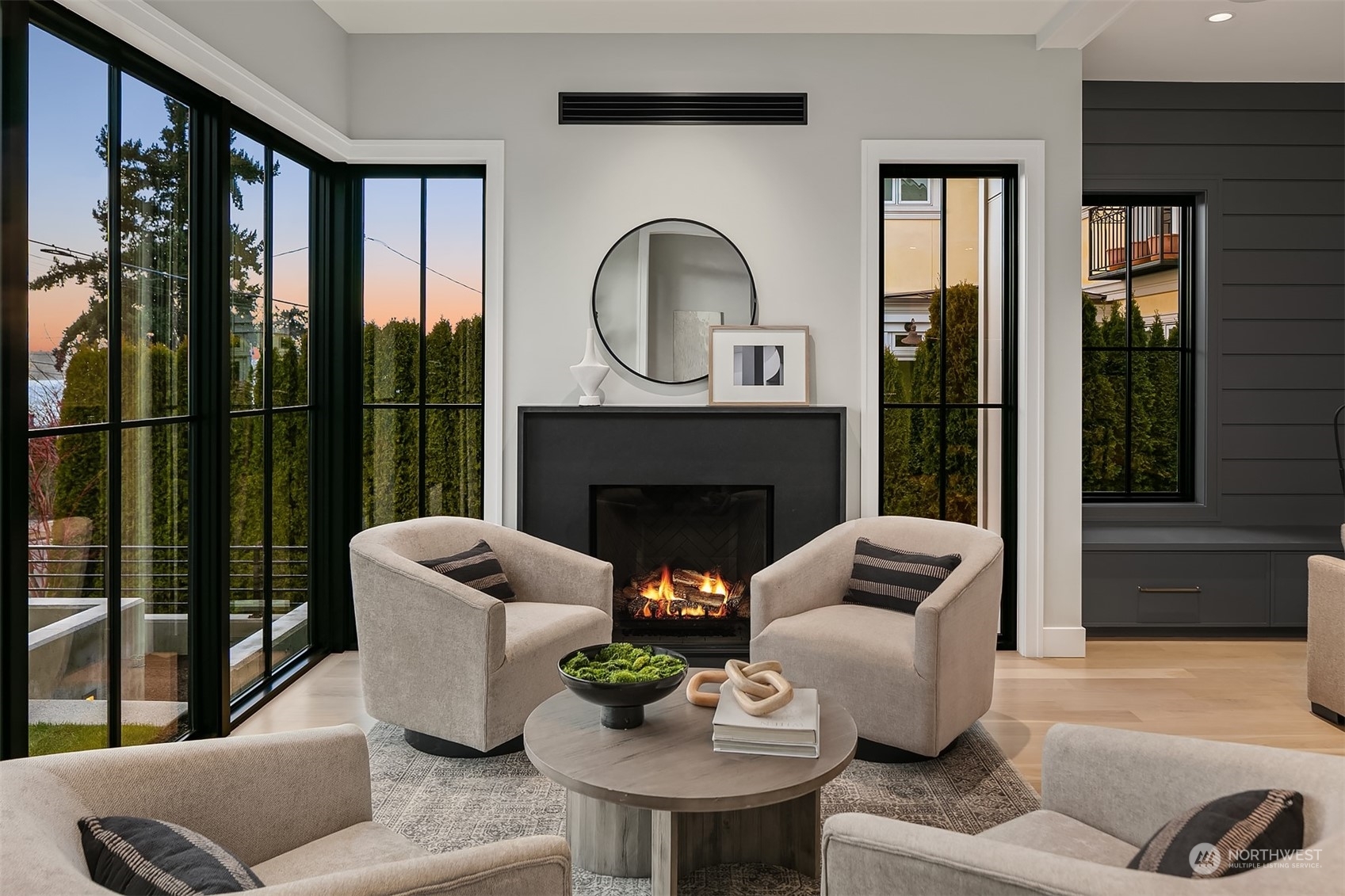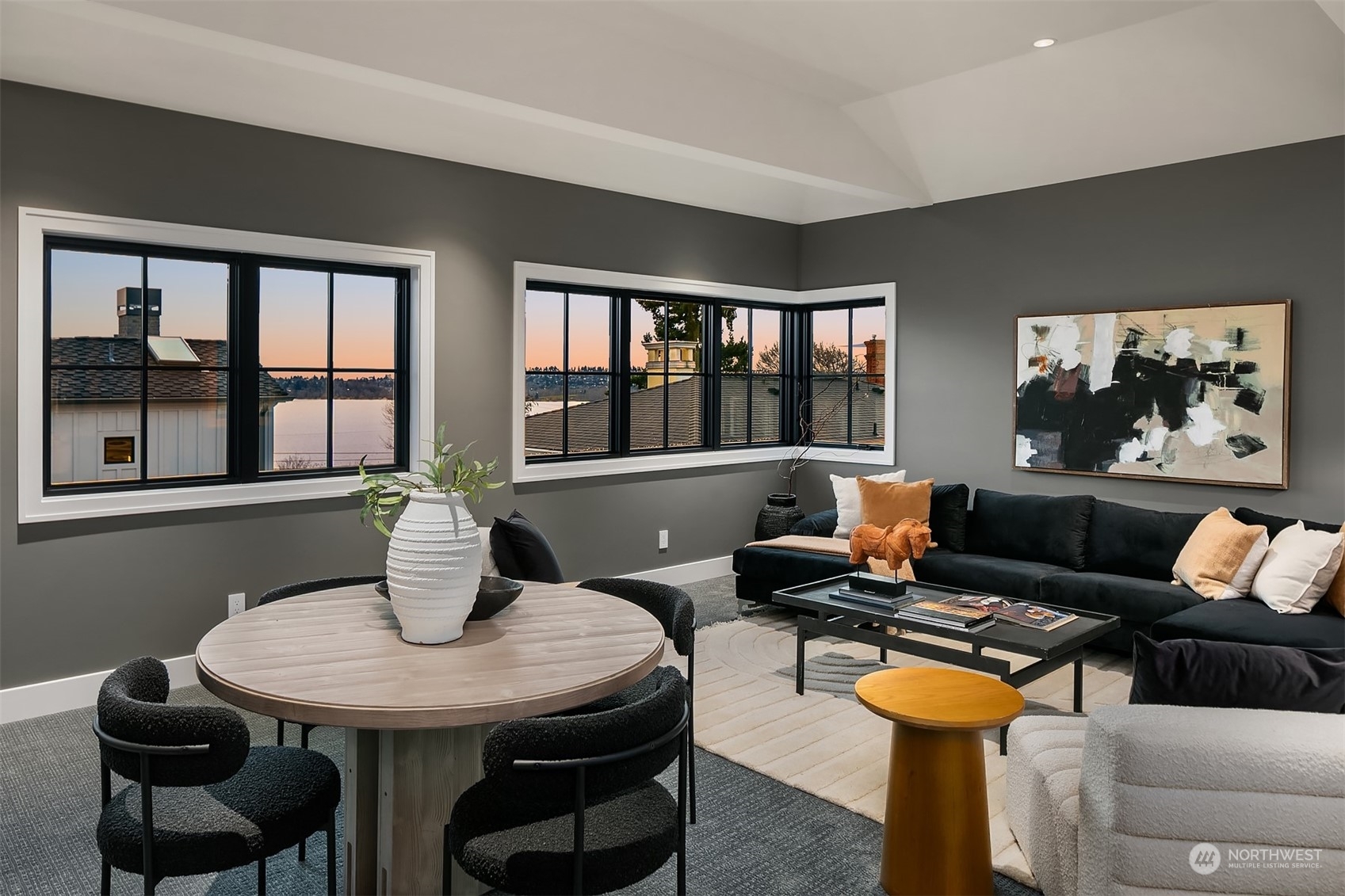 Experience the epitome of bespoke West of Market living. This custom designed and newly completed west-facing view home is beyond compare with no expense spared in design + finish; outfitted with designer lighting + plumbing fixtures, the latest home tech, extensive built-ins + closet systems, and so much more. Take in lake, mountain, and Seattle Skyline views from the elevator-ready, 5 bed + rec + office main home, as well as the ADU (equipped w a kitchenette + 3/4 bath) located above the two-car garage. Luxuriate in the sumptuous primary suite: 180-degree views, vaulted ceilings, covered view deck, and dreamy spa-inspired bath with Hansgrohe Rainfinity shower. Remarkable proximity to lively dt Kirkland amenities and Waverly Beach Park.