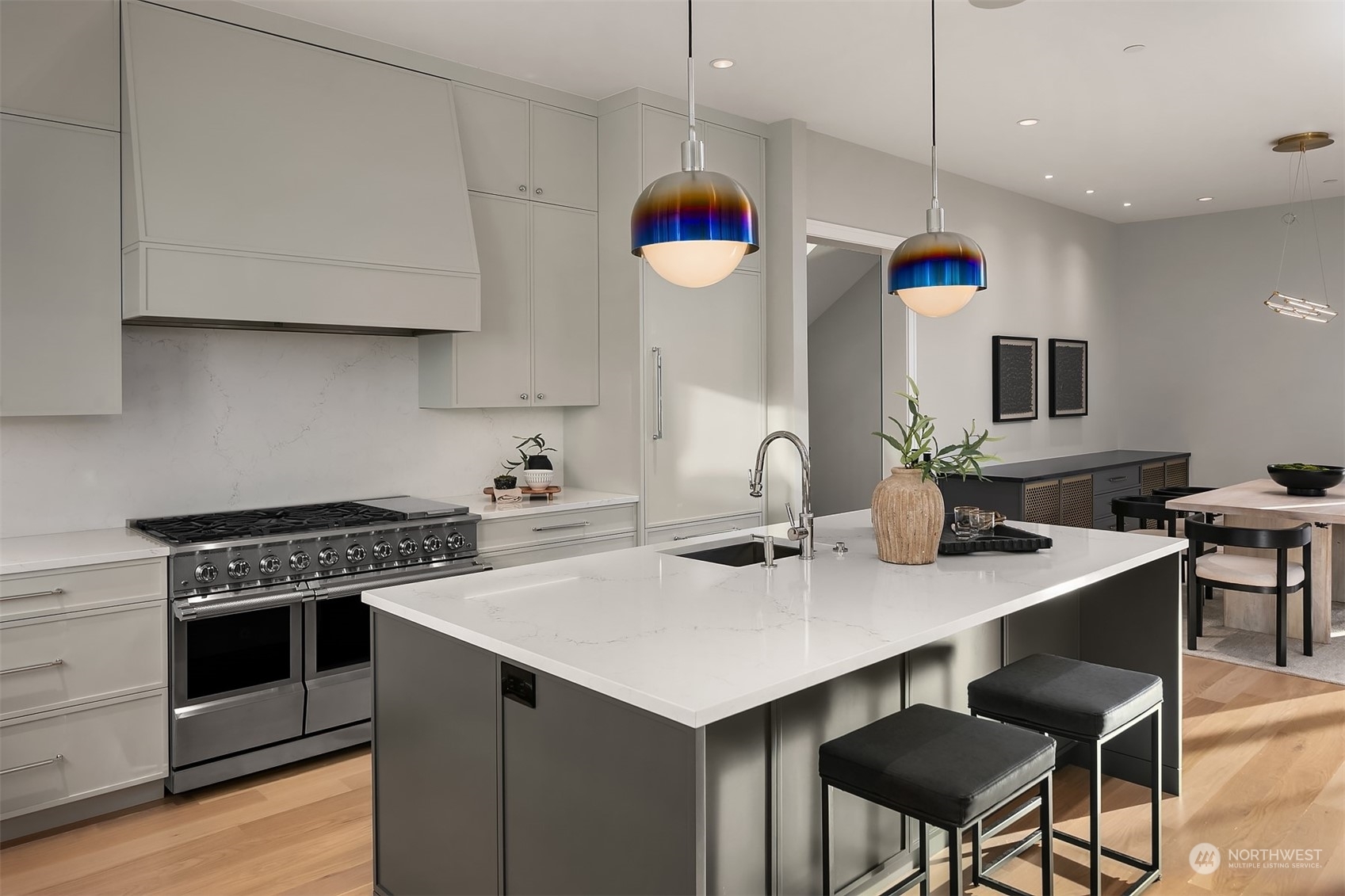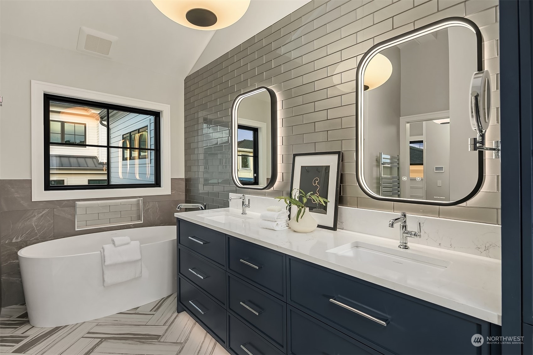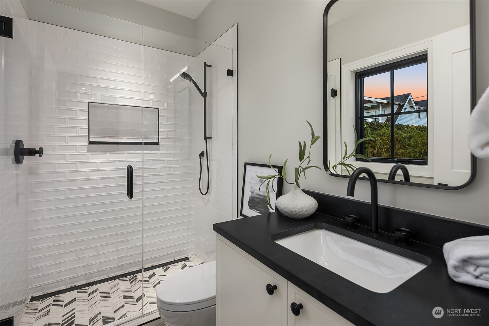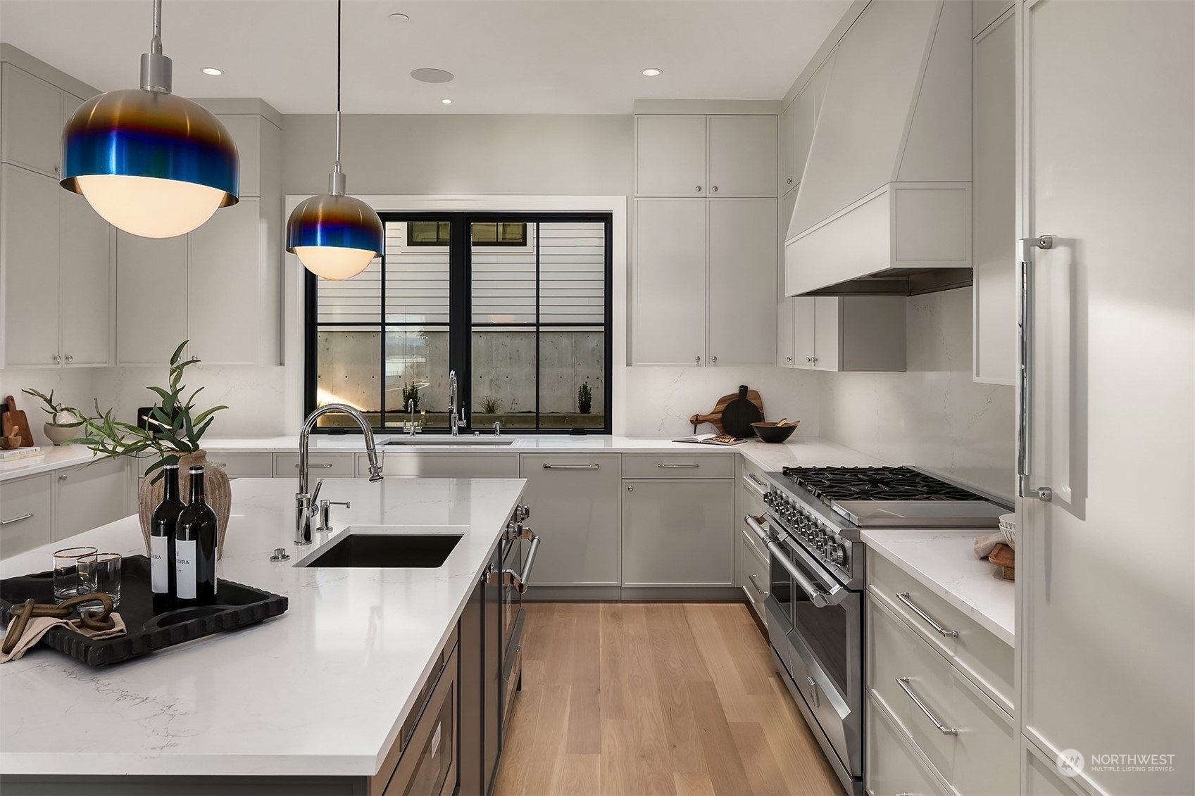 Experience the epitome of bespoke West of Market living. This custom designed and newly completed west-facing view home is beyond compare with no expense spared in design + finish; outfitted with designer lighting + plumbing fixtures, the latest home tech, extensive built-ins + closet systems, and so much more. Take in lake, mountain, and Seattle Skyline views from the elevator-ready, 5 bed + rec + office main home, as well as the ADU (equipped w a kitchenette + 3/4 bath) located above the two-car garage. Luxuriate in the sumptuous primary suite: 180-degree views, vaulted ceilings, covered view deck, and dreamy spa-inspired bath with Hansgrohe Rainfinity shower. Remarkable proximity to lively dt Kirkland amenities and Waverly Beach Park.
