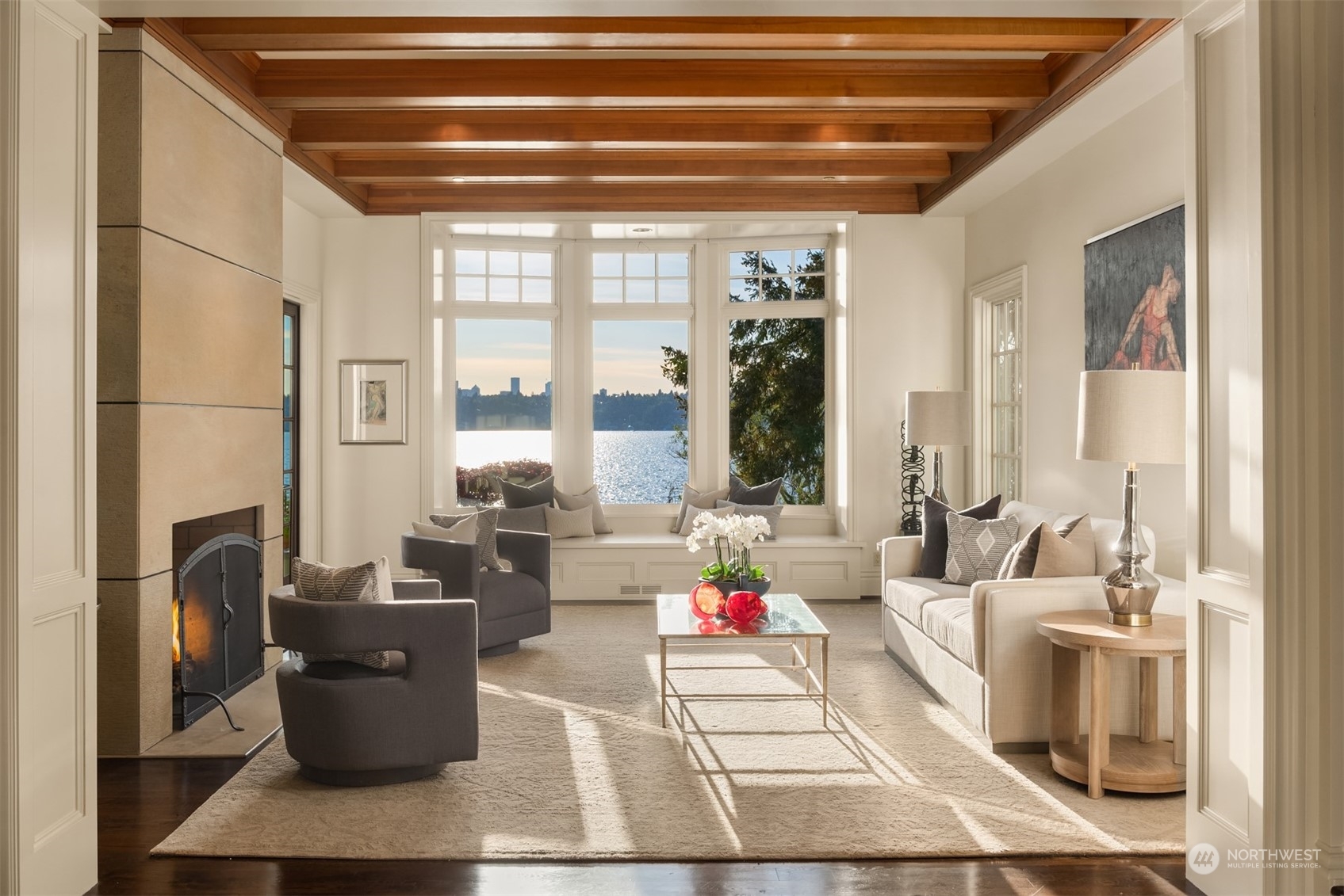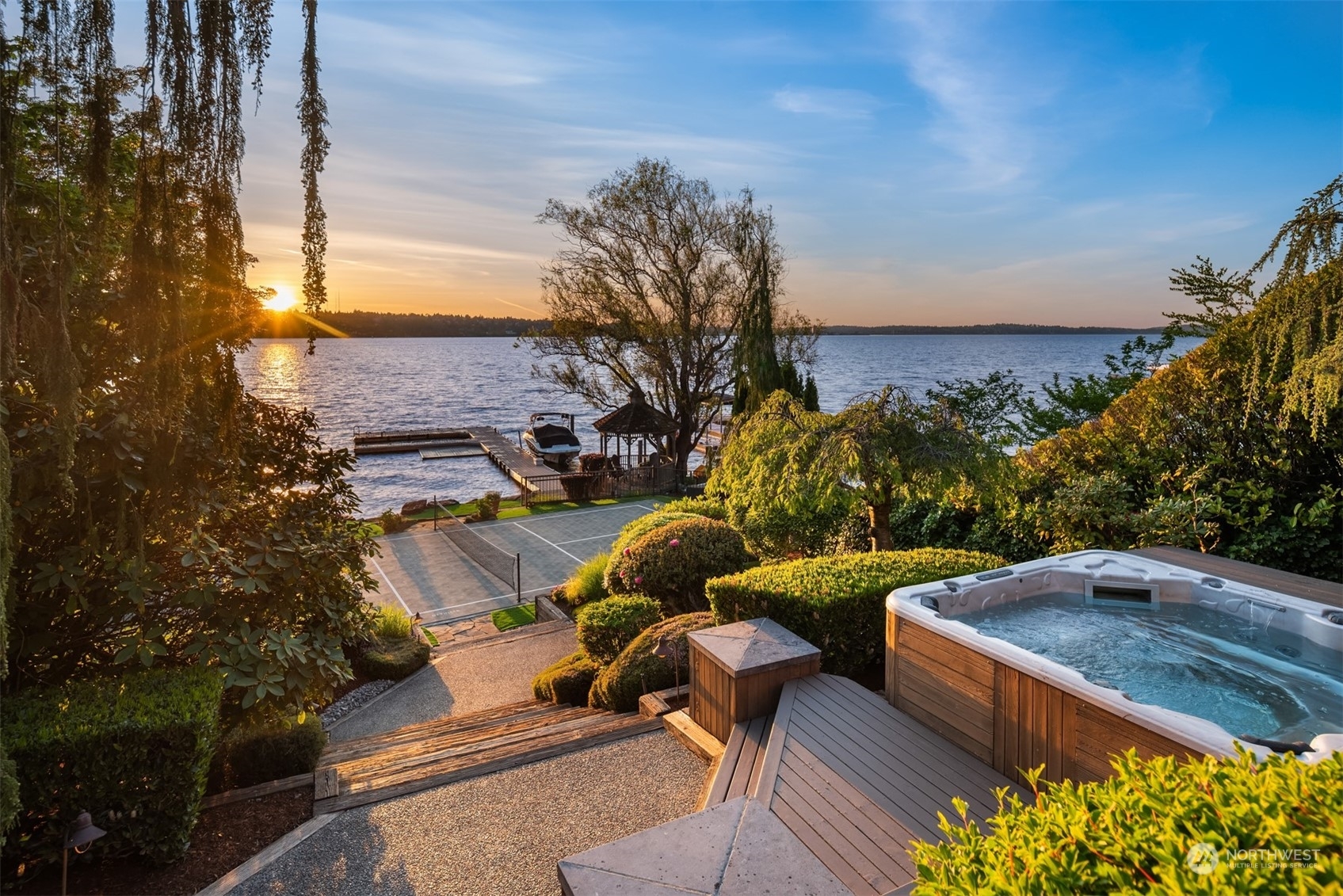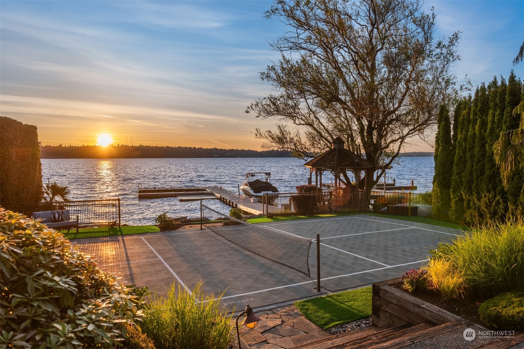 Discover Santa Barbara style & sophistication on Mercer Island at this gracious waterfront estate. Offering spectacular, west-facing views of Lake Washington & the Seattle skyline, this exquisite home boasts light-filled, thoughtfully curated spaces for everyday living, luxurious entertainment & a seamless indoor/outdoor lifestyle. An ideal floor plan from the open kitchen & great room to the luxe primary suite with gorgeous views to the lower level rec room & guest quarters. Lush grounds offer a resort experience complete with private dock & pickleball court. Auto court for guest parking. Located on the coveted north-end minutes to the Island village & a short drive to urban amenities on both sides of the lake. Your Island oasis awaits…