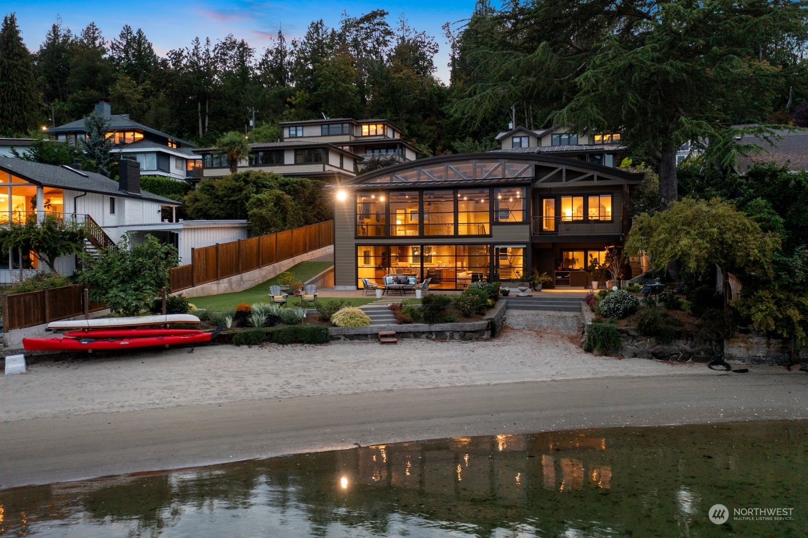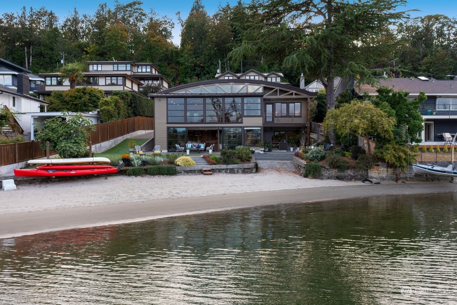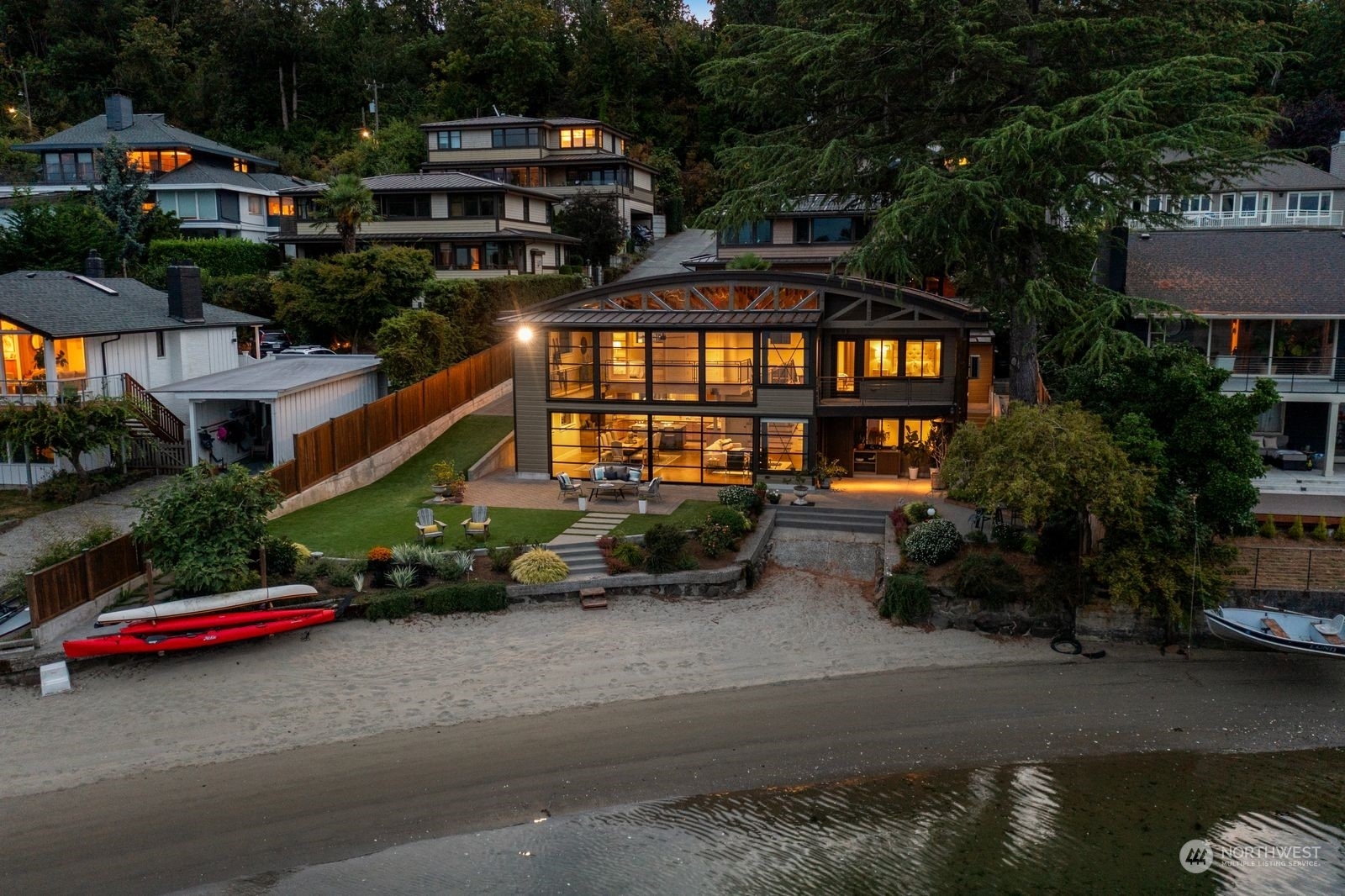Welcome to Flat Water on Smuggler’s Cove. A private waterfront retreat conceived in tribute to Seattle’s rich maritime history & is situated on 77 feet of no-bank sandy beach front. Watch eagles, heron, kingfishers, salmon, seals & a parade of boats; from pleasure yachts to the crab boats featured on the Deadliest Catch. Architecturally significant w/ an open-truss, barrel-vaulted ceiling inspired by the sail lofts, net sheds & ship building structures that line the Ballard Ship Canal. A 30 x 18 window wall opens to a private patio, landscaped lawn & a soft sandy beach. Enjoy paddleboarding, kayaking & more. This custom residence is conveniently located to Magnolia Village, Amazon, Expedia, South Lake Union, Discovery Park & Downtown!
