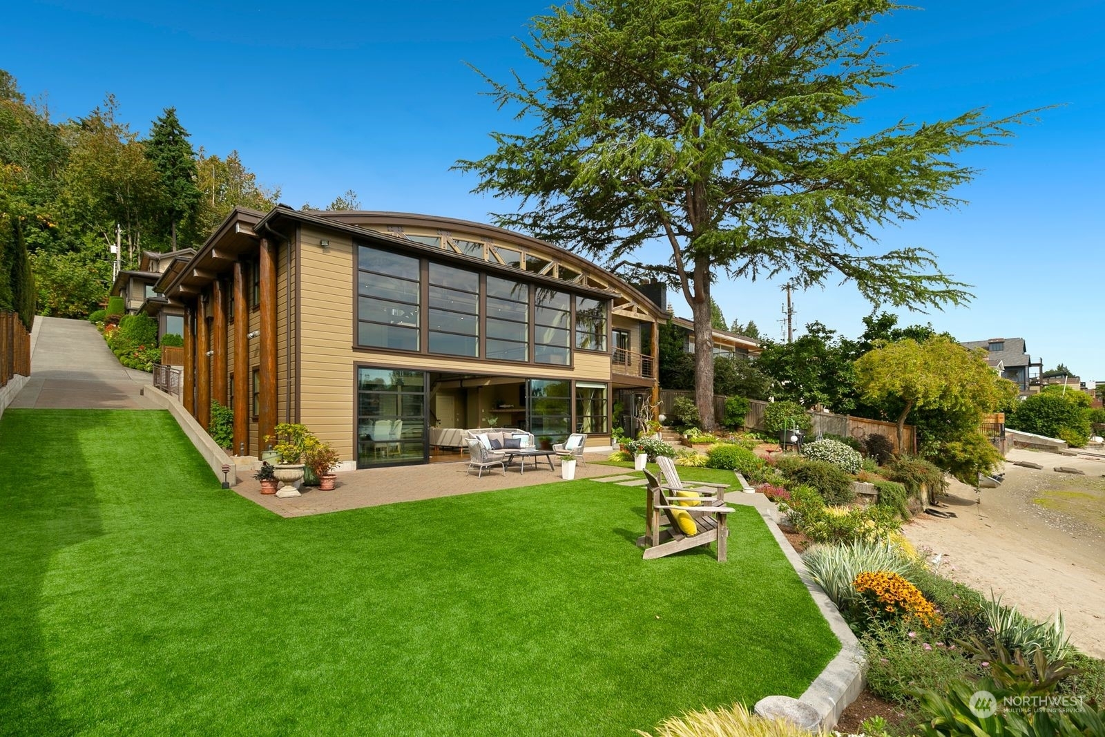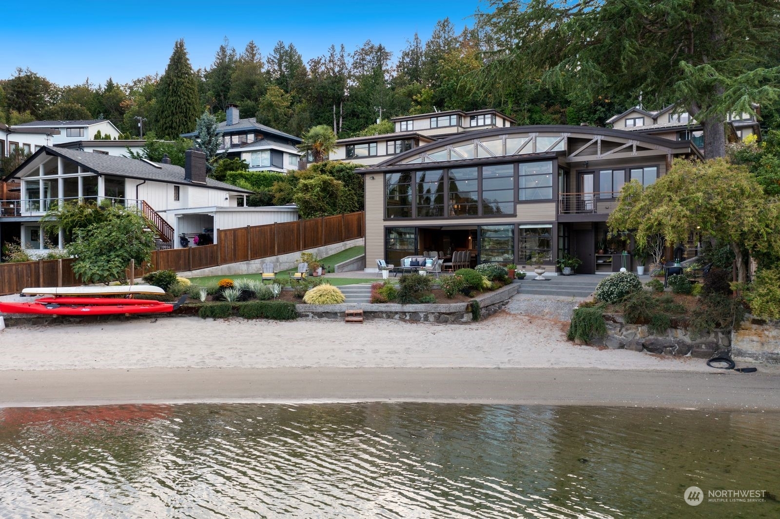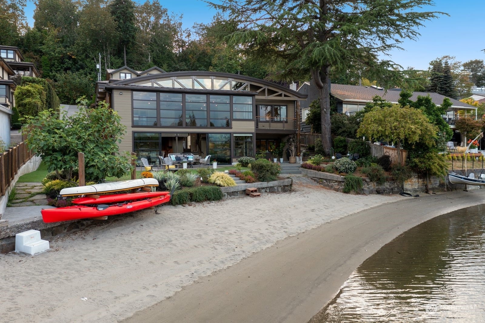 Welcome to Flat Water on Smuggler’s Cove. A private waterfront retreat conceived in tribute to Seattle’s rich maritime history & is situated on 77 feet of no-bank sandy beach front. Watch eagles, heron, kingfishers, salmon, seals & a parade of boats; from pleasure yachts to the crab boats featured on the Deadliest Catch. Architecturally significant w/ an open-truss, barrel-vaulted ceiling inspired by the sail lofts, net sheds & ship building structures that line the Ballard Ship Canal. A 30 x 18 window wall opens to a private patio, landscaped lawn & a soft sandy beach. Enjoy paddleboarding, kayaking & more. This custom residence is conveniently located to Magnolia Village, Amazon, Expedia, South Lake Union, Discovery Park & Downtown!