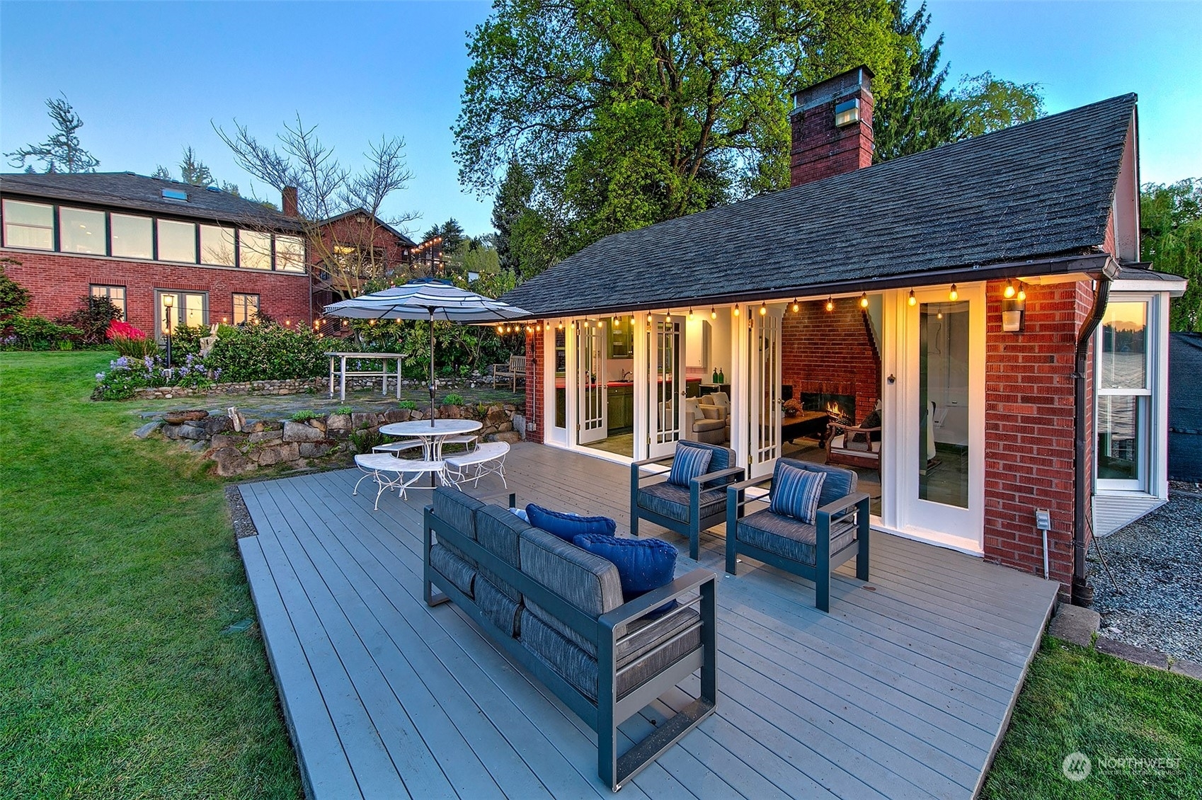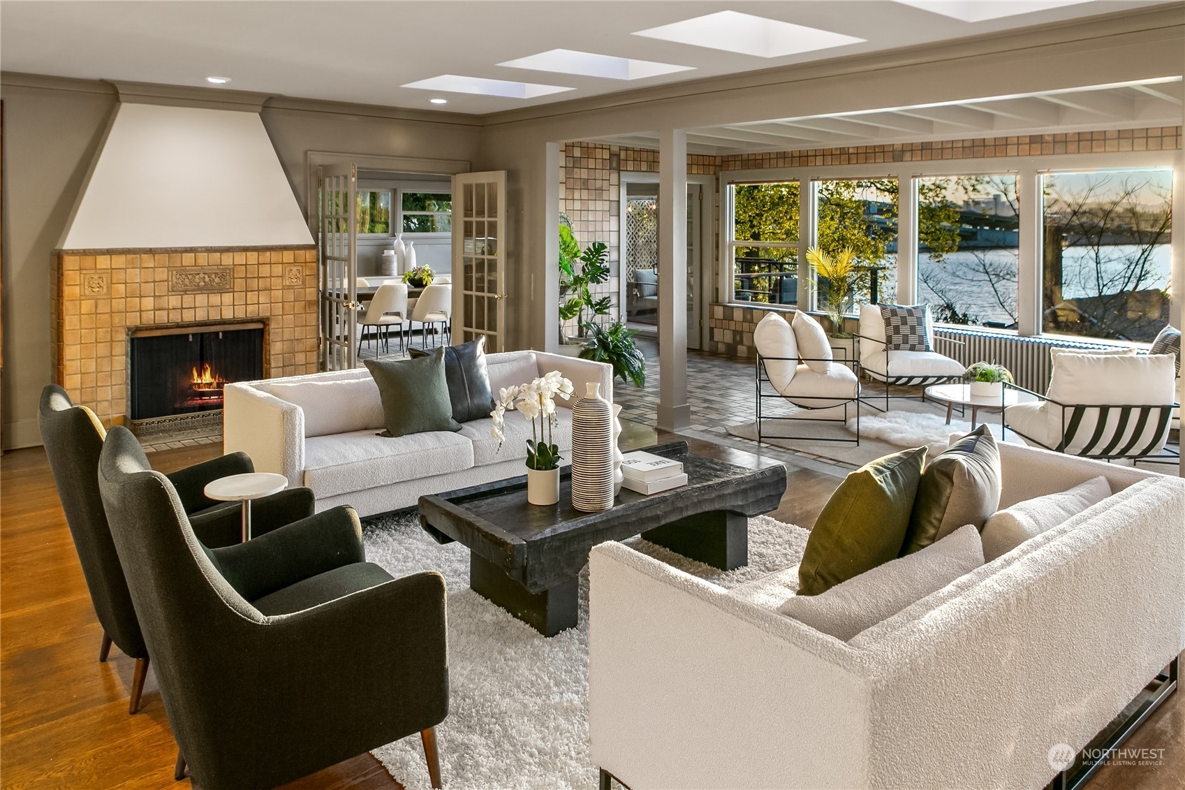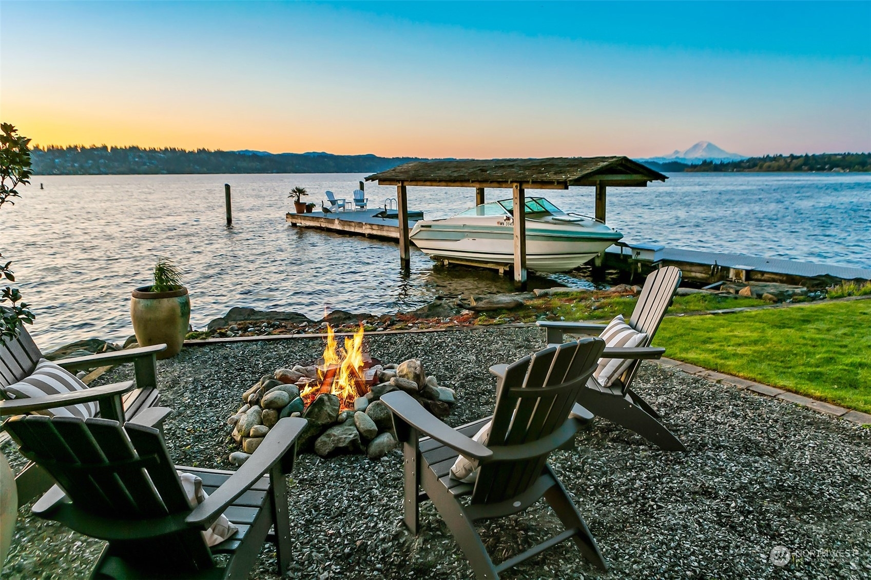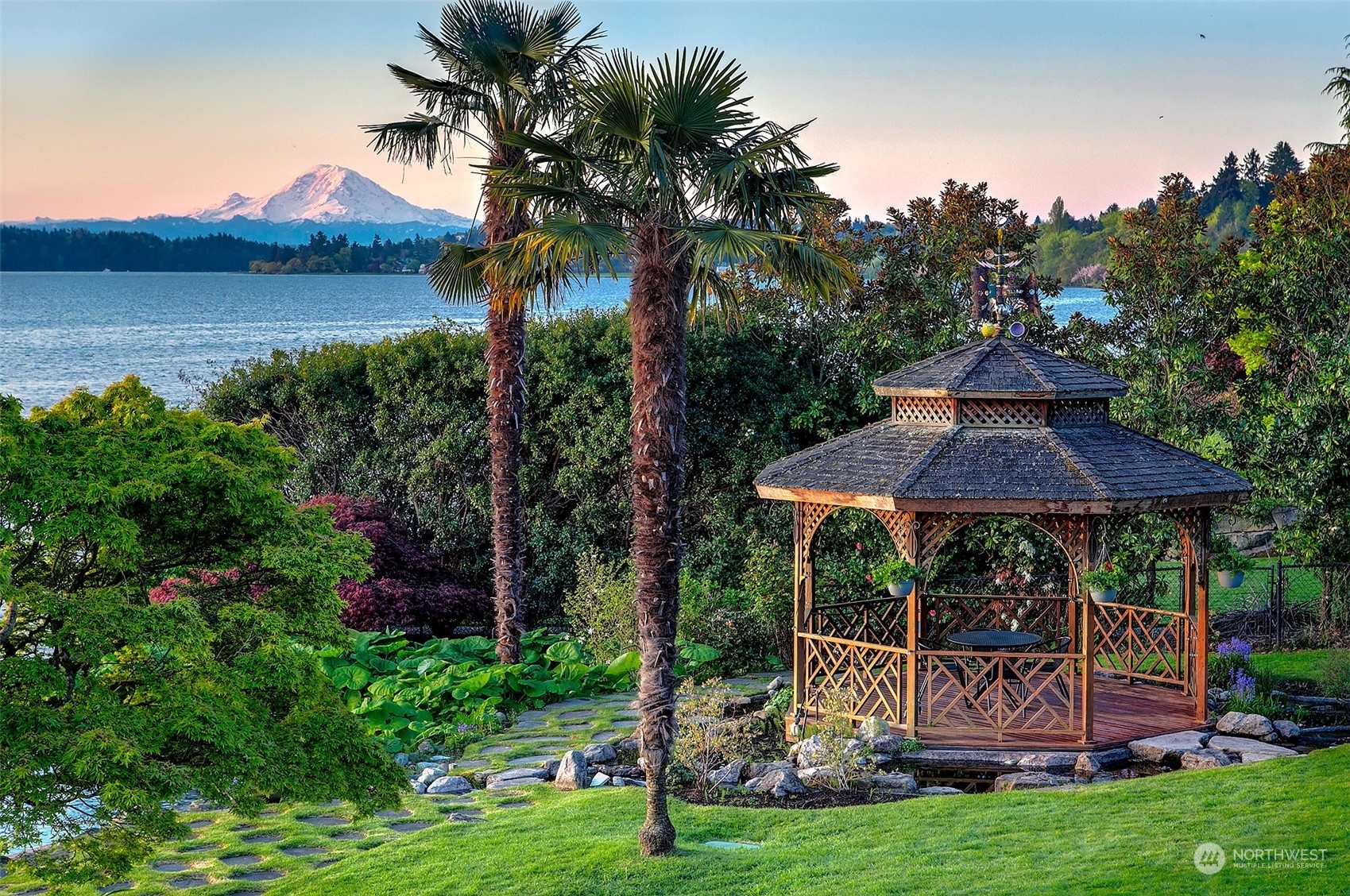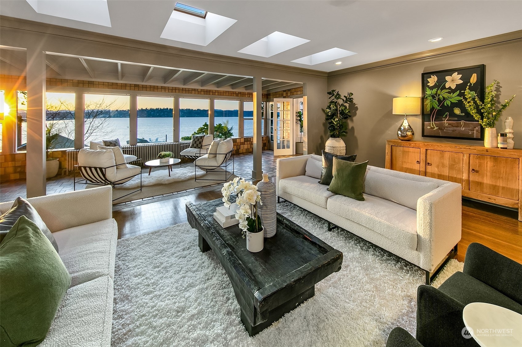 The lifestyle is easy, comfortable, and ready for your guest to arrive by boat and say hello. Your day begins with idyllic decisions to consider ... paddle, swim, sail, wakeboard or coffee on the 75' dock. At nearly an acre, this legacy property is spread across 120' of Lake Washington waterfront. The grounds are punctuated with established gardens, meandering creek, reflecting pool, and enclosed with a handsome brick wall for the utmost privacy. Inside, walls of windows invite natural light and mesmerizing lake and mountain views. Flexible living spaces are ideal for entertaining groups of all sizes. The lower level presents an expansive family room which opens to the east lawn and guest suite, an ideal home for multi-generational living.