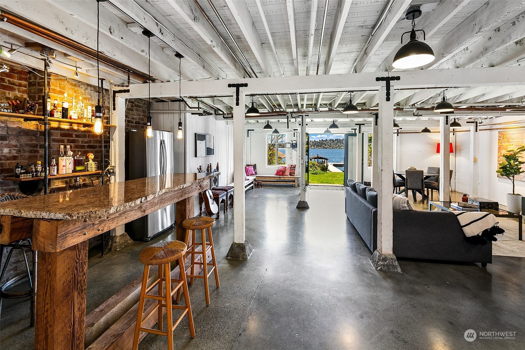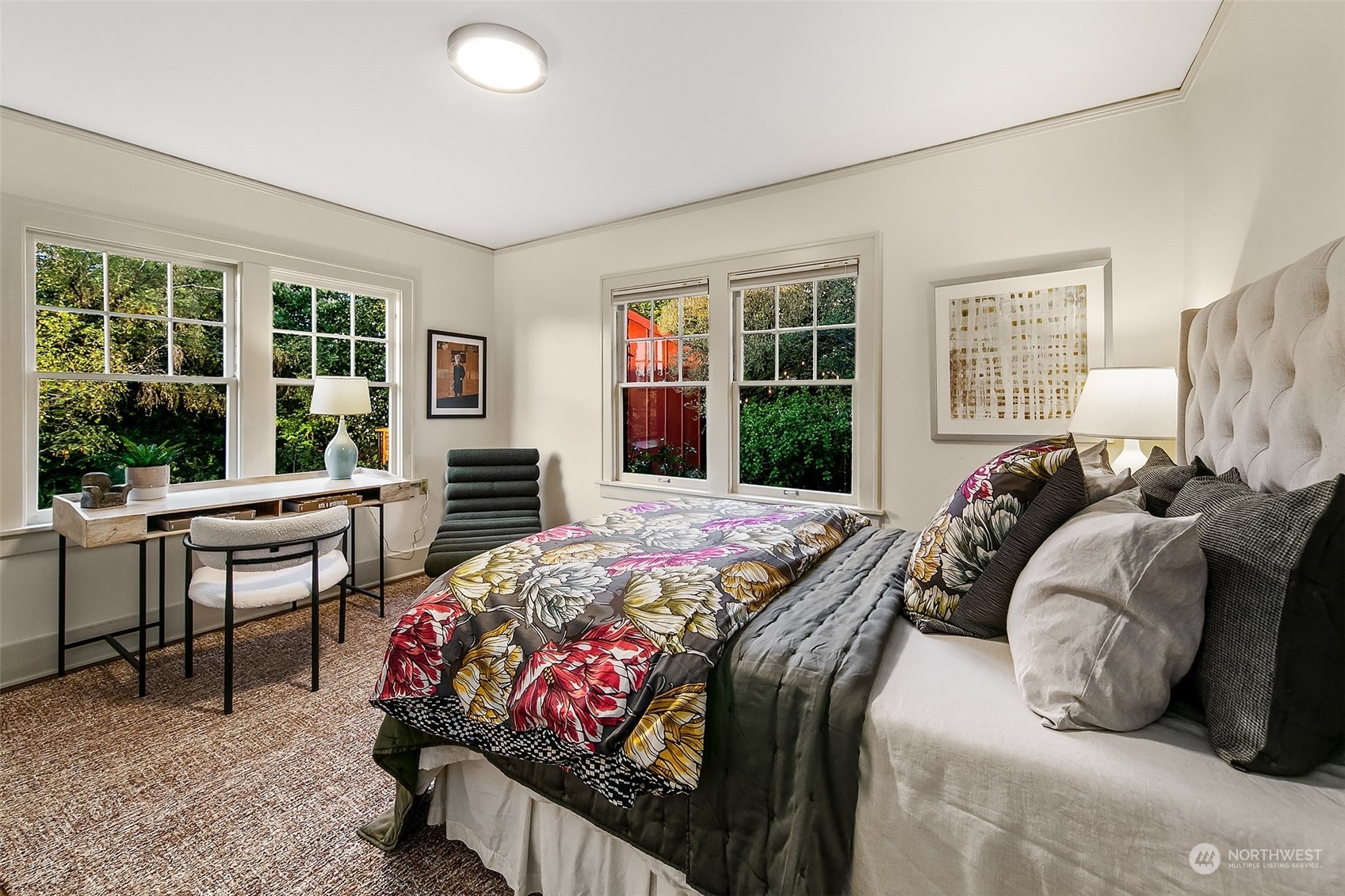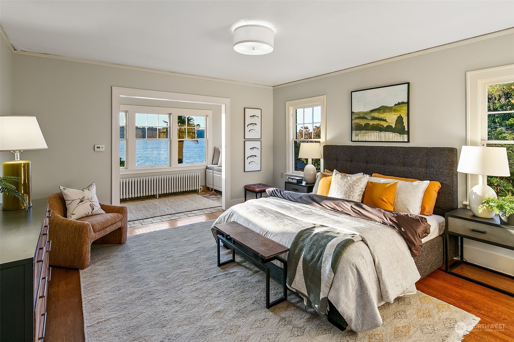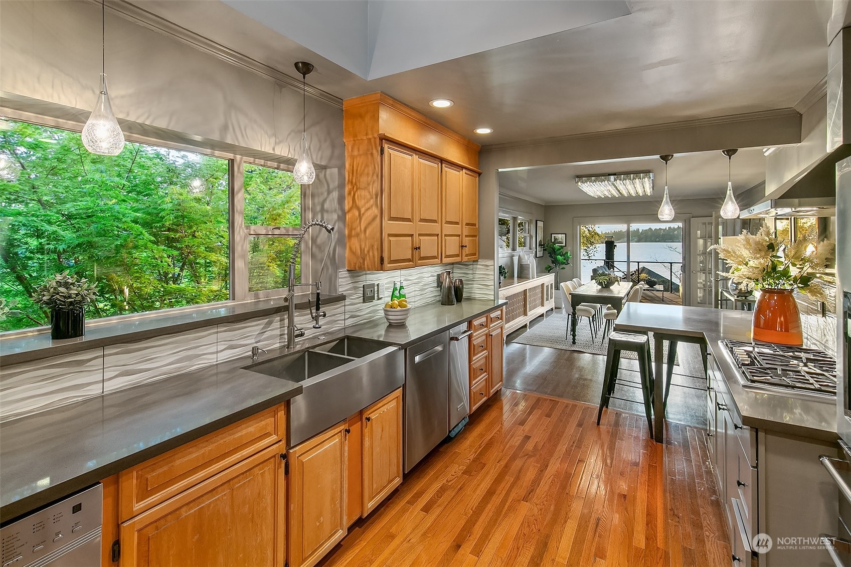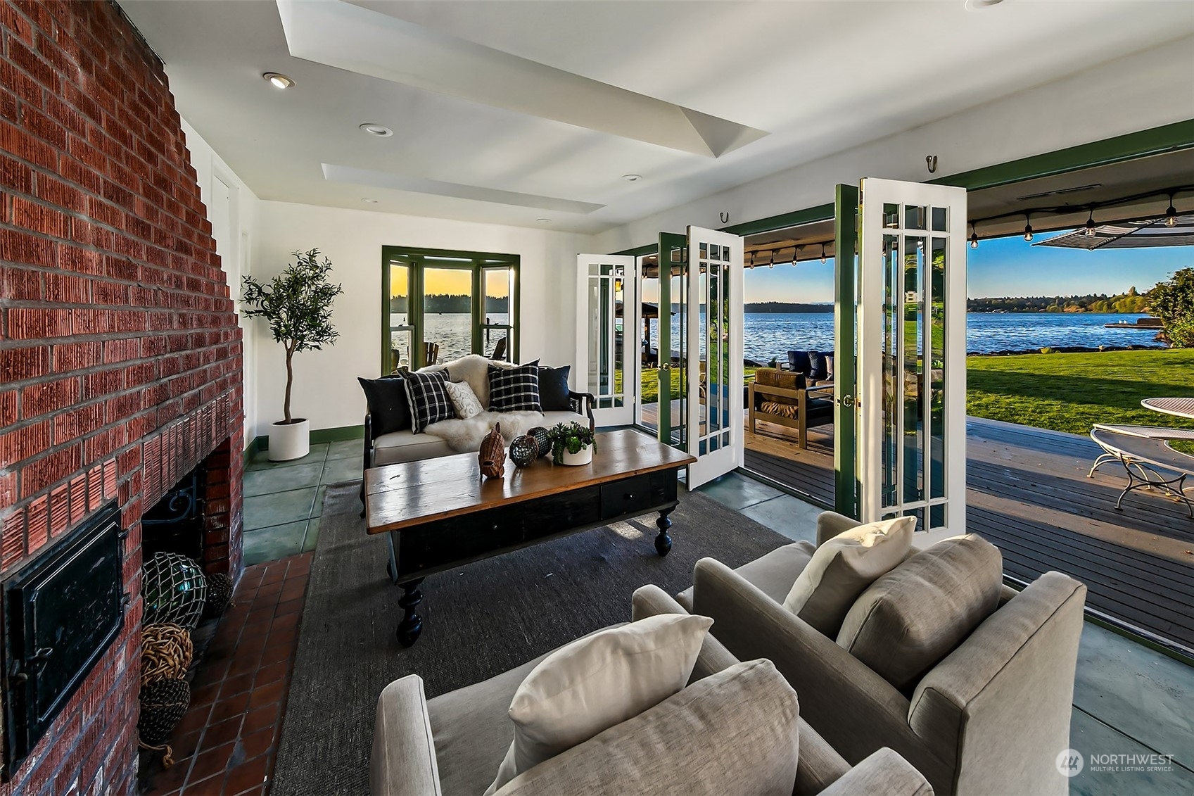 The lifestyle is easy, comfortable, and ready for your guest to arrive by boat and say hello. Your day begins with idyllic decisions to consider ... paddle, swim, sail, wakeboard or coffee on the 75' dock. At nearly an acre, this legacy property is spread across 120' of Lake Washington waterfront. The grounds are punctuated with established gardens, meandering creek, reflecting pool, and enclosed with a handsome brick wall for the utmost privacy. Inside, walls of windows invite natural light and mesmerizing lake and mountain views. Flexible living spaces are ideal for entertaining groups of all sizes. The lower level presents an expansive family room which opens to the east lawn and guest suite, an ideal home for multi-generational living.