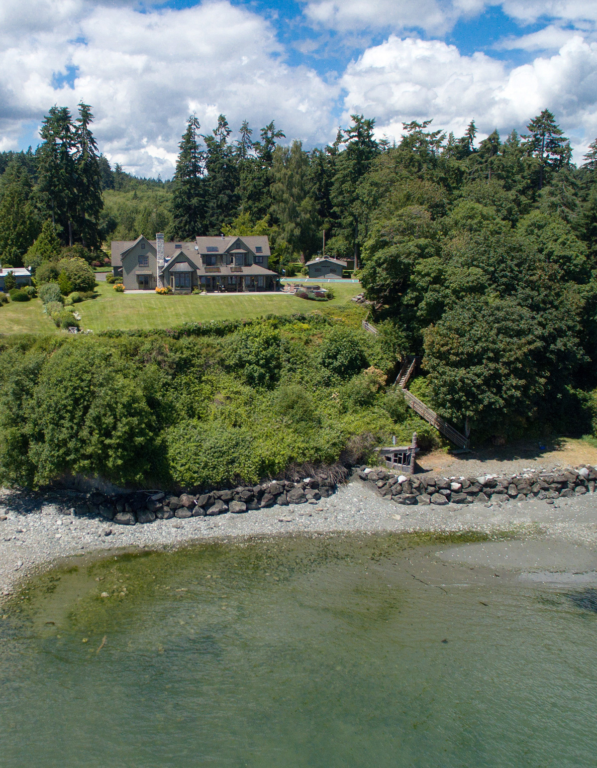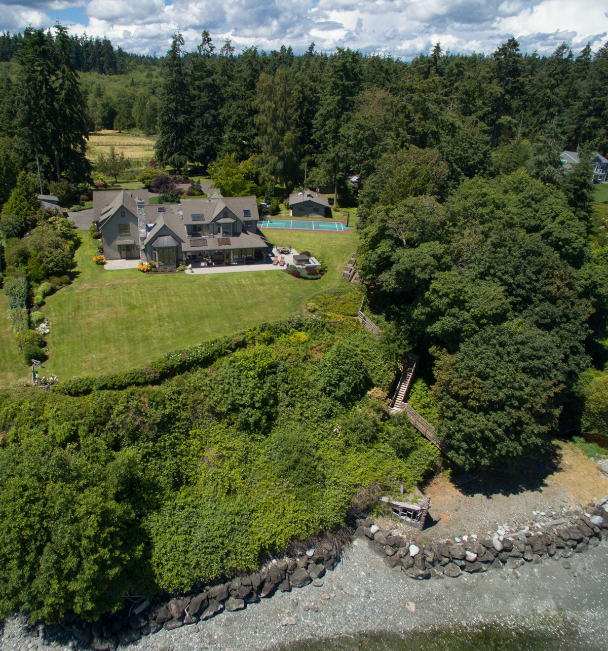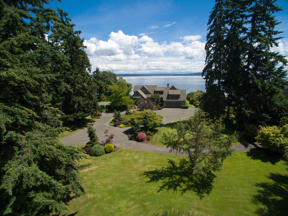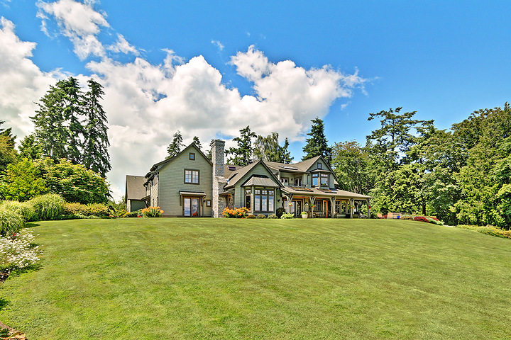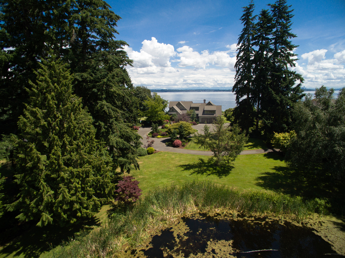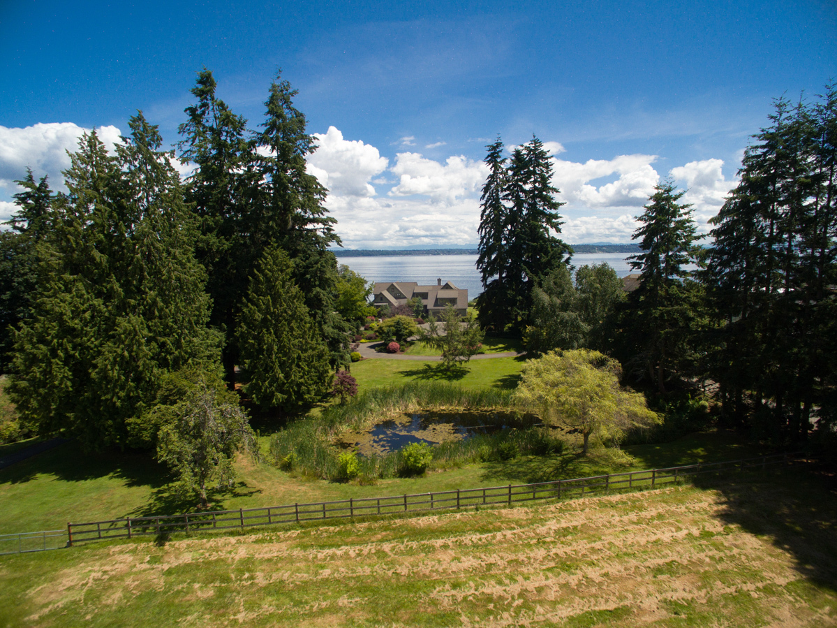Magnificent 10-acre waterfront country estate! The paved drive leads through a sunny pastoral setting to the spectacular main house, impressive yet unpretentious-designed for casual everyday living. Sweeping views of the Sound and majestic Mt. Rainier and easy access to the 280 feet of bulkheaded beachfront. Comfortable 2nd home for caretaker or guests. The size of the property alone affords privacy with 2 ponds and acres of natural beauty suitable for animals with several outbuildings.