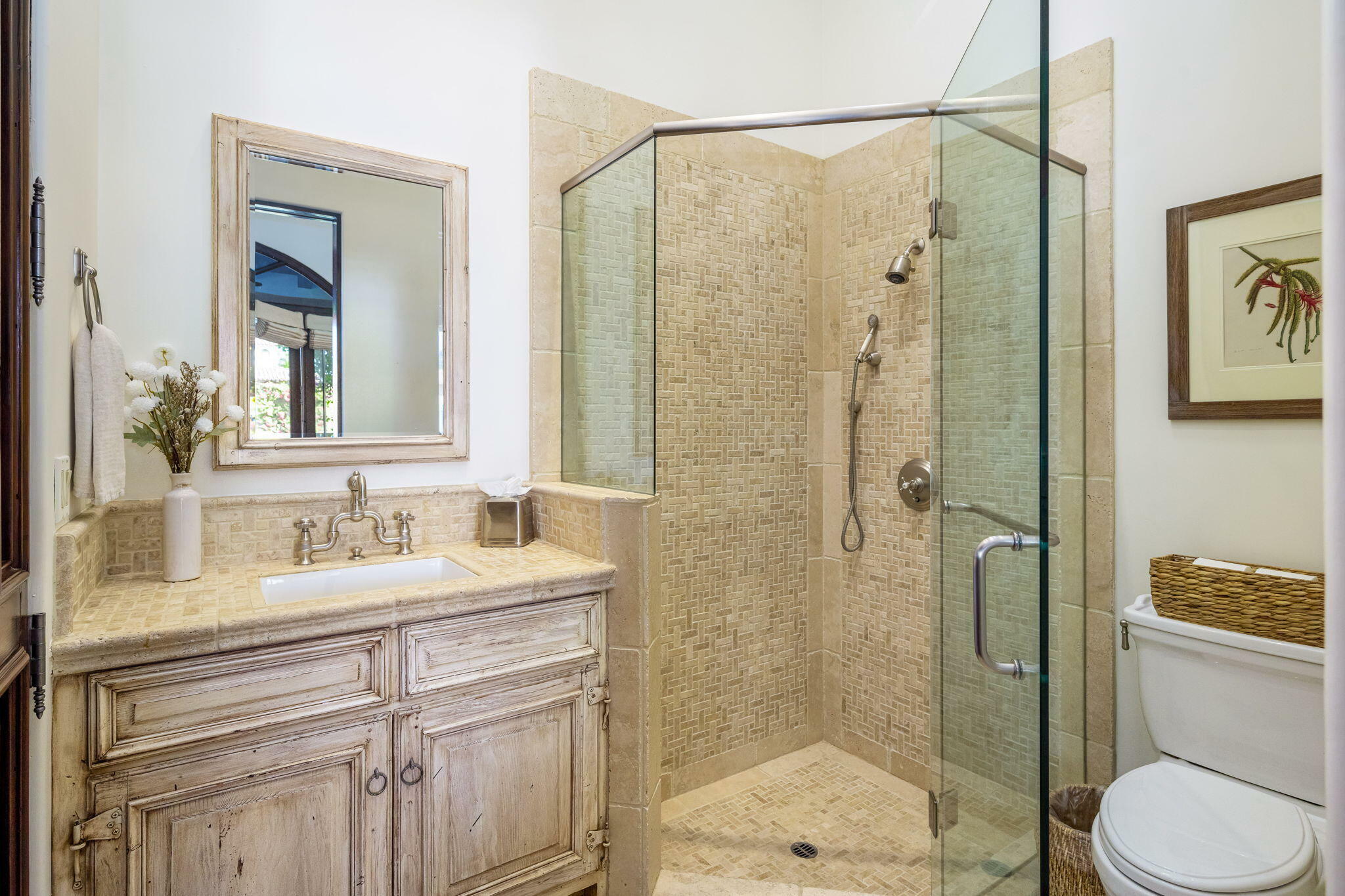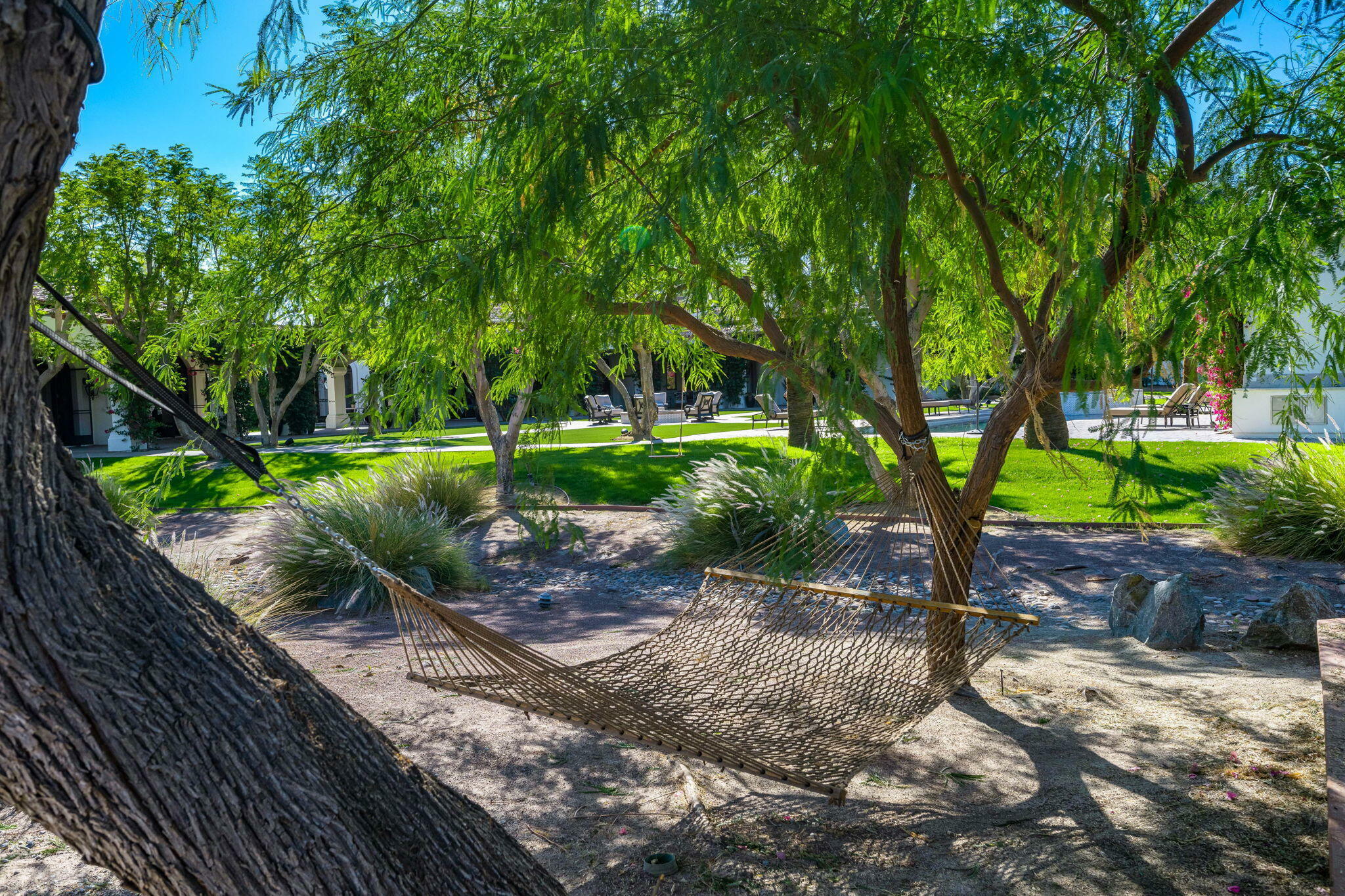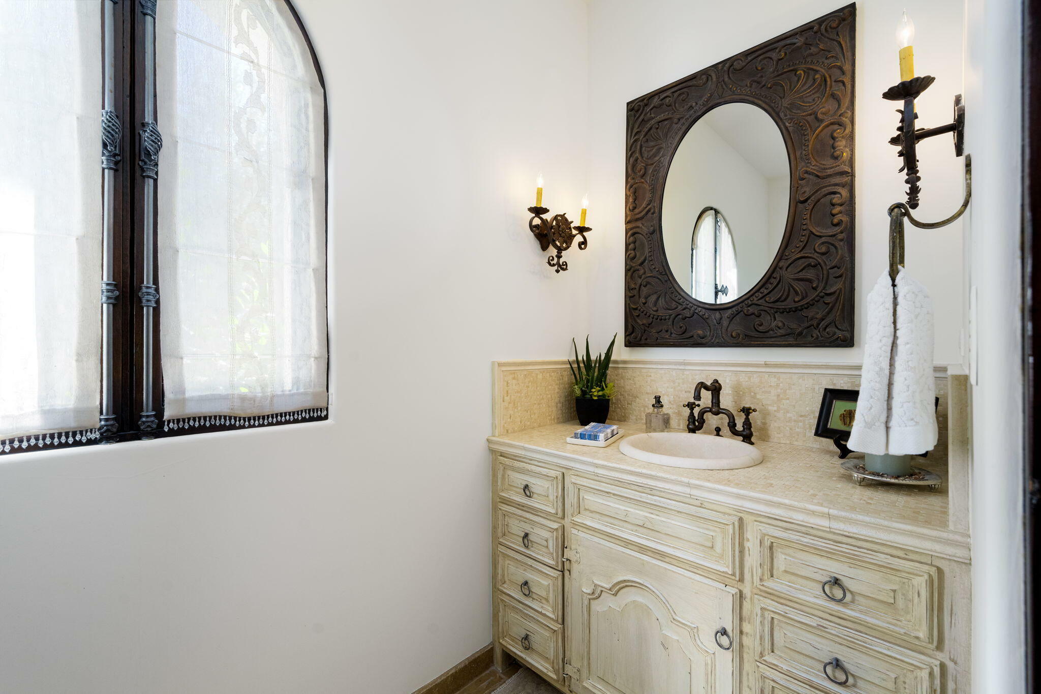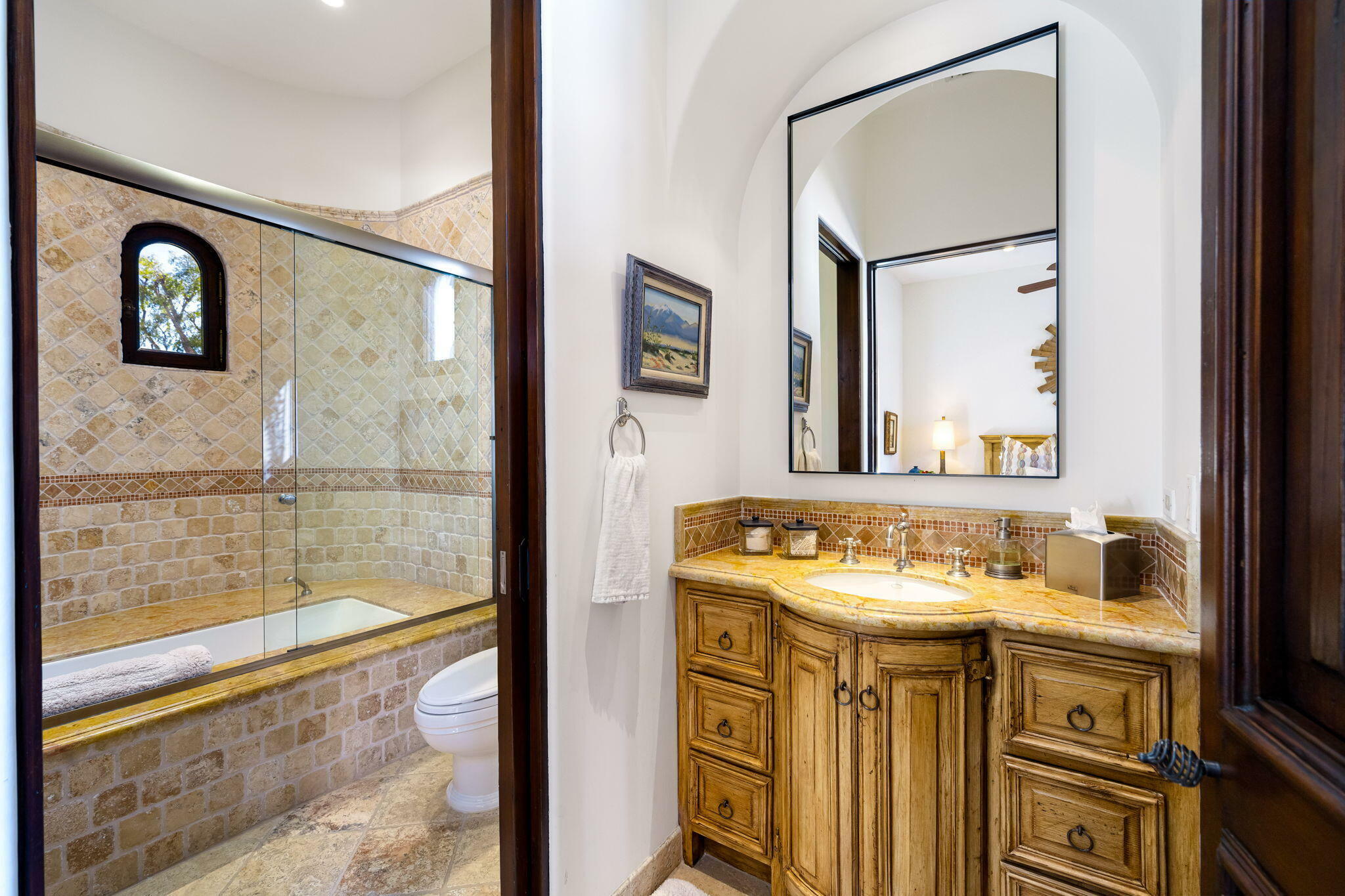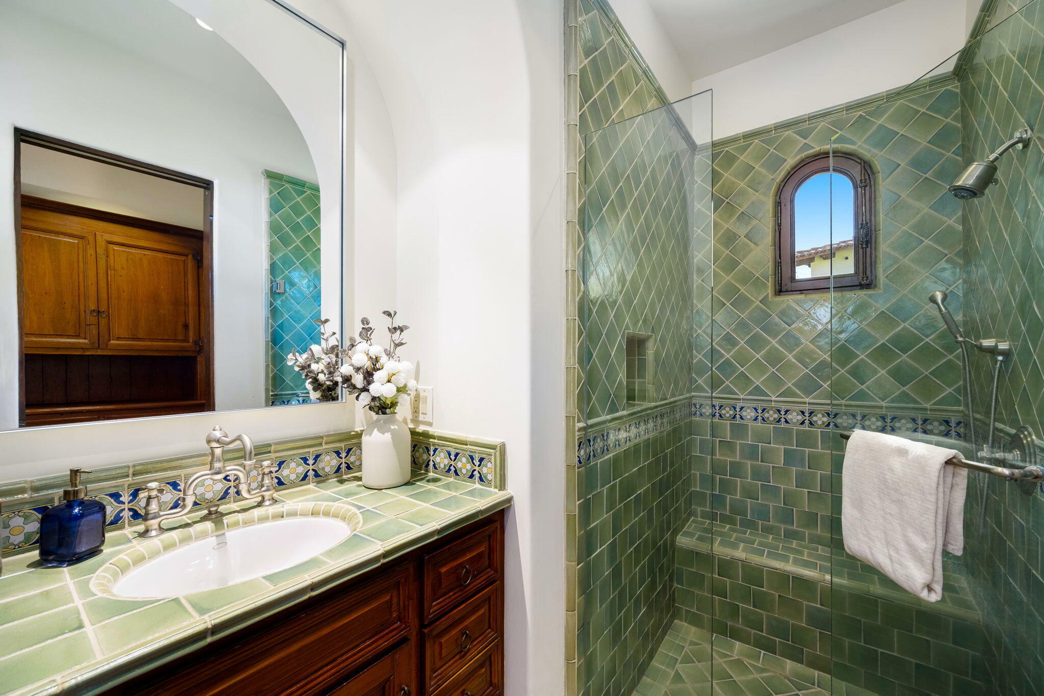 An opportunity to take advantage of rare price improvement in the gated enclave of La Quinta Polo Estates! A luxury estate of uncompromised beauty on over 2 acres and with 7 bedrooms, is a private sanctuary and ones' personal resort with stone walkways, mature palm and citrus trees, bougainvillea, water fountain, swimming pool, spa and firepit, lounge areas and a fireplace. Even a playground for children! The main residence exudes character, with 3 fireplaces, and architecturally designed, interior features such as custom hand hewed beams , doors, windows and floors, built on the site at the time of construction. 4 en-suite bedrooms, each has stately French doors giving access to the loggia and manicured grounds. The heart of the house, the kitchen, connects the living room with the formal dining room and the adjacent walk-in bar for seamless entertaining. A large, private casita can be found at the end of the main residence, with a kitchenette, primary and secondary bedroom, and attached laundry room. Separately, a second guest house resides near an outdoor kitchen and lounge, pool and spa. For gourmet cooks and lovers of entertaining, a custom designed outdoor chef's kitchen pavilion is fully staffed with barbecue, grill, refrigerator, a pizza oven, overhead, built-in heaters, a TV and music, bar seating for 12 and a dining patio for 20 or more. And much, much more. Every possible detail or want has been executed in this impossibly beautiful estate. Numerous major improvements have been completed in 2023 and 2024, a comprehensive list is available upon request. Turnkey Furnished without exception.