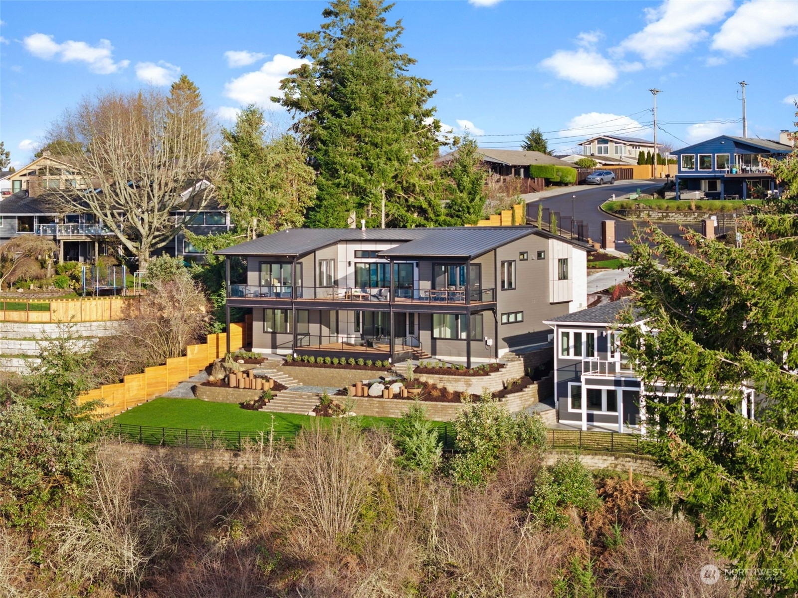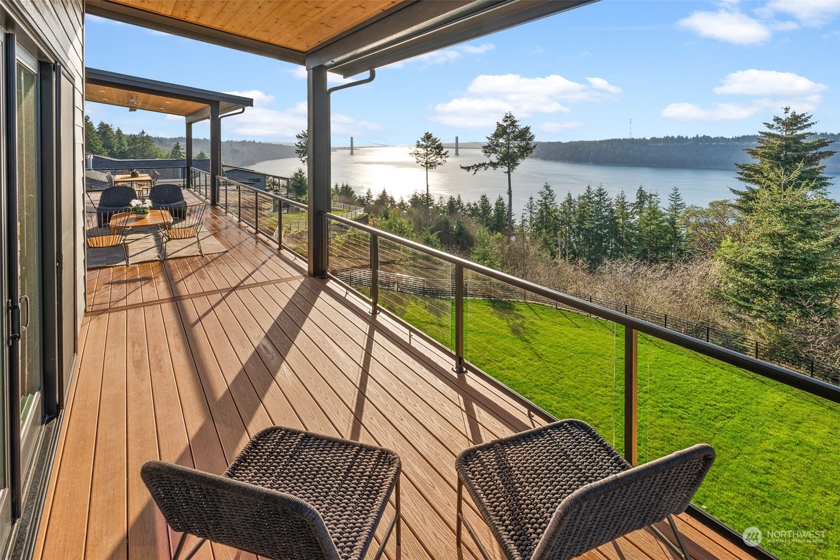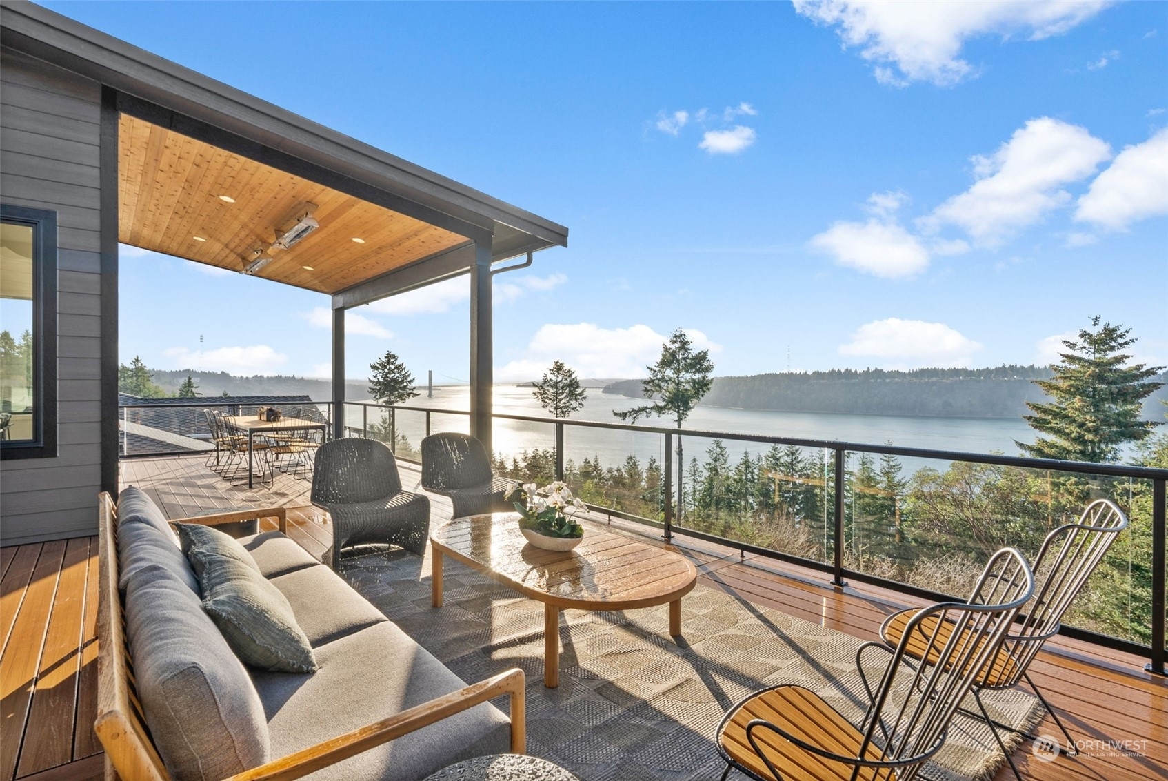 An extraordinary opportunity to own a custom-built masterpiece perched atop Narrows Ridge, offering captivating views that stretch from the Narrows Bridge and Puget Sound to the charming town of Gig Harbor. Designed with sleek, modern aesthetics, this home showcases clean lines and luxurious finishes, including tambour-paneled accents, 12-inch engineered hardwood planks, and exquisite Belmont cabinetry. The dream continues outdoors with 2 covered living spaces, featuring ceiling heaters and composite decking for comfortable, year-round enjoyment. Just moments away from Point Defiance Park and an array of top-tier restaurants, this residence offers the best of style and location.
