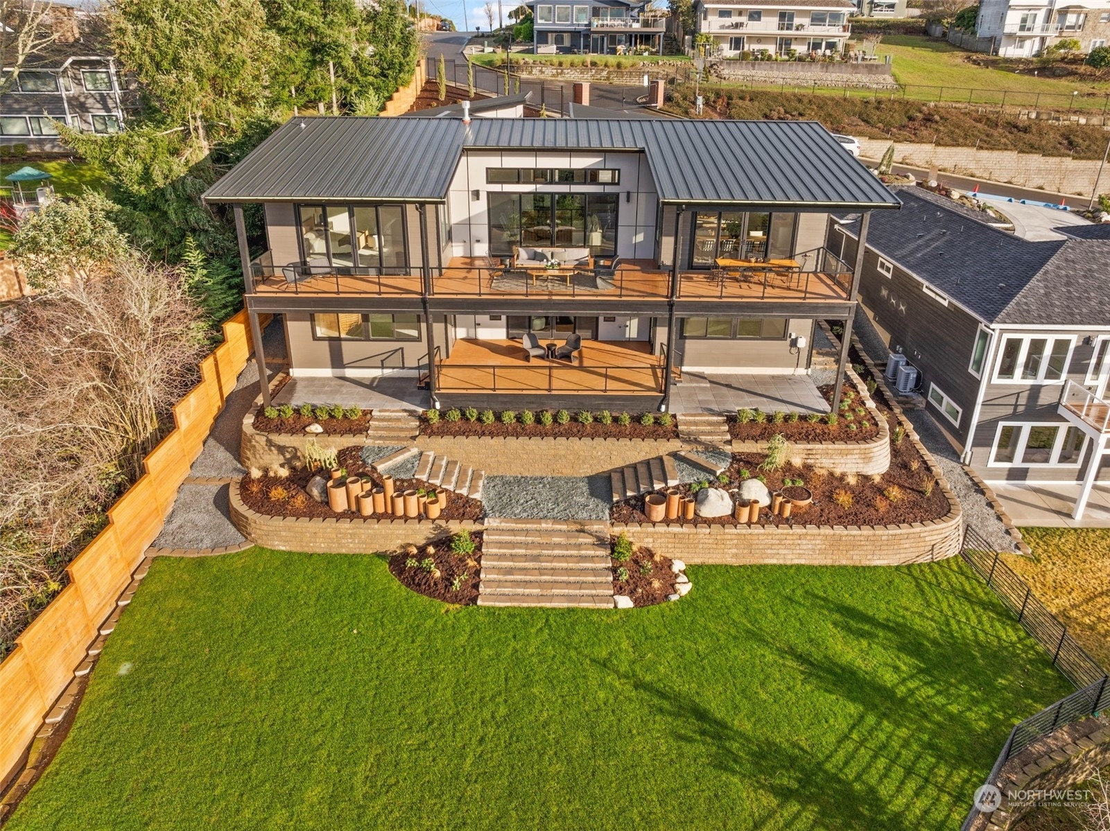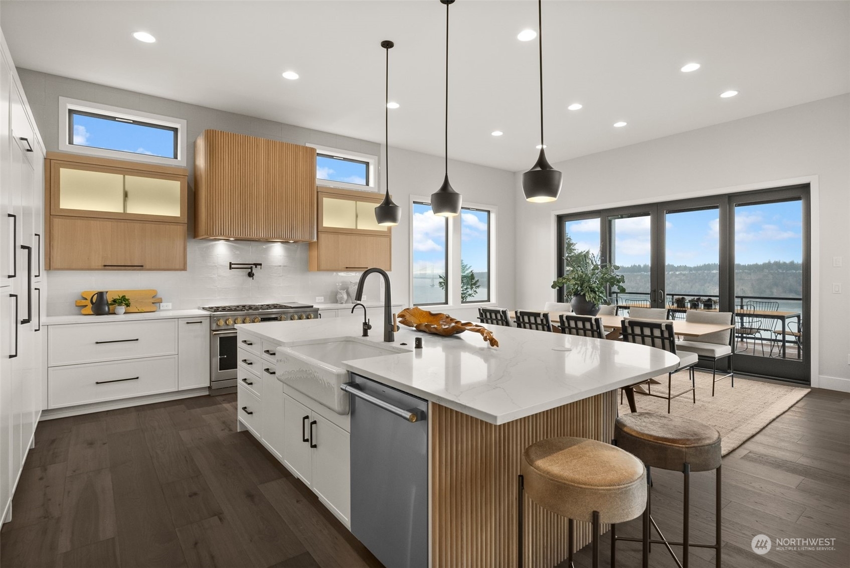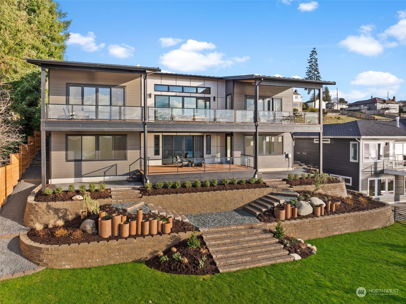 An extraordinary opportunity to own a custom-built masterpiece perched atop Narrows Ridge, offering captivating views that stretch from the Narrows Bridge and Puget Sound to the charming town of Gig Harbor. Designed with sleek, modern aesthetics, this home showcases clean lines and luxurious finishes, including tambour-paneled accents, 12-inch engineered hardwood planks, and exquisite Belmont cabinetry. The dream continues outdoors with 2 covered living spaces, featuring ceiling heaters and composite decking for comfortable, year-round enjoyment. Just moments away from Point Defiance Park and an array of top-tier restaurants, this residence offers the best of style and location.