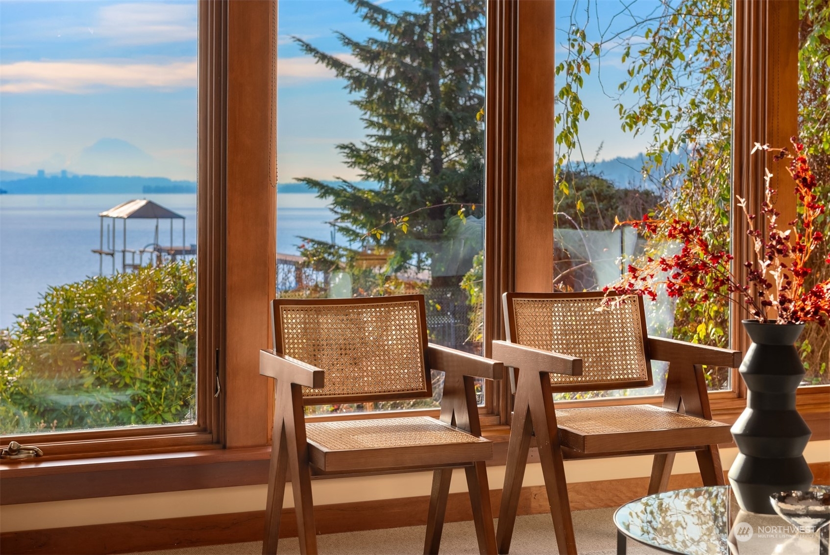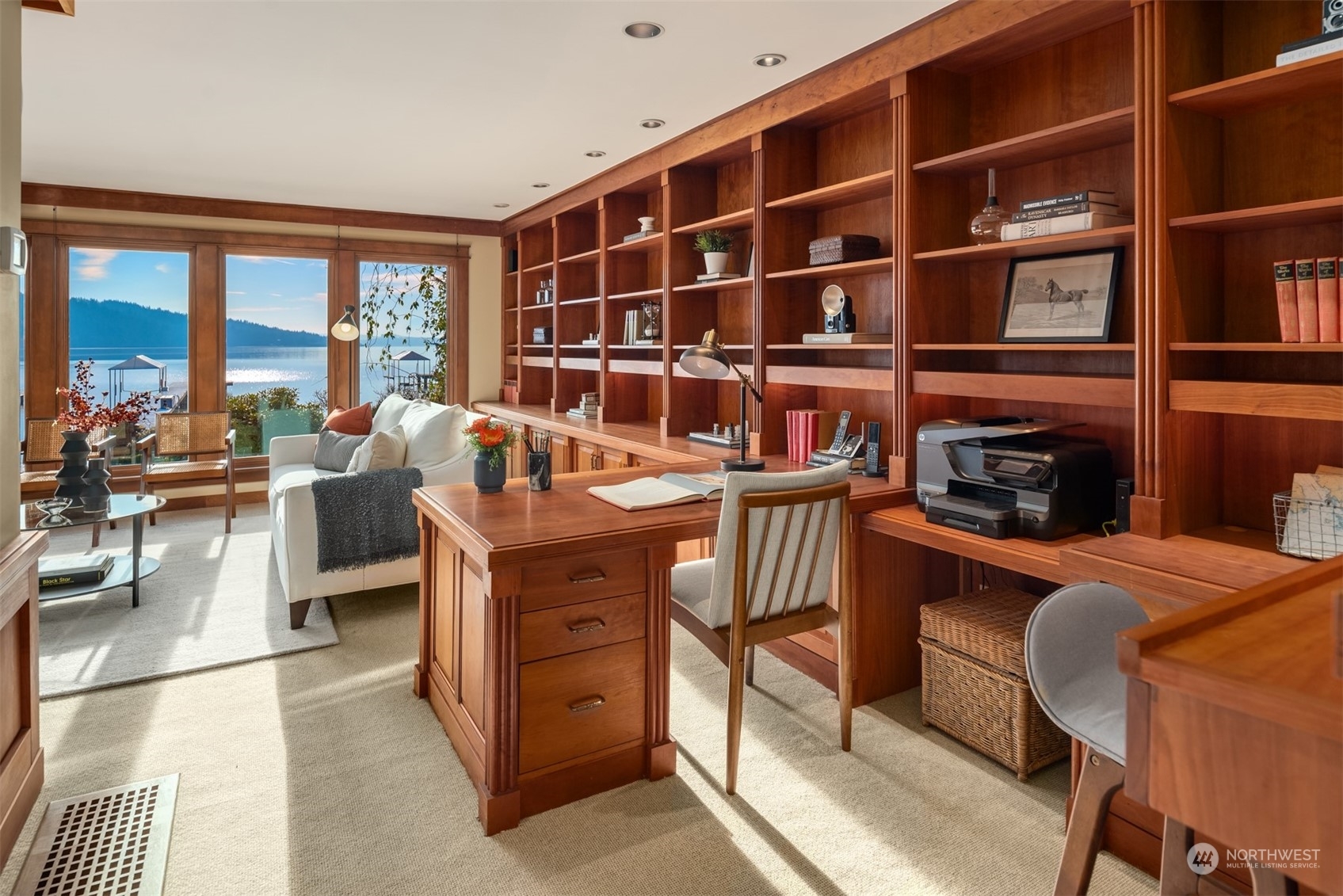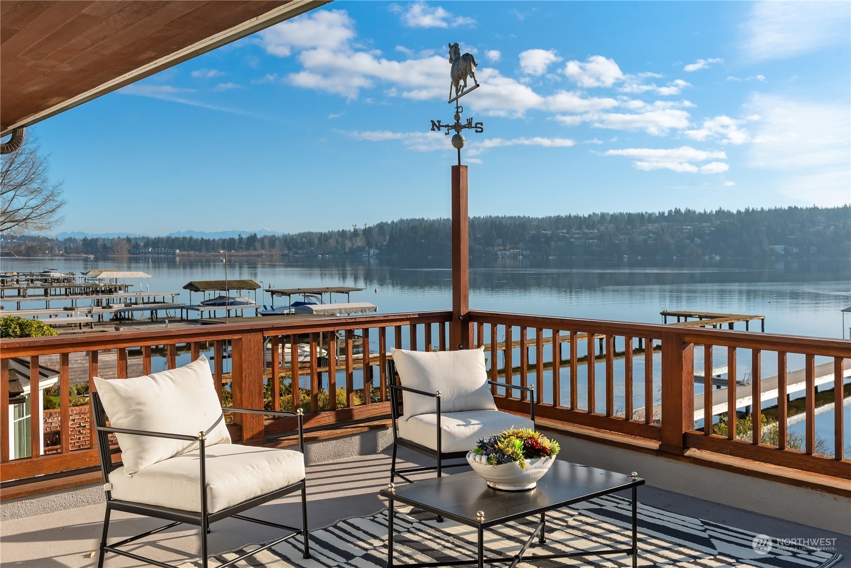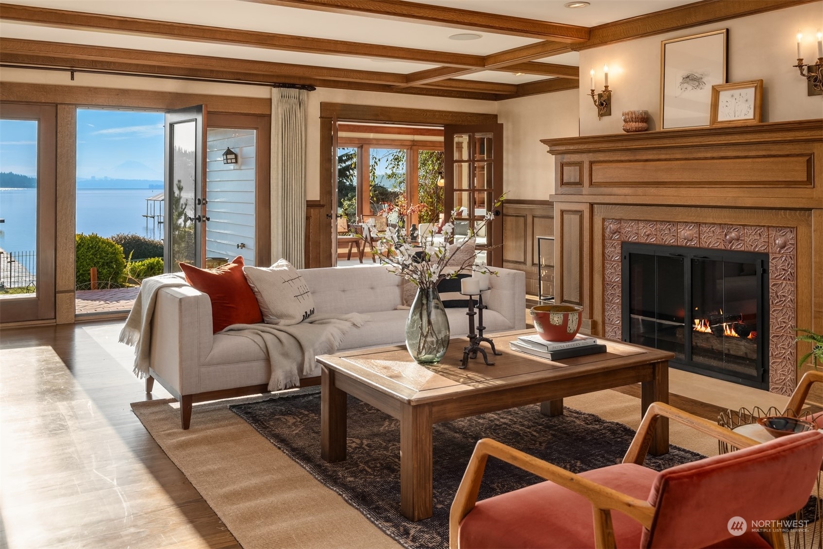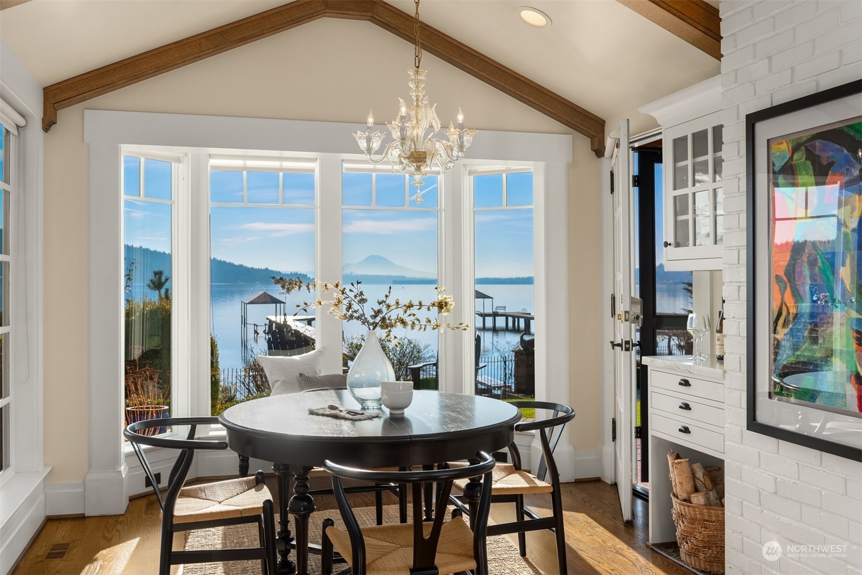 Timeless French charm designed by famous Seattle architect, Paul Thiry. 80 FT of WATERFRONT and private dock. Serene and calming views of Lake Washington, Mt. Rainier, and Cascades. Prepare to be enchanted with classic French architecture, coffered ceilings, detailed millwork and Juliet balconies. Large picture windows capture unobstructed Lake views of the ever-changing PNW seasons. Upstairs breath-taking primary bedroom offers stunning vistas & ample space to retreat. Kitchen and Baths finished in elegant white marble. Huge bonus space, can be a second garage (6 cars), a Home Gym, a Rec Room or an event space! Fully gated property with beautifully landscaped grounds, on sought after Shore drive, nestled in the community of Sheridan Beach.