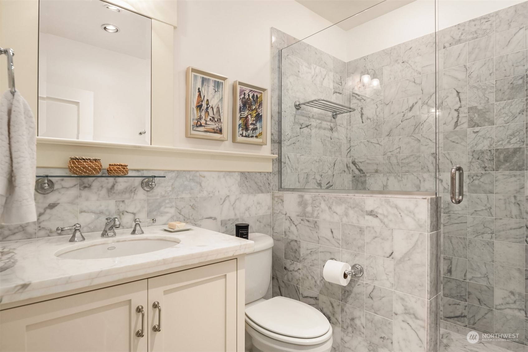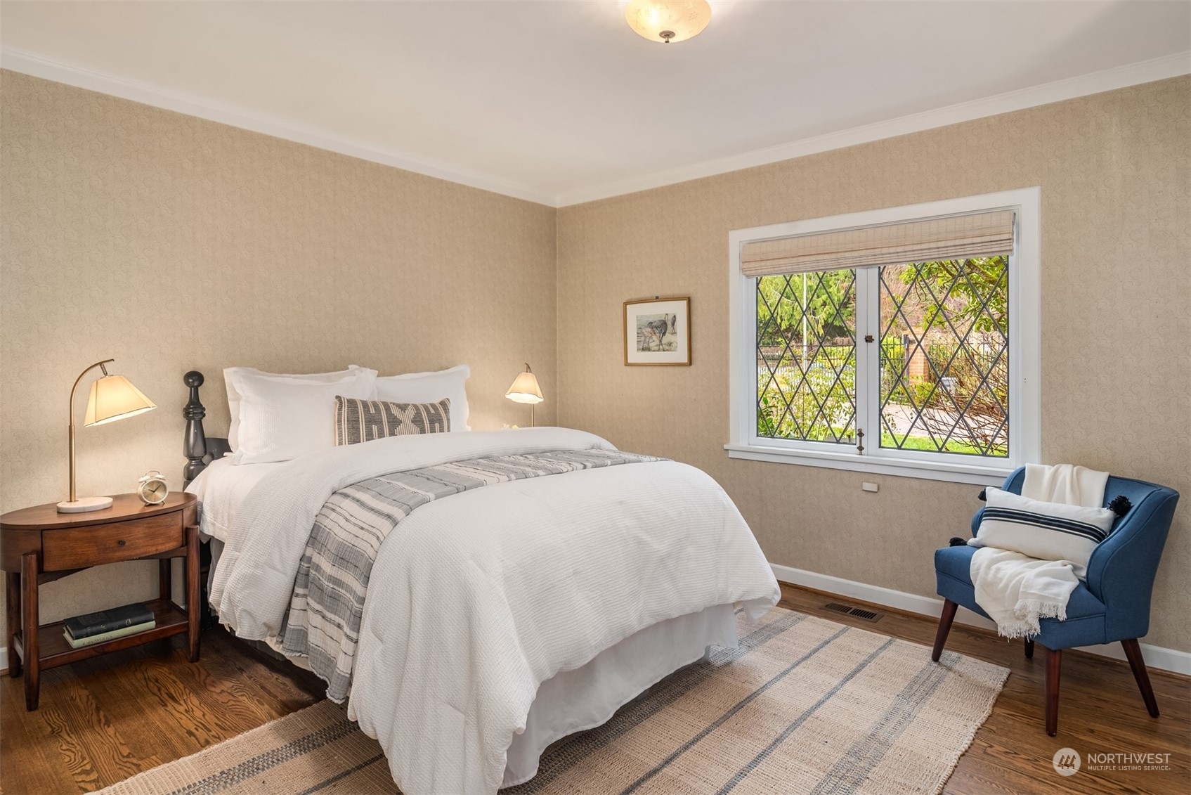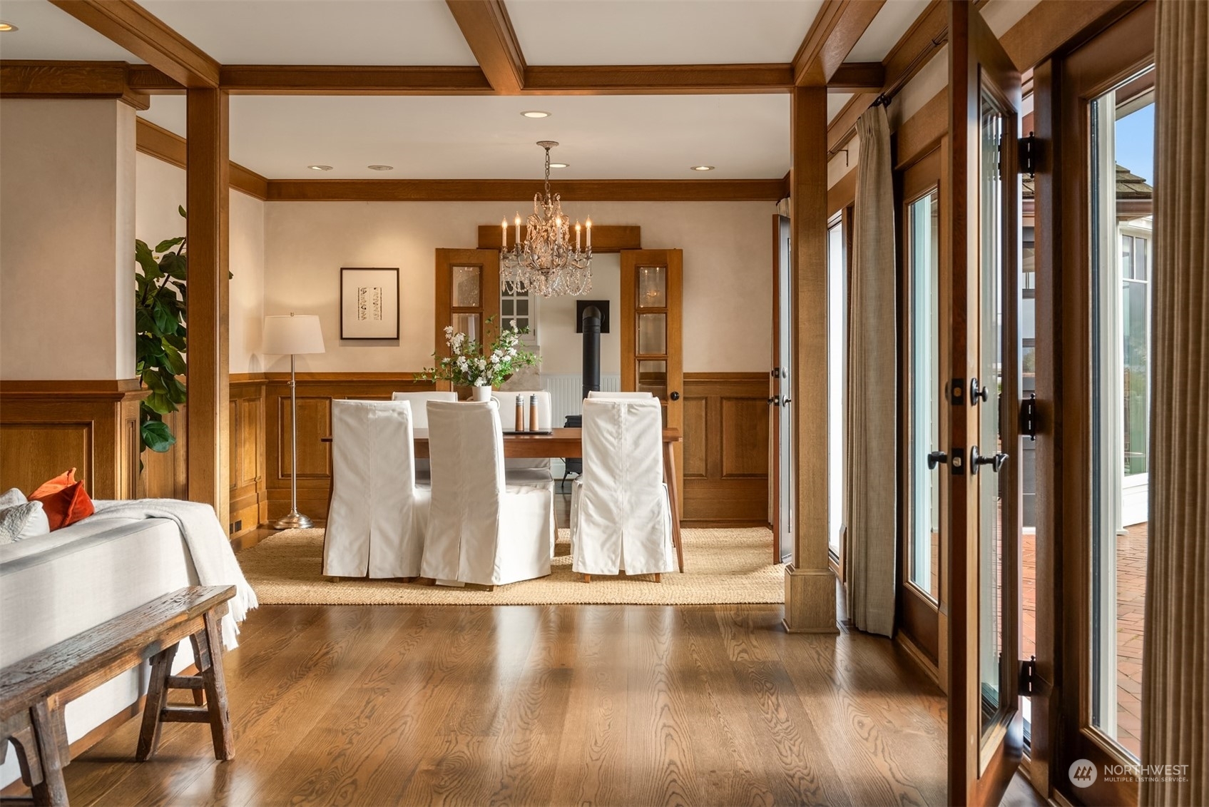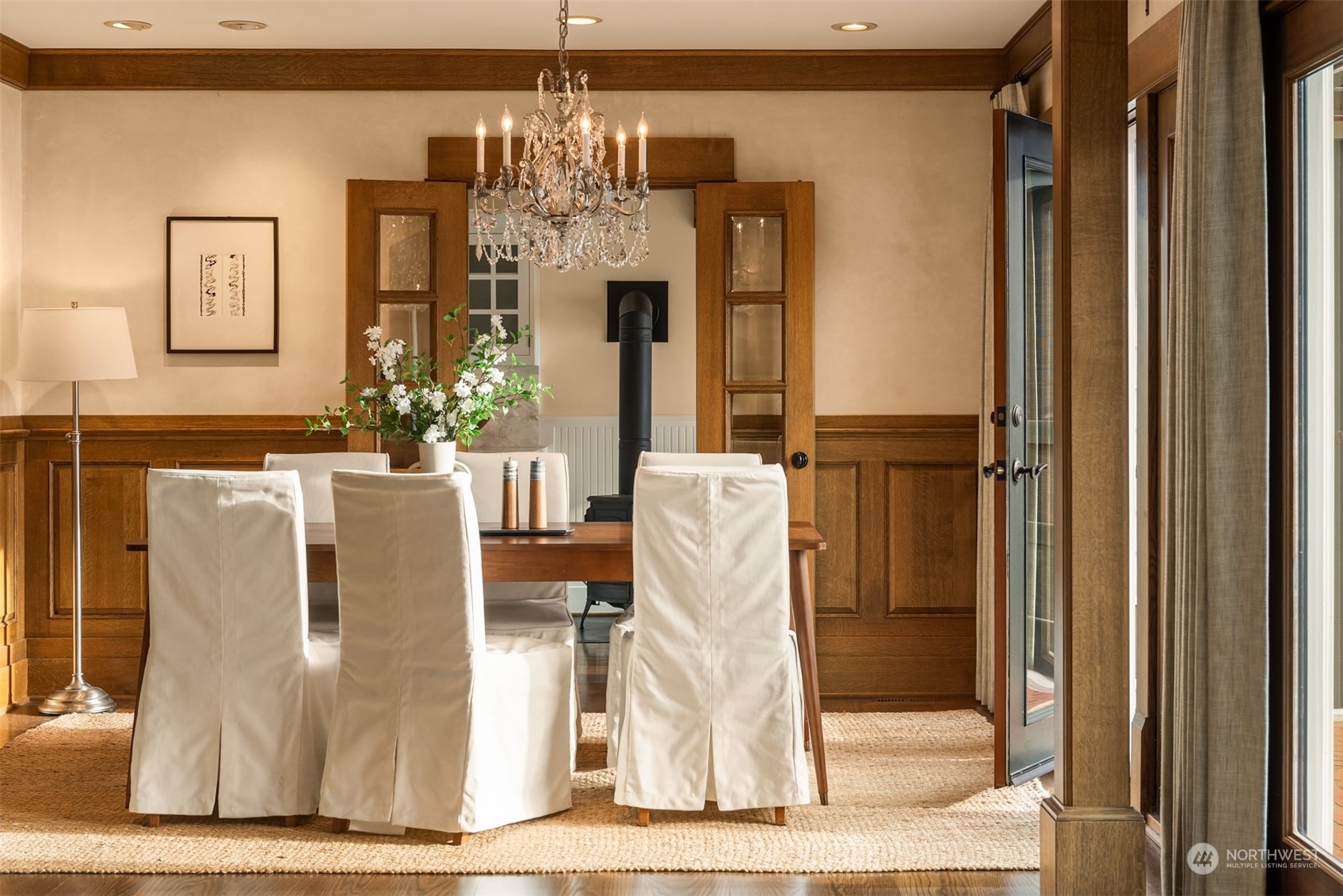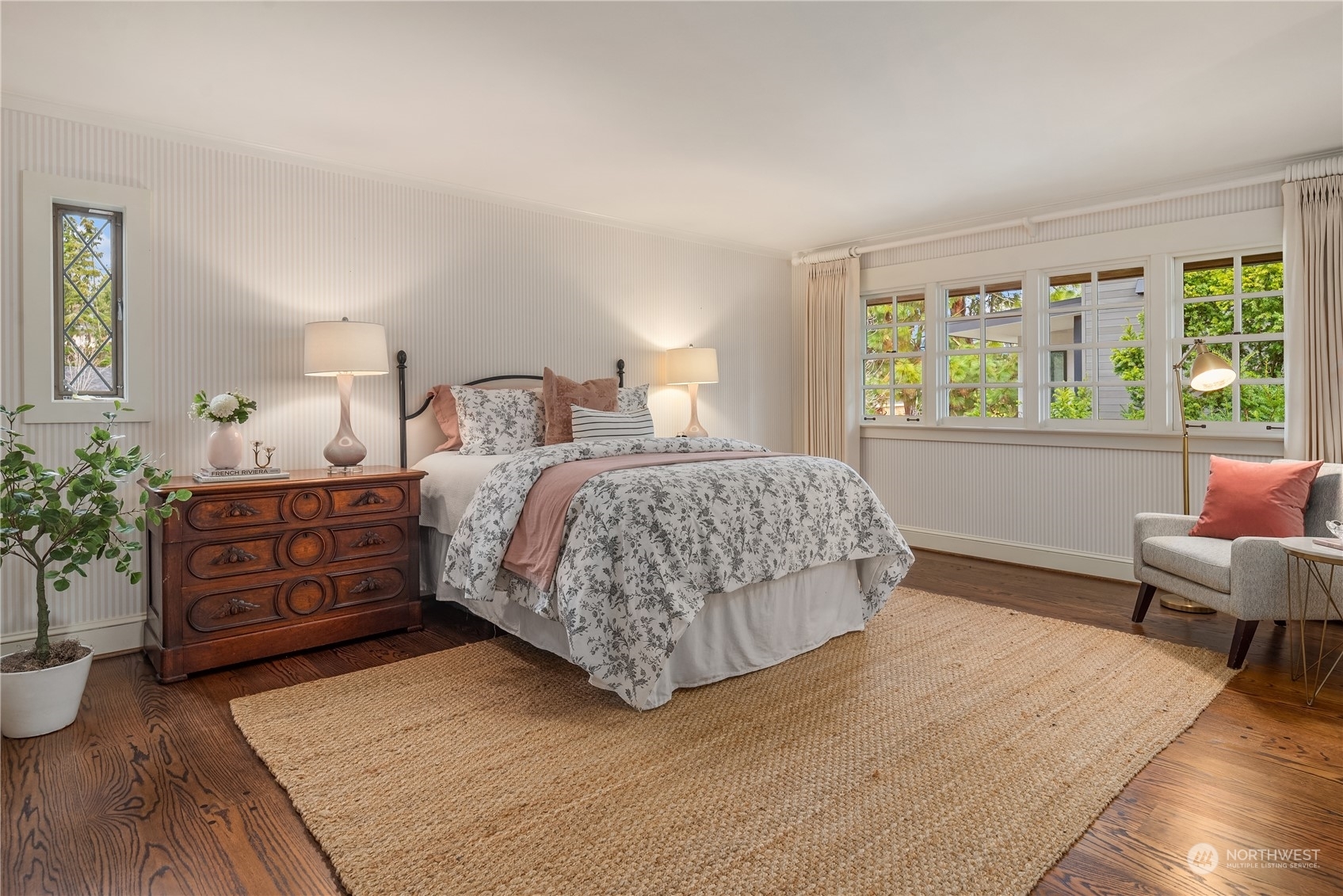 Timeless French charm designed by famous Seattle architect, Paul Thiry. 80 FT of WATERFRONT and private dock. Serene and calming views of Lake Washington, Mt. Rainier, and Cascades. Prepare to be enchanted with classic French architecture, coffered ceilings, detailed millwork and Juliet balconies. Large picture windows capture unobstructed Lake views of the ever-changing PNW seasons. Upstairs breath-taking primary bedroom offers stunning vistas & ample space to retreat. Kitchen and Baths finished in elegant white marble. Huge bonus space, can be a second garage (6 cars), a Home Gym, a Rec Room or an event space! Fully gated property with beautifully landscaped grounds, on sought after Shore drive, nestled in the community of Sheridan Beach.