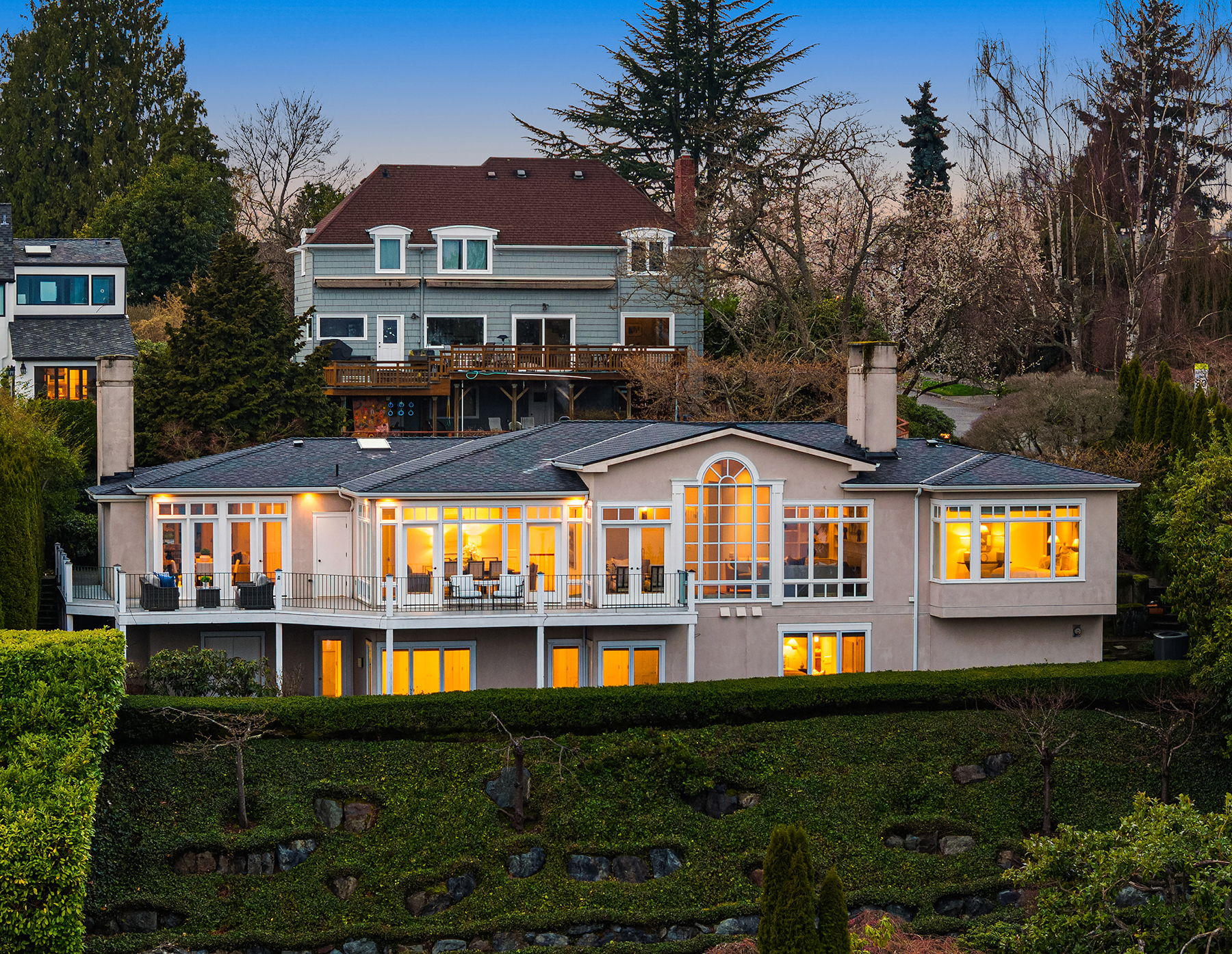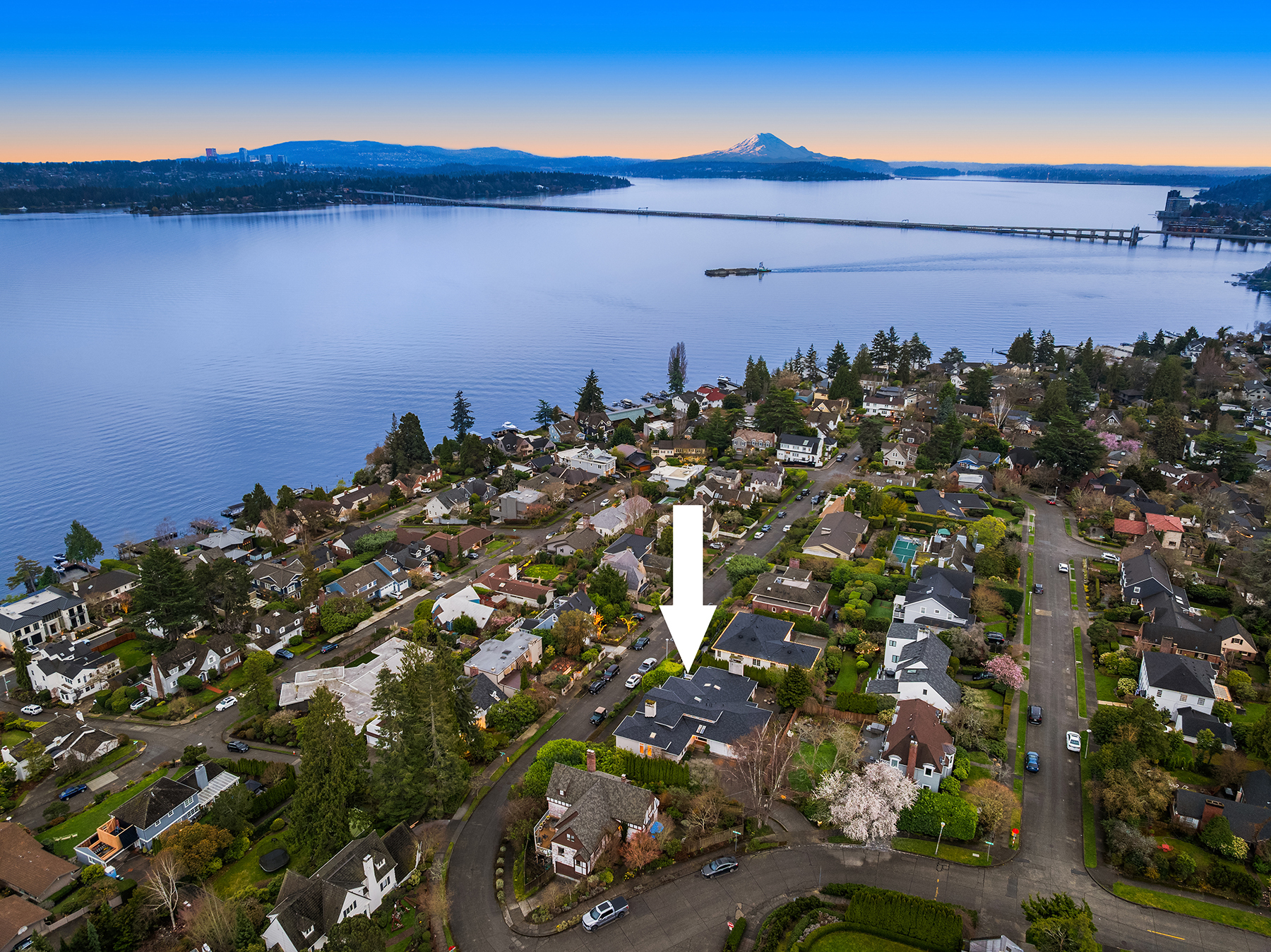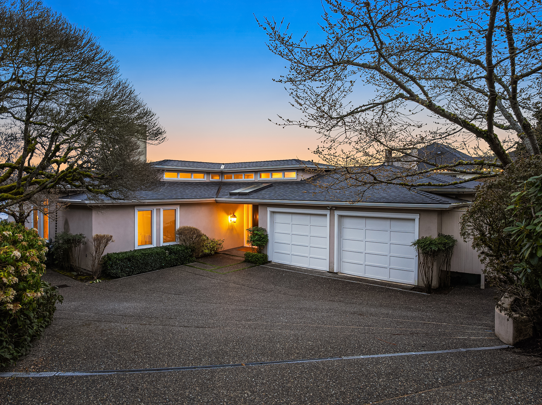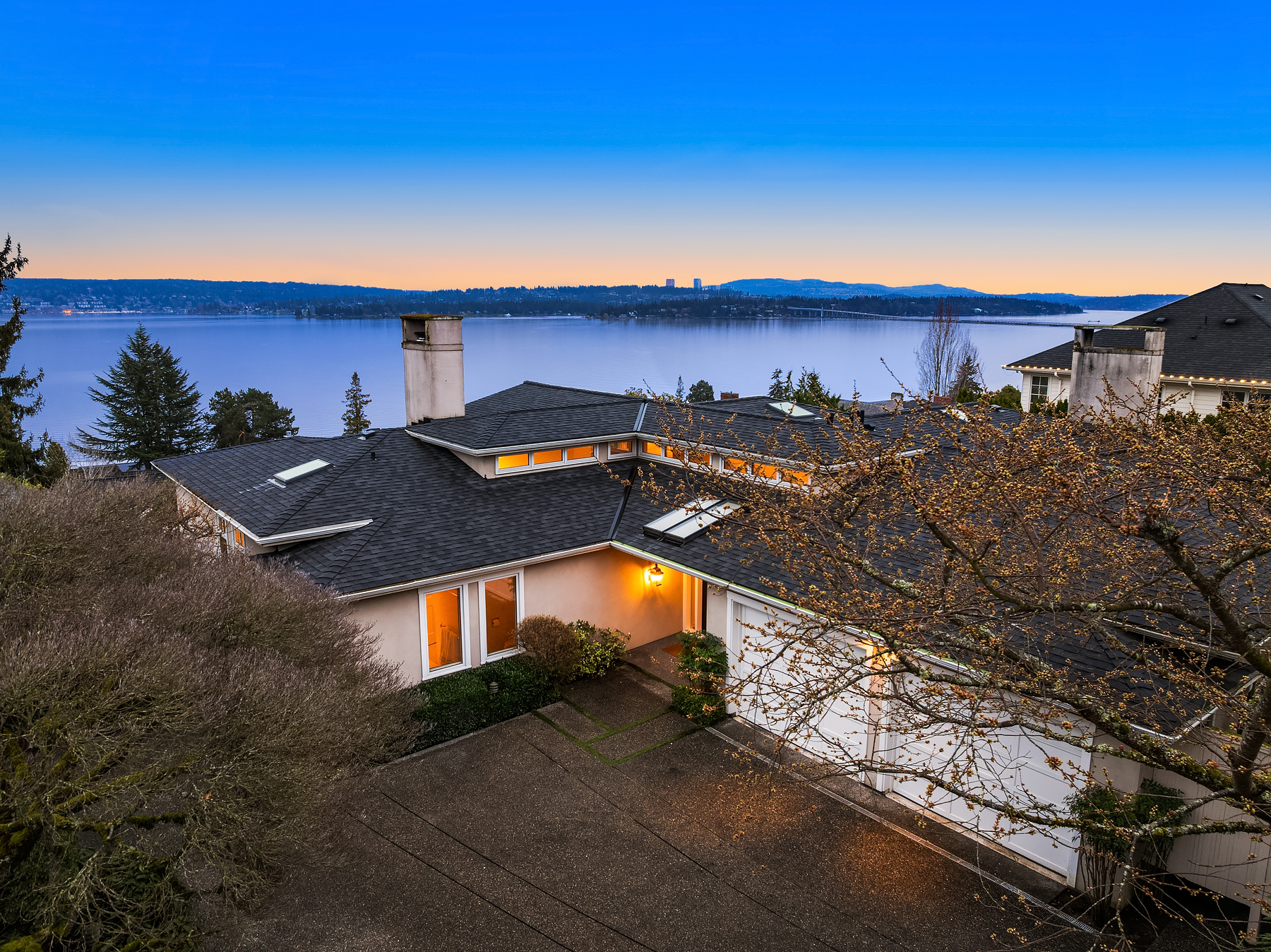 A rare offering, this iconic Laurelhurst residence offers sweeping, panoramic views of Lake Washington, Mount Rainier and the Cascade Mountains, from almost every room. Designed and built for the legendary Governor Dan and Nancy Evans, as their personal retreat and entertainment hub. Soaring ceilings and walls of glass highlight the views and light in this grand daylight rambler. With over 3,000 square feet of living space on the main floor which includes a primary suite, 2 offices, laundry and grand formal spaces, that will make you giddy. Rare 2 car garage that is level to the main floor-drive right in! Recent updates give this home a bright, contemporary feel while leaving some projects for you to customize, as you see fit. Beach Club