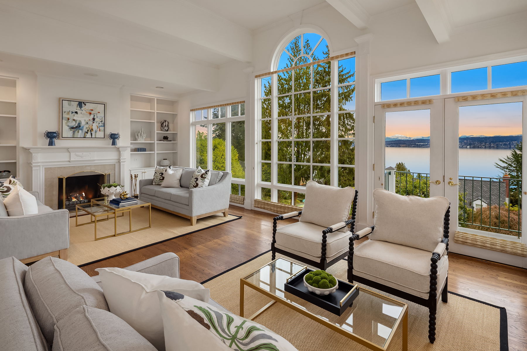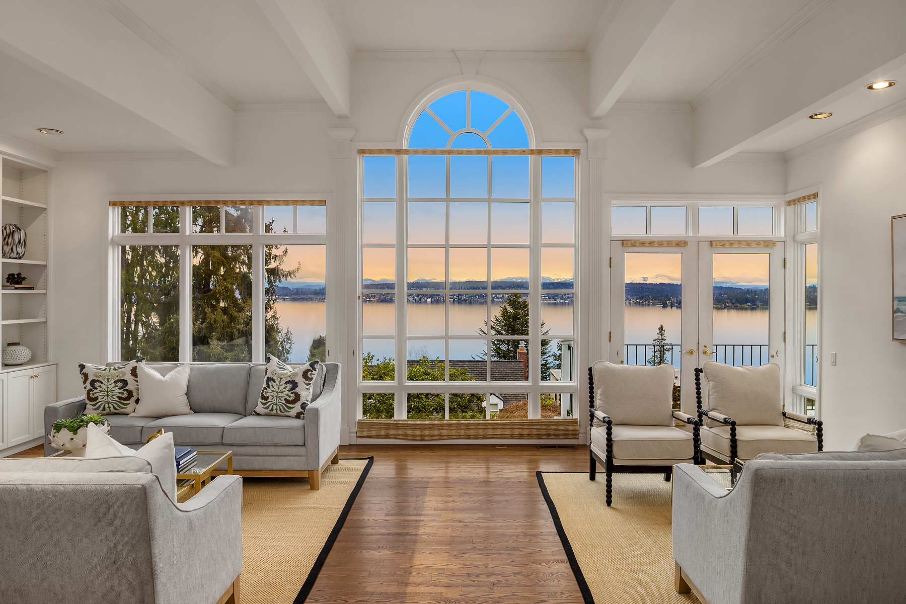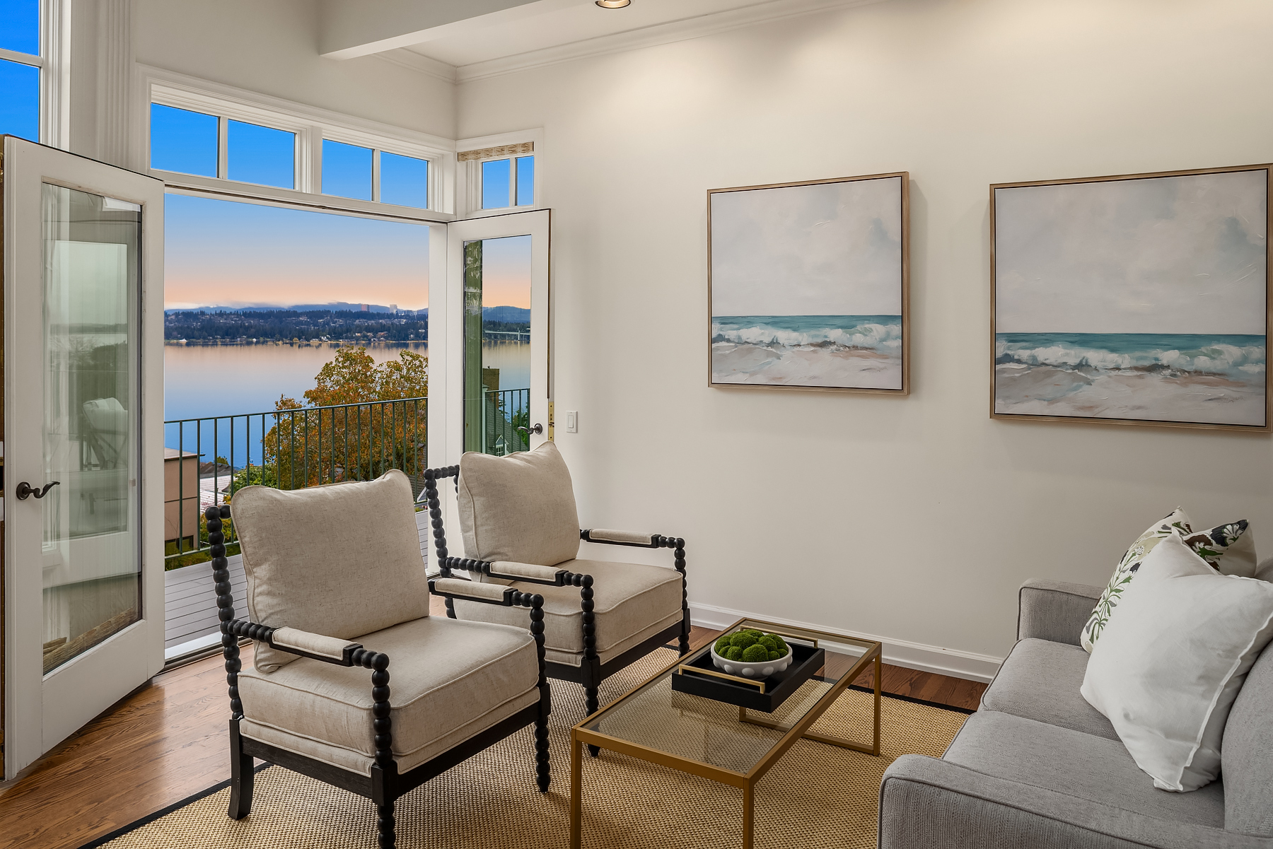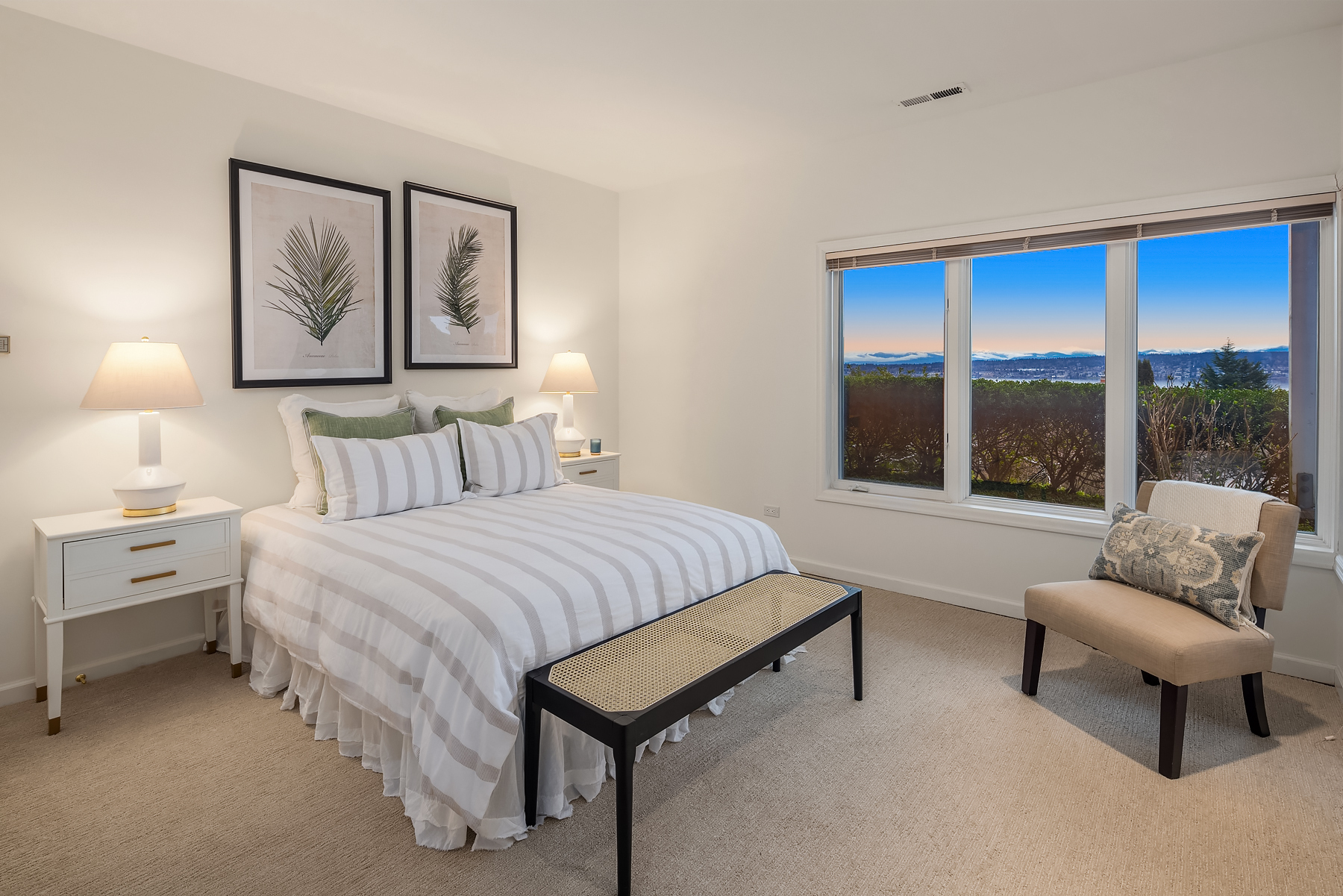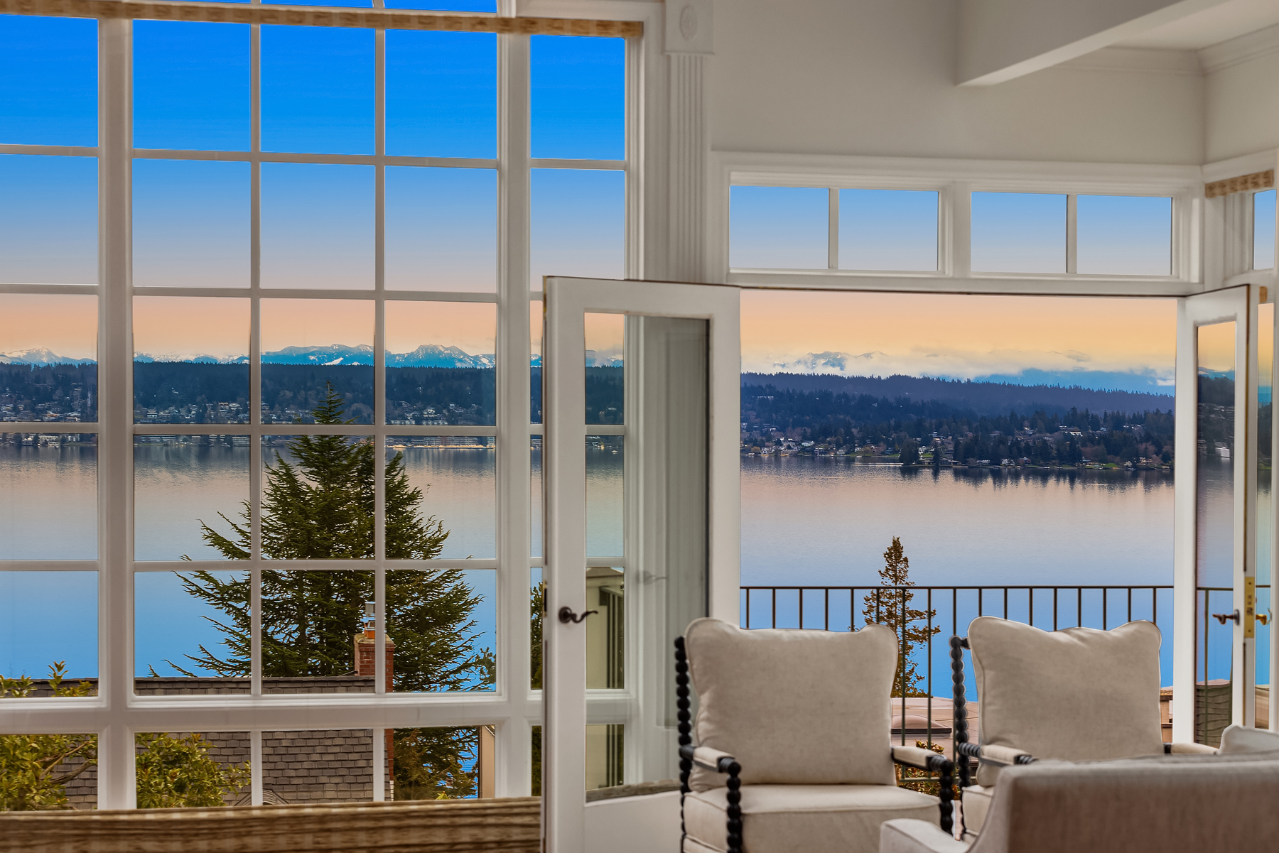 A rare offering, this iconic Laurelhurst residence offers sweeping, panoramic views of Lake Washington, Mount Rainier and the Cascade Mountains, from almost every room. Designed and built for the legendary Governor Dan and Nancy Evans, as their personal retreat and entertainment hub. Soaring ceilings and walls of glass highlight the views and light in this grand daylight rambler. With over 3,000 square feet of living space on the main floor which includes a primary suite, 2 offices, laundry and grand formal spaces, that will make you giddy. Rare 2 car garage that is level to the main floor-drive right in! Recent updates give this home a bright, contemporary feel while leaving some projects for you to customize, as you see fit. Beach Club