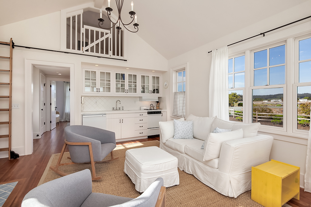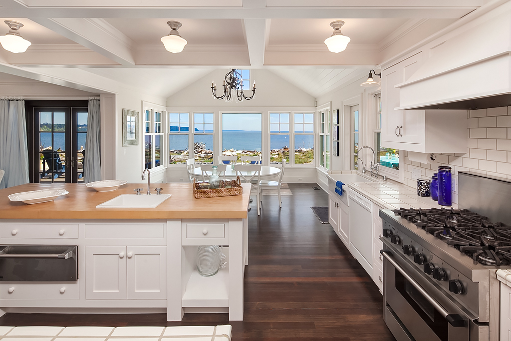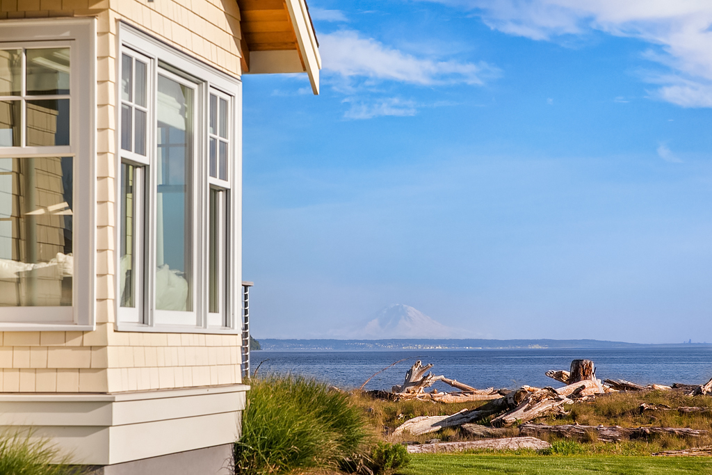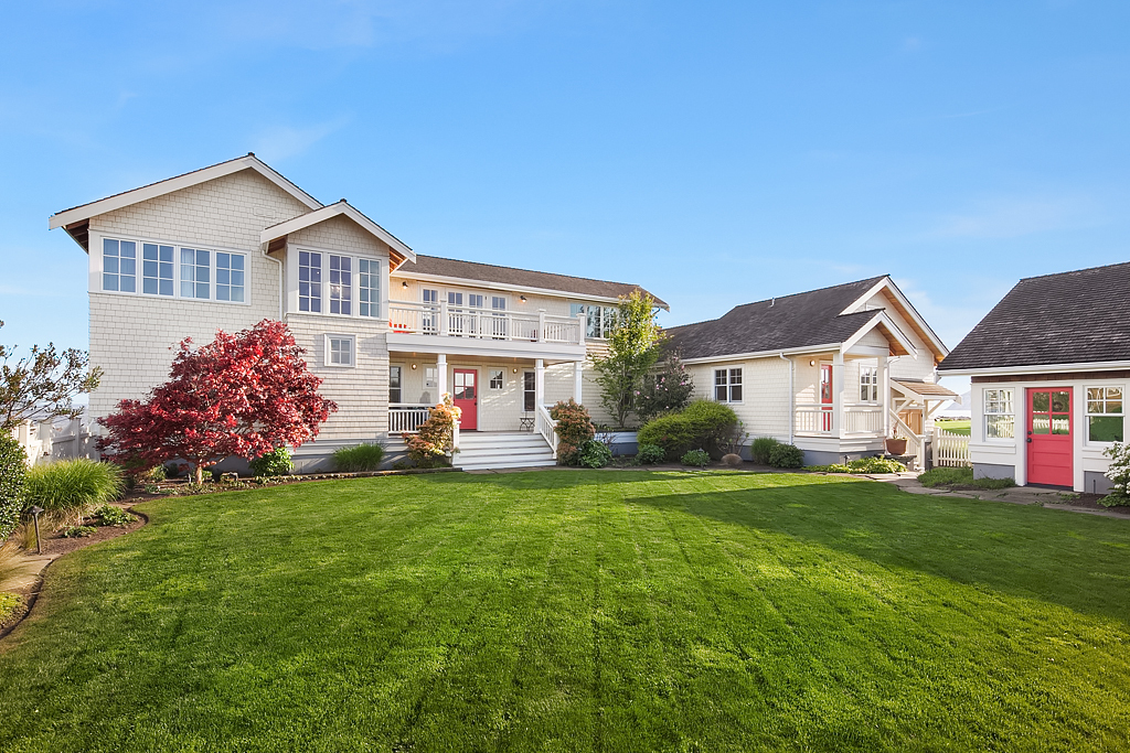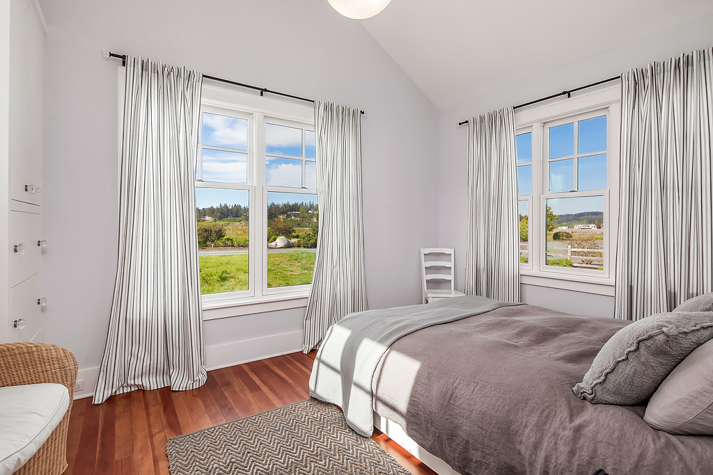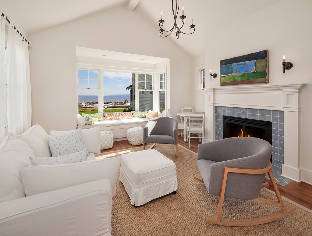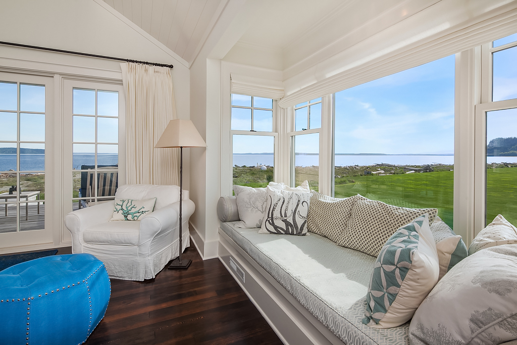 Here on a desirable and rare 14.7 +/- acres of south-facing no-bank waterfront and 225+/- ft of sandy beach, is an idyllic compound arranged to accommodate a romantic weekend for two or a much larger gathering. The master suite opens up to the beach-side veranda which accesses a spa and outdoor room complete with wood burning fireplace. Your guests will enjoy a delightful 774 +/- sq ft private guest cottage while others gather in an 894 +/- sq ft garage, game room and loft bunkhouse.