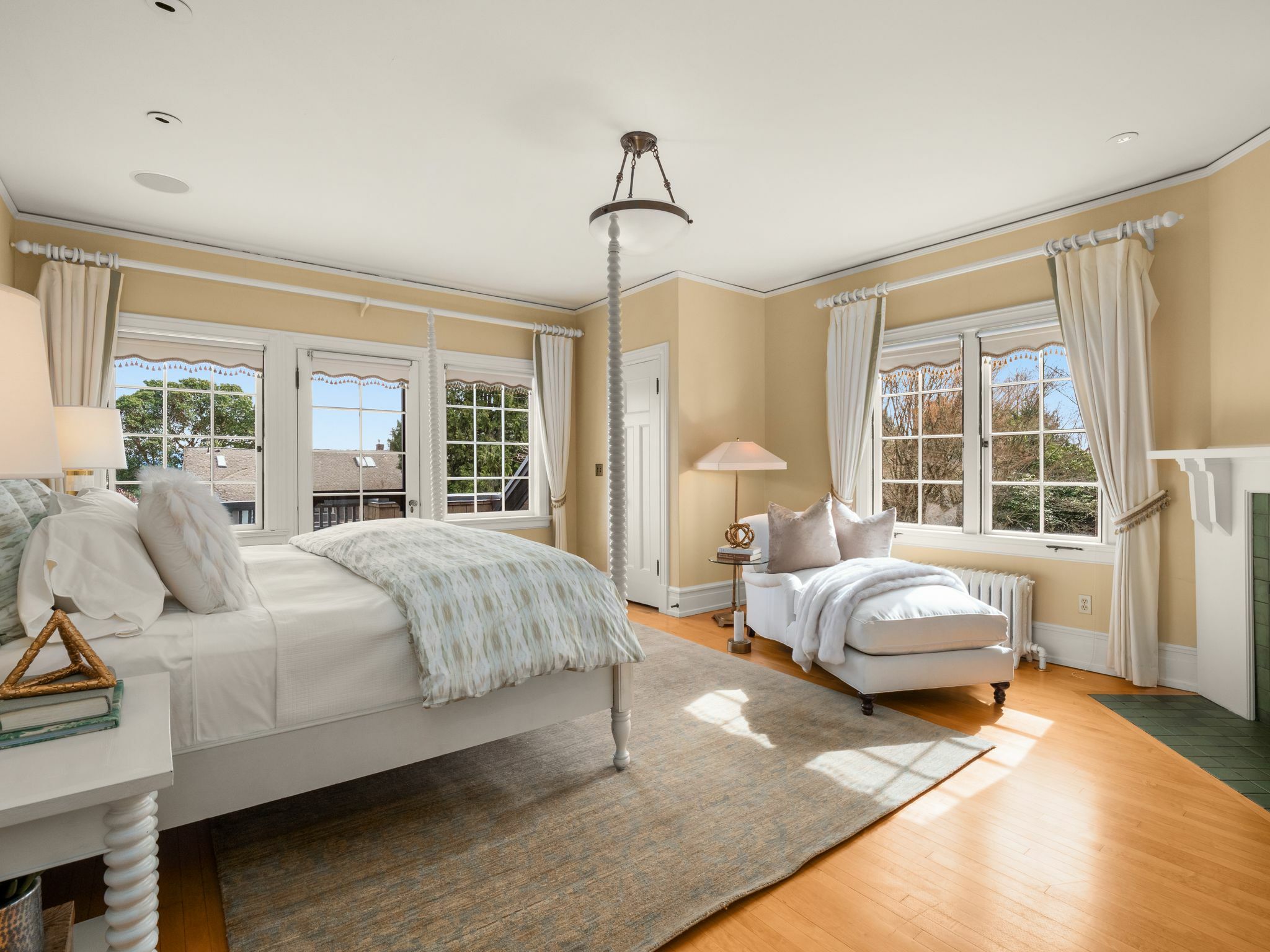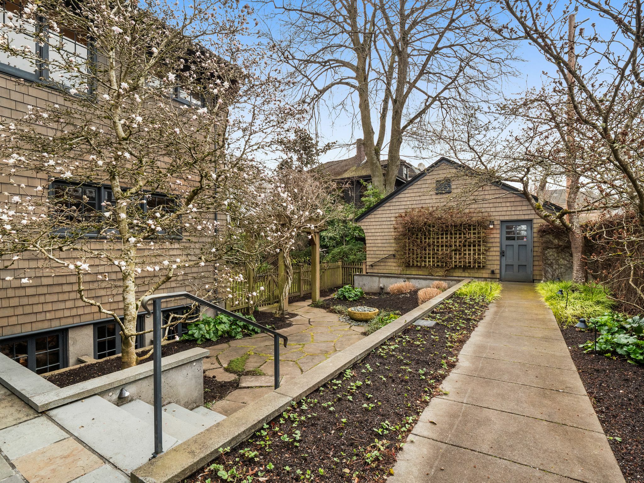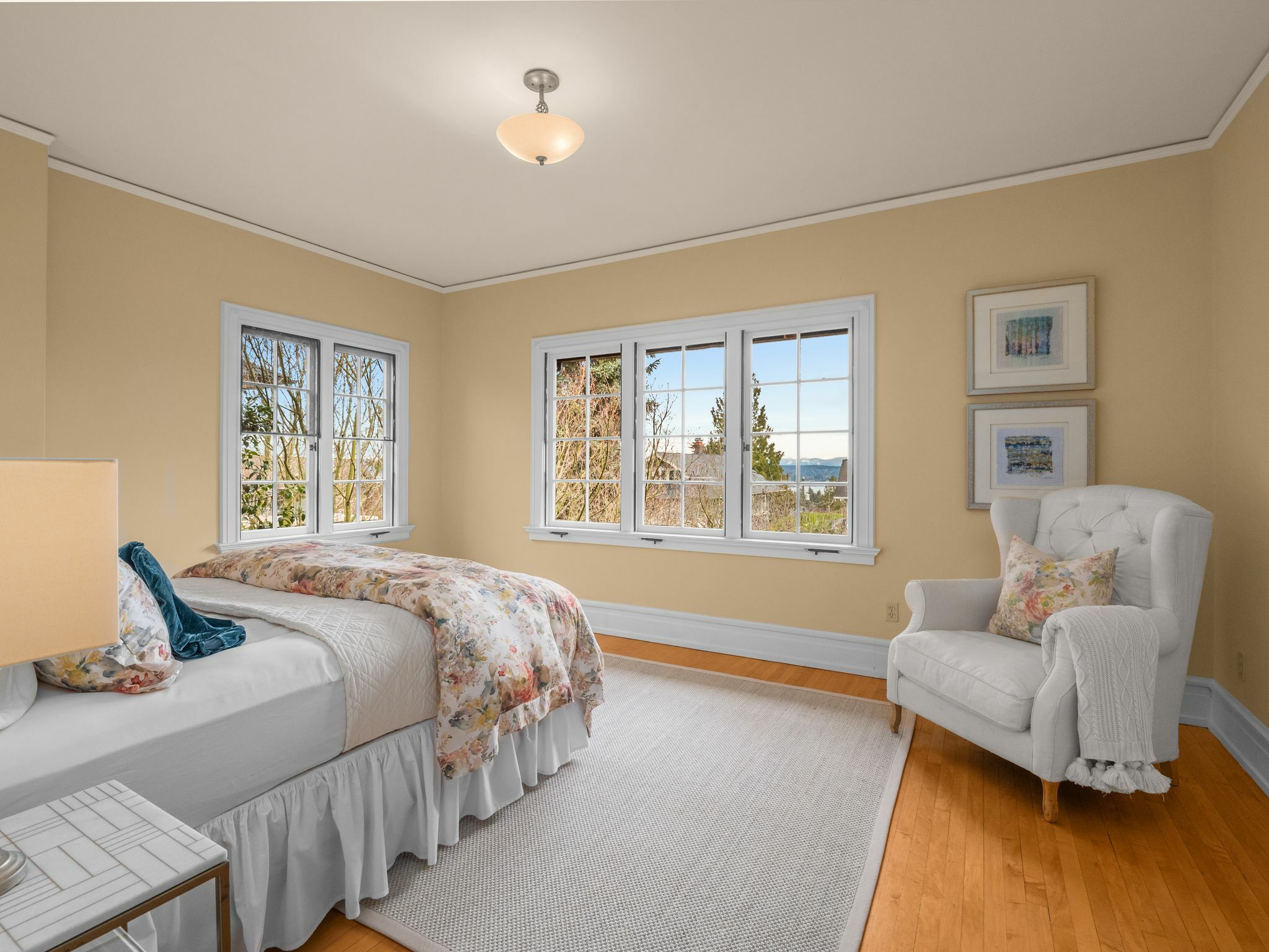 Exceptional 1909 craftsman home is a rare blend of exquisite period detail and modern convenience. Excellently preserved, this architecturally significant home proudly sits on a double lot above the street affording privacy, abundant natural light and views of Lake Washington and the Cascades. Built for a timber baron by Schack & Huntington, the house extols quality, with original wood paneling, hardwood floors, Quezal Art glass chandeliers, large windows and amenities that assure a comfortable lifestyle. Re-wired and re-plumbed in 2002. 2 car garage with 2 Tesla chargers and a 3rd parking spot. Beautiful and abundant gardens and private spaces. Excellent floorplan and grand original details, this classic home has stood the test of time!